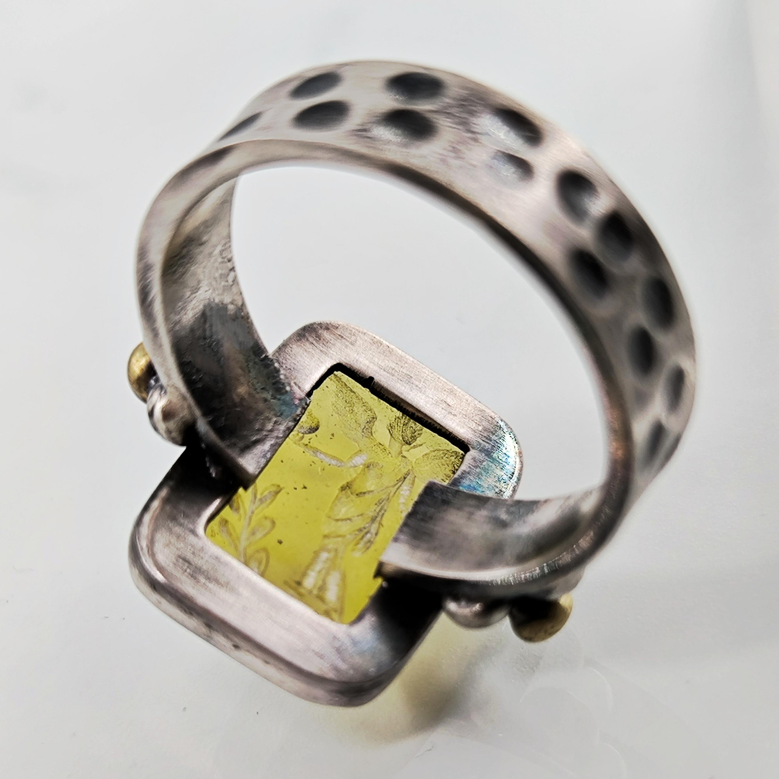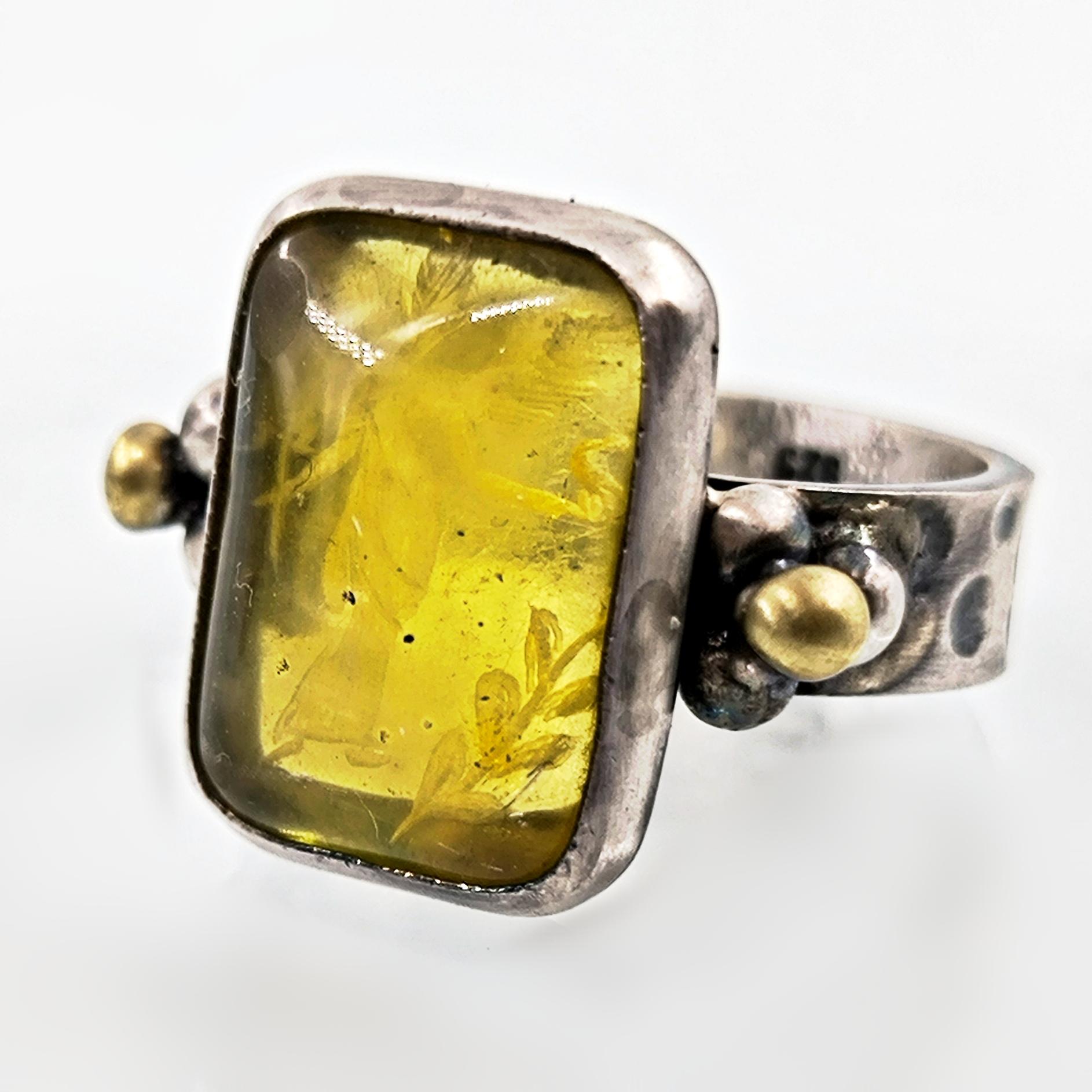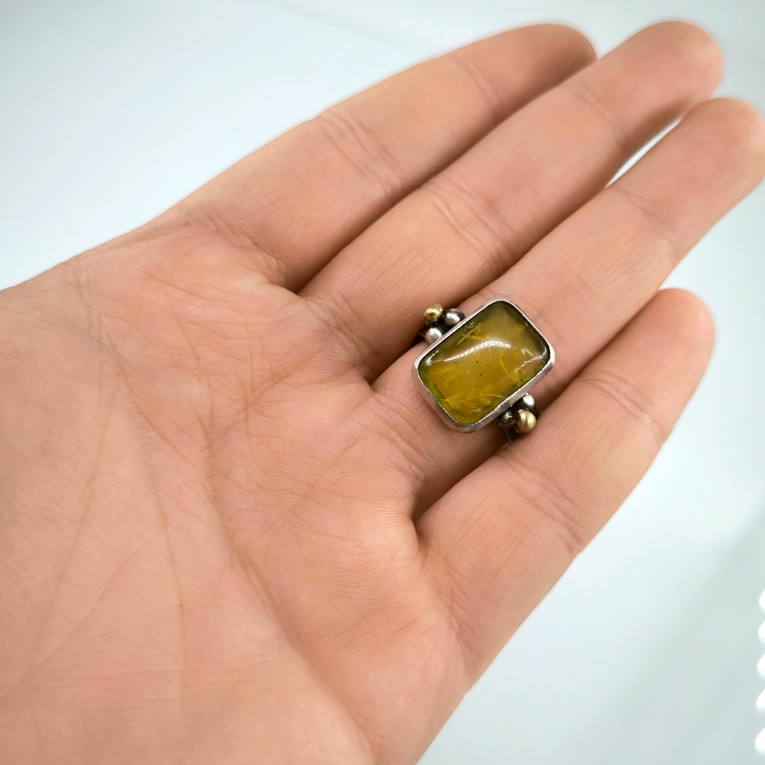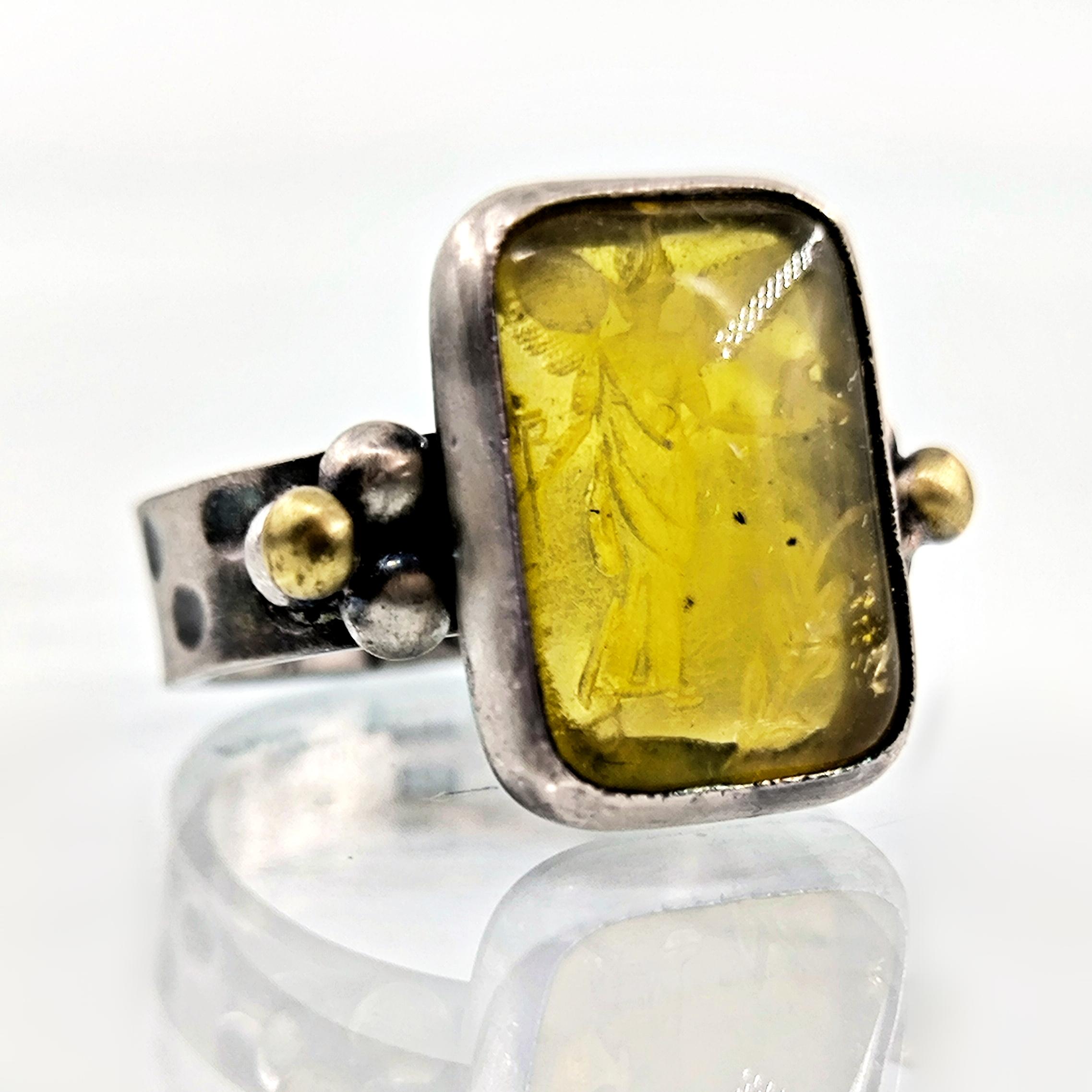 KANATLI TANRIÇA TASVİRLİ DAMLA KEHRİBAR ANTİK STİL 925 AYAR GÜMÜŞ YÜZÜK