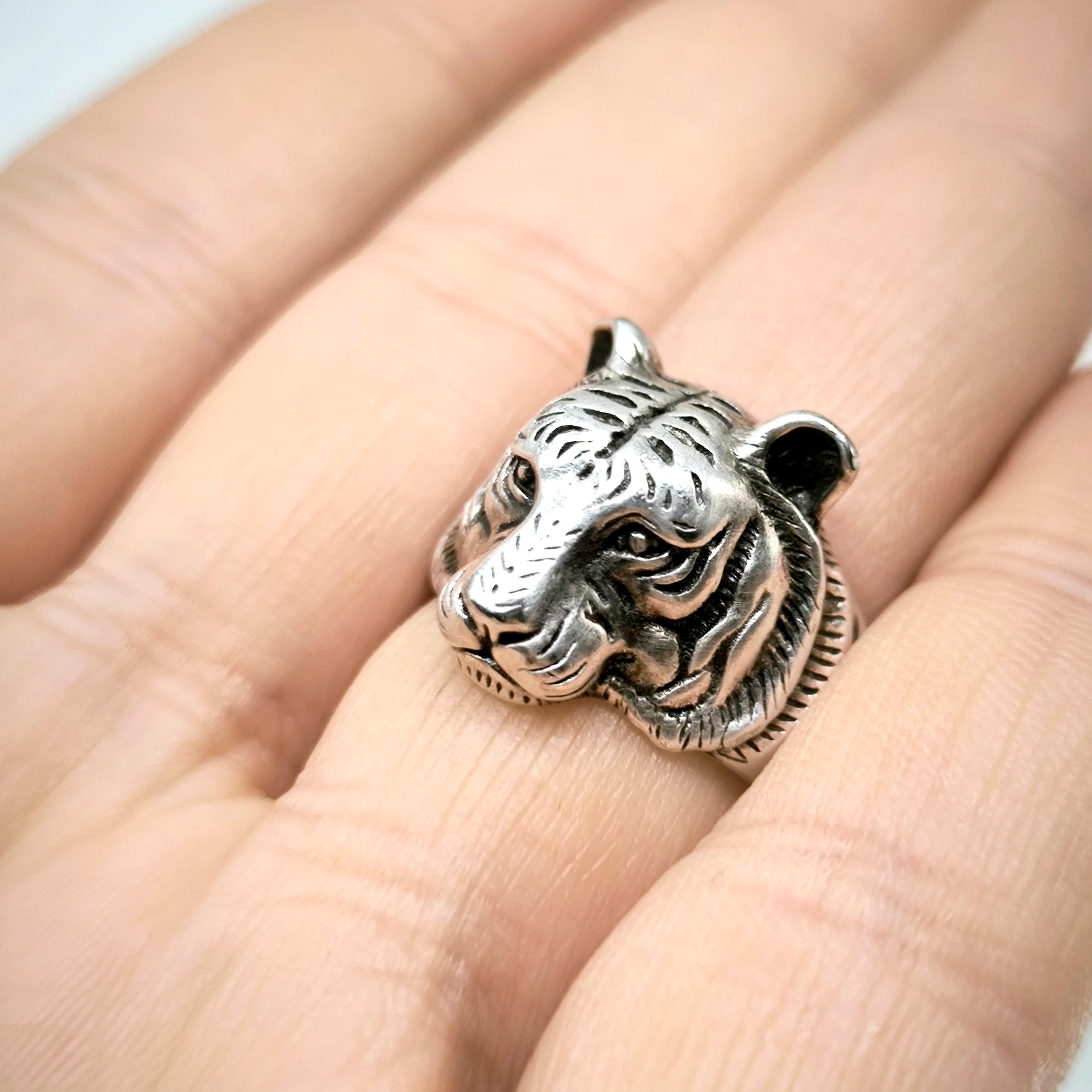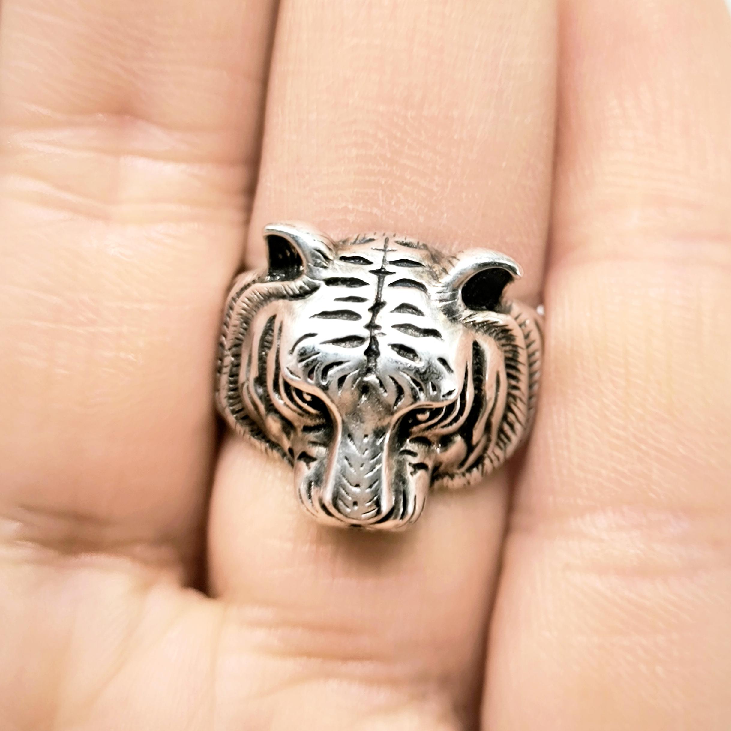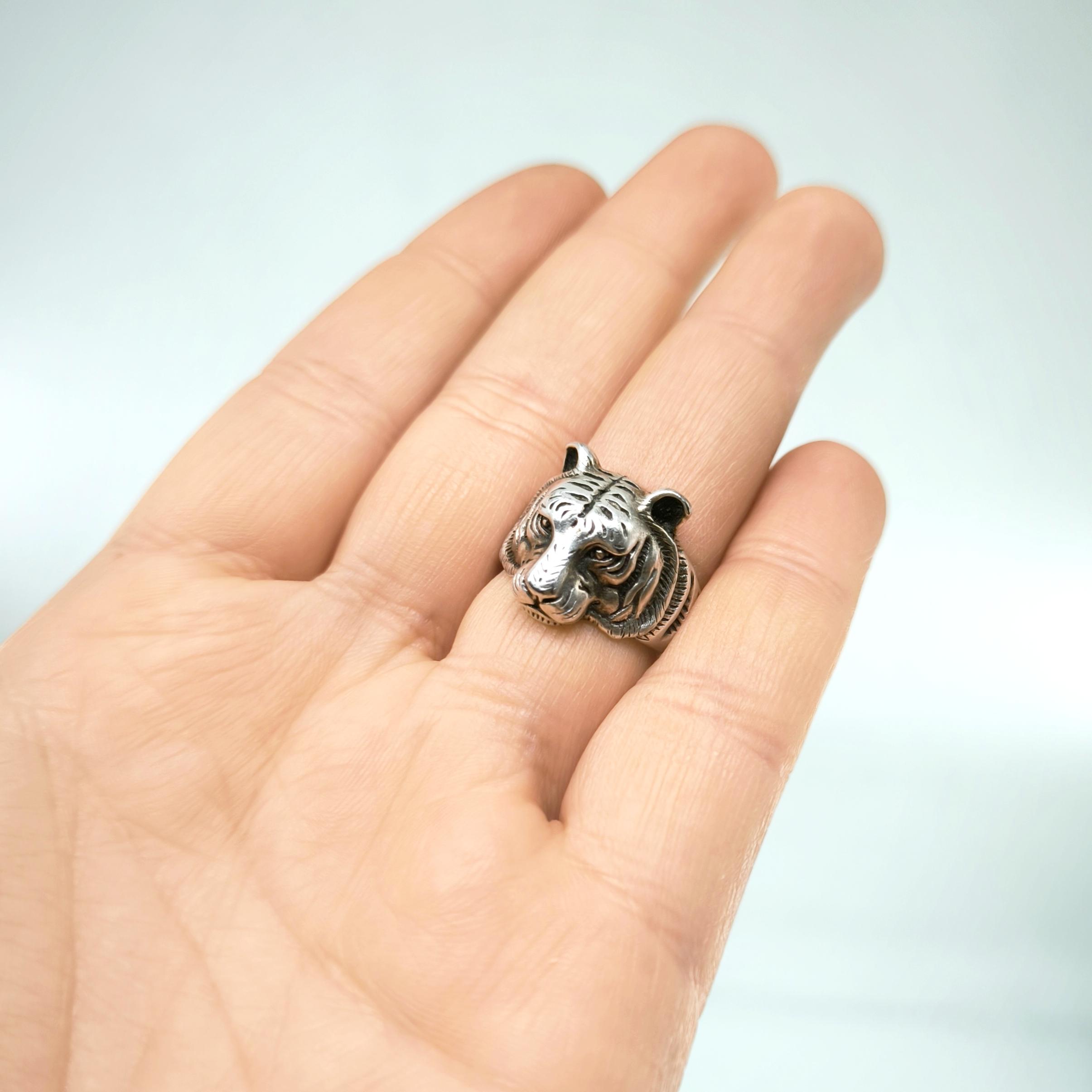 Tamamı 925 ayar gümüşten estetik işçilikte Kaplan yüzük