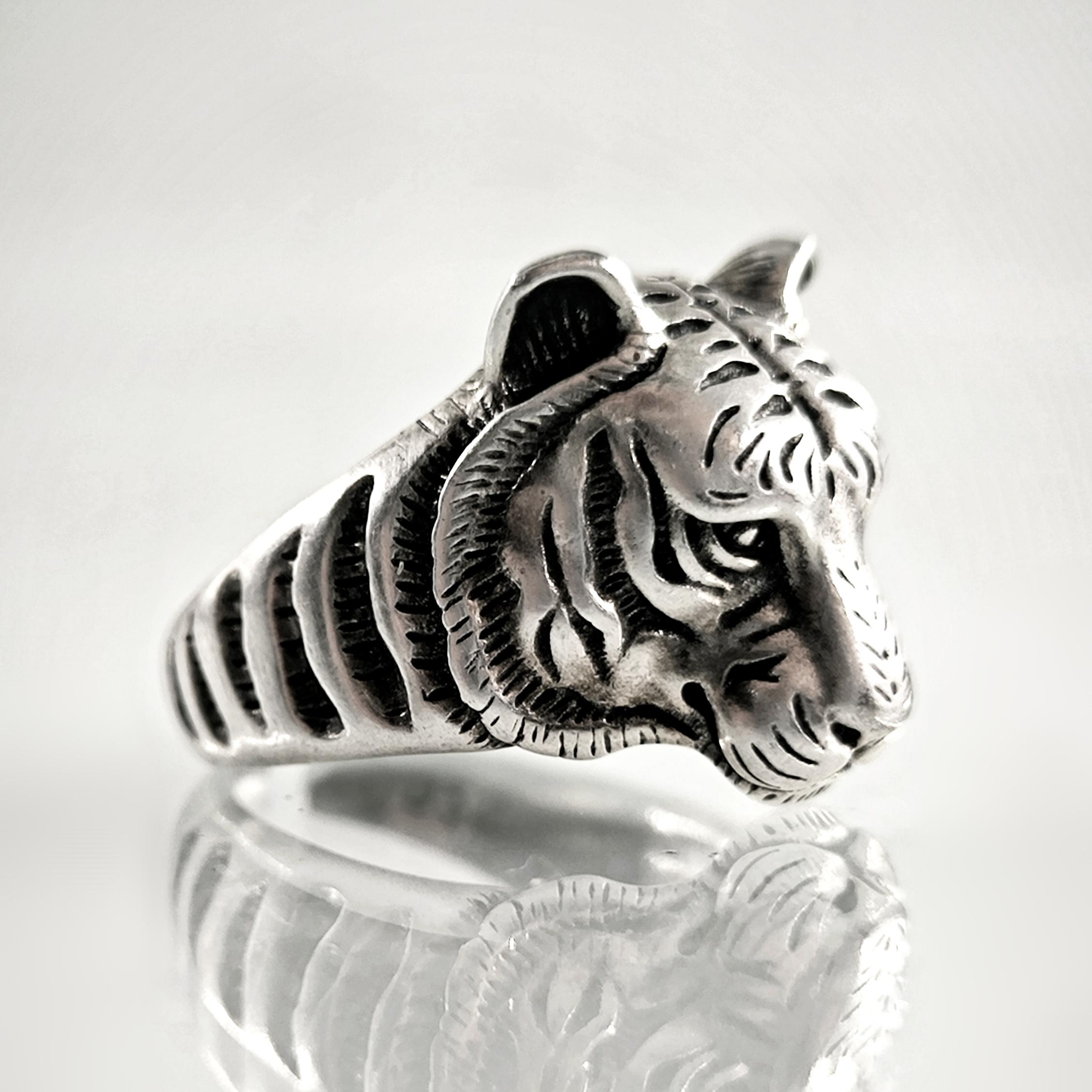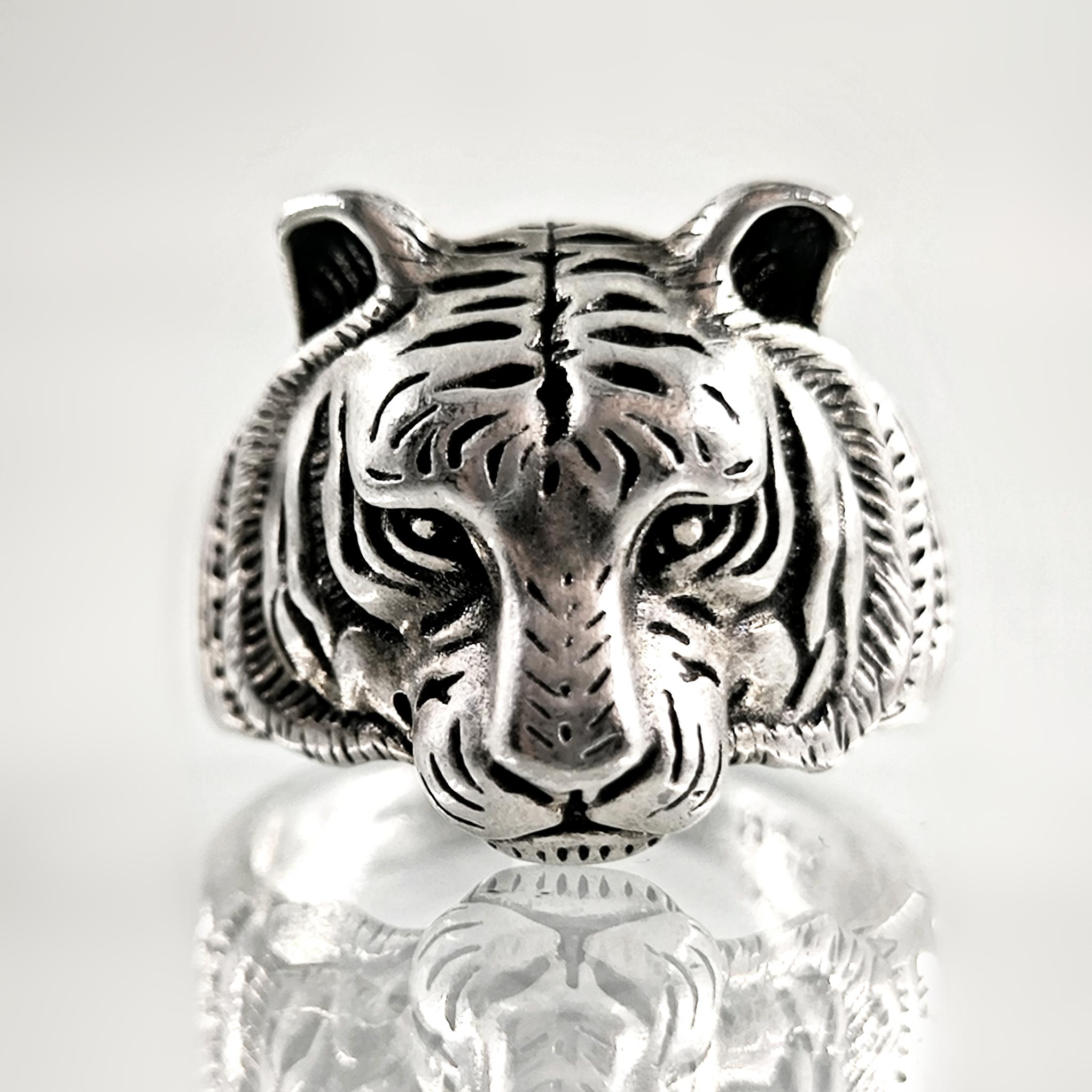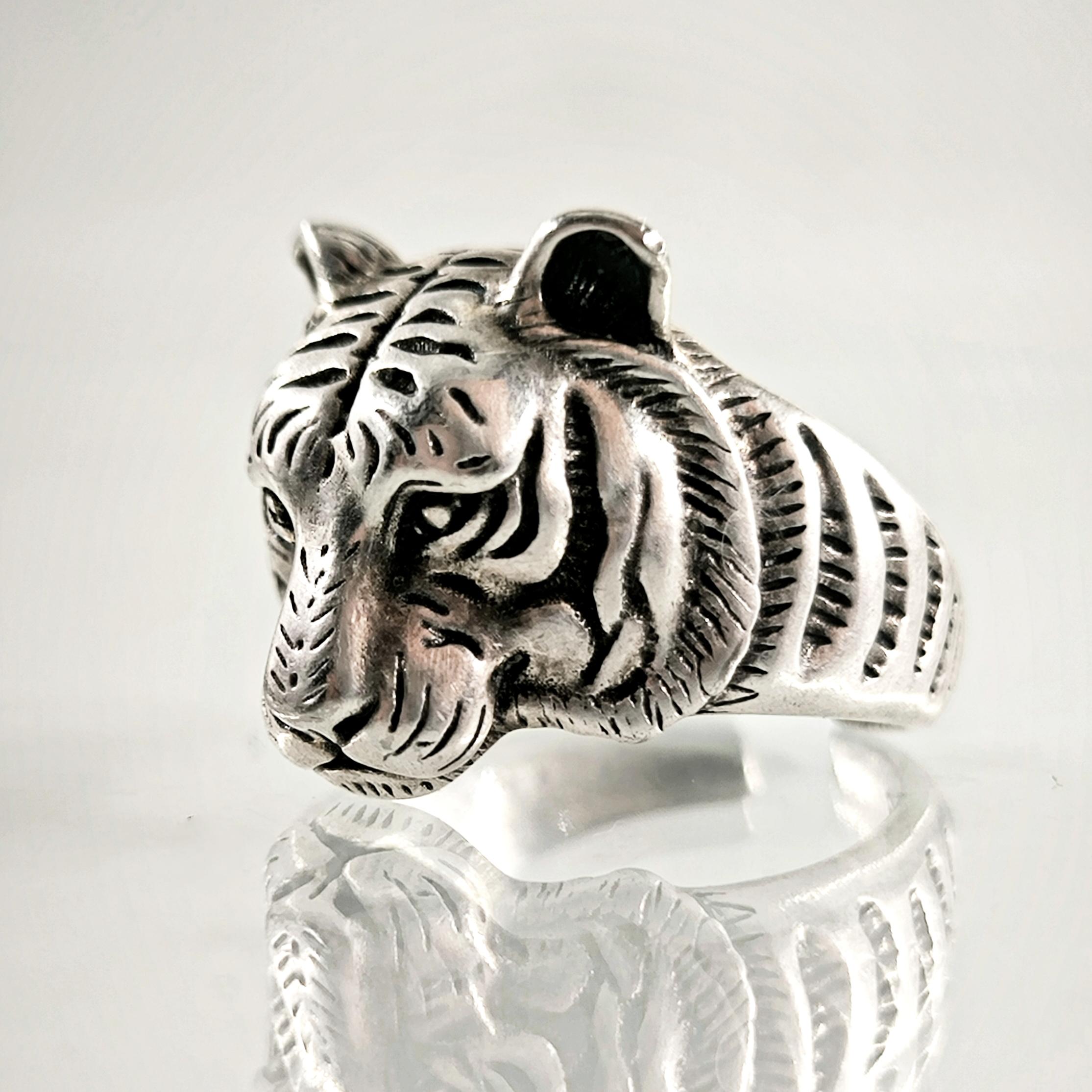 Tamamı 925 ayar gümüşten estetik işçilikte Kaplan yüzük