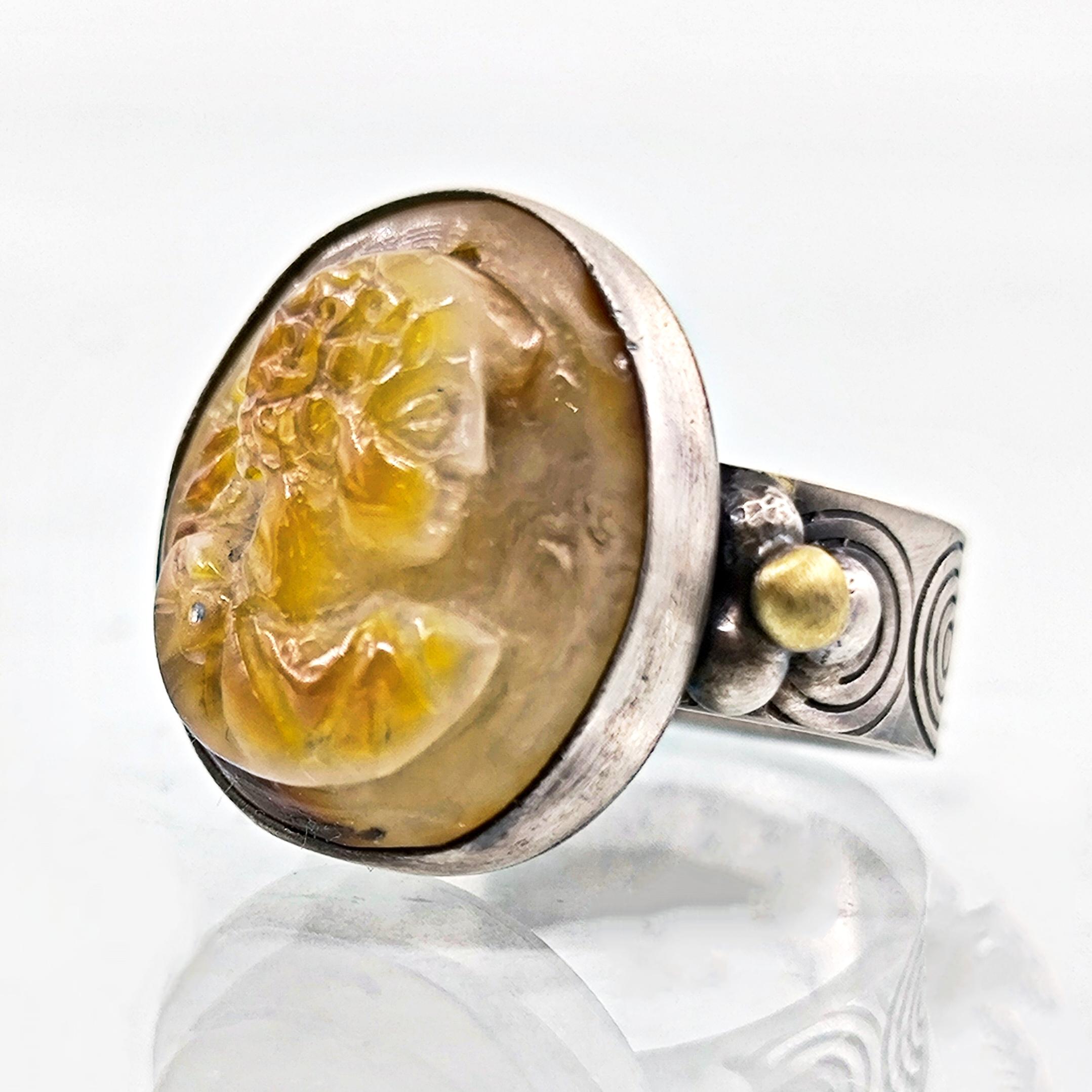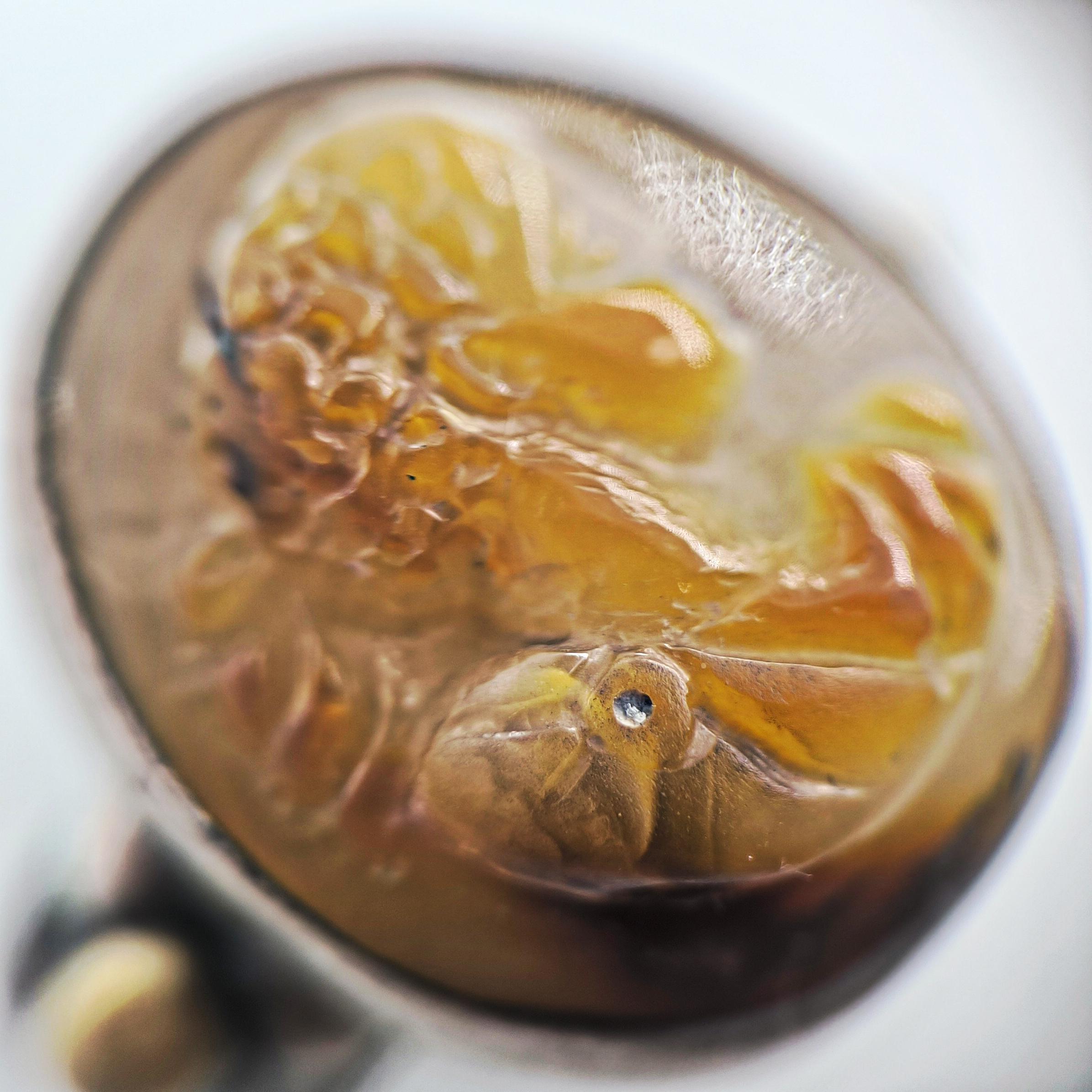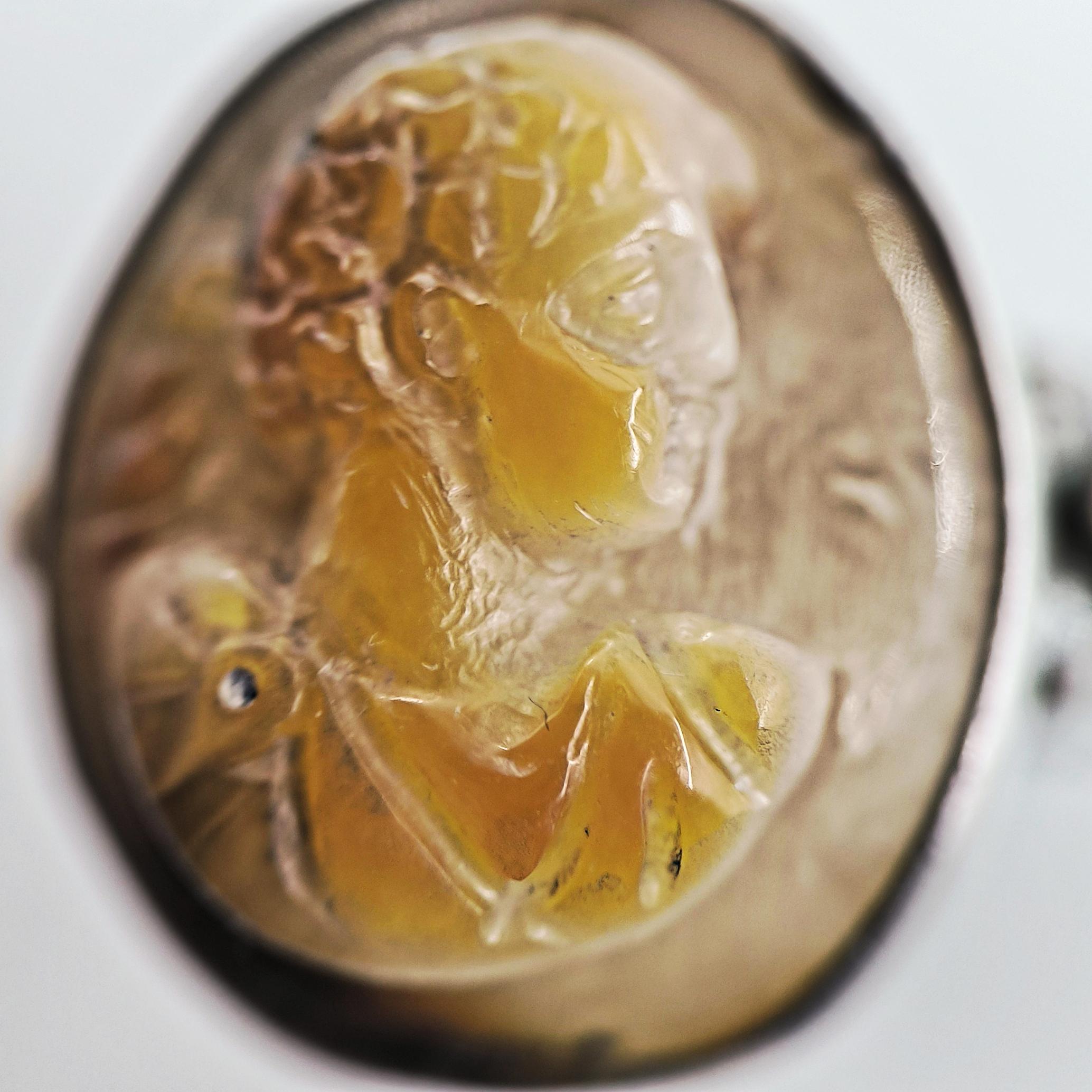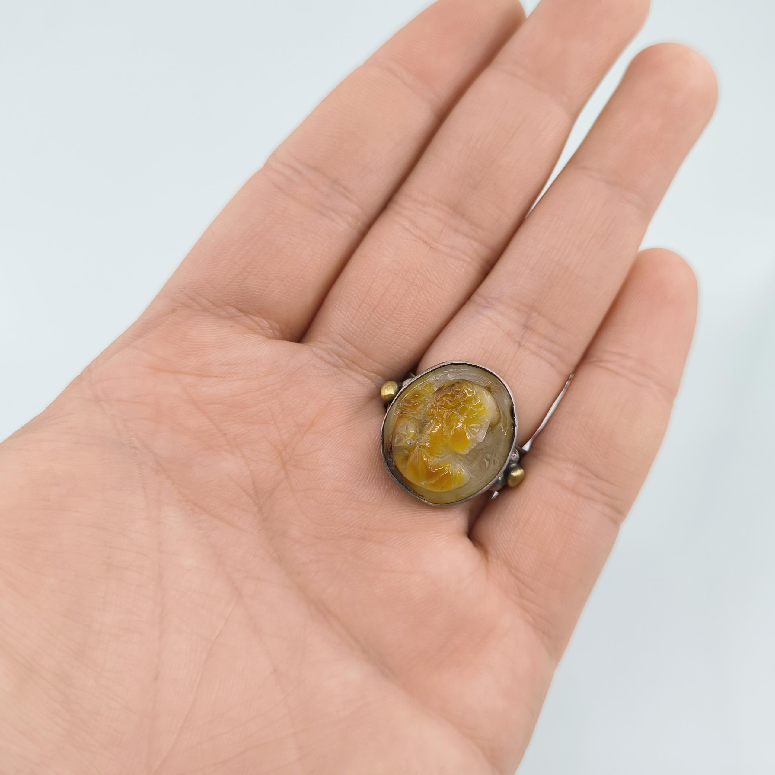 KEHRİBAR ÜZERİ MARCUS AURELIUS PORTRELİ ANTİK STİL 925 AYAR GÜMÜŞ YÜZÜK