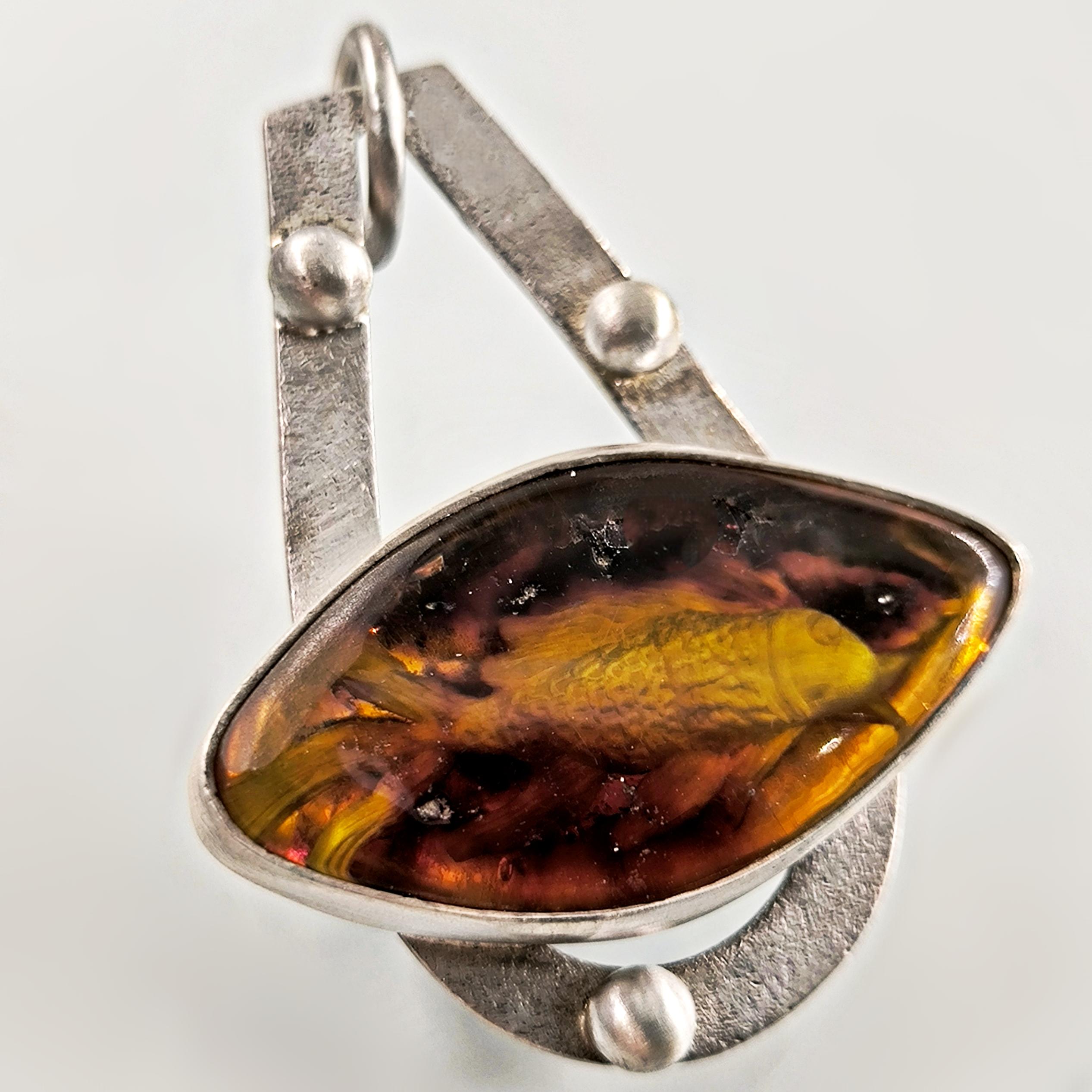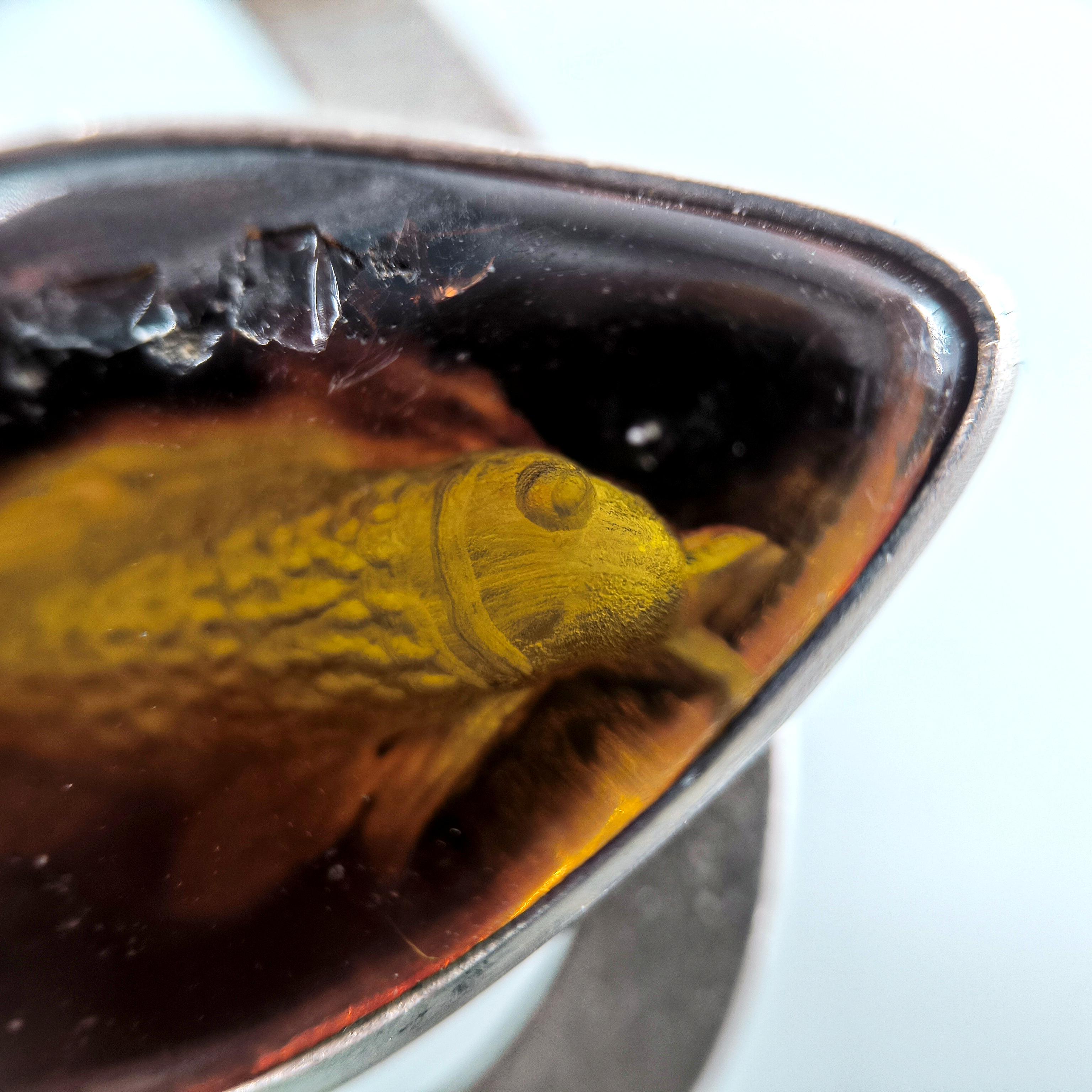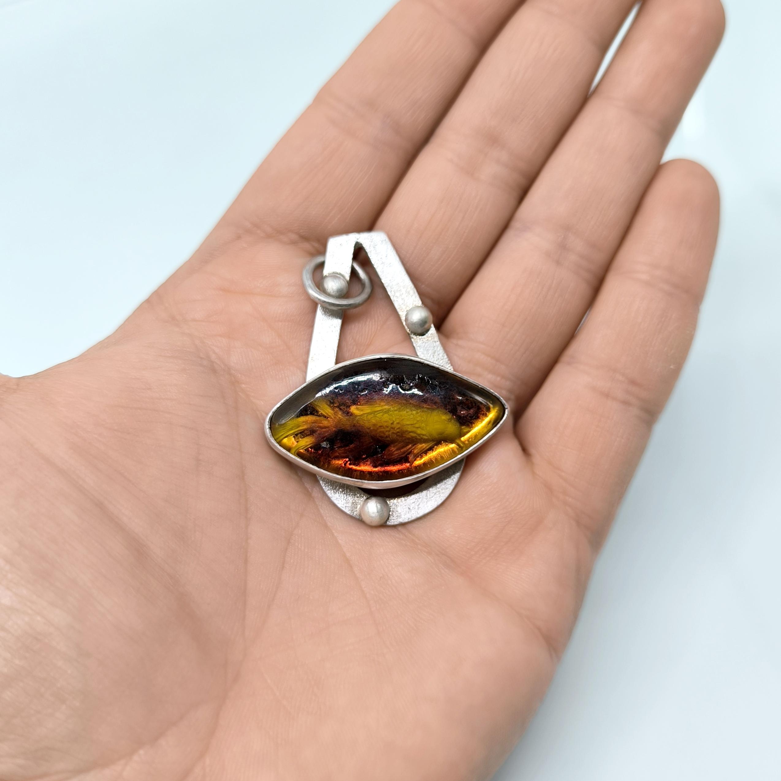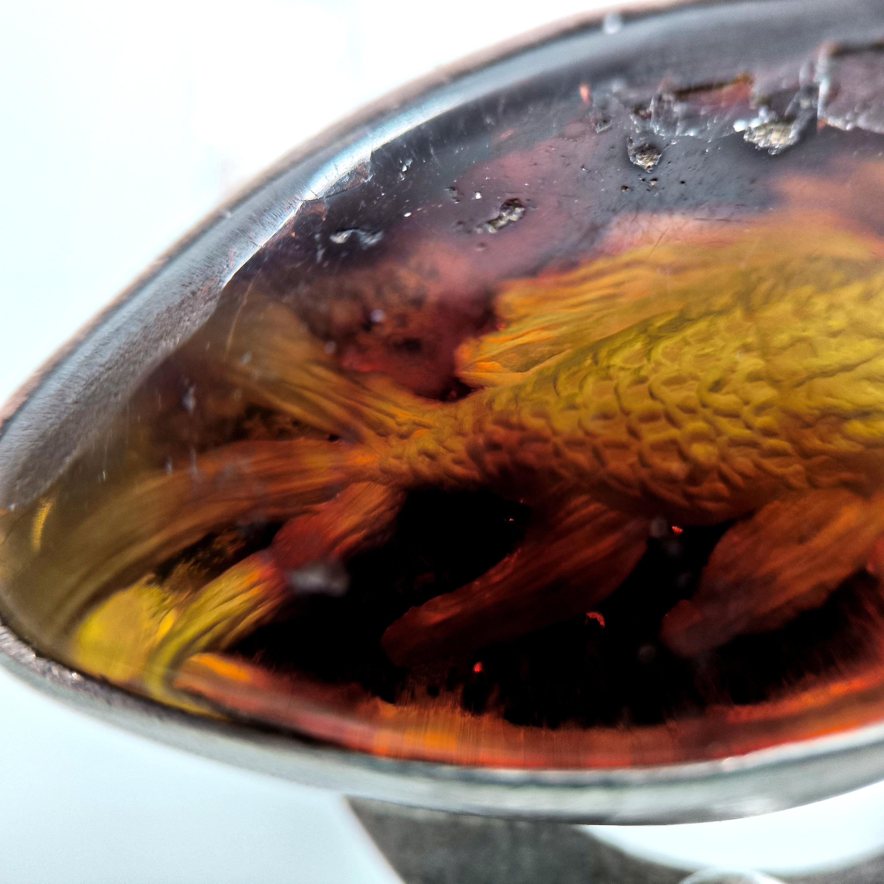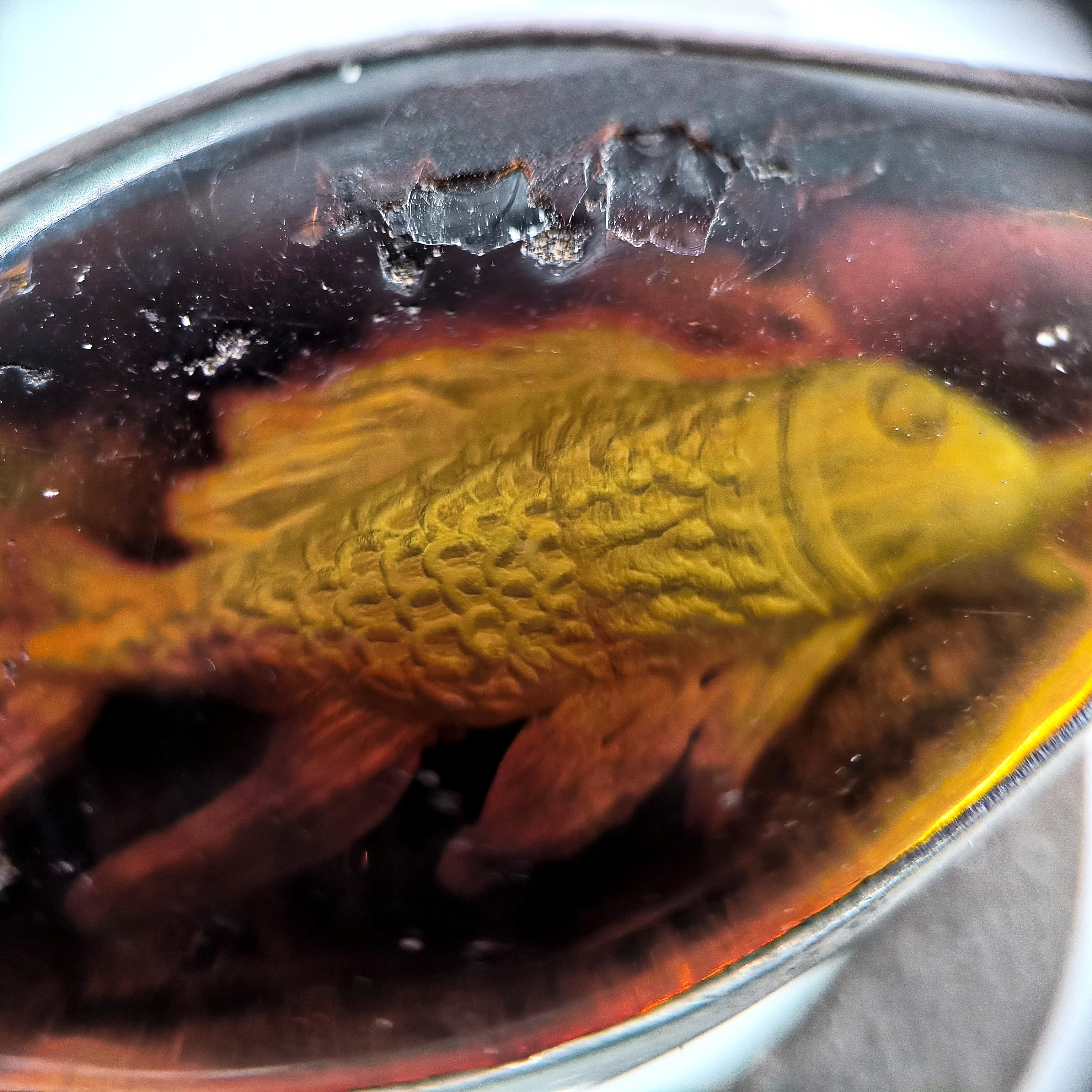 Doğal damla kehribarın içine saklanan bir balık figürü...