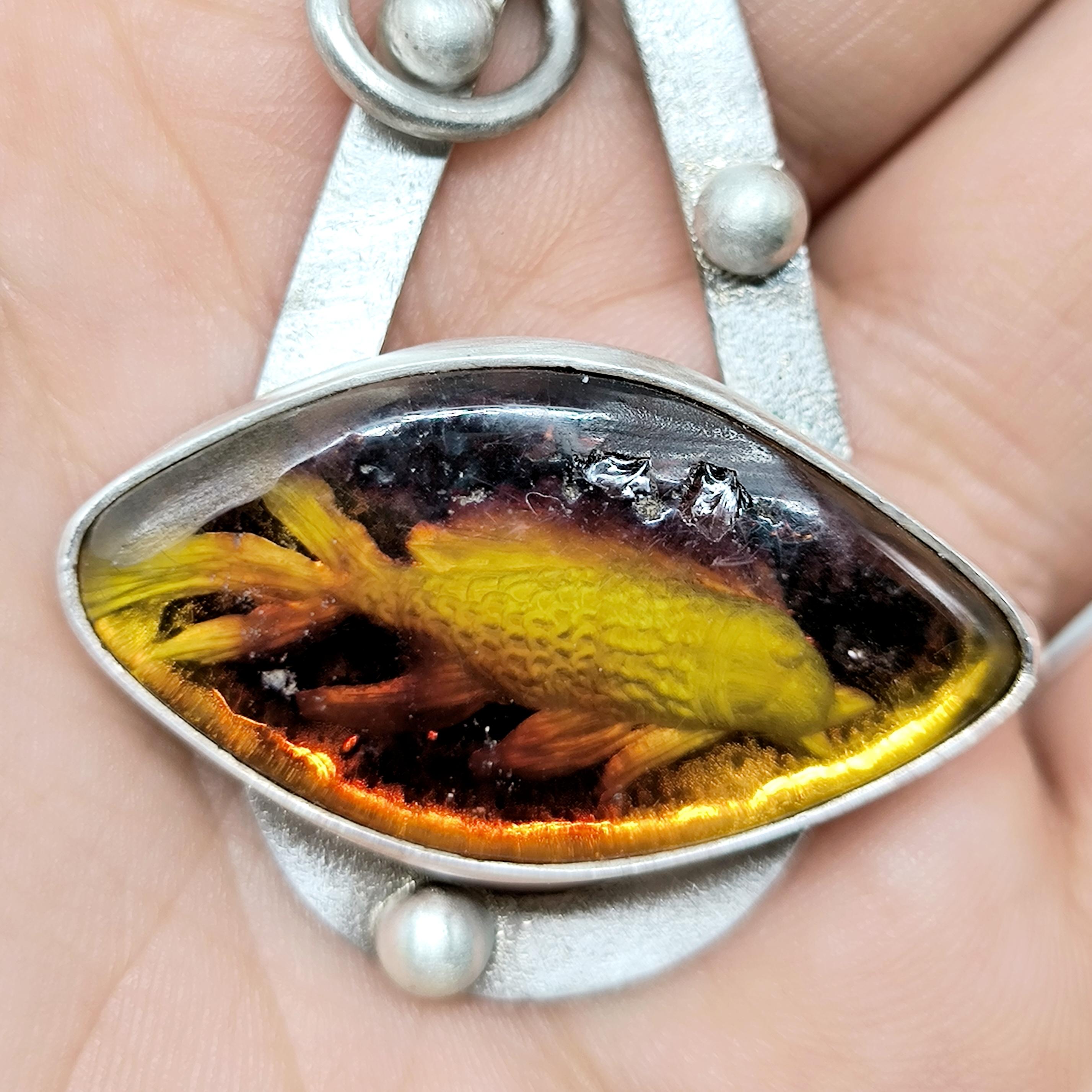 "KEHRİBARIN DERİNLİĞİNDE BALIK İNTAGLİO KOLYE"