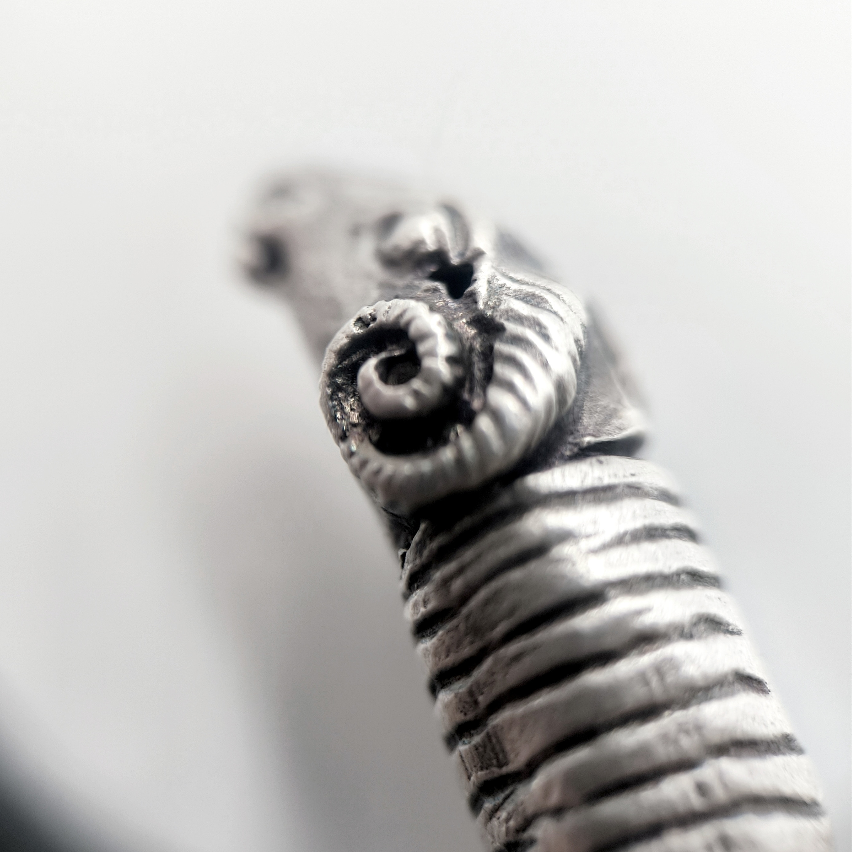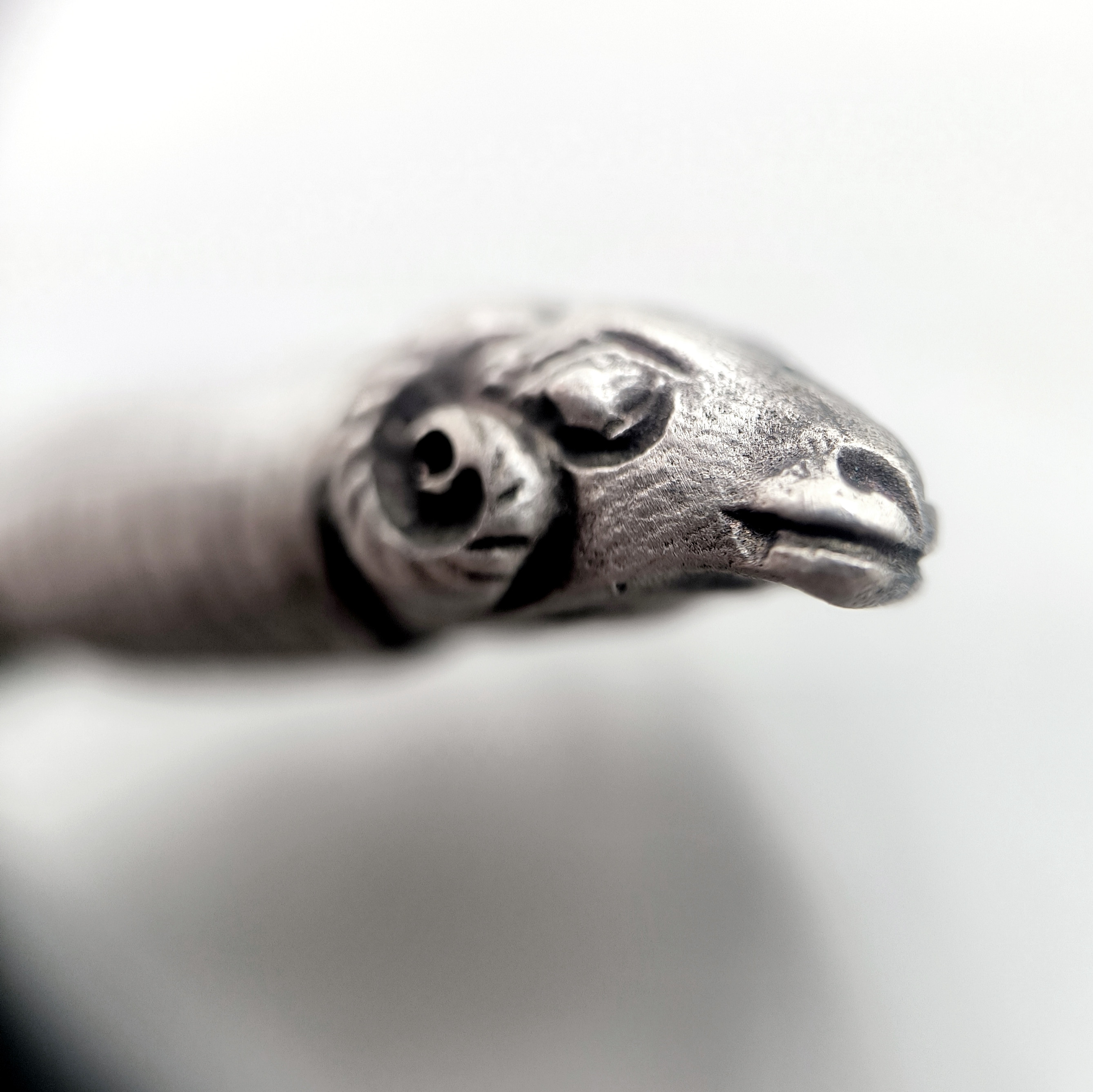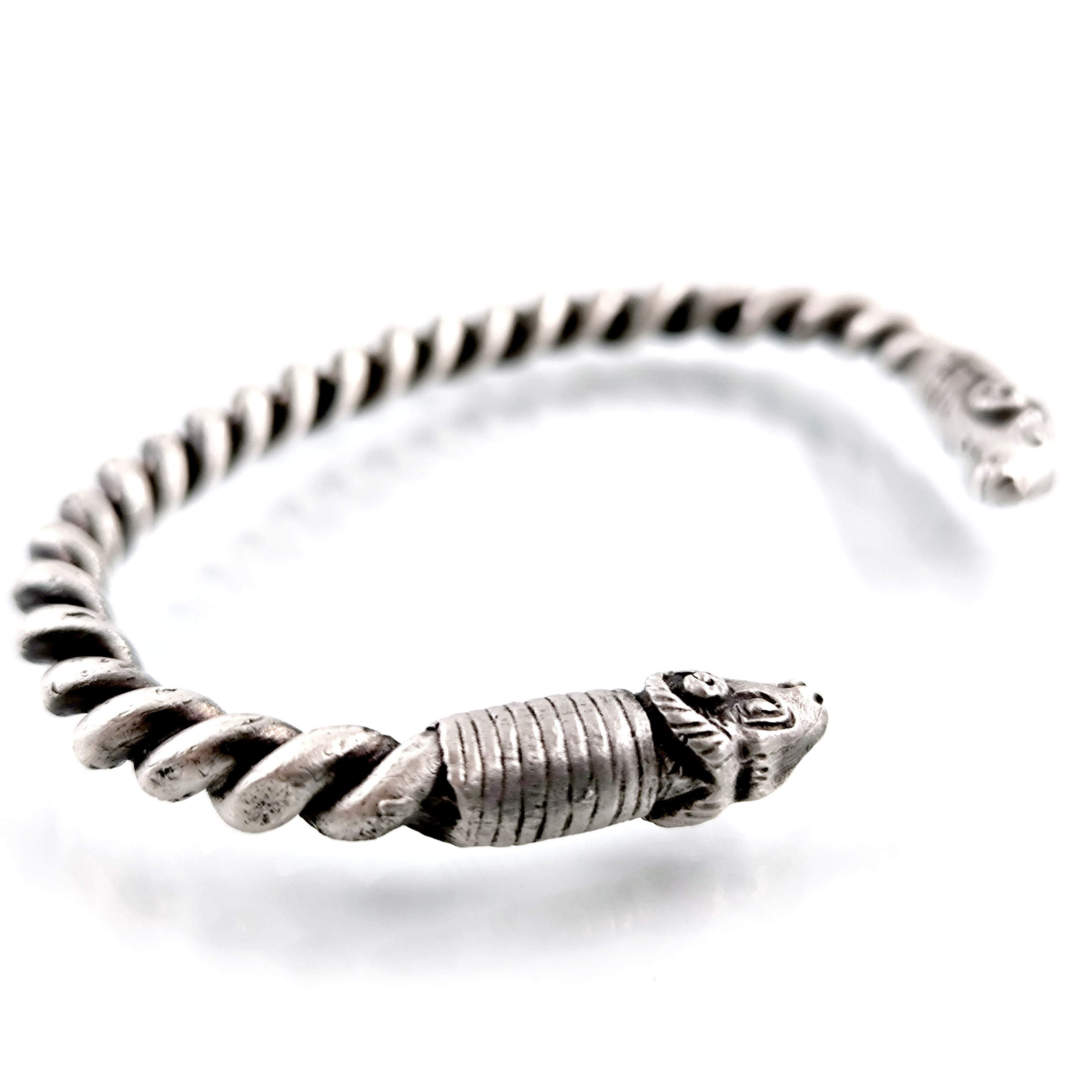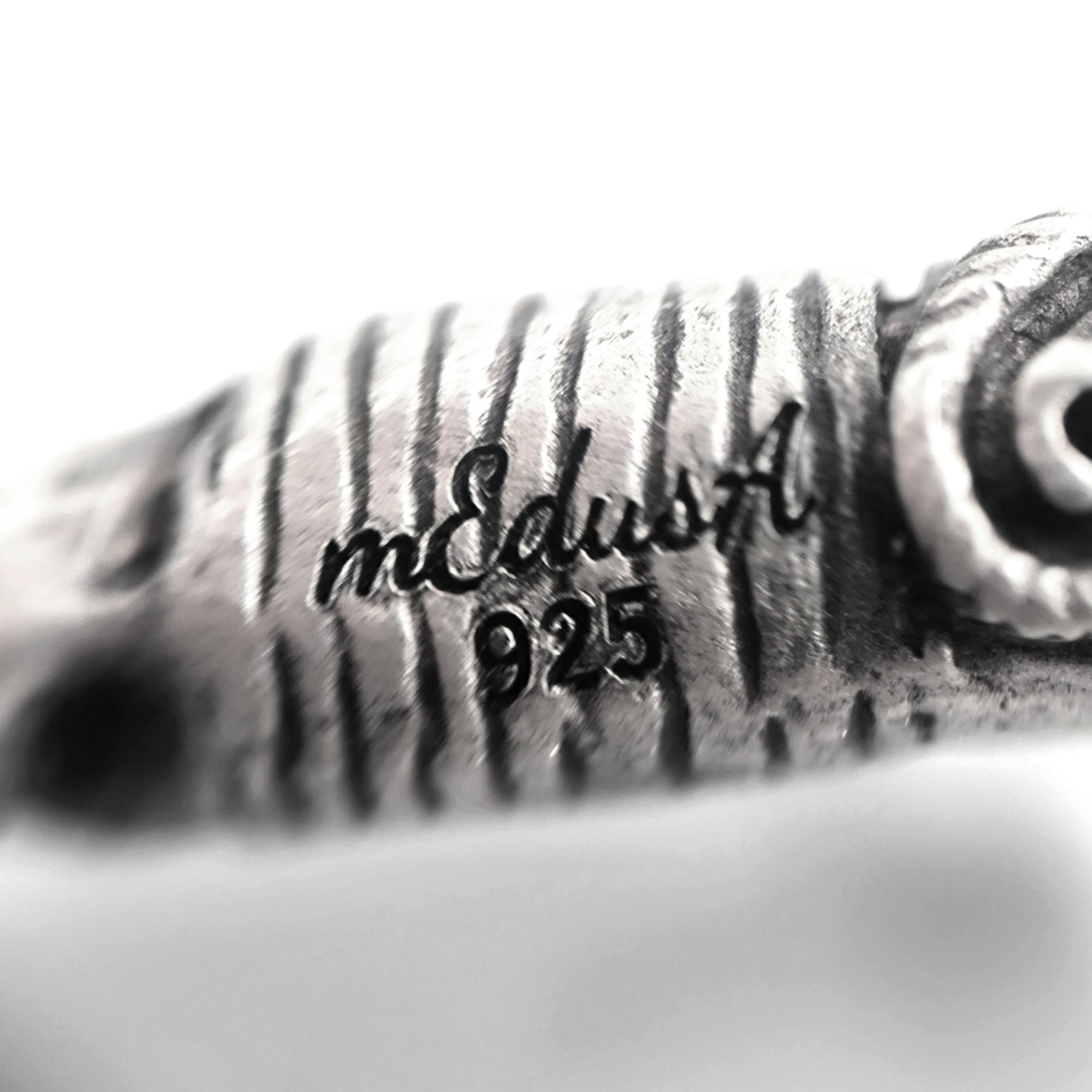 " Koç Başlı Antik Bileziğimiz! " Asalet ve gücün sembolü koçbaşları bir çok antik medeniyetin mücevherlerinde kullanılmıştır. Antik stil burgu kolları ile bir medusa eseri Gümüş koç başı bilekliğimiz !