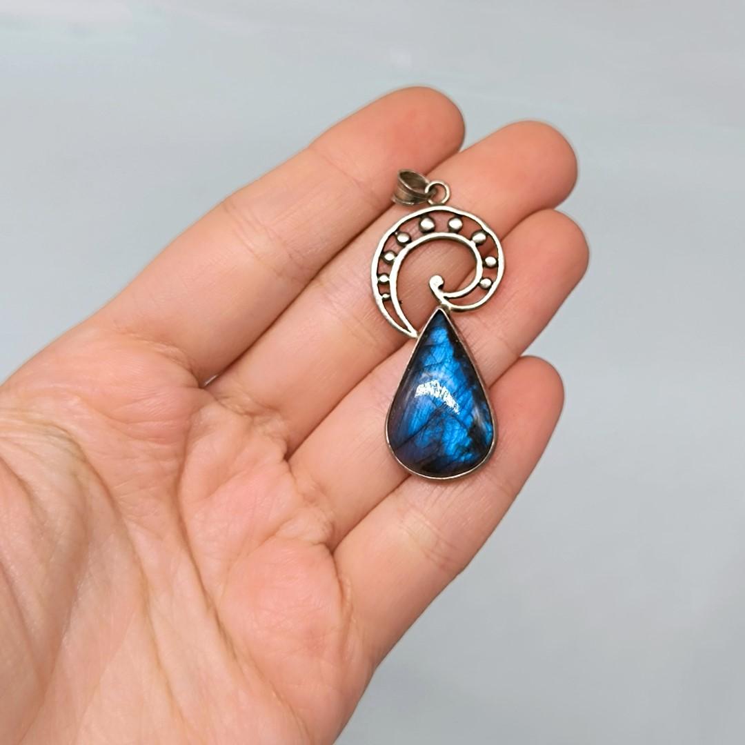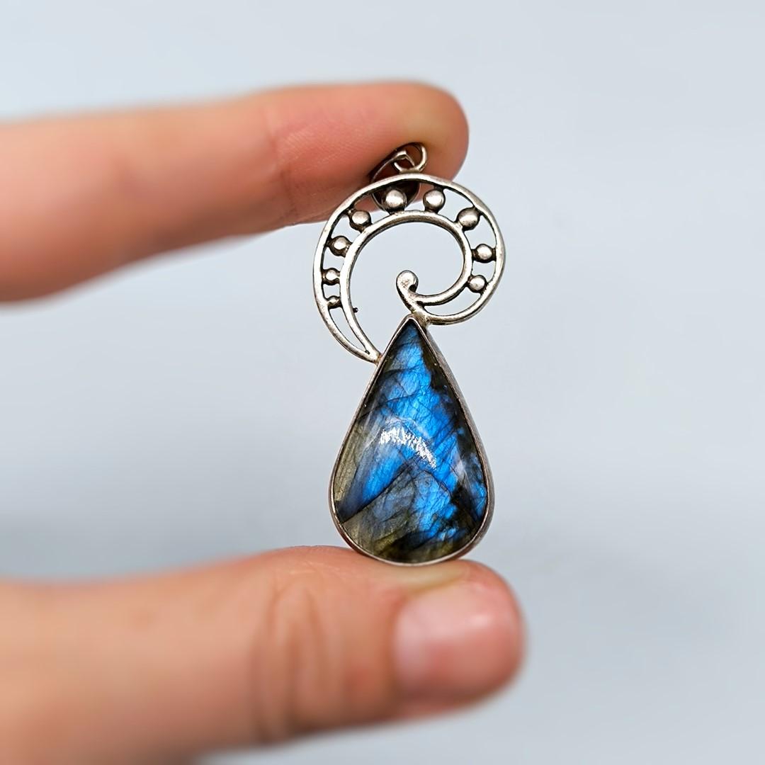 LABRADORİT TAŞ TASARIMLI GÜMÜŞ KOLYE