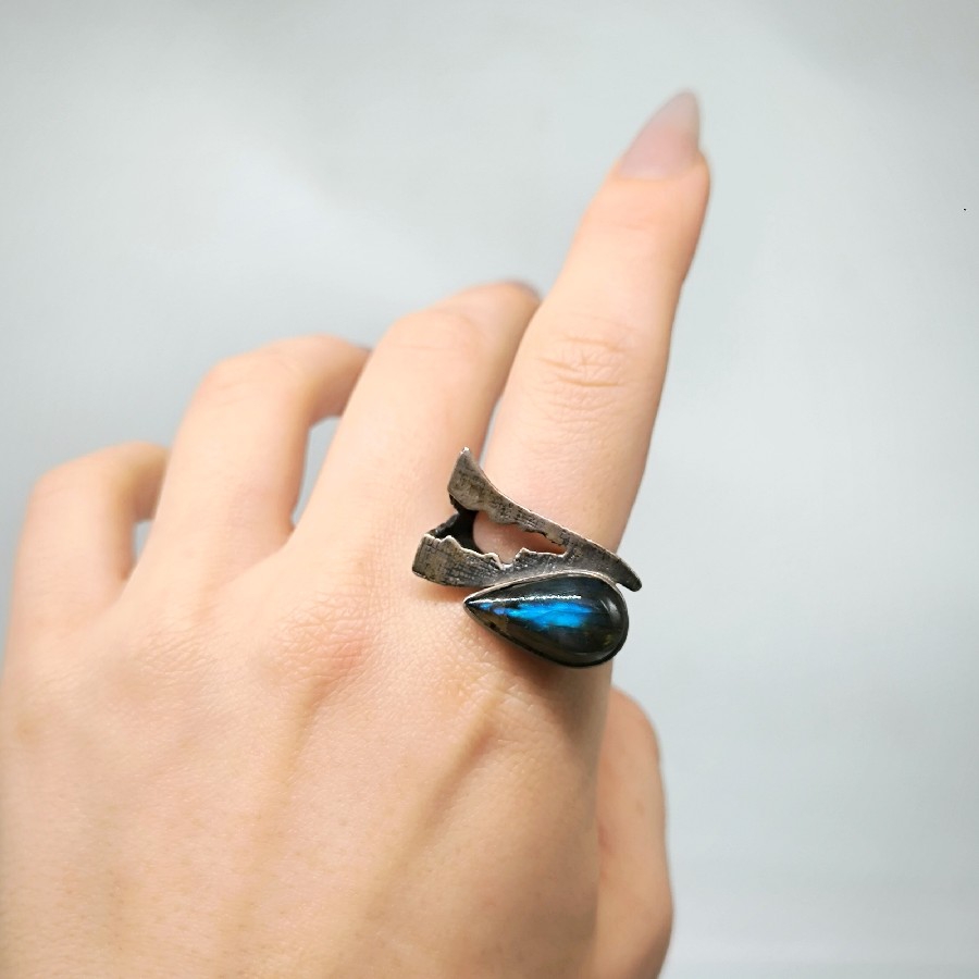 LABRADORİT TAŞ TASARIMLI GÜMÜŞ YÜZÜK