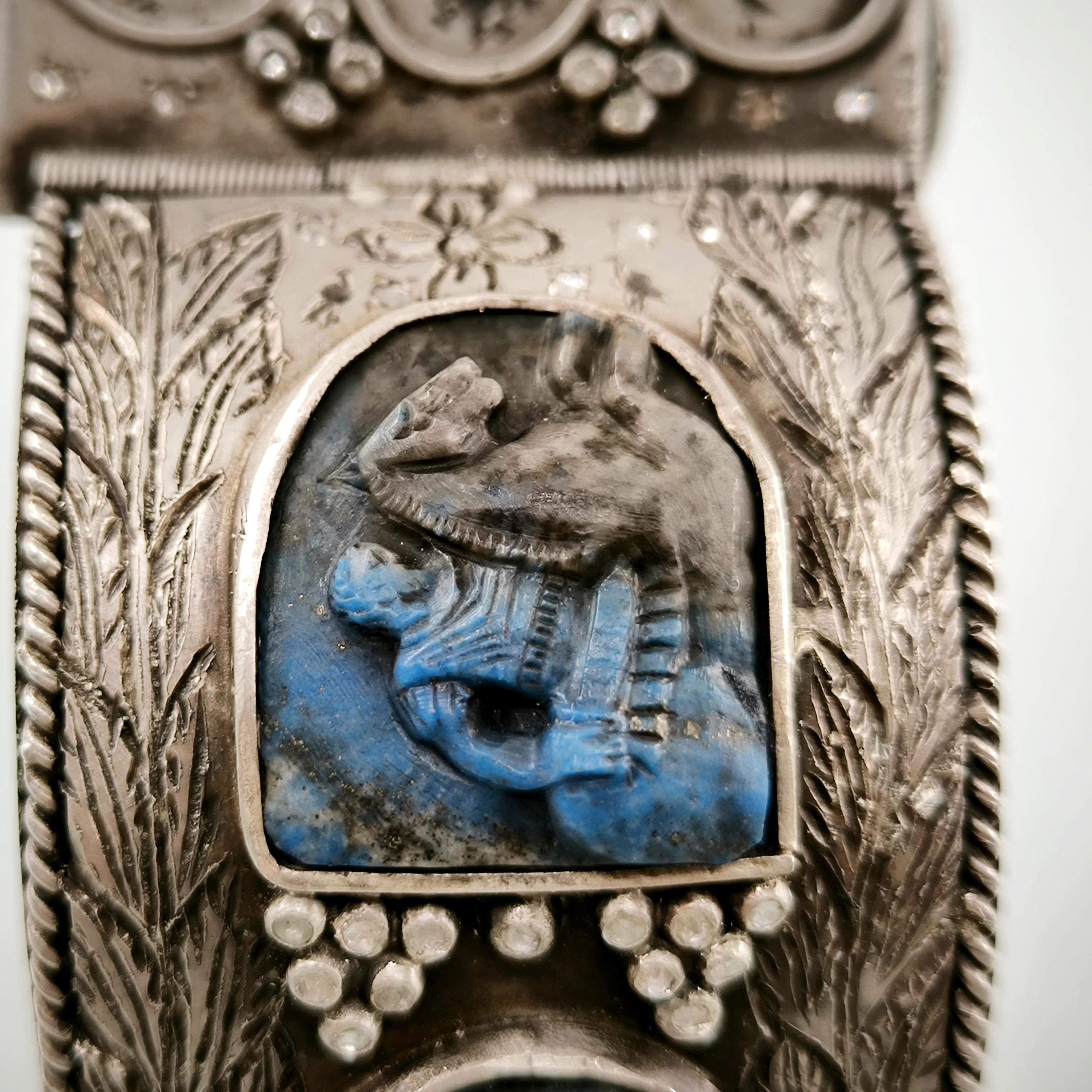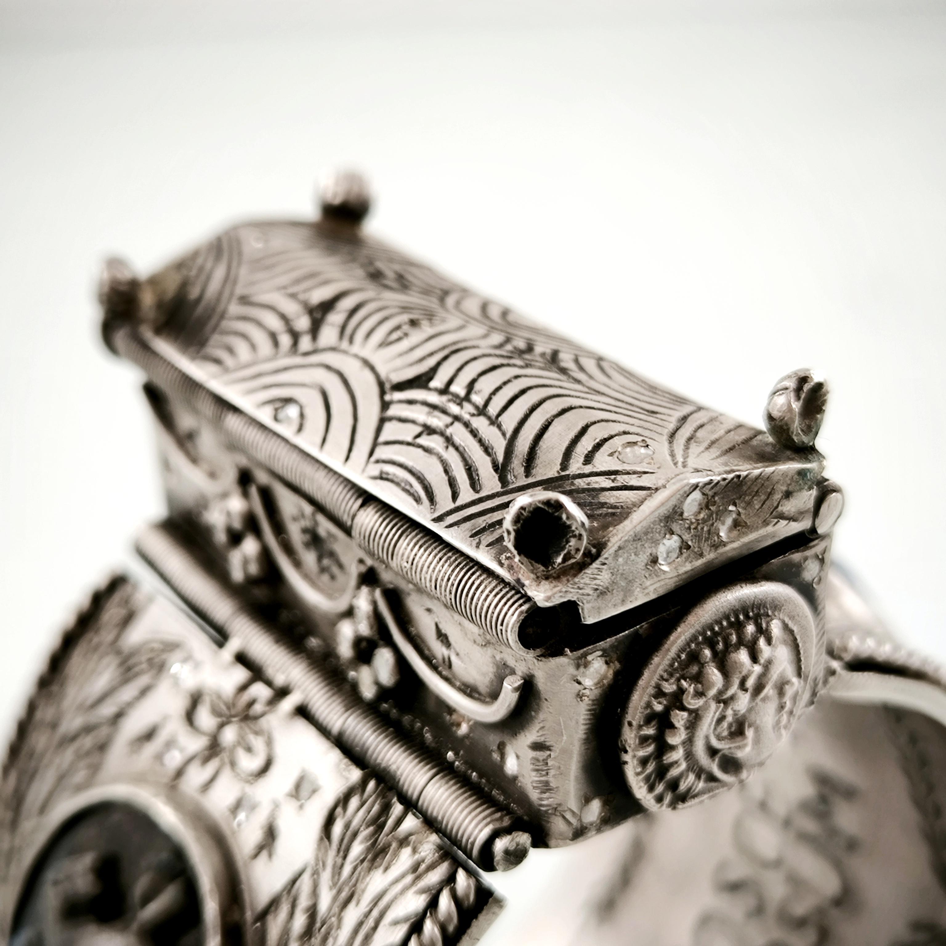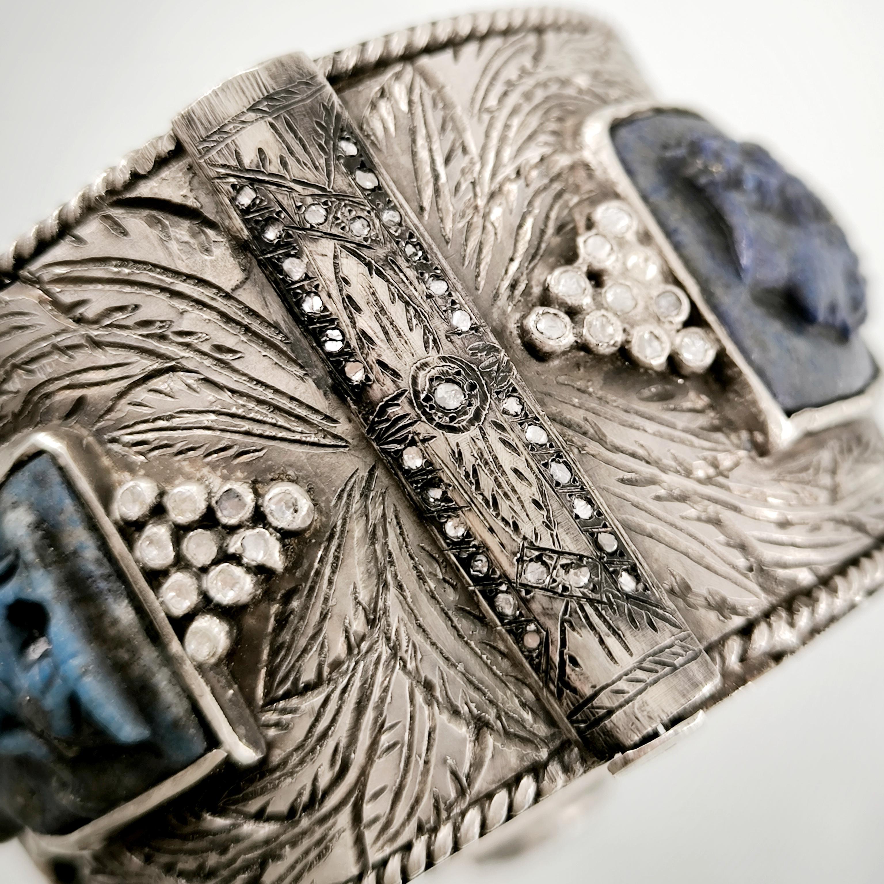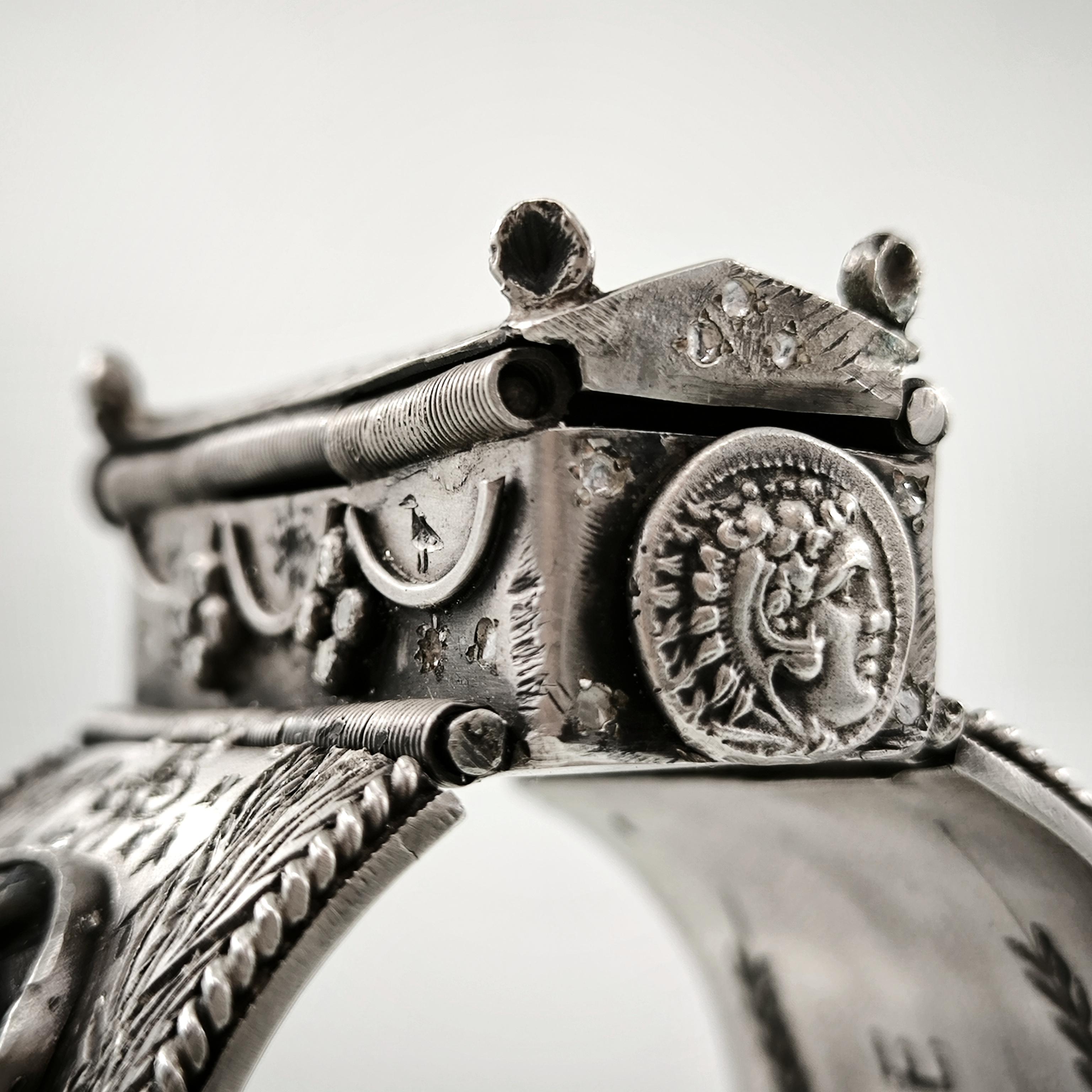 BİR @medusantik TASARIMIDIR. "BÜYÜK İSKENDERİN ONURUNA" LAHİT MEZAR BİLEKLİK! Dünyada eşi ve benzeri olmayan emsalsiz bir marjinal tasarım! Bilekliğin iç kısmında Antik dünyadan günümüze ulaşan özel antik sözler bulunmaktadır. Bu sözlerden birisi Delphi tapınağının girişinde yazılan "Kendini bil" diğeri ise ünlü Hatay mozaiği üzerindeki "Neşeli ol Hayatını yaşa" sözüdür. ayrıca lahitin alt kısmında Büyük İskender'in mermer heykelinin gravürü bulunmaktadır. Bilekliğin kenar kısımlarında ise çerçeveler içindeki Lapis taşlar üzerine kabartma cameo işçiliğinde Büyük İskender'in portreleri yer almaktadır, Lahitin içinde ise tamamen kemikten işlediğimiz Büyük iskenderin, terakota içerisinde kemik olmuş cansız bedeni bulunmaktadır. Eserimiz de yapılan her bir dokunuş baştan sona el işçiliğidir! Işığın değdiği hemen her yere toplam 1.70 crt elmas taşlarla süslediğimiz eşsiz, emsalsiz ve marjinal bir esere dönüştürdüğümüz, Medusa imzalı Lahit Bileklik! Ayrıca bilekliğimize özel lahit formunda ahşap sandık çalıştık! ve üzerini piton derisi ile kapladığımız, iç kısmı ise özel kadife döşemeli oyma yuvası ile muhafa edilerek gönderilecektir. Yapım süreci ve kurgusu aylarca süren bu çok değerli eser için Keyifli Seyirler dilerim! (345 gr.) (925 ayar gümüş) (1.70 crt H/VS diamond)