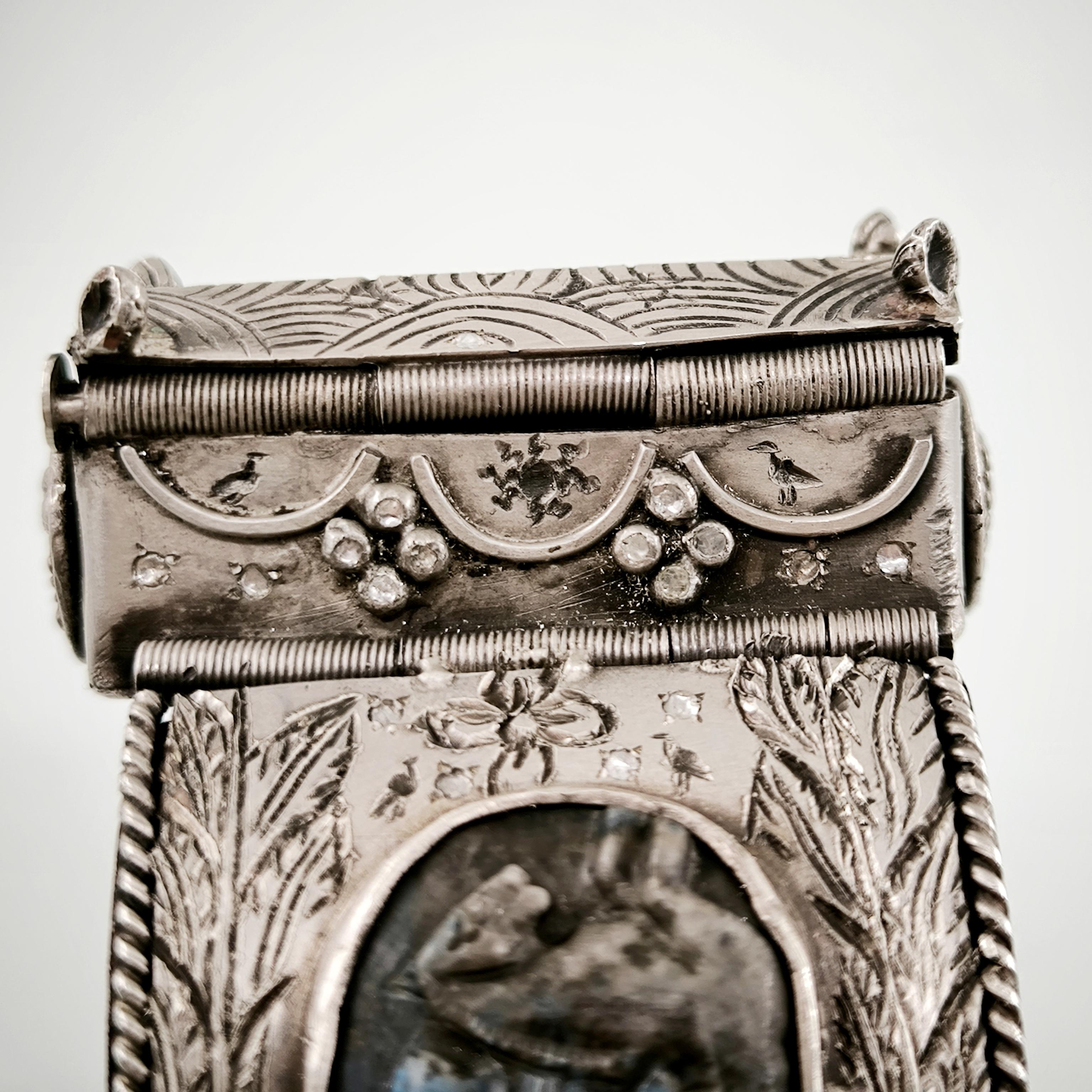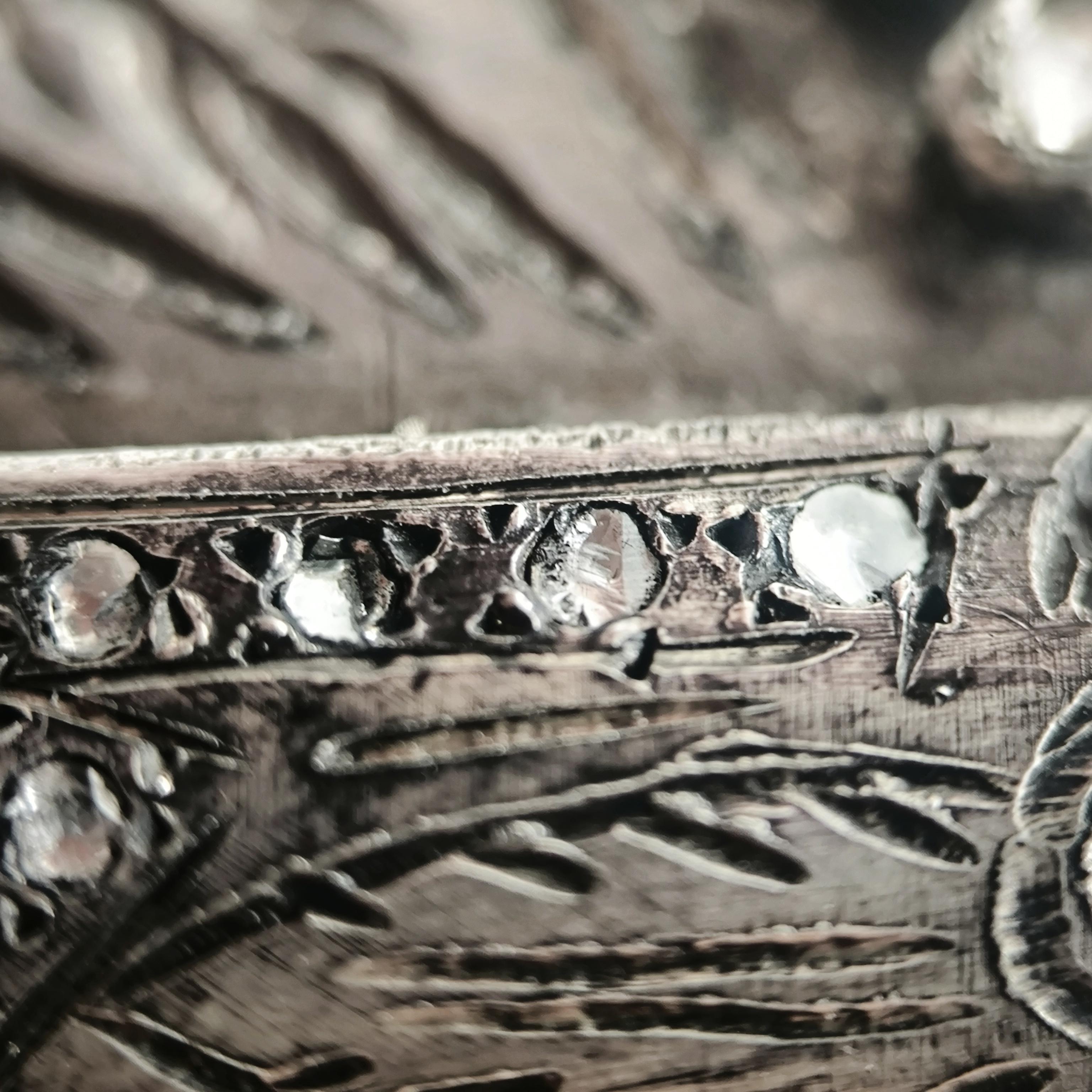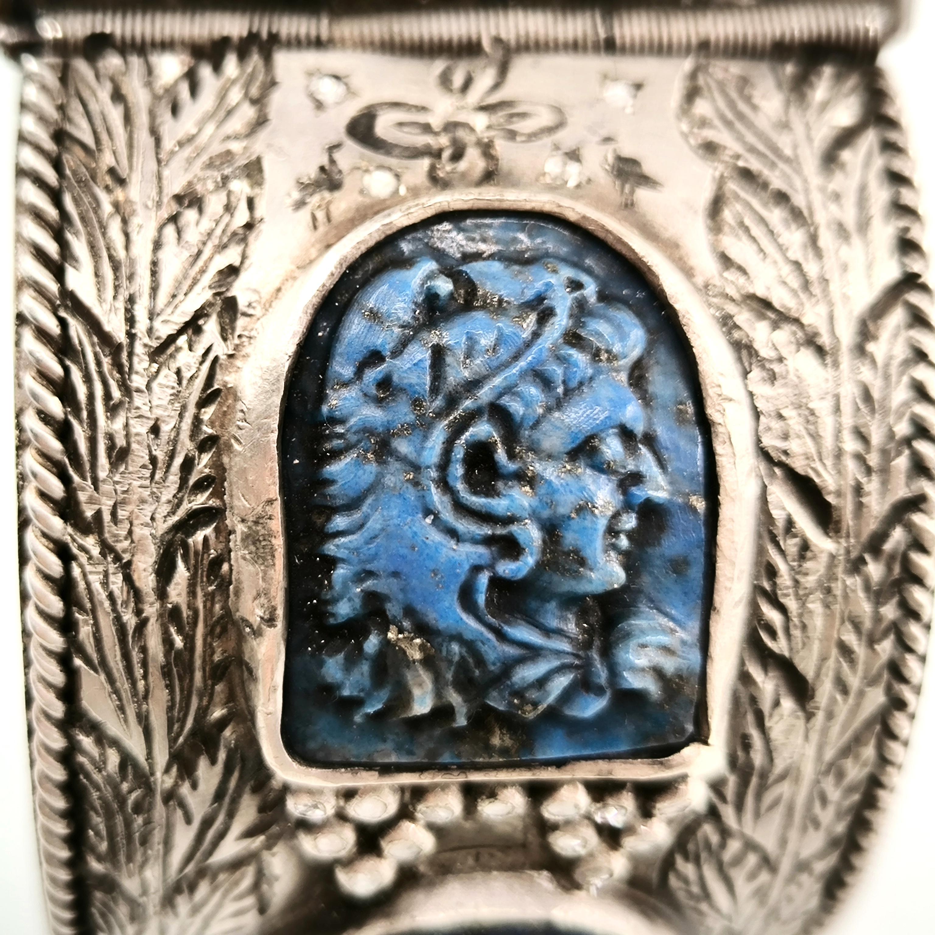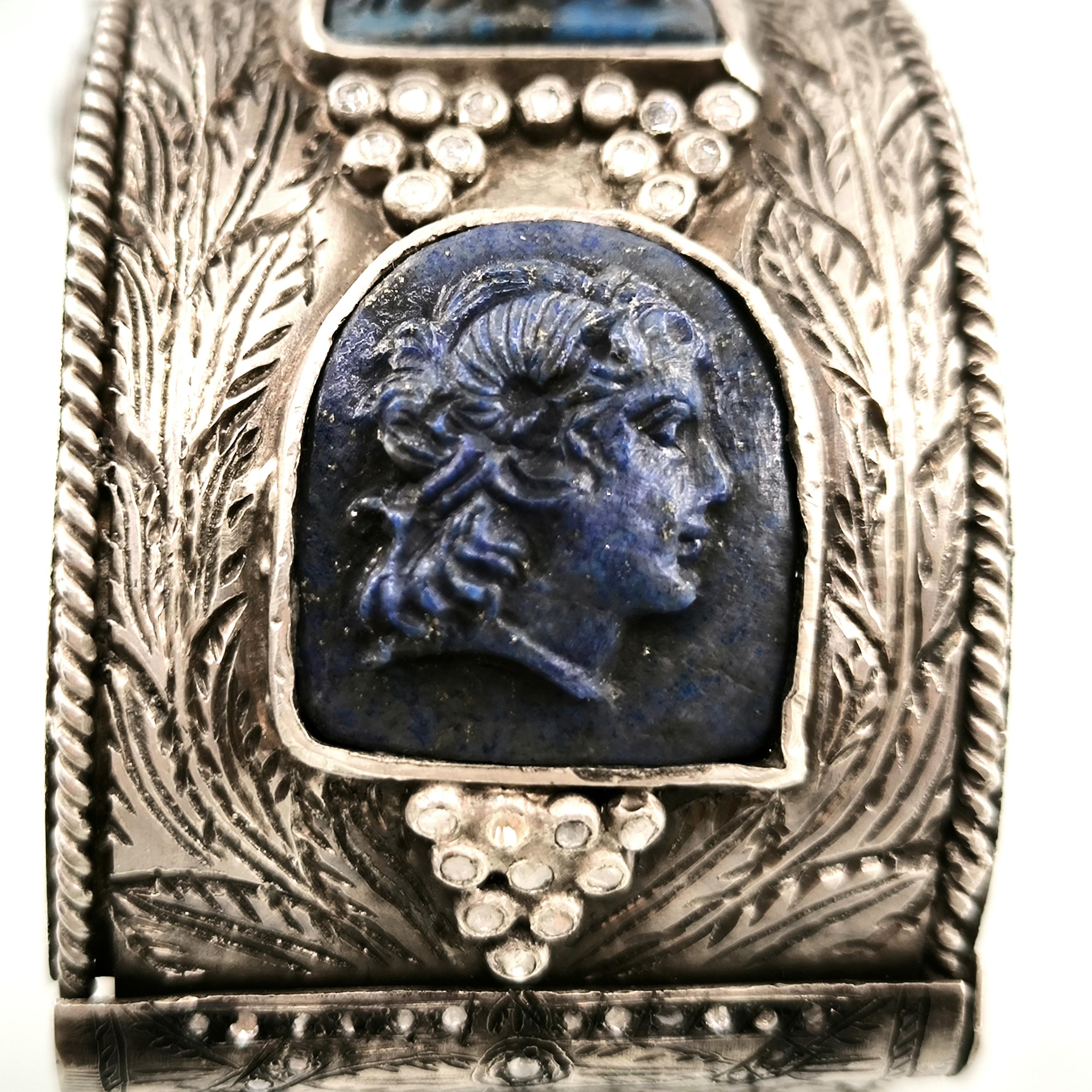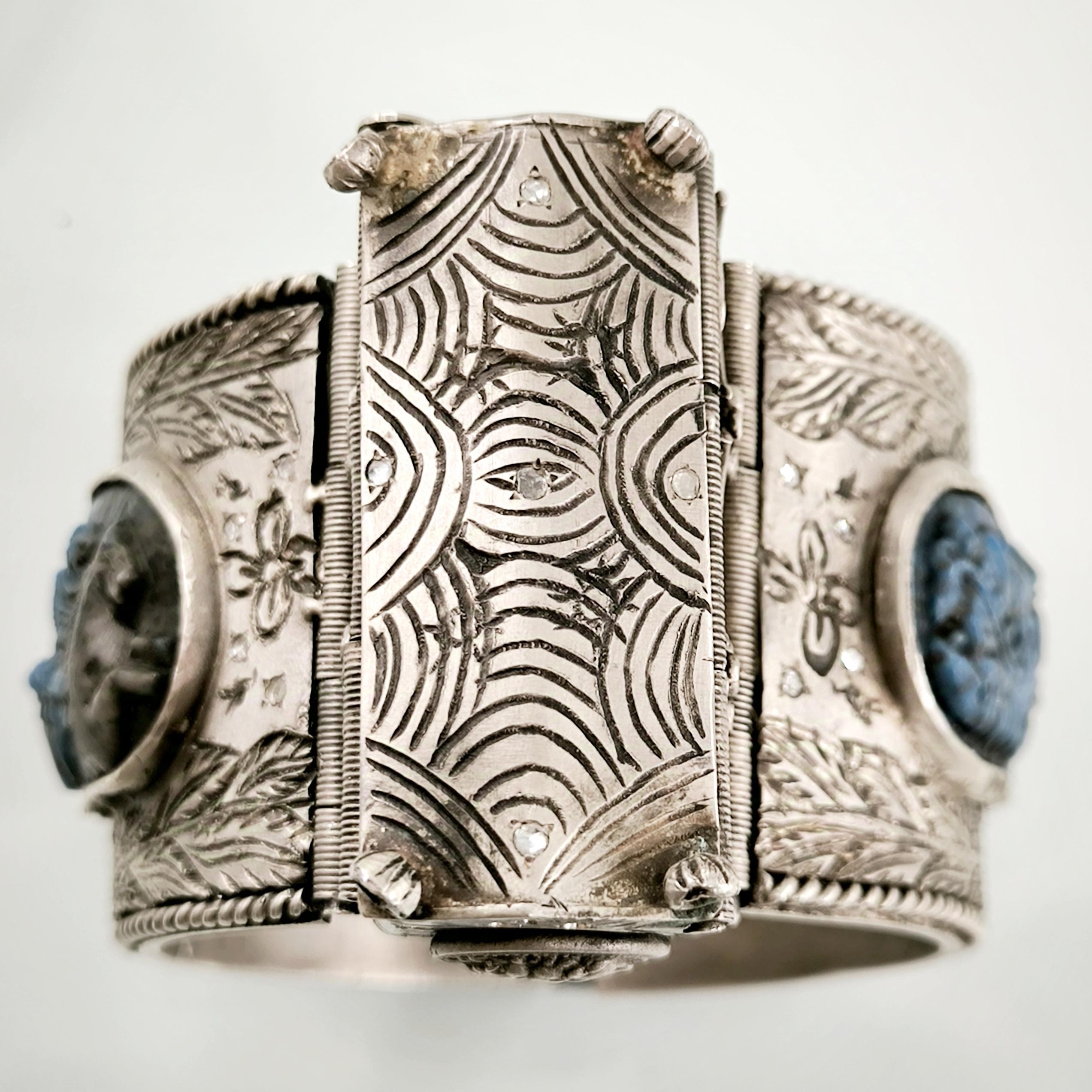 BİR @medusantik TASARIMIDIR. "BÜYÜK İSKENDERİN ONURUNA" LAHİT MEZAR BİLEKLİK! Dünyada eşi ve benzeri olmayan emsalsiz bir marjinal tasarım! Bilekliğin iç kısmında Antik dünyadan günümüze ulaşan özel antik sözler bulunmaktadır. Bu sözlerden birisi Delphi tapınağının girişinde yazılan "Kendini bil" diğeri ise ünlü Hatay mozaiği üzerindeki "Neşeli ol Hayatını yaşa" sözüdür. ayrıca lahitin alt kısmında Büyük İskender'in mermer heykelinin gravürü bulunmaktadır. Bilekliğin kenar kısımlarında ise çerçeveler içindeki Lapis taşlar üzerine kabartma cameo işçiliğinde Büyük İskender'in portreleri yer almaktadır, Lahitin içinde ise tamamen kemikten işlediğimiz Büyük iskenderin, terakota içerisinde kemik olmuş cansız bedeni bulunmaktadır. Eserimiz de yapılan her bir dokunuş baştan sona el işçiliğidir! Işığın değdiği hemen her yere toplam 1.70 crt elmas taşlarla süslediğimiz eşsiz, emsalsiz ve marjinal bir esere dönüştürdüğümüz, Medusa imzalı Lahit Bileklik! Ayrıca bilekliğimize özel lahit formunda ahşap sandık çalıştık! ve üzerini piton derisi ile kapladığımız, iç kısmı ise özel kadife döşemeli oyma yuvası ile muhafa edilerek gönderilecektir. Yapım süreci ve kurgusu aylarca süren bu çok değerli eser için Keyifli Seyirler dilerim! (345 gr.) (925 ayar gümüş) (1.70 crt H/VS diamond)