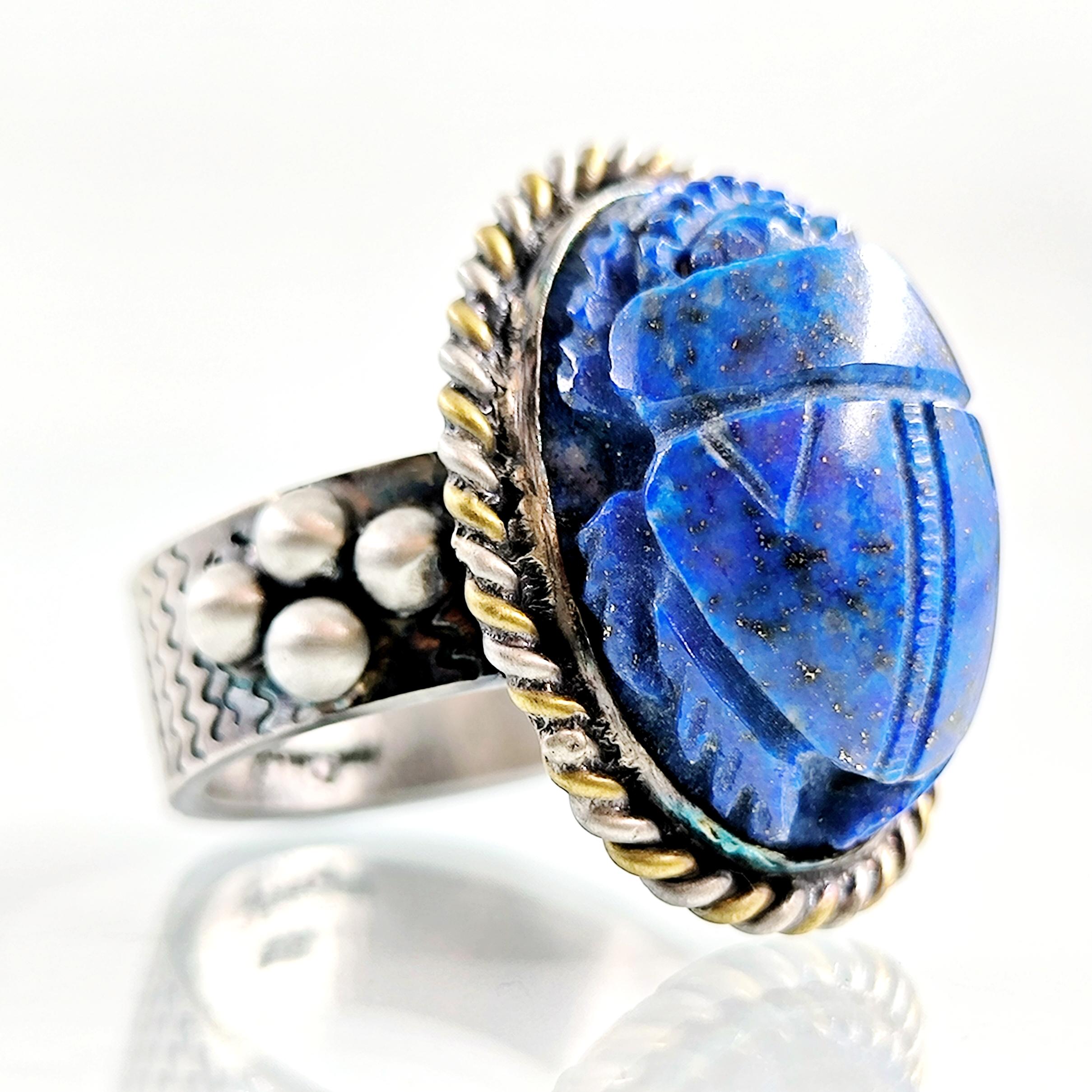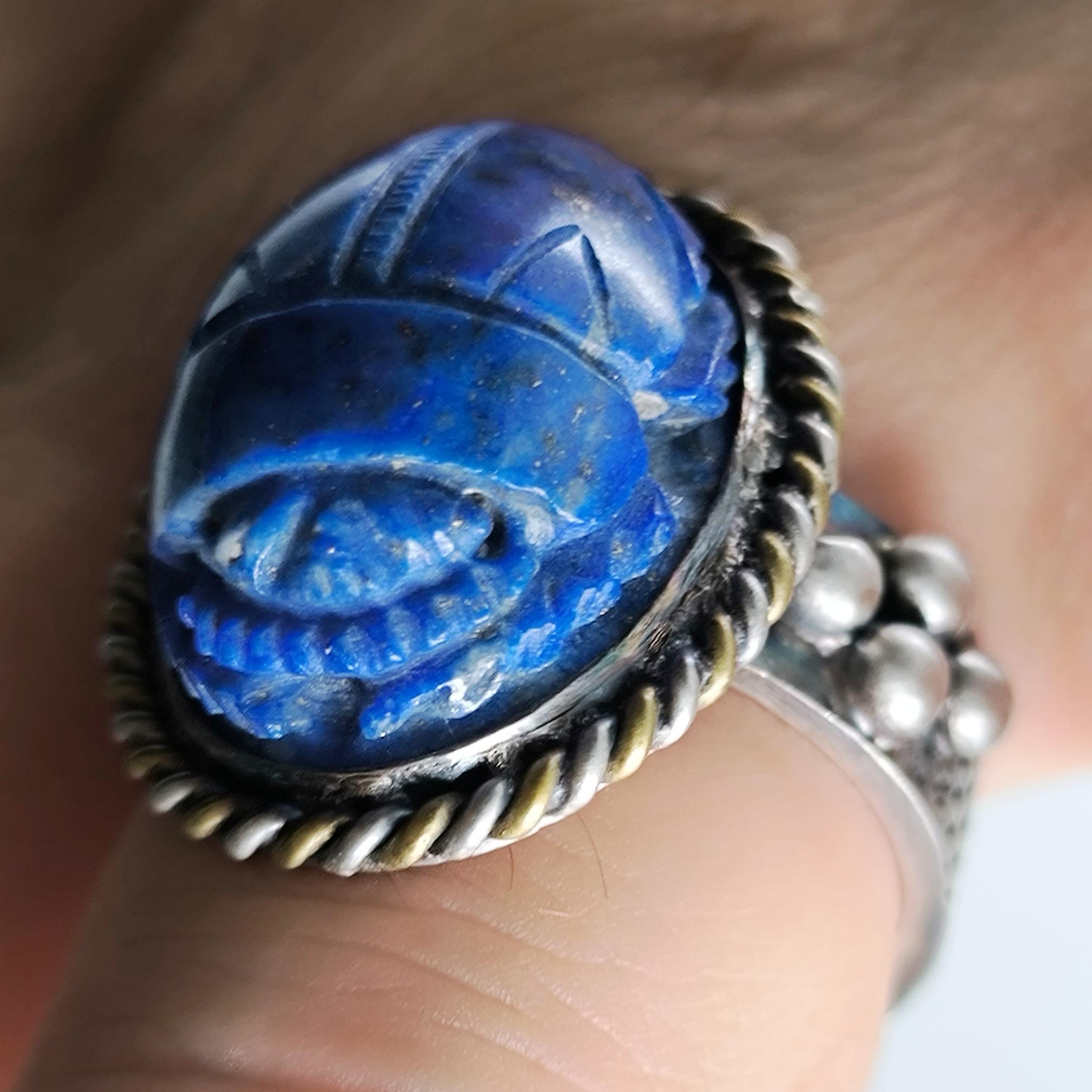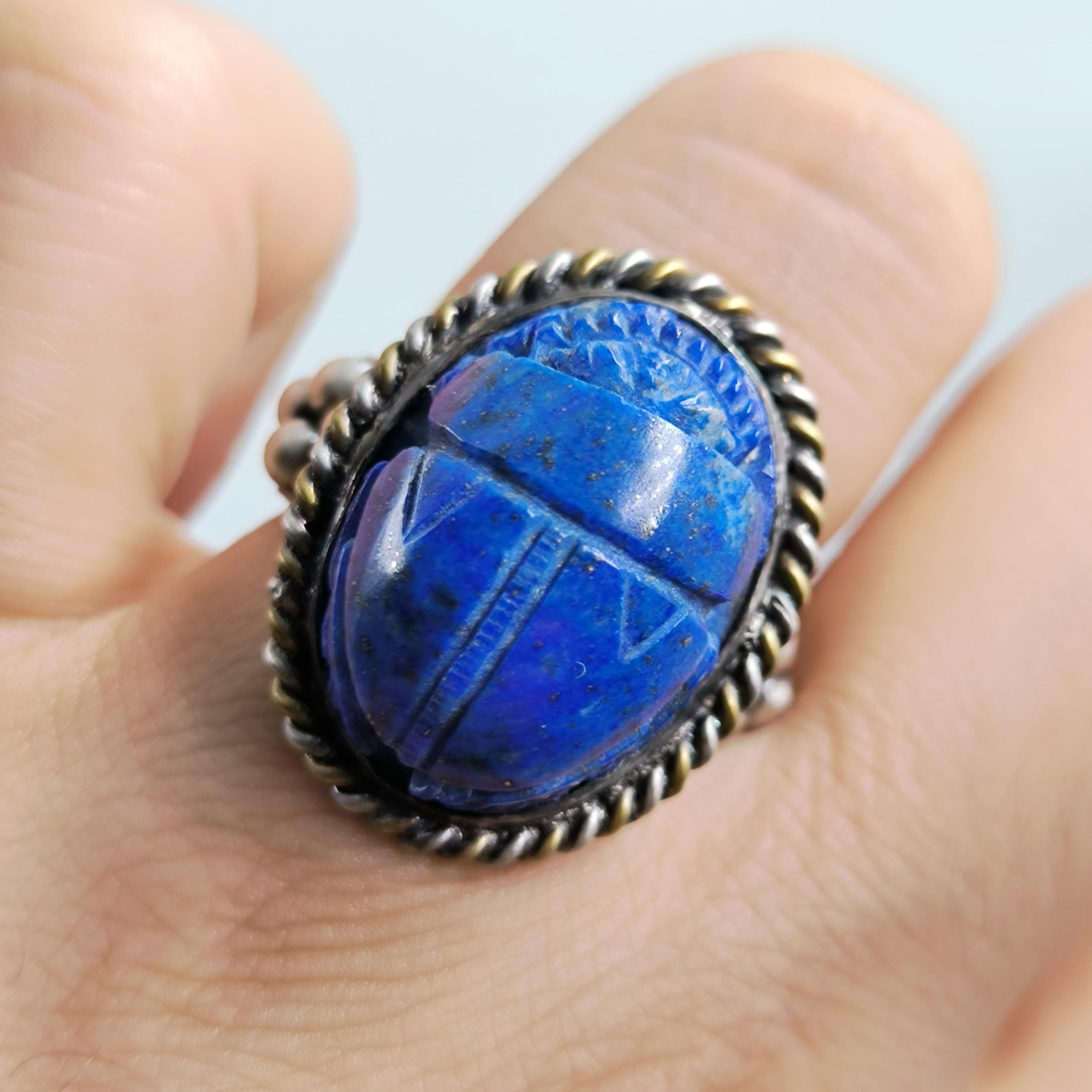 MISIR’IN GÖKYÜZÜNE BAKAN KALBİ – LAPİS SCARAB 925 AYAR GÜMÜŞ YÜZÜK