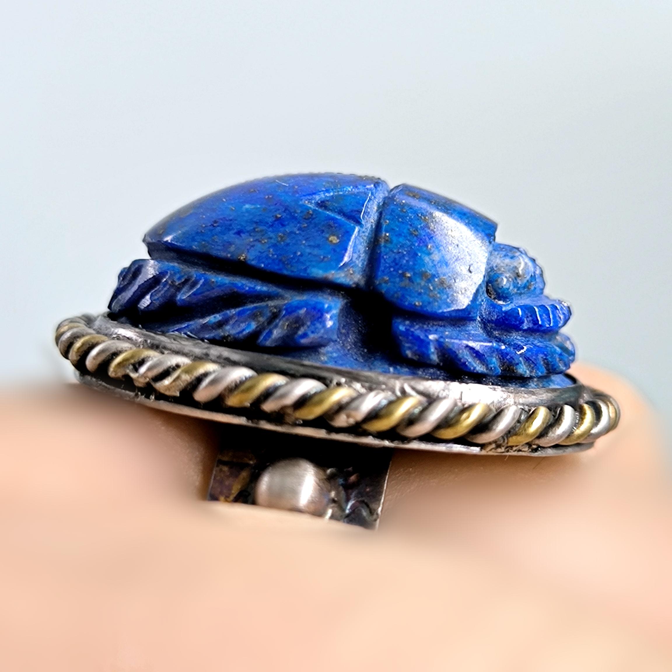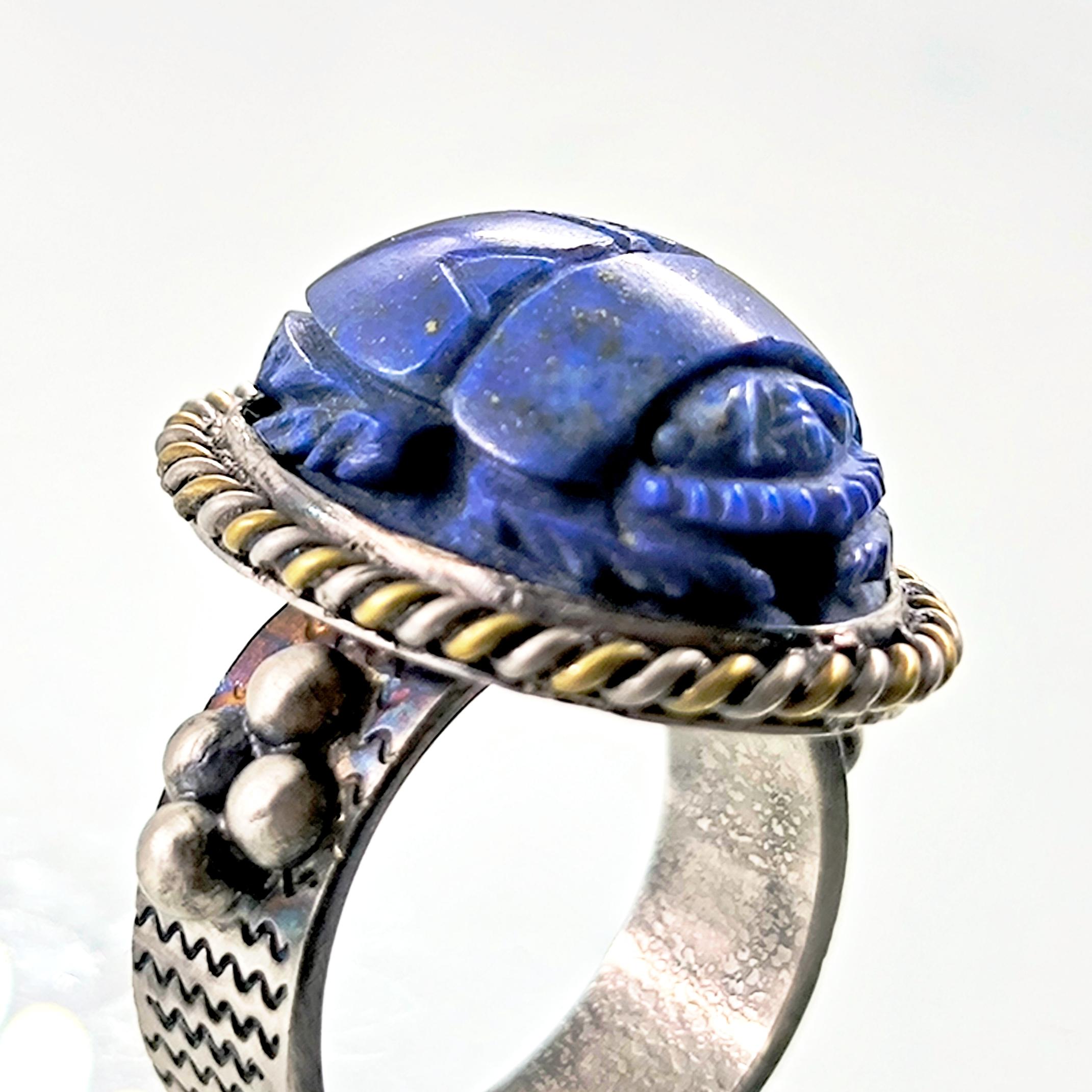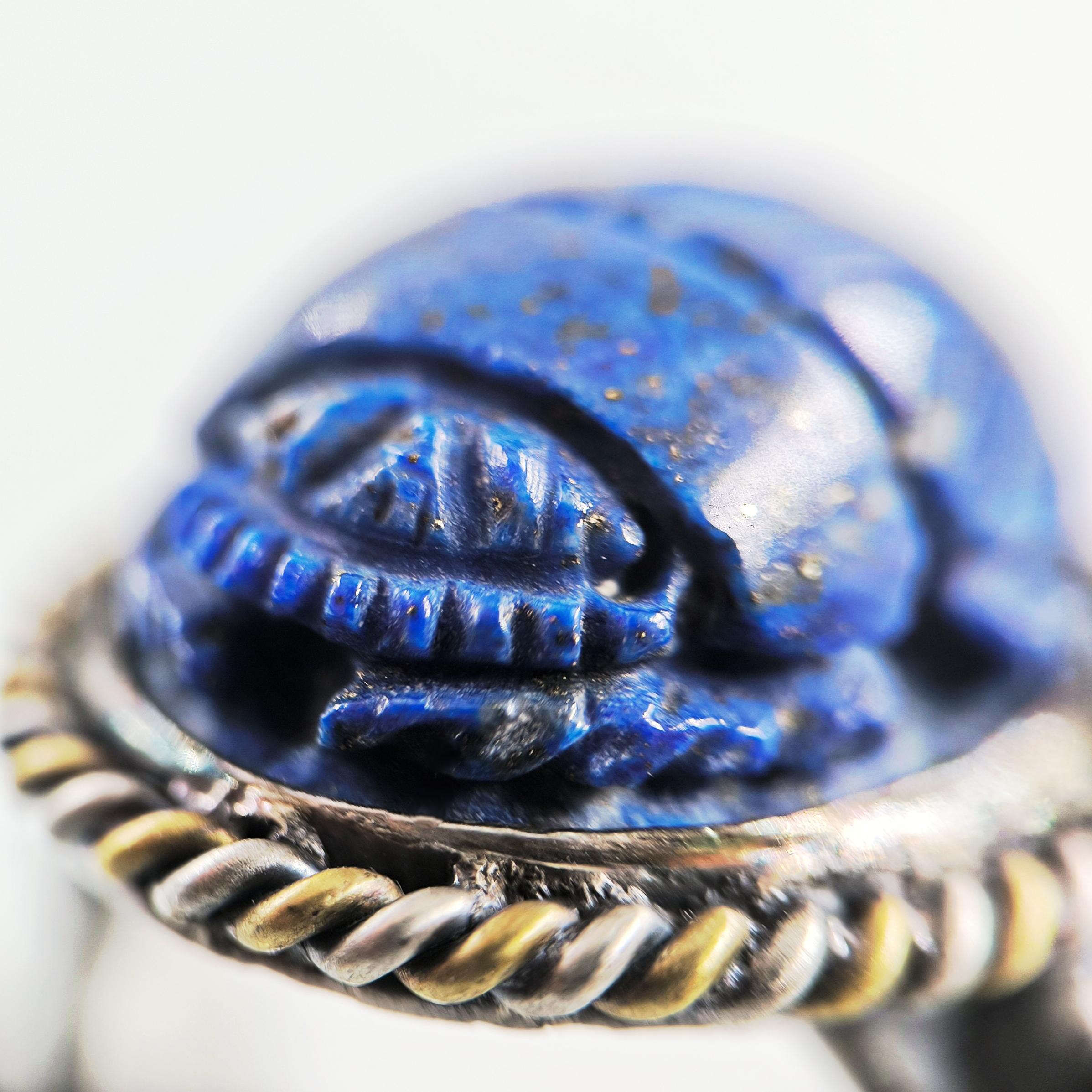 MISIR’IN GÖKYÜZÜNE BAKAN KALBİ – LAPİS SCARAB 925 AYAR GÜMÜŞ YÜZÜK