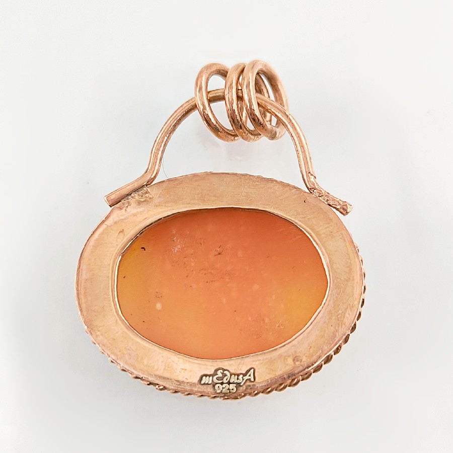 Eşsiz bir Antika Cameo mücevher ! Deniz kabuğu Üzerine "LEYDİ" rölyefi çalışılmış Avrupa yapımı Çerçevesi kendi tasarımımız olan Gümüş üzeri Rose Kaplama cameo kolyemiz! Ölçüler: (4.8x3.6 cm & 12 Gr.)