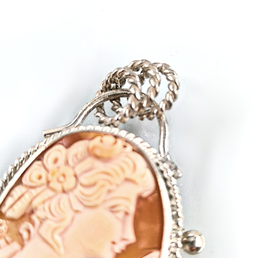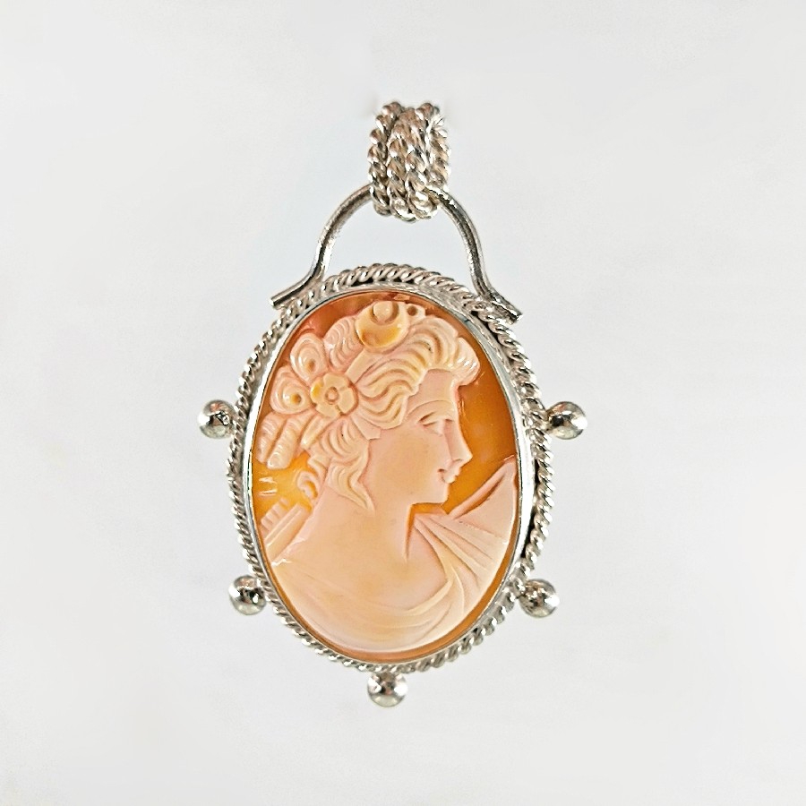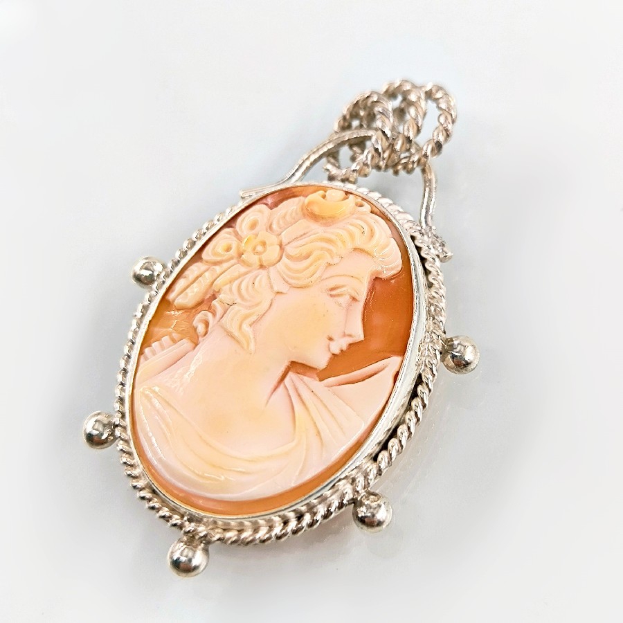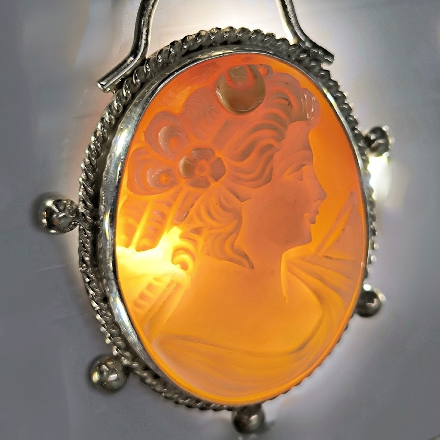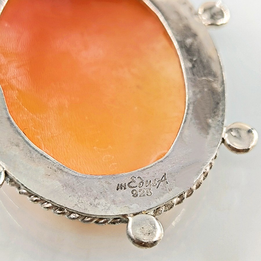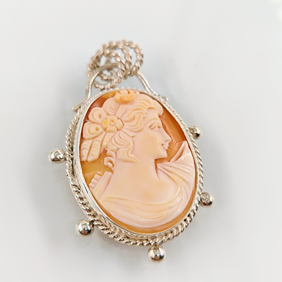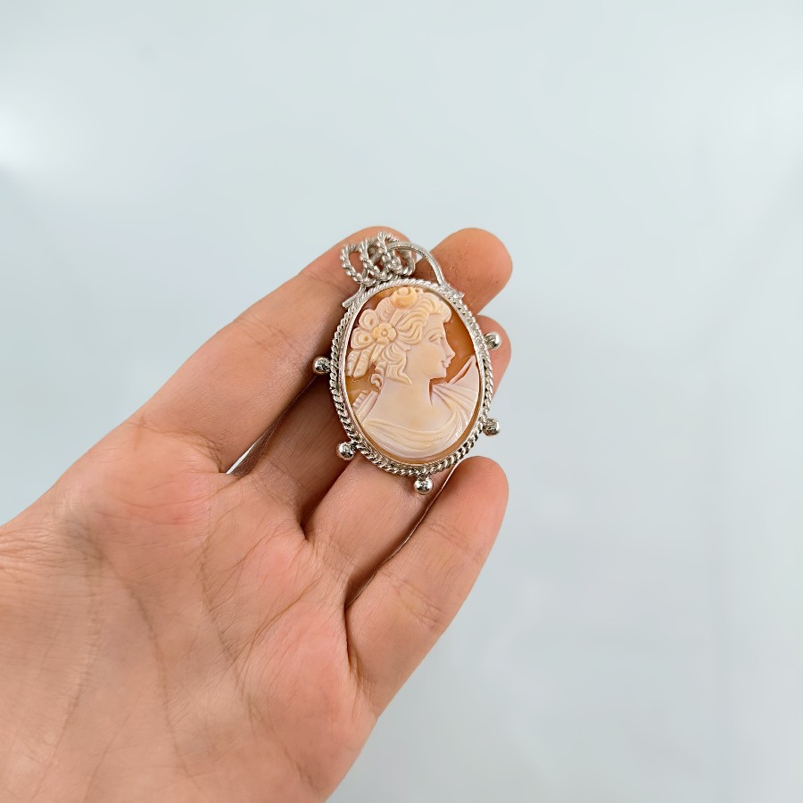 Eşsiz bir Antika Cameo mücevher ! Deniz kabuğu Üzerine "LEYDİ" rölyefi çalışılmış Avrupa yapımı Çerçevesi kendi tasarımımız olan 925 Ayar Gümüş eskitme cameo kolyemiz! Ölçüler: ( 5.4x4.5 cm & 16 Gr.)