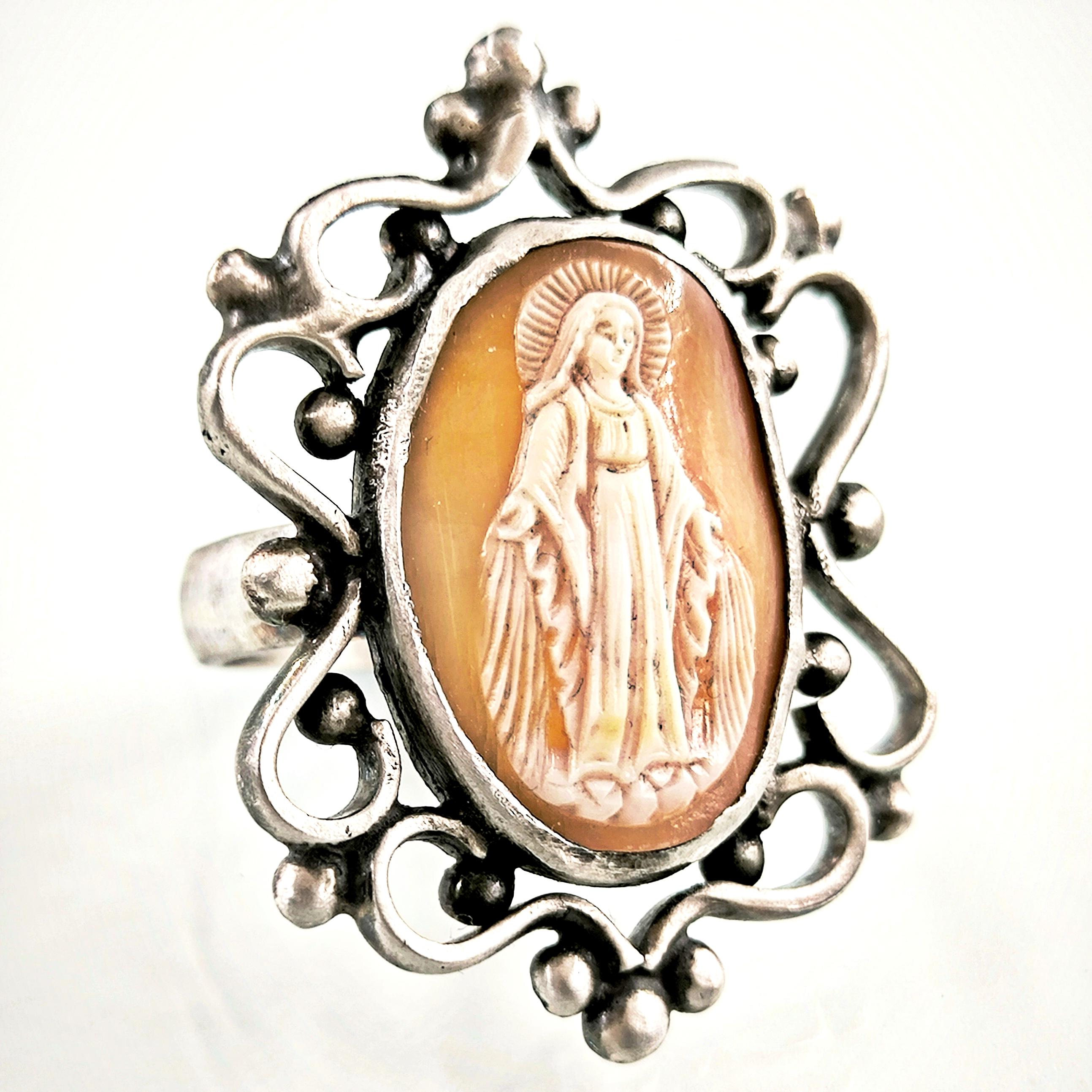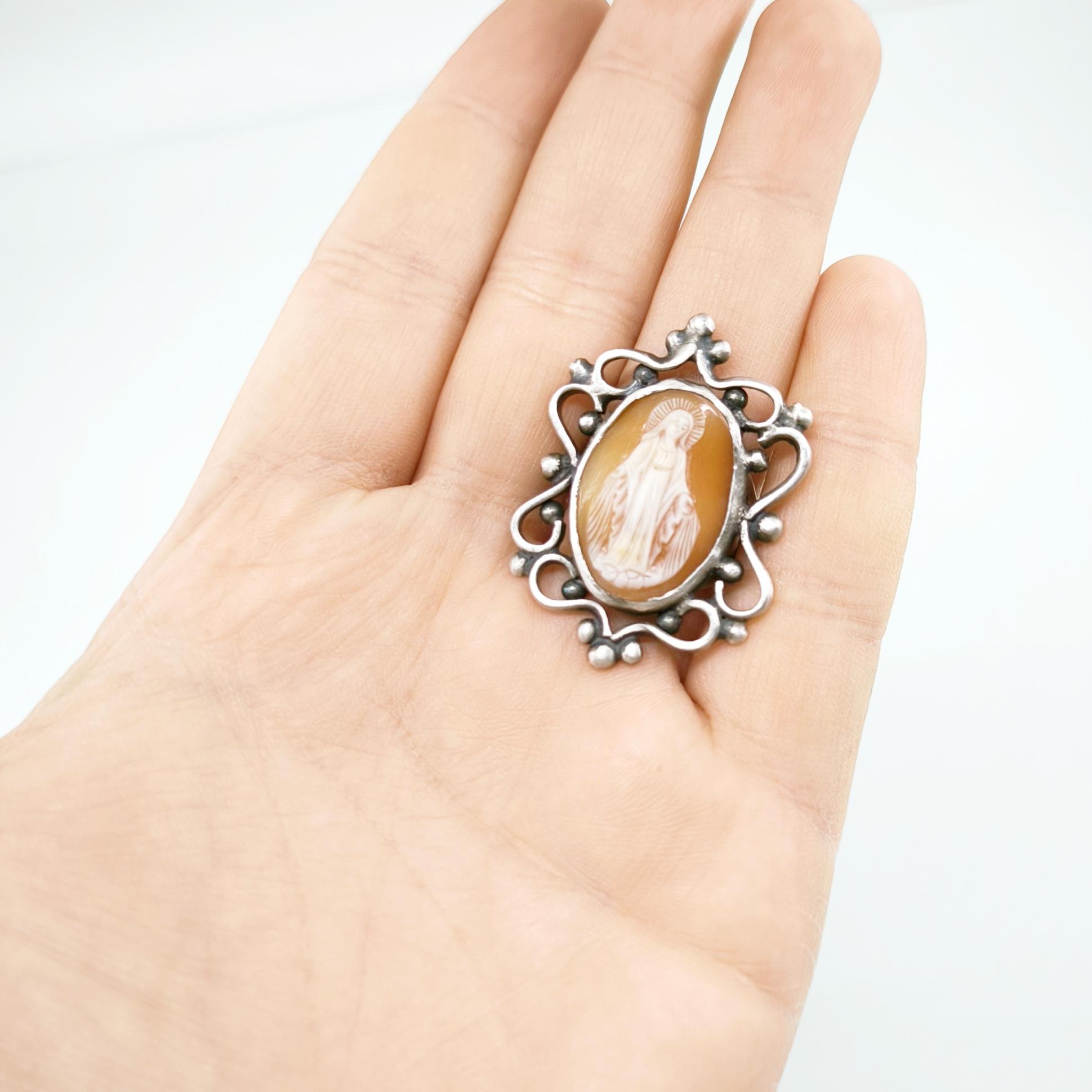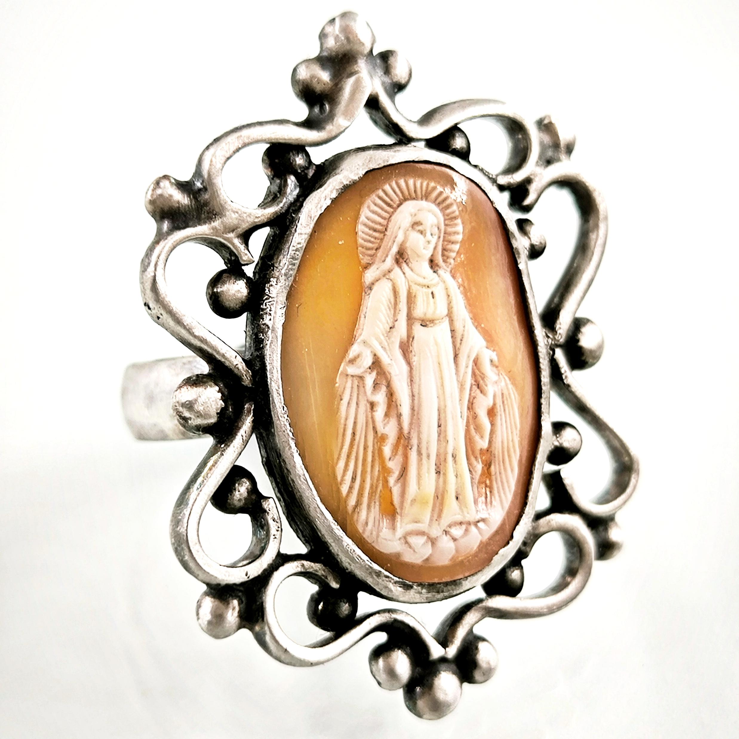 MERYEM ANA TASVİRLİ 925 AYAR GÜMÜŞ ANTİKA CAMEO YÜZÜK