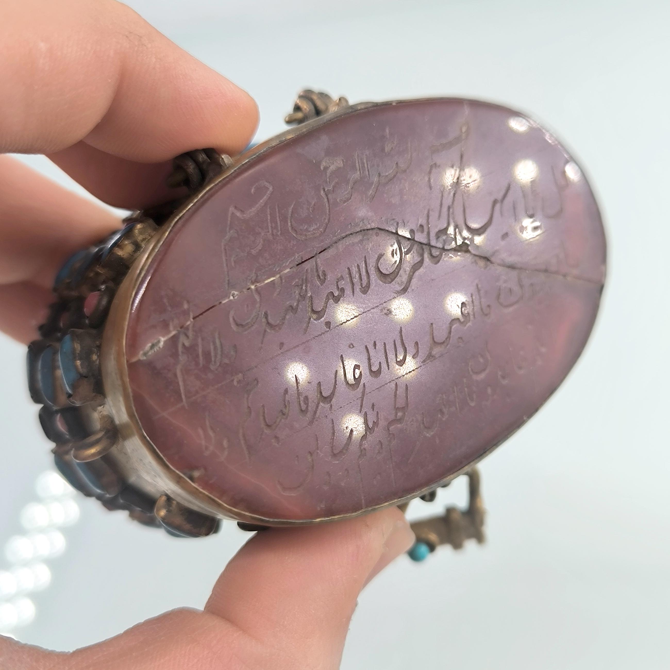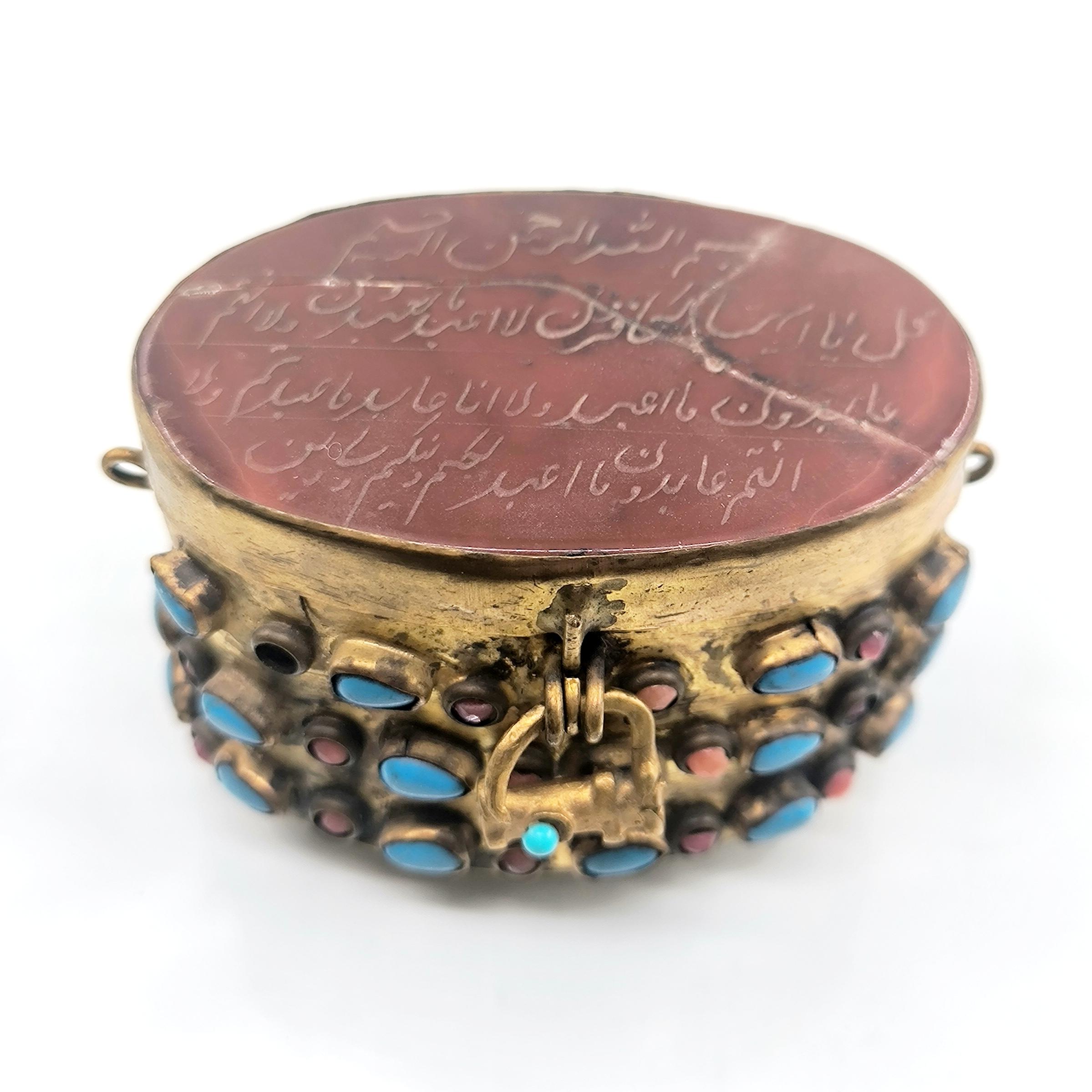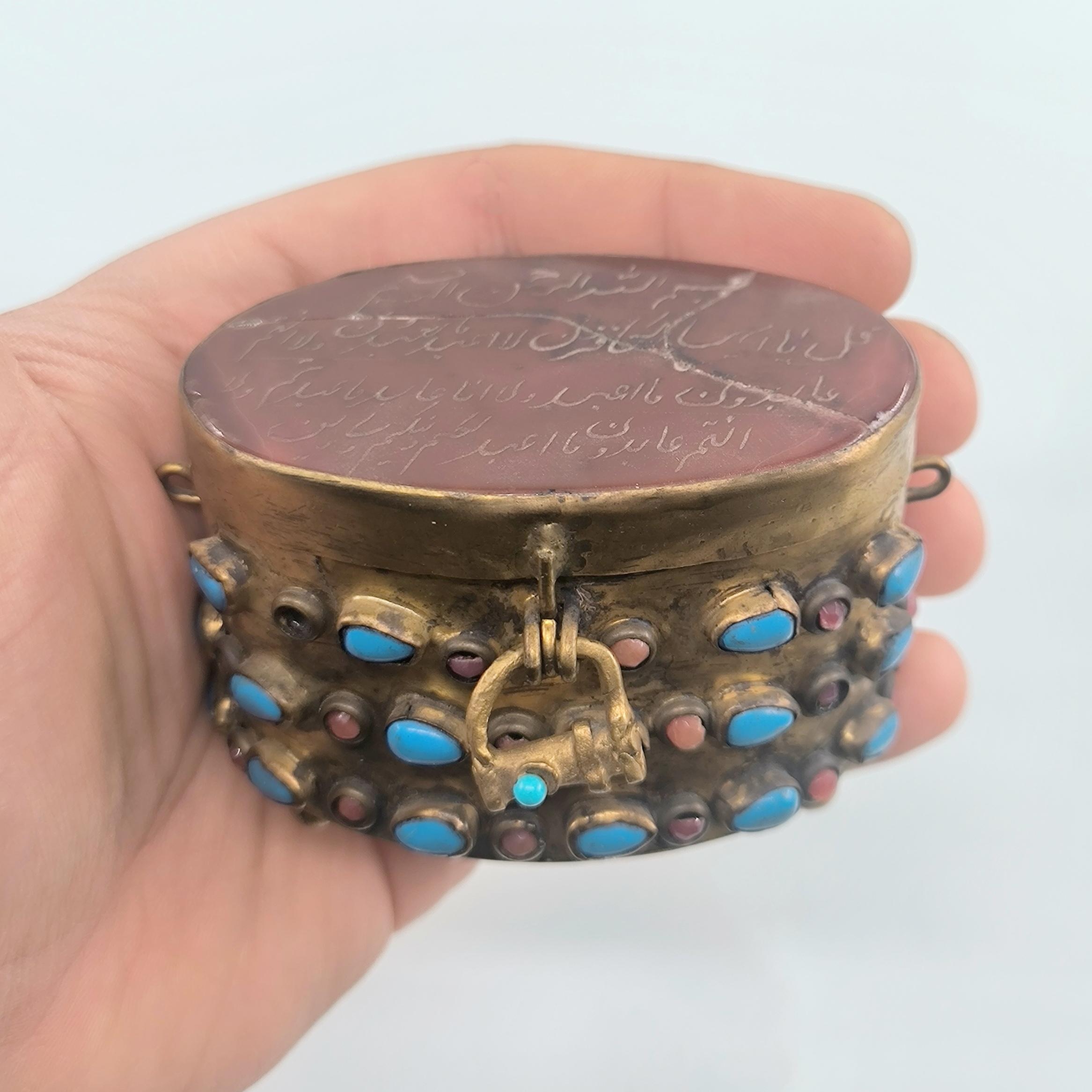 Yakın dönem imalatı, Kapalıçarşı ustalarının elinden çıkan eşsiz bir eser. Her noksanı murassa işçiliği ile süslü, etrafı yarı değerli taşlar ile bezeli, üst kapak taşı ise eski akik üzeri dua kazımalı, topkapı sarayındaki kutsal emanetler bölümünün muhafaza kutularından ilham alınarak tasarlanmış üst düzey görsellikte, içi kadife kaplı, bakır üzeri altın tombak kaplamalı, kilit kısmı kabe anahtarı formunda dizayn edilmiş, murassa kutu obje.