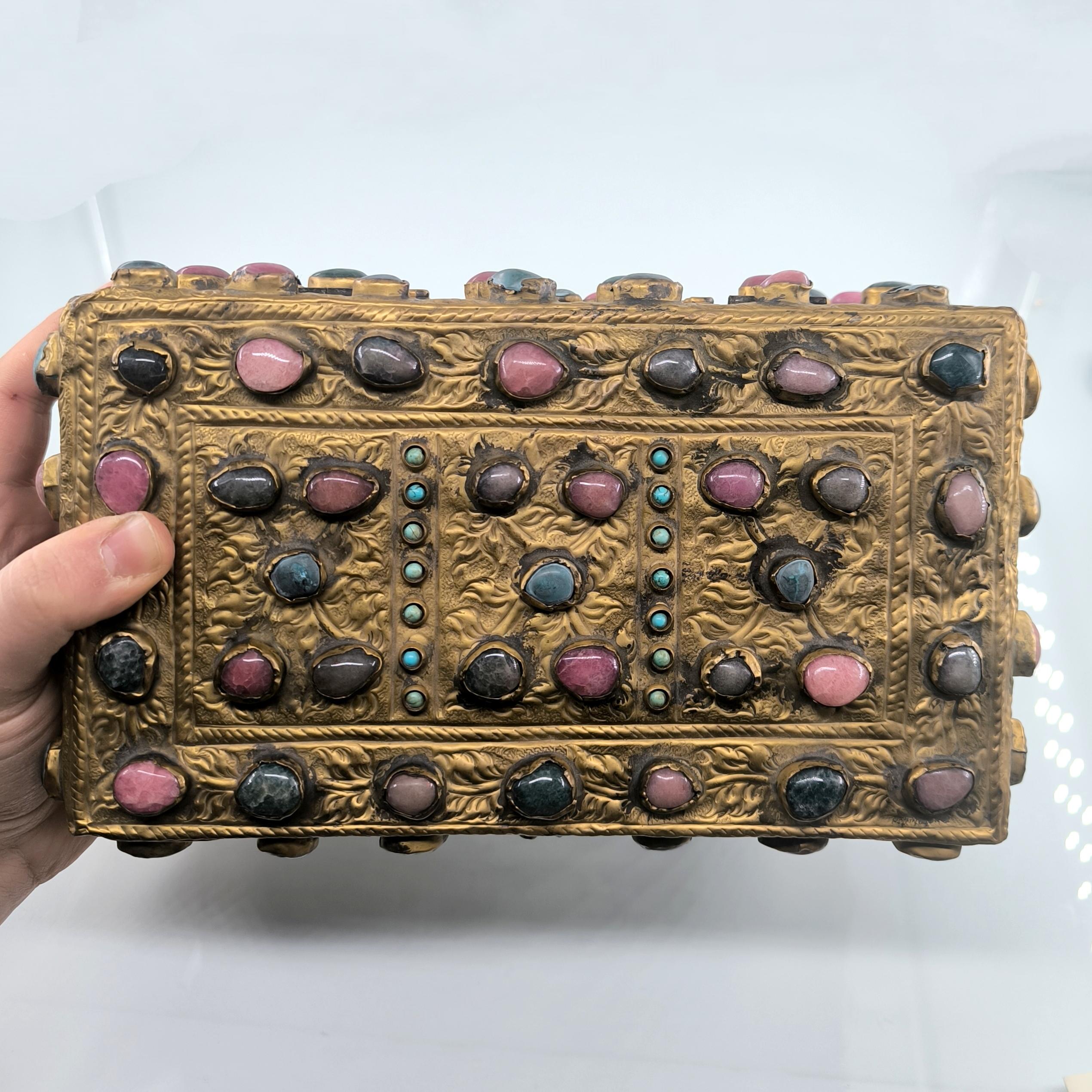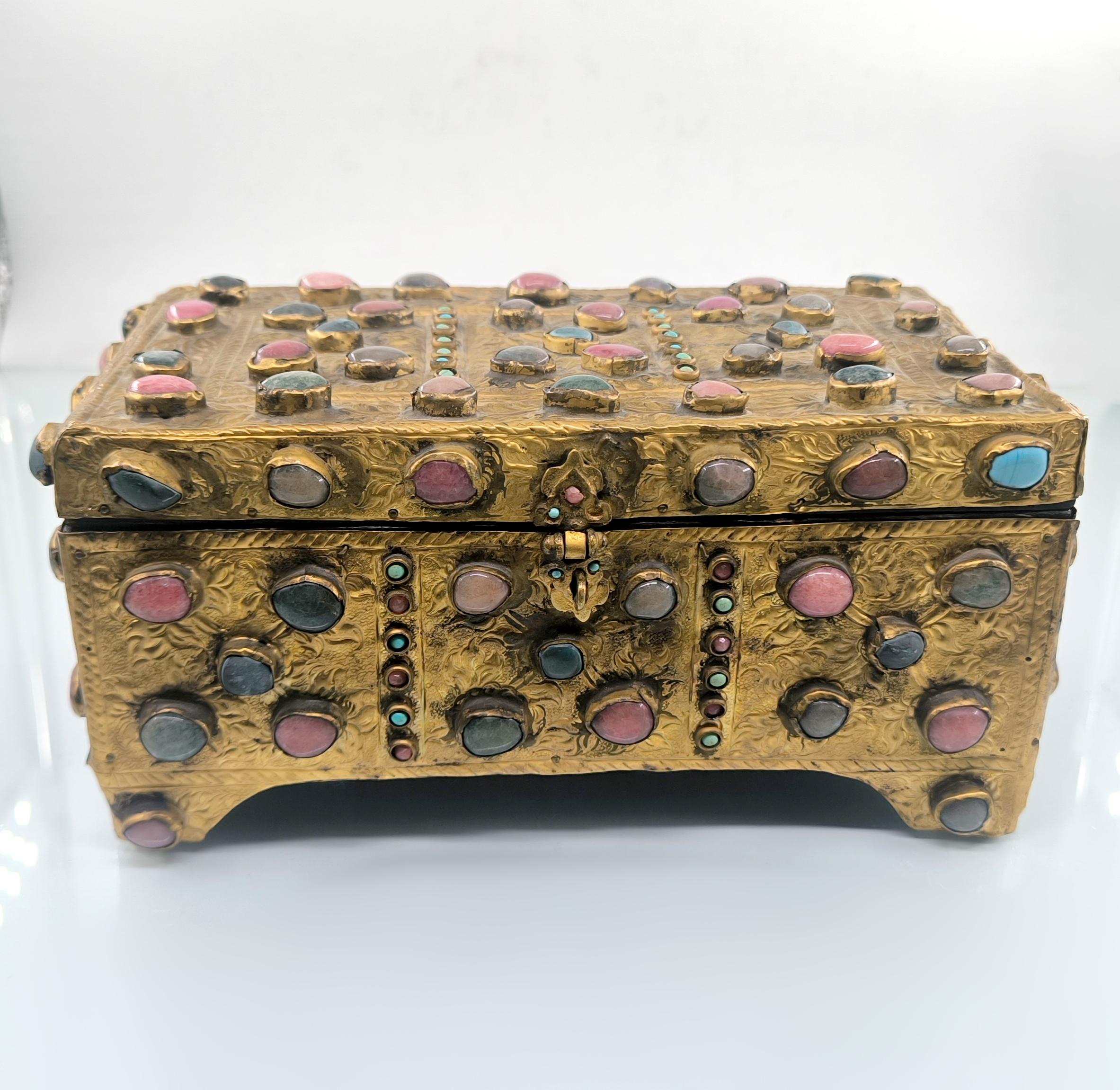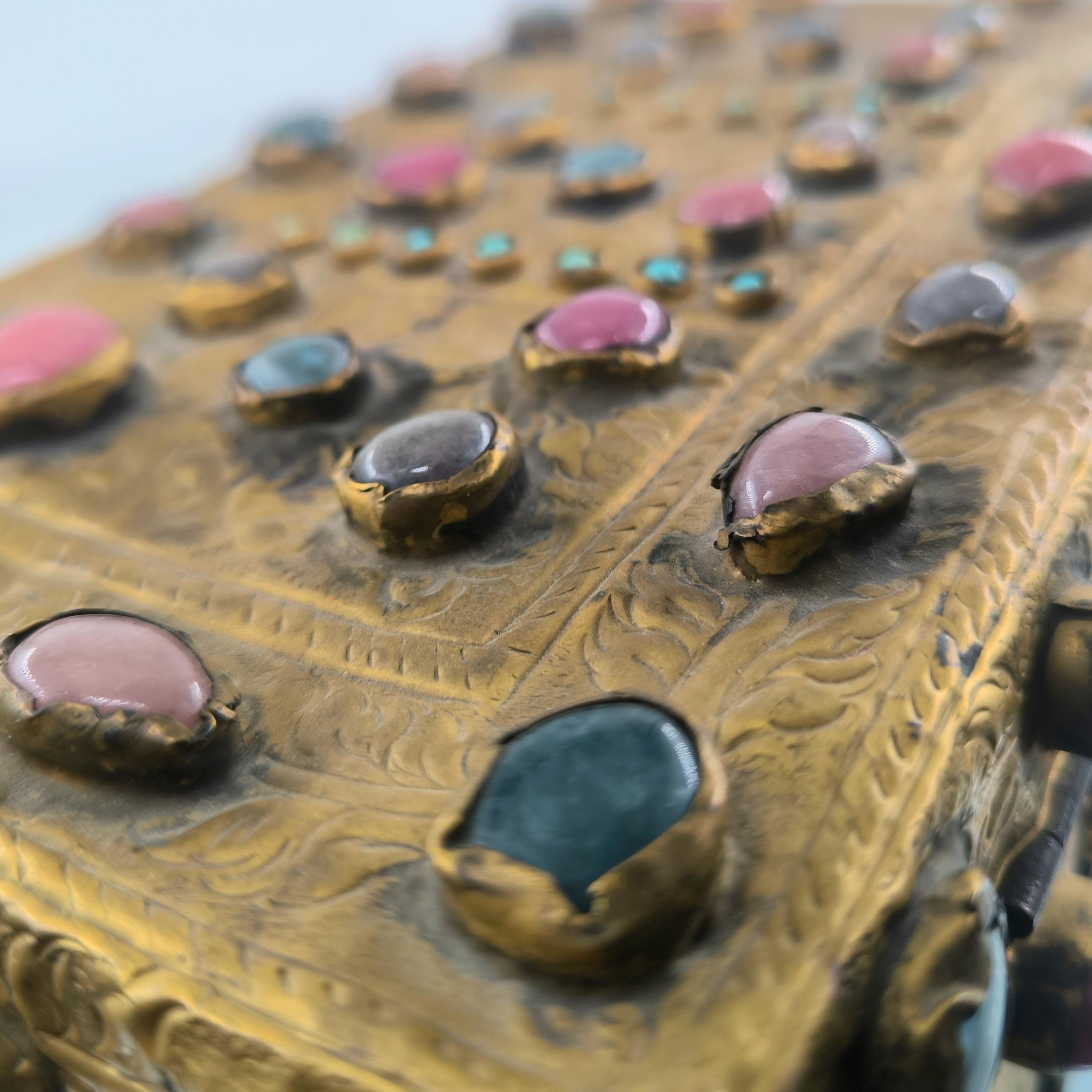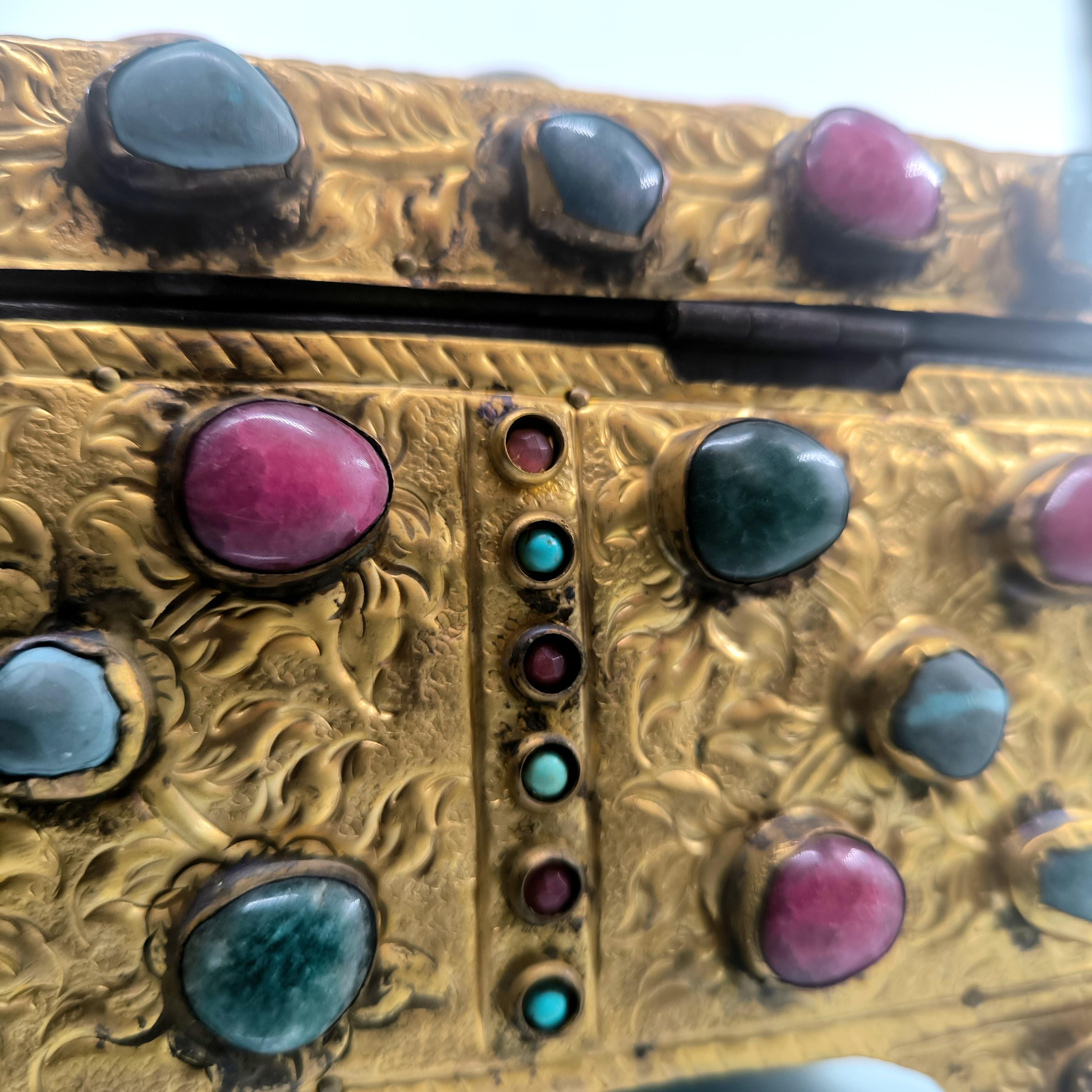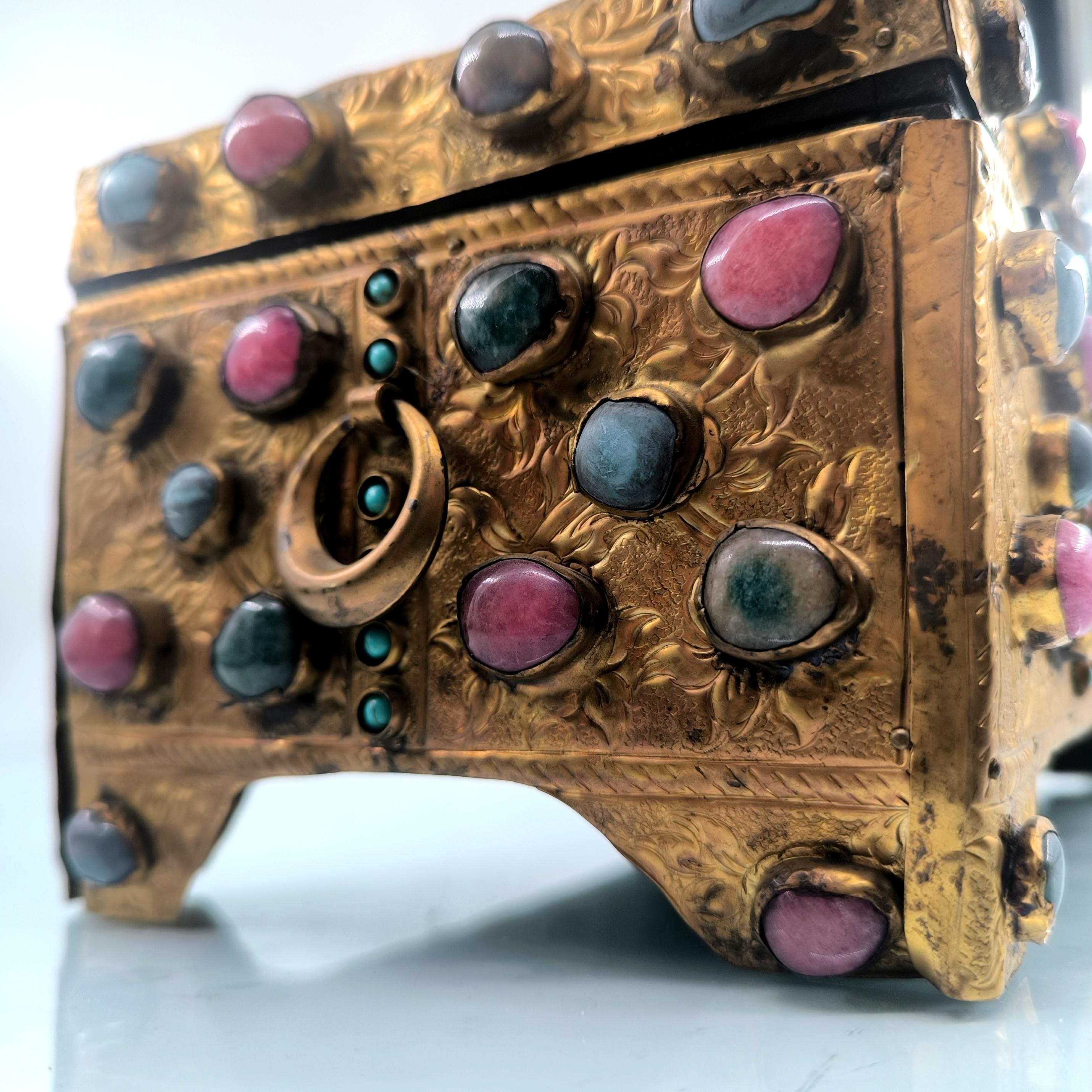 Yakın dönem imalatı, Kapalıçarşı ustalarının elinden çıkan eşsiz bir eser. Her noksanı murassa işçiliği ile süslü, etrafı komple yarı değerli taşlar ile bezeli, topkapı sarayındaki hazine bölümünün mücevher ve murassa kutularından ilham alınarak tasarlanmış üst düzey görsellikte, içi kadife kaplı, bakır üzeri yoğun altın tombak kaplamalı, murassa kutu obje. Bu kutu muhtemelen Muhteşem yüzyıl dizisinde oynamış bir eserdir.