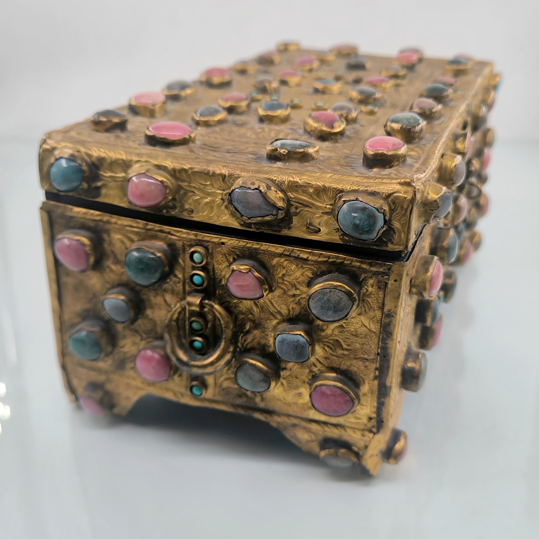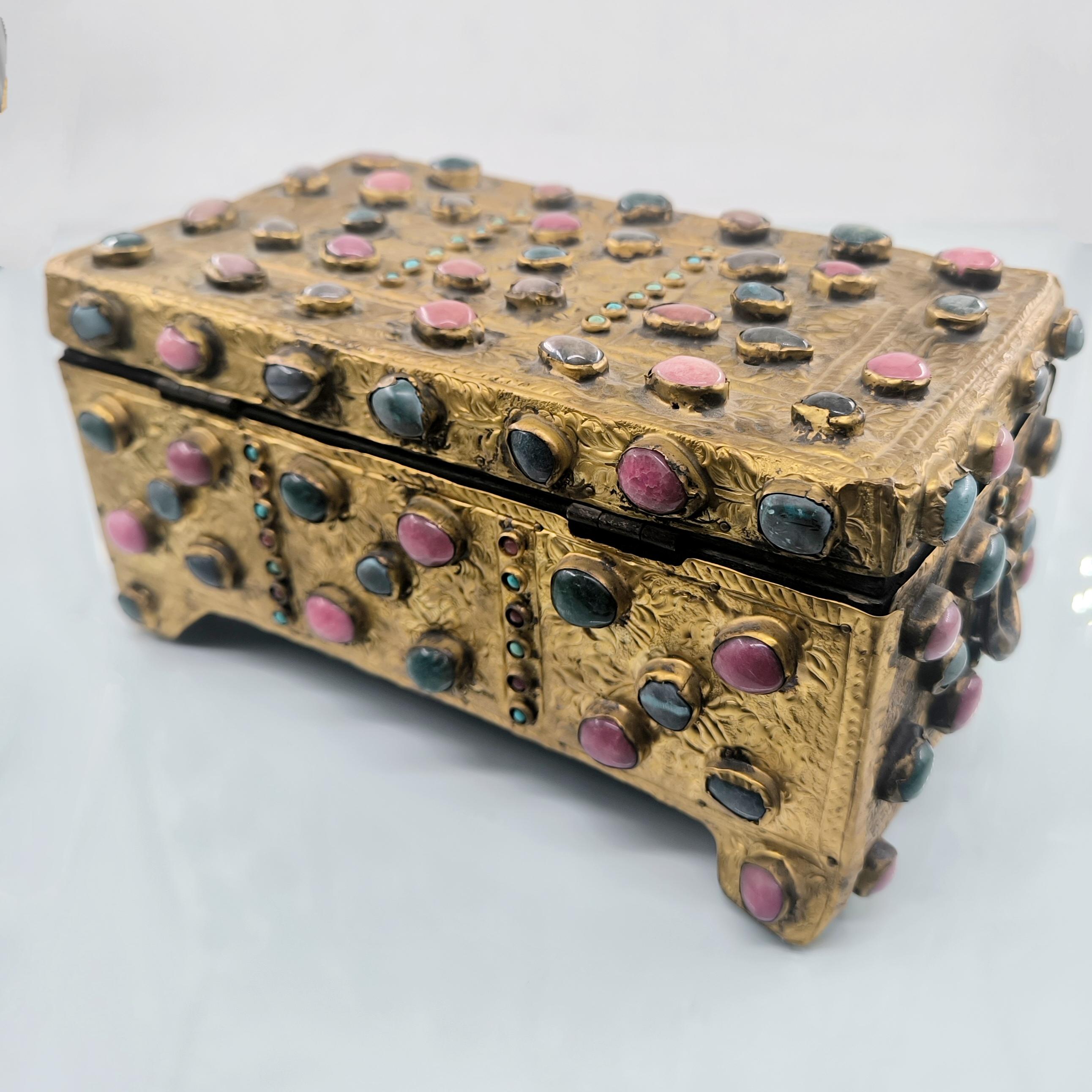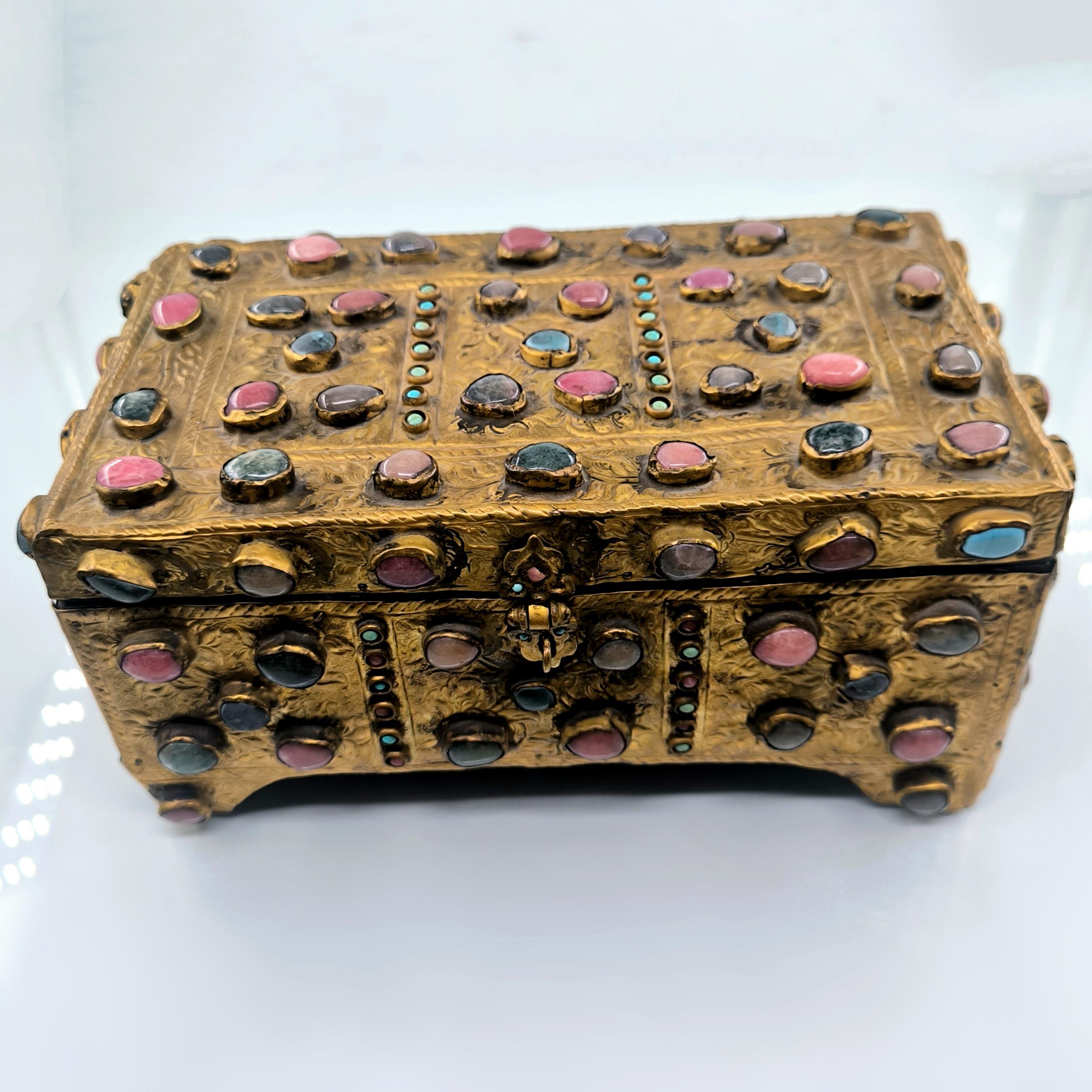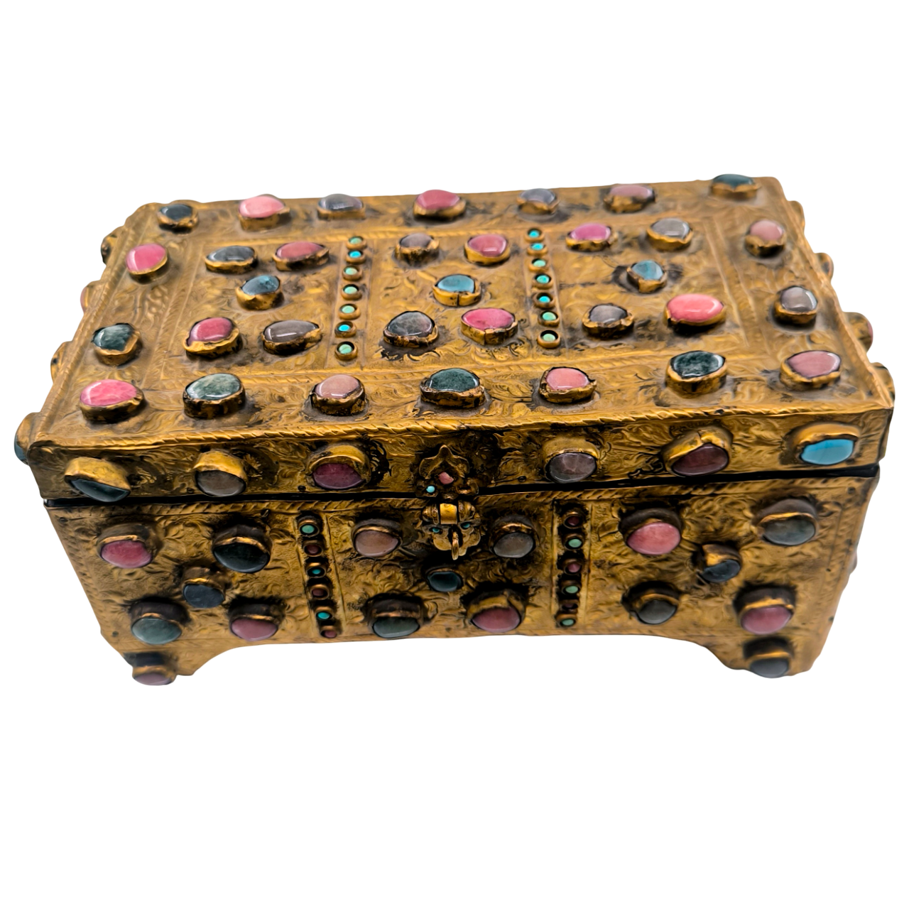 Yakın dönem imalatı, Kapalıçarşı ustalarının elinden çıkan eşsiz bir eser. Her noksanı murassa işçiliği ile süslü, etrafı komple yarı değerli taşlar ile bezeli, topkapı sarayındaki hazine bölümünün mücevher ve murassa kutularından ilham alınarak tasarlanmış üst düzey görsellikte, içi kadife kaplı, bakır üzeri yoğun altın tombak kaplamalı, murassa kutu obje. Bu kutu muhtemelen Muhteşem yüzyıl dizisinde oynamış bir eserdir.