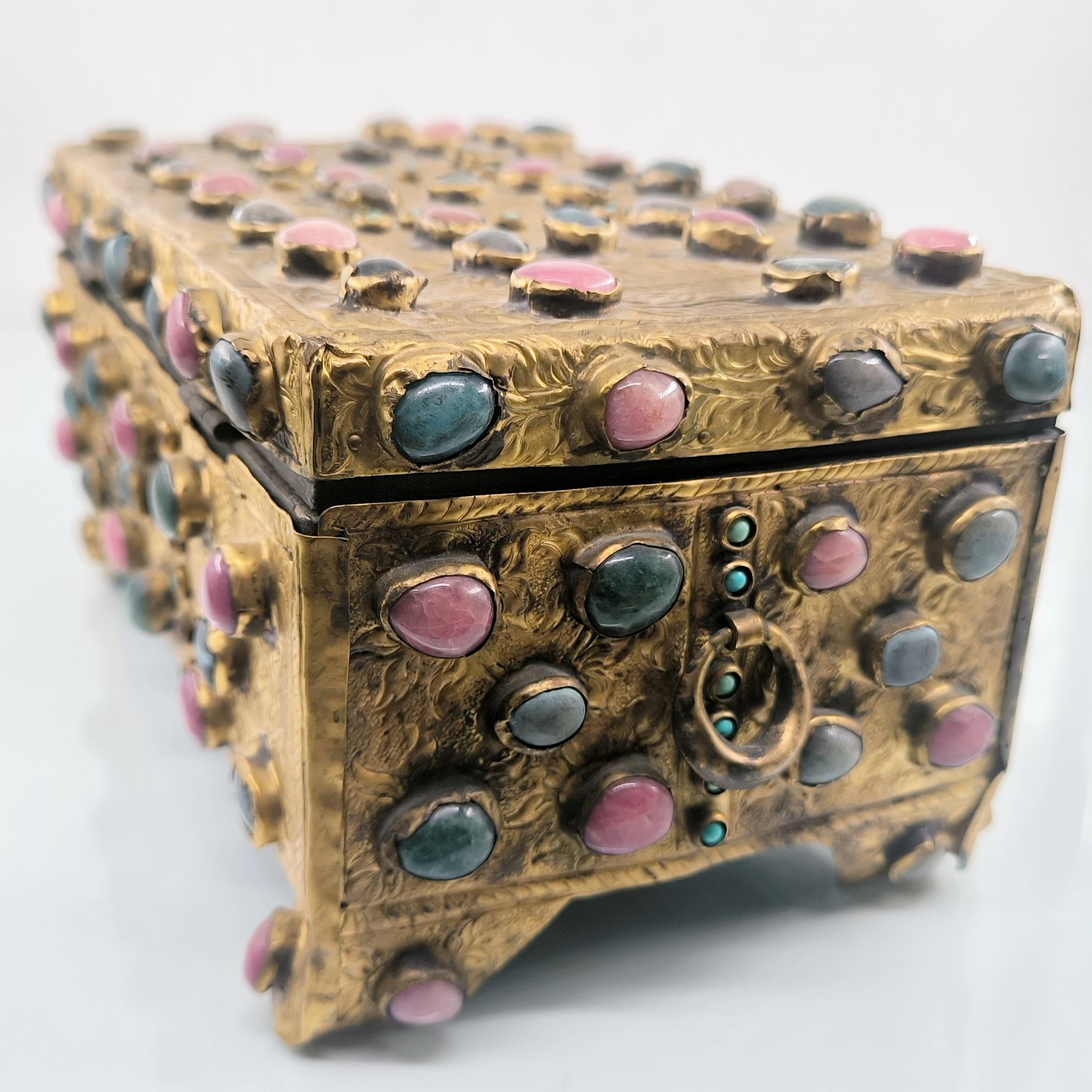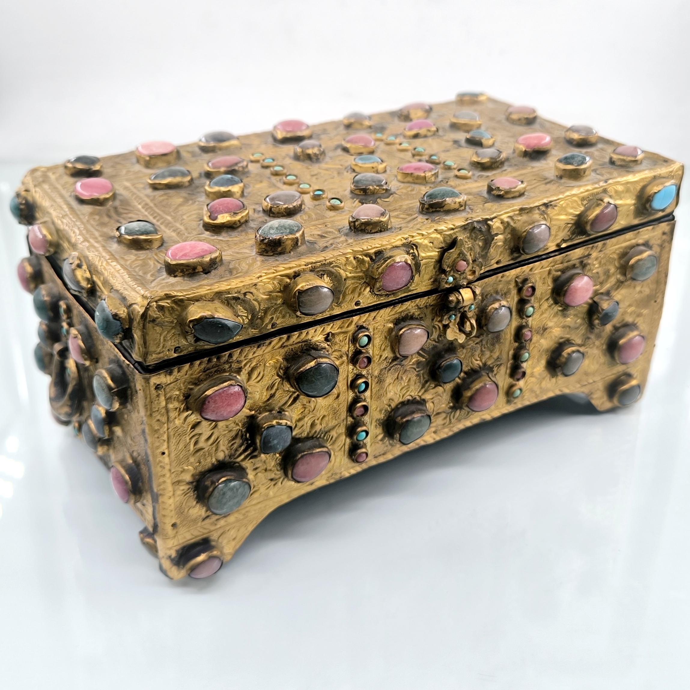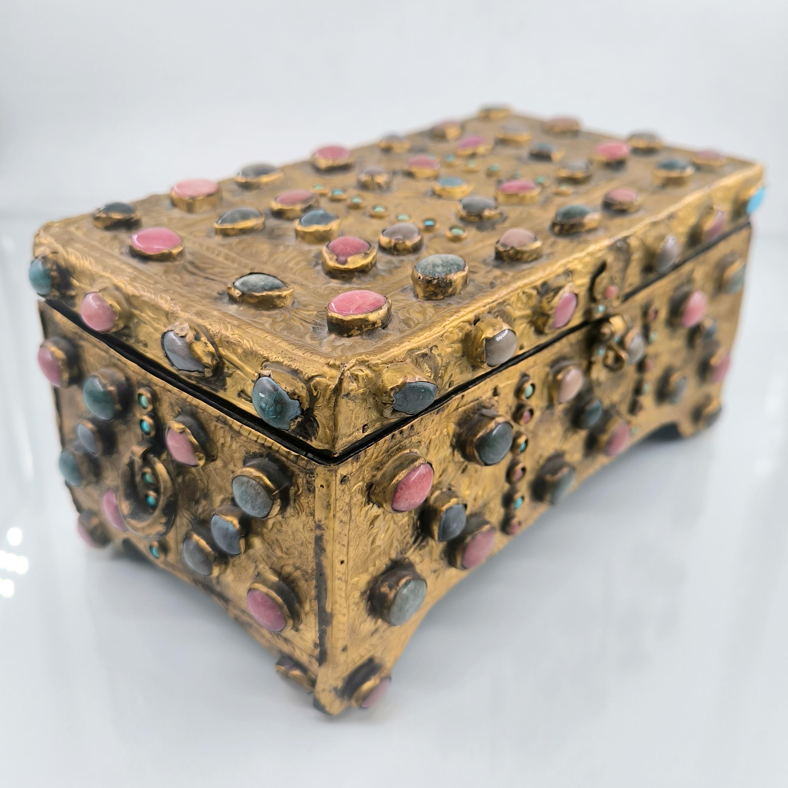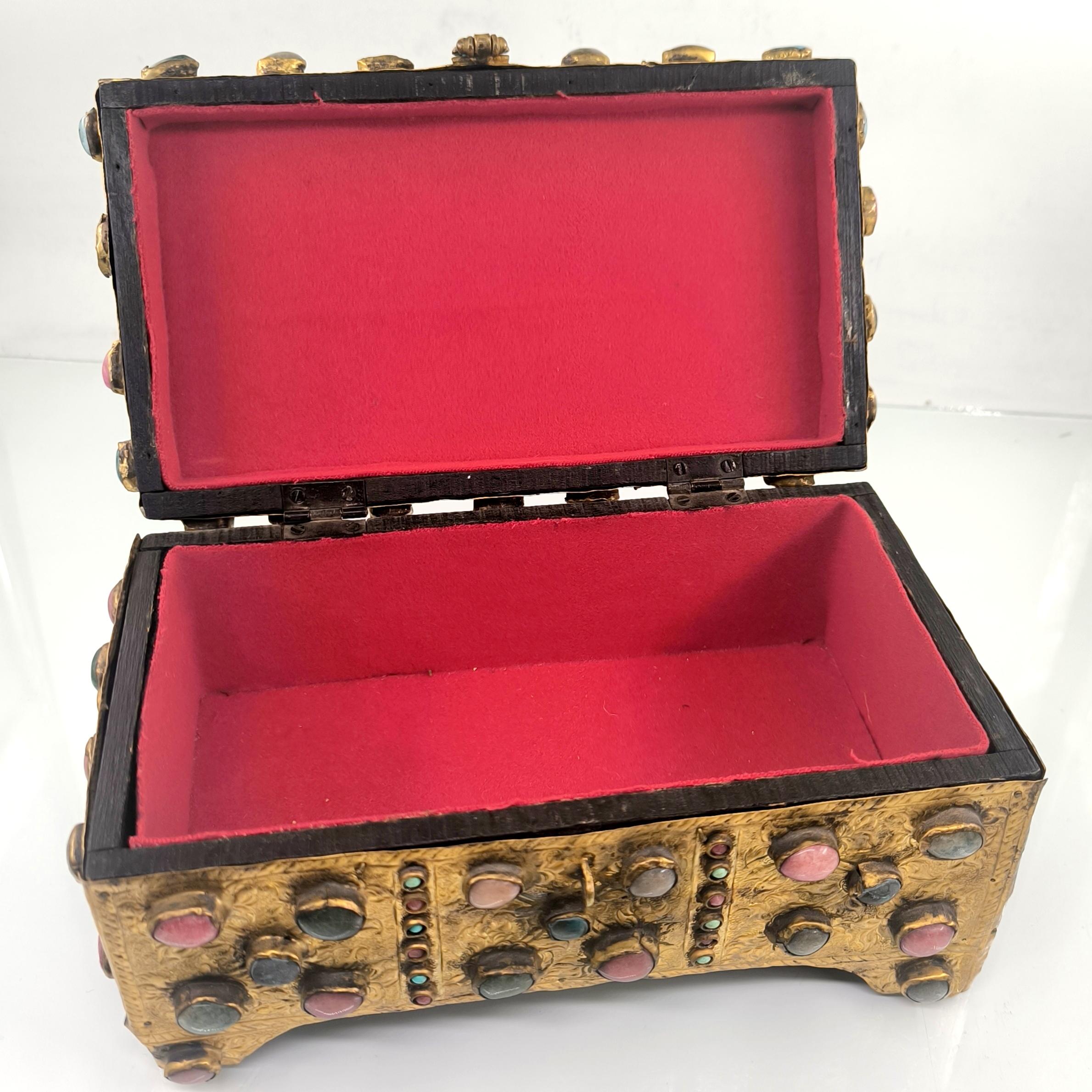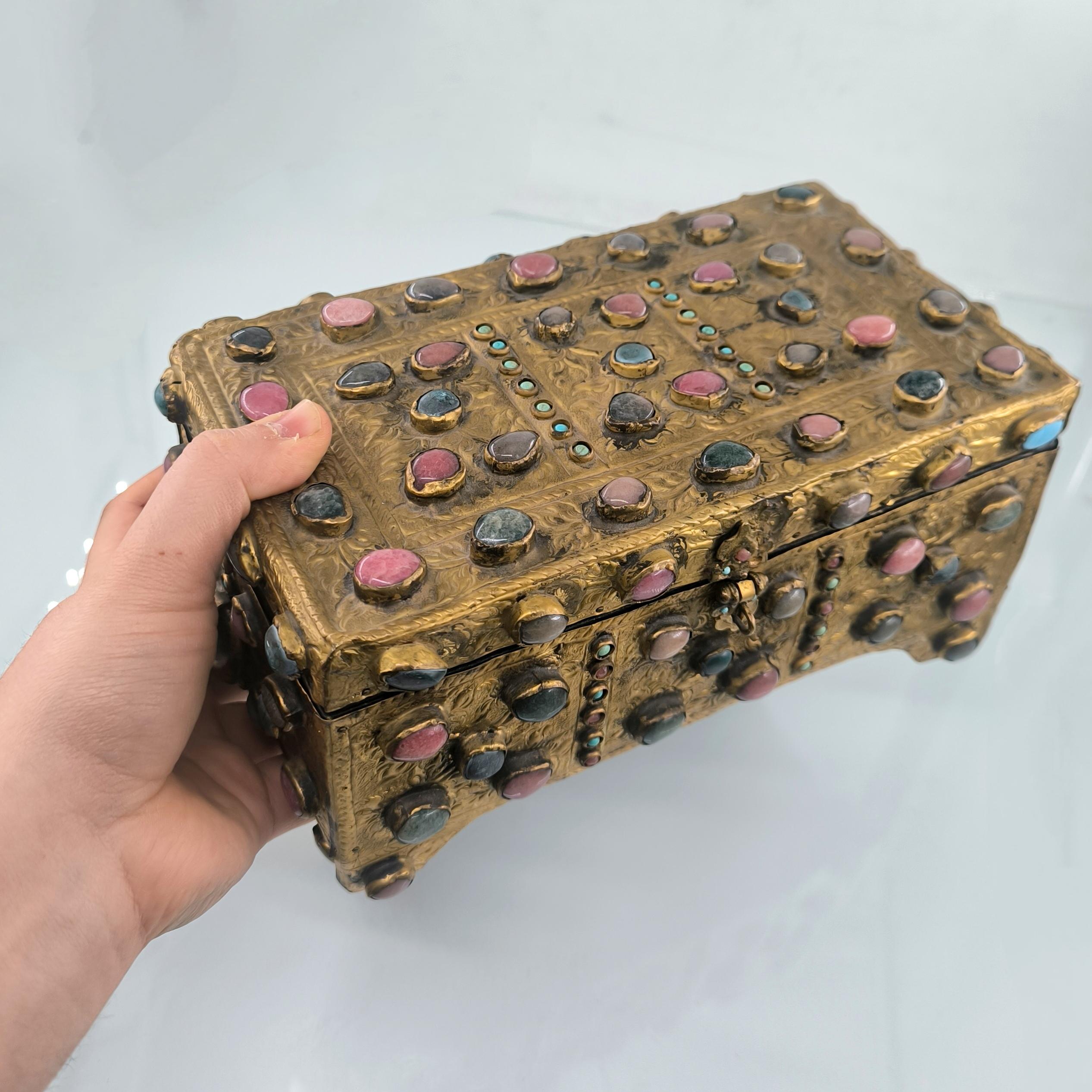 Yakın dönem imalatı, Kapalıçarşı ustalarının elinden çıkan eşsiz bir eser. Her noksanı murassa işçiliği ile süslü, etrafı komple yarı değerli taşlar ile bezeli, topkapı sarayındaki hazine bölümünün mücevher ve murassa kutularından ilham alınarak tasarlanmış üst düzey görsellikte, içi kadife kaplı, bakır üzeri yoğun altın tombak kaplamalı, murassa kutu obje. Bu kutu muhtemelen Muhteşem yüzyıl dizisinde oynamış bir eserdir.