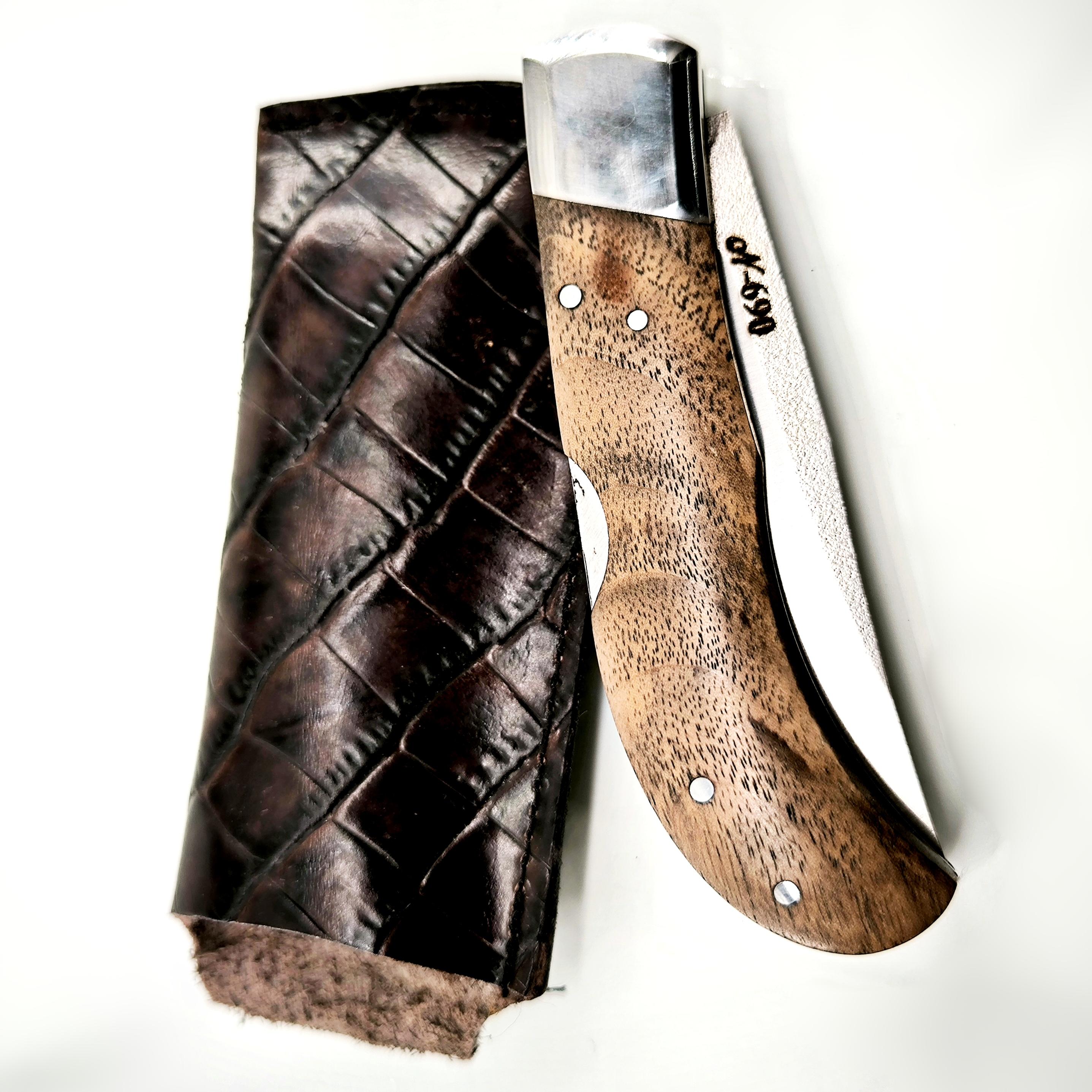N690 ÇELİK DERİ KILIFLI CEVİZ AĞACI SAPLI ÇAKI