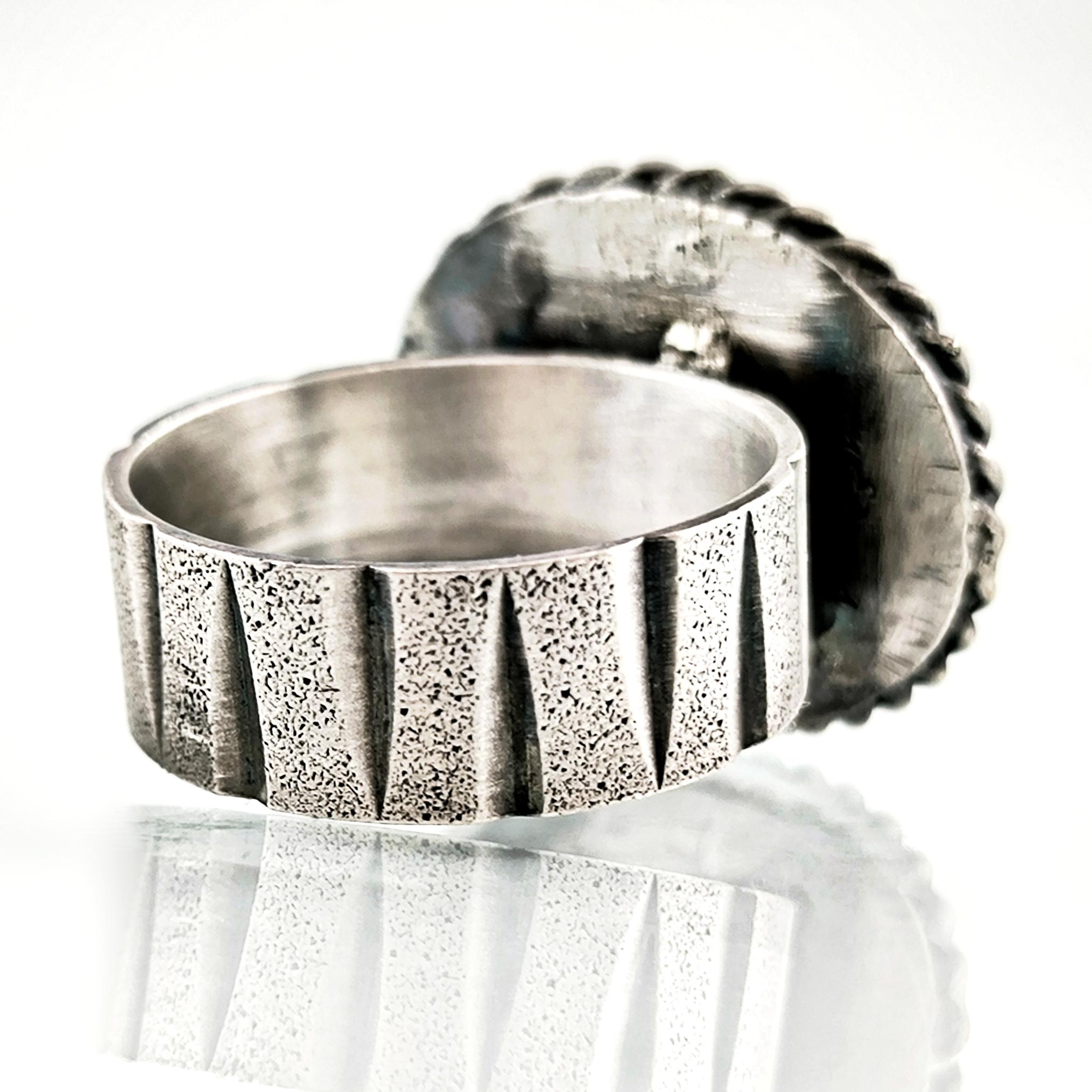 Efsanelerin gökyüzüne uzanan kanatlı atı Pegasus’un zarif kabartması, derin yeşil camın içinde ölümsüzleşti. Altına yerleştirilen özel foya, ışık vurdukça yüzüğe büyüleyici bir janjanlı parıltı katıyor. Antik çağların mitolojik ihtişamını parmağınıza taşıyan bu eser, hem koleksiyonluk hem de zamansız bir takı olarak dikkat çeker.