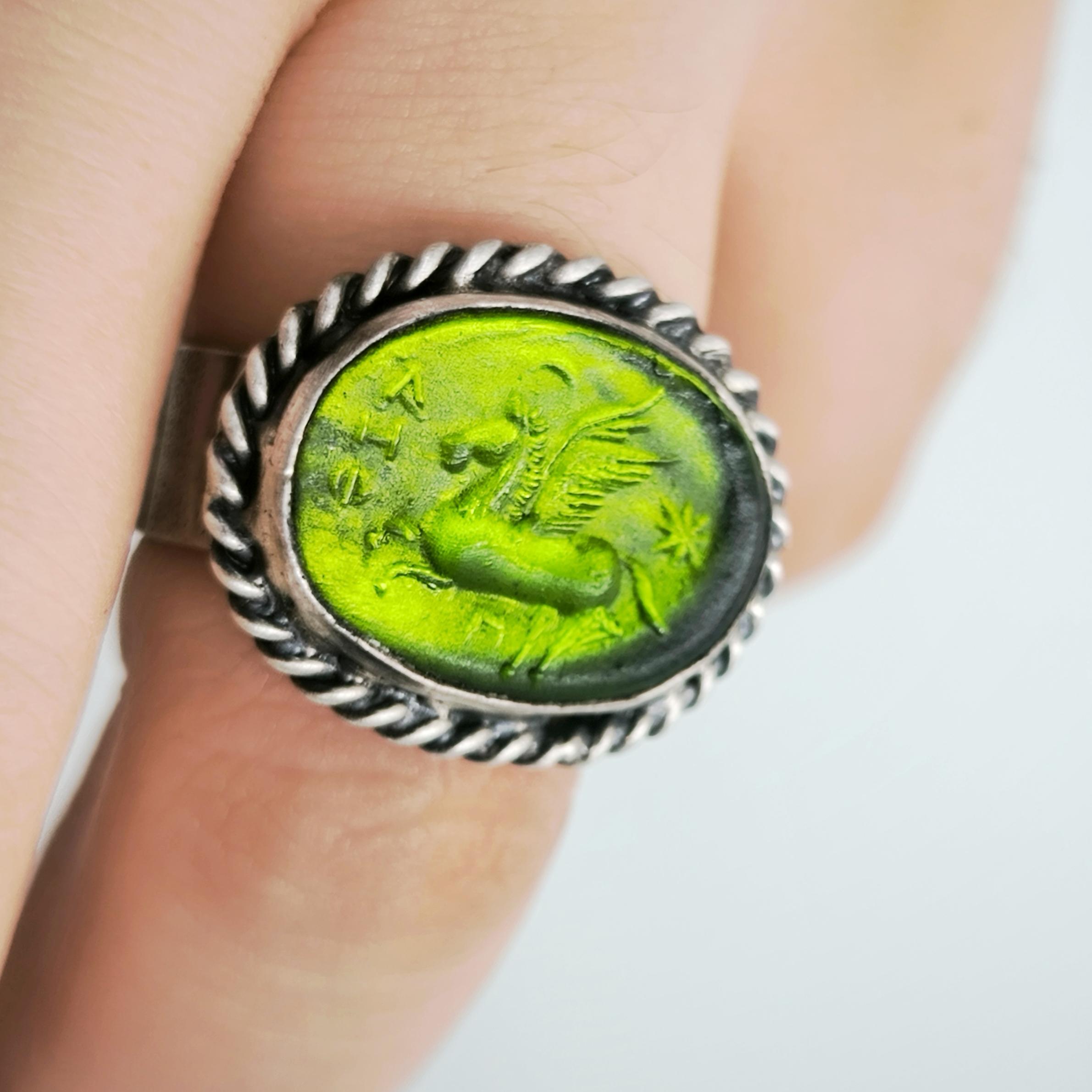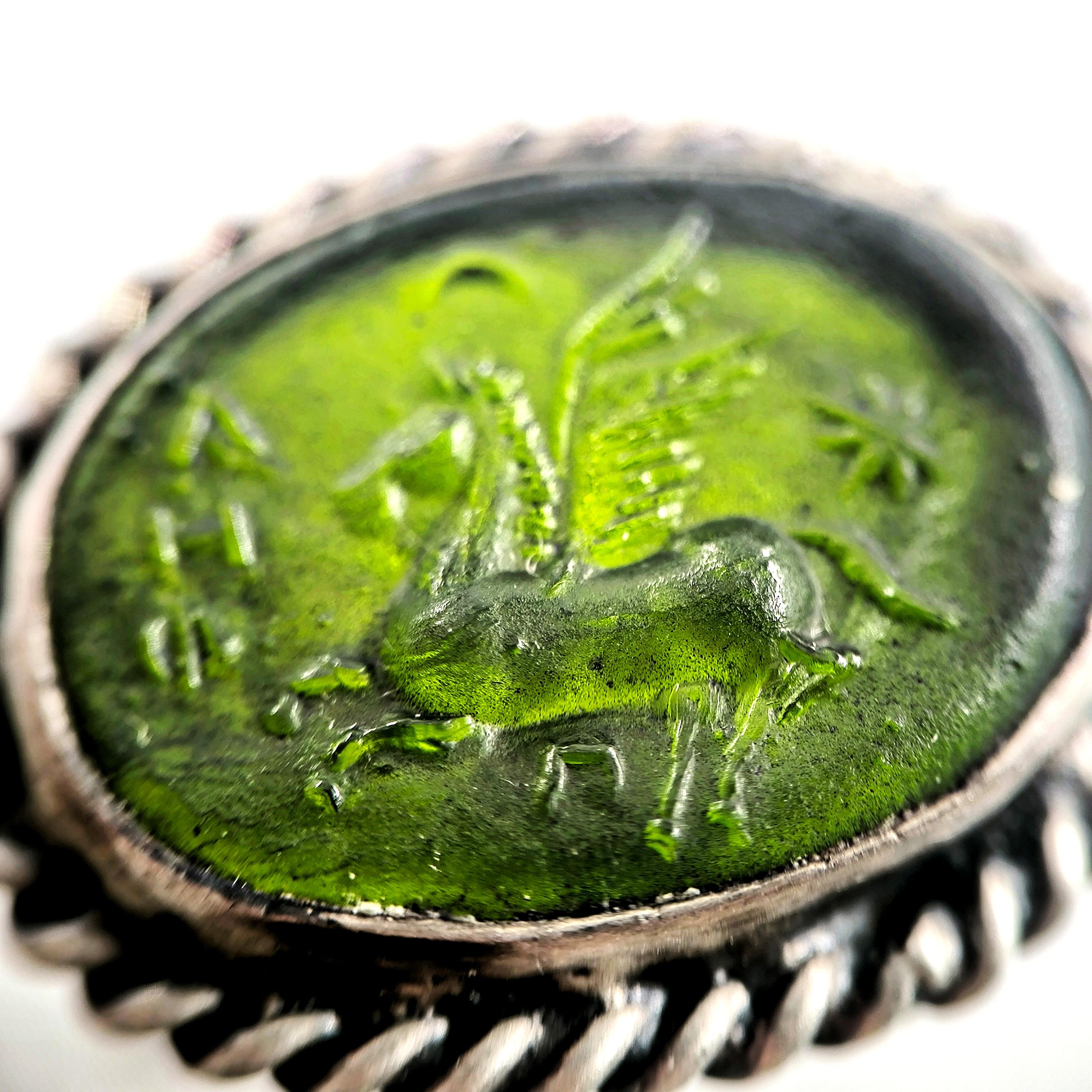 PEGASUS’UN ASALETLİ KANATLARI 925 AYAR GÜMÜŞ YEŞİL CAM YÜZÜK