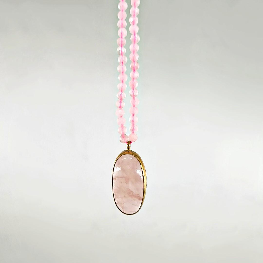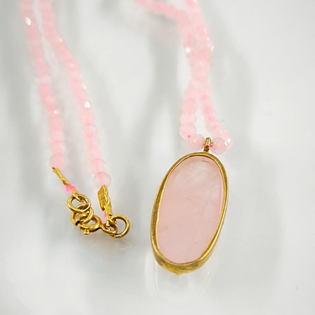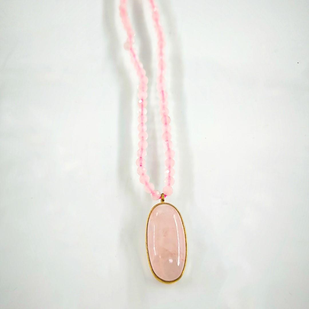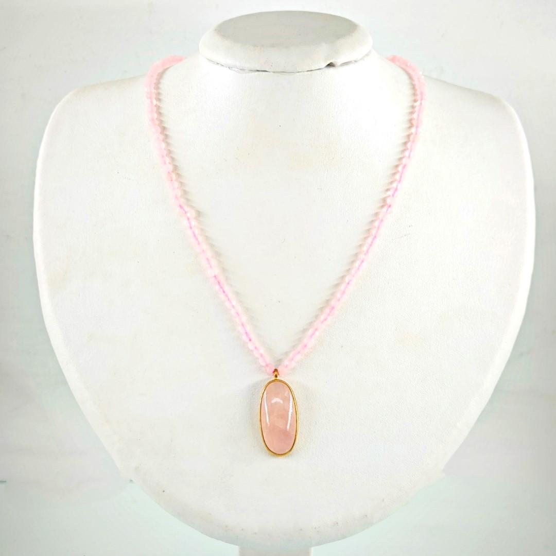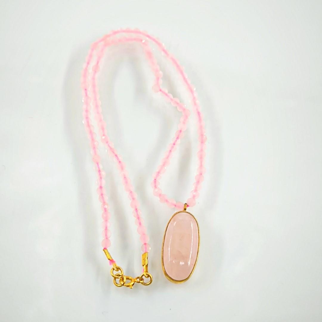 PEMBE KUVARS TAŞLI GÜMÜŞ KOLYE