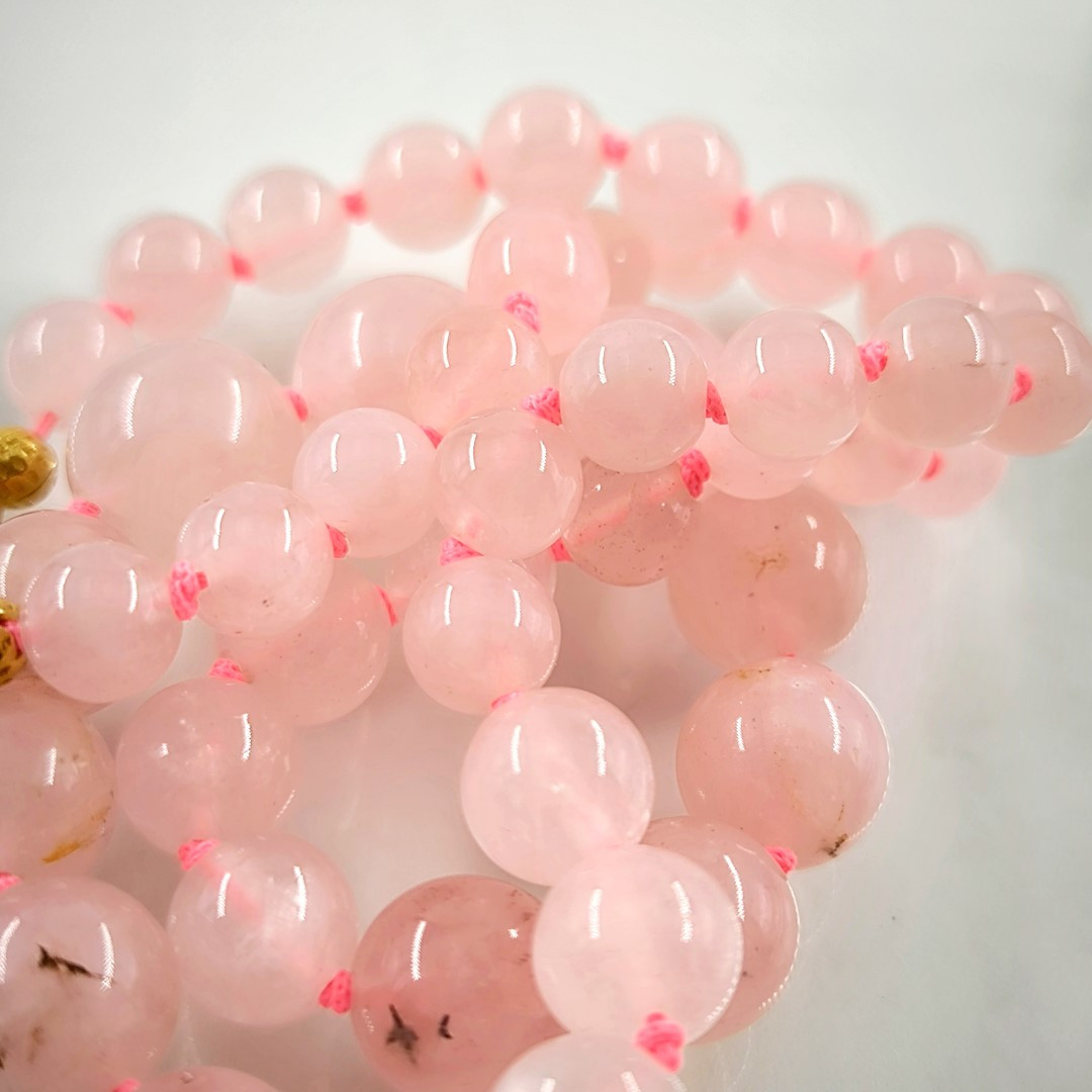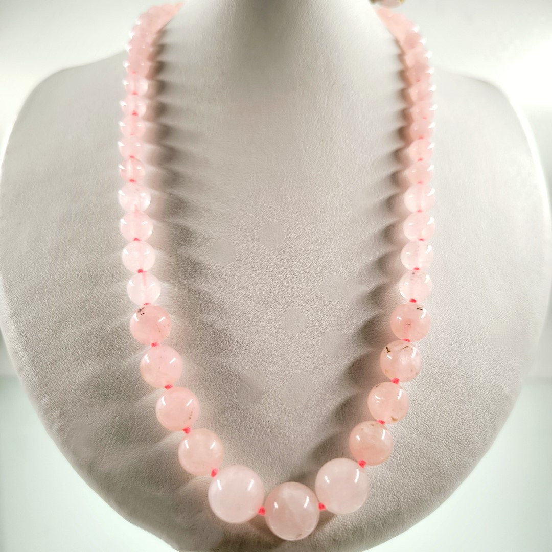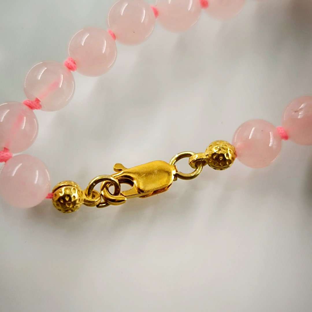 Tüm habbeler yüksek kalitede olup süzme formda tasarlanmış, Klip kısmı tamamen gümüş ve üzeri 22k Altın kaplama olan eşsiz güzellikte bir Doğaltaş Pembe Kuvars gerdanlık!