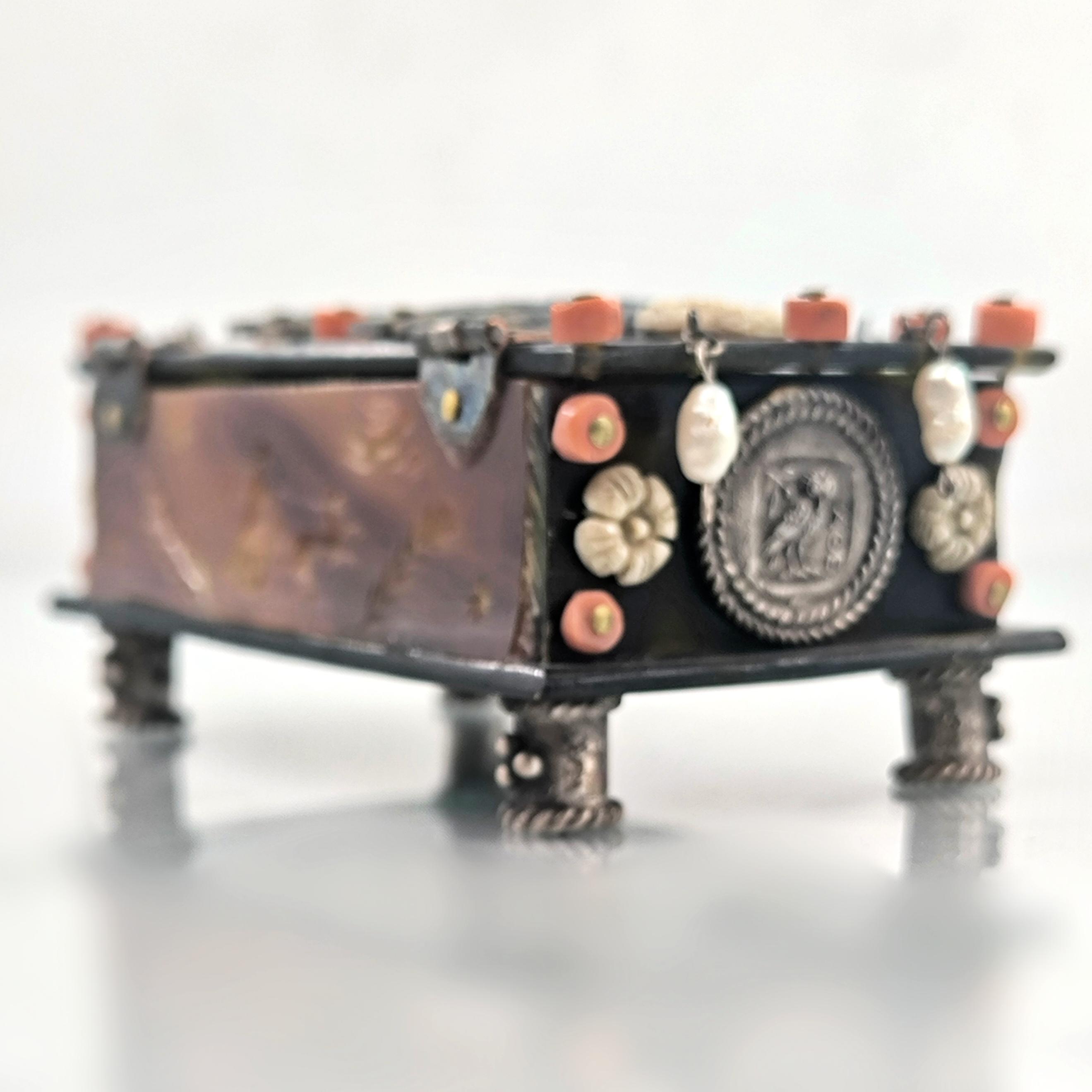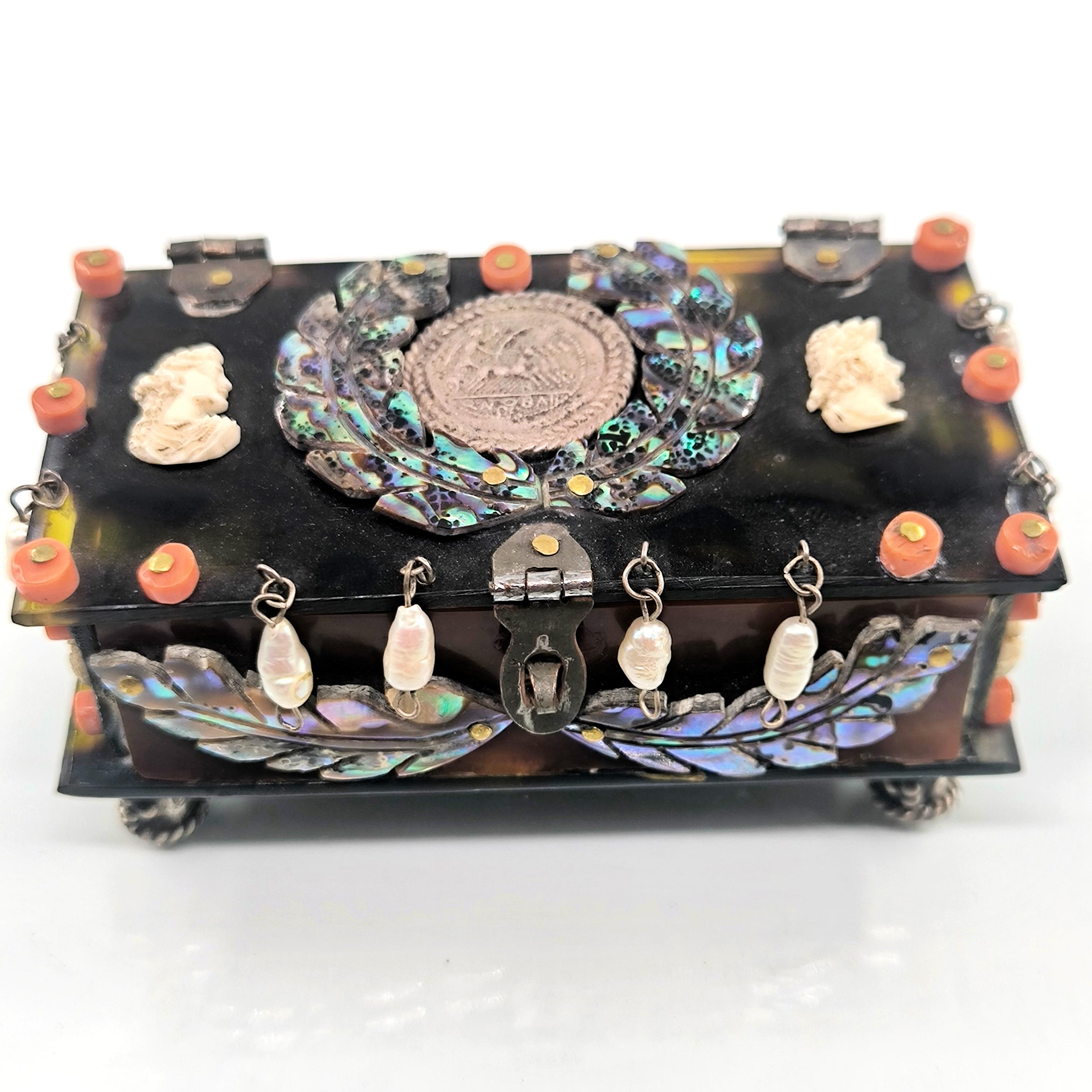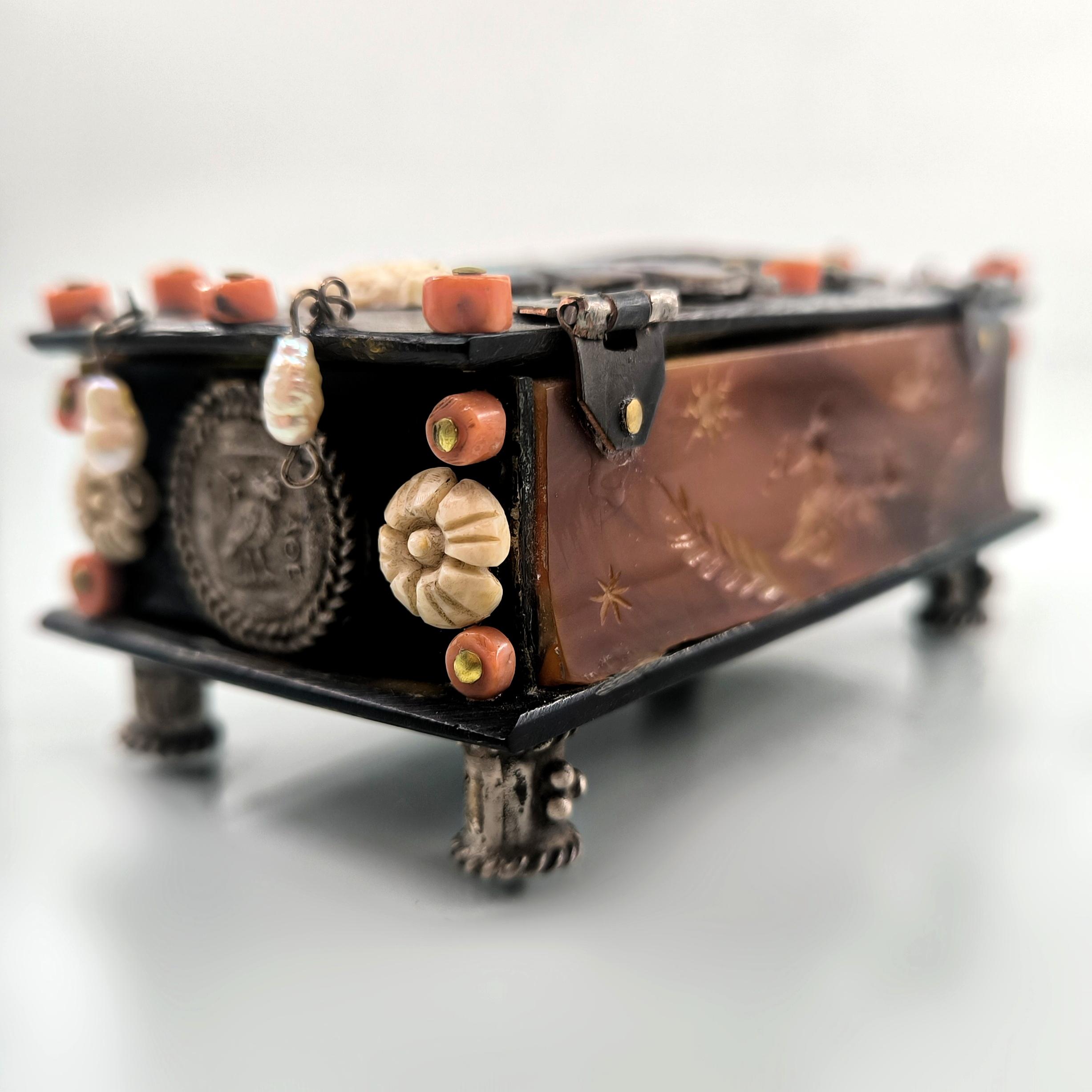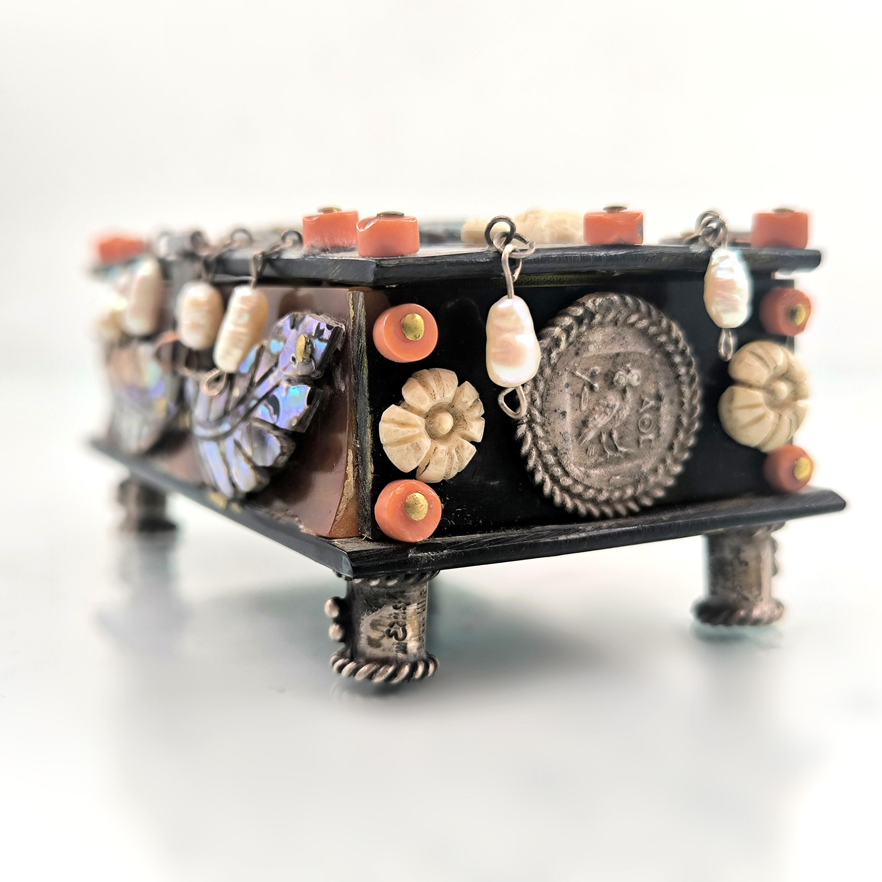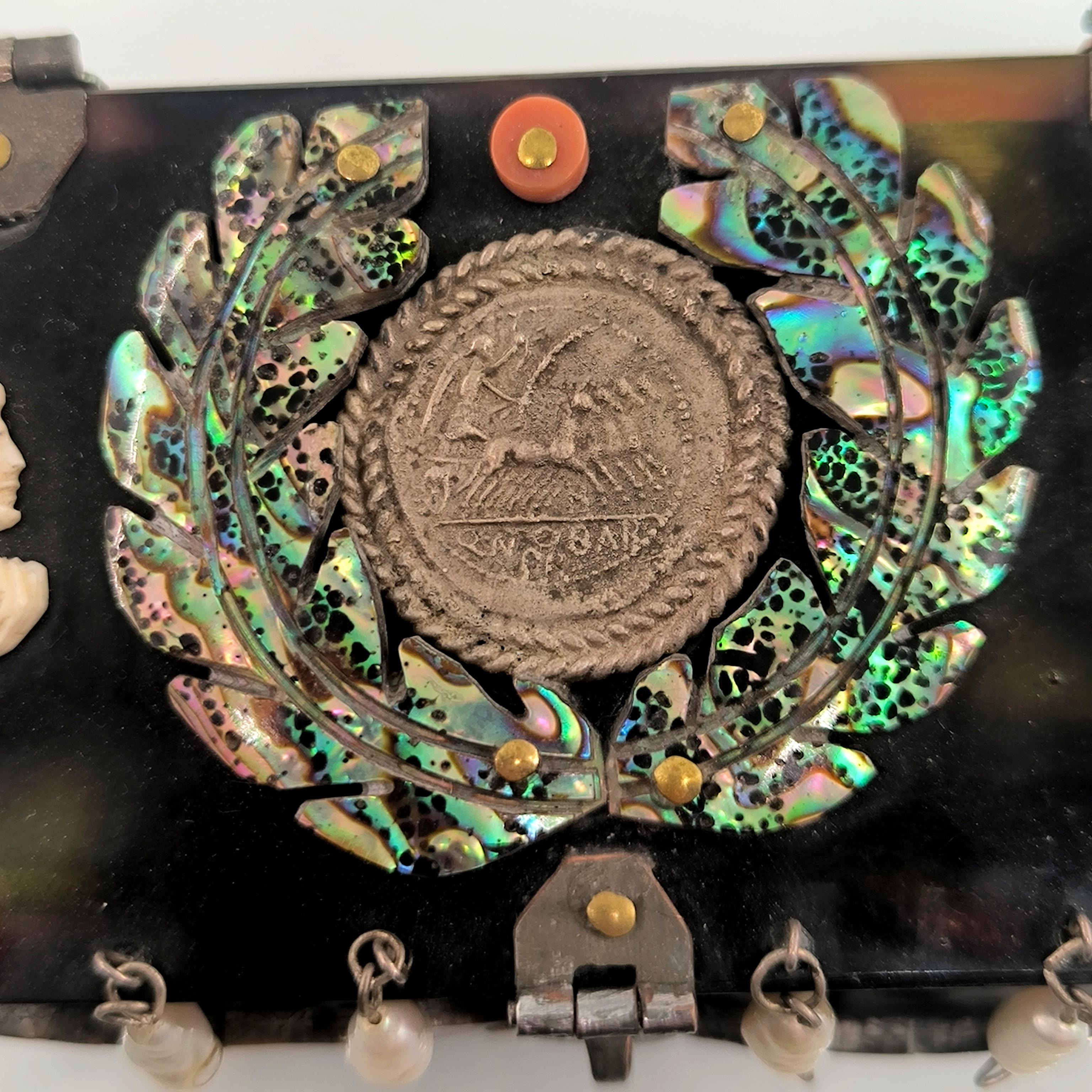 Roma döneminde imparator ve kraliçenin sandığından çıkmışçasına büyüleyici ve hiç olmadığı kadar zengin bir eser. Tamamen özel yapım Dünya da tek olana sahip olmak isteyenler için özel bir mücevher... Bir ''mEdusA'' yapımı eserdir. Haftalarca süren eşi ve benzeri olmayan bir çalışma sonucunda yaptığımız bu eser, üzerindeki sanat figürleriyle antik dönem mücevherlerinin ruhuna ışık tutuyor. Eski katalin ve kaplumbağa kabuğundan çalıştığımız, yeşil kadife kaplı, abalone sedef, mercan, inciler, dişler ve replika gümüş sikkelerle çevrili antik stilde tamamı el işçiliği ve tek mücevher kutumuz!