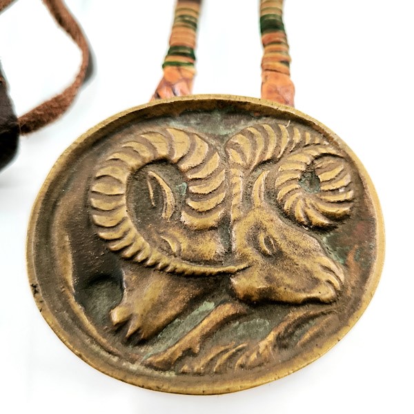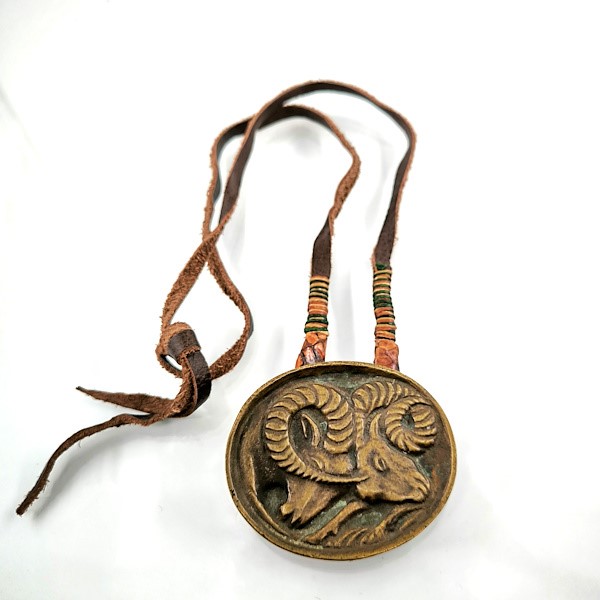 SANATÇI YAPIMI BRONZ ÜZERİ KOÇ BAŞI RÖLYEFLİ MARJİNAL BİR TASARIM KOLYE