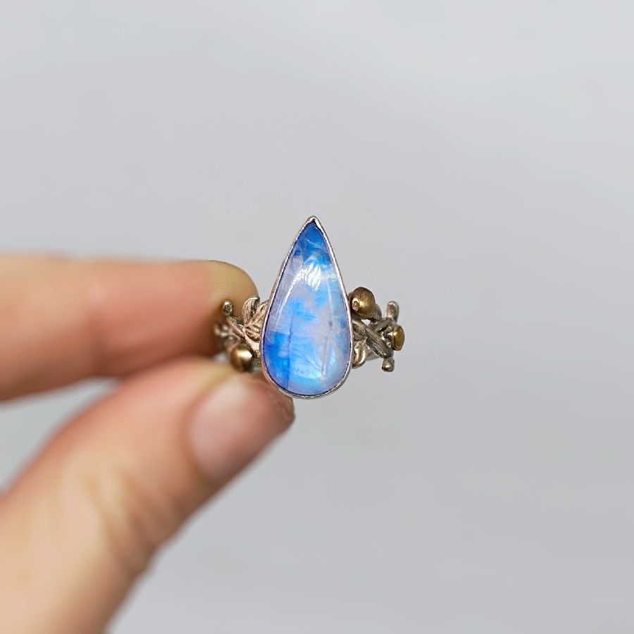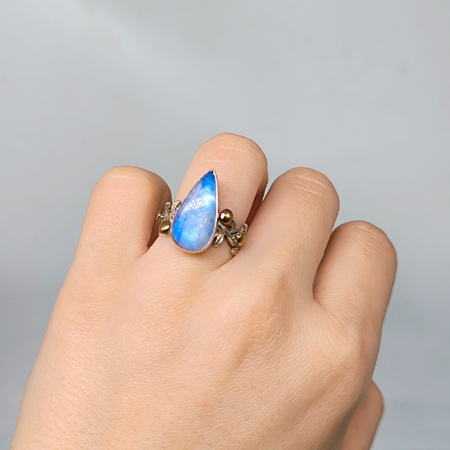 SARMAŞIK TASARIM AY TAŞI GÜMÜŞ YÜZÜK