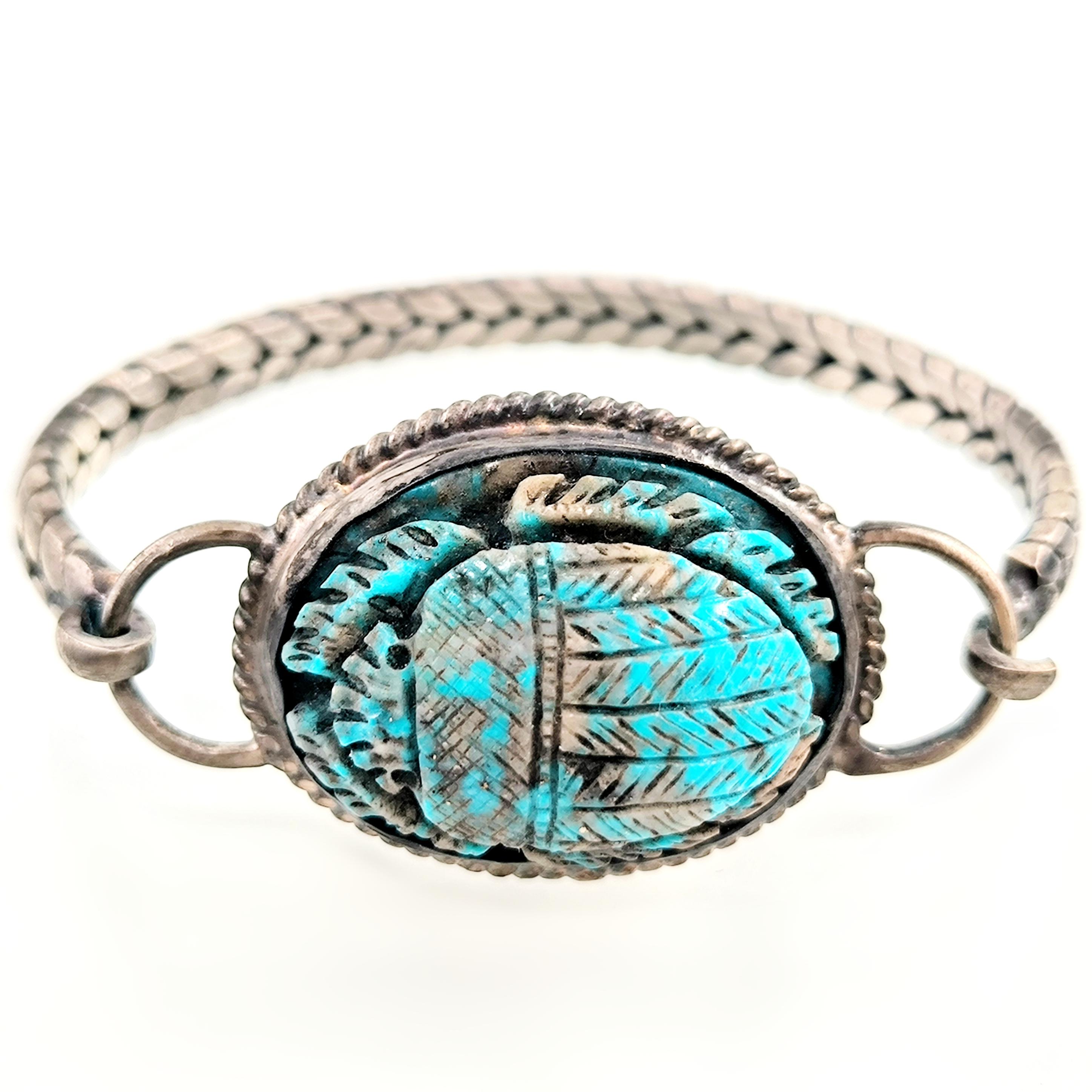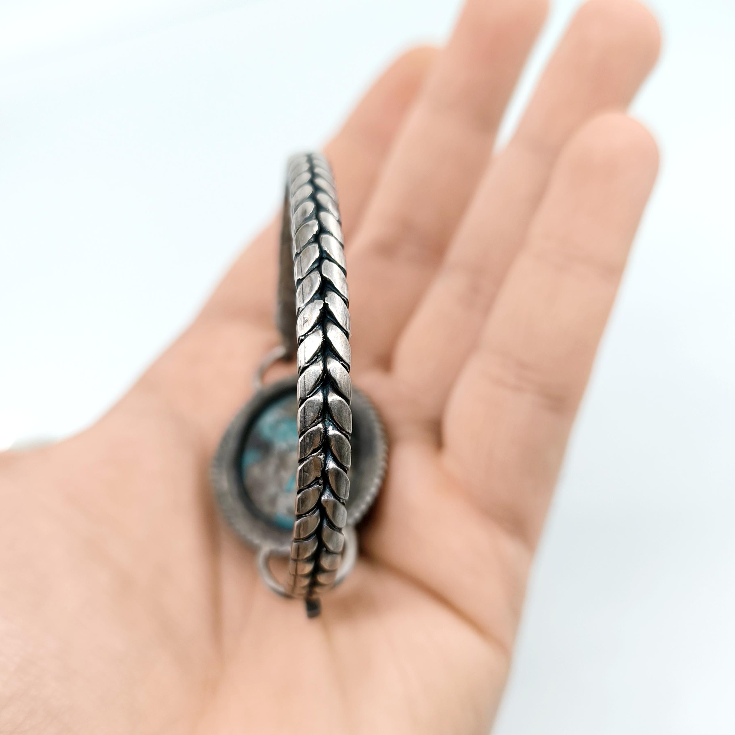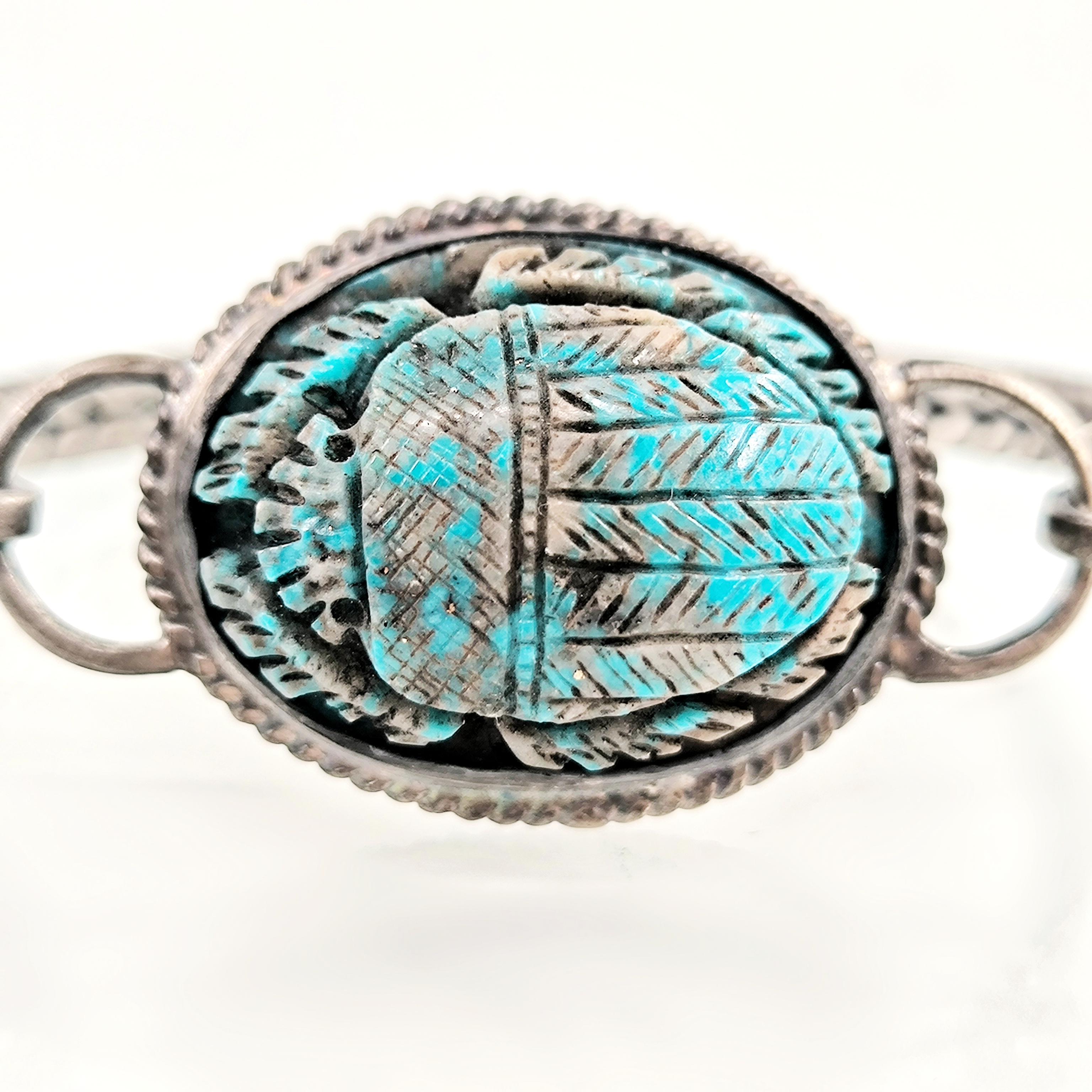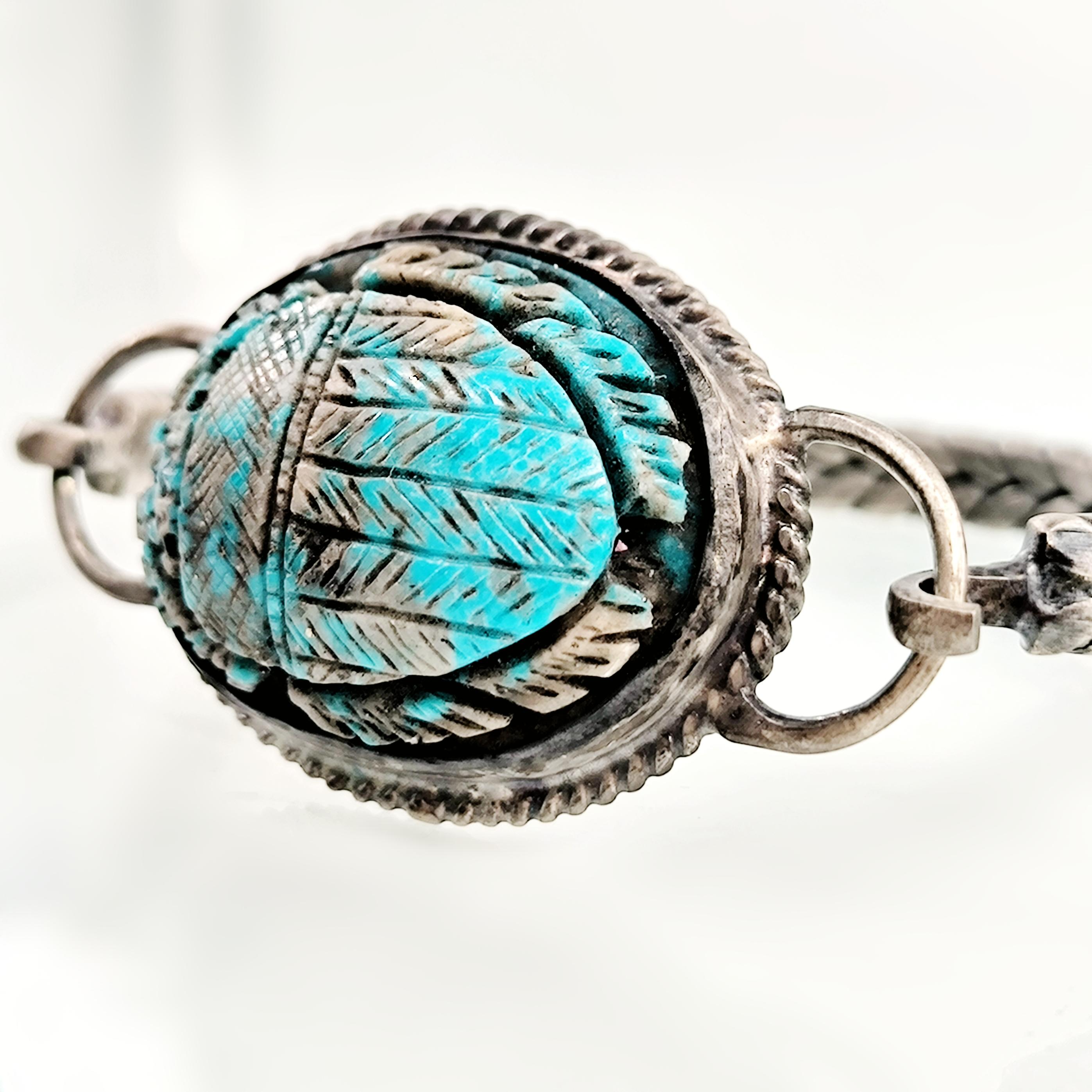 Bu bileklik sadece bir aksesuar değil; yeniden doğuşun, şansın ve ruhsal korumanın simgesi. Turkuaz damarlarıyla oyulmuş scarab figürü, Hayat döngüsünü ve ruhsal dönüşümü temsil ediyor. 925 Ayar Gümüşten el örmesi zincirli kolu bileğe sadelikle sarılırken gücünü hissettiriyor. Unisex tasarımıyla hem geçmişi hemde bugünü kucaklayan bir koruyucu. Takana şans, cesaret ve ruhsal denge getirmesi dileğiyle!
