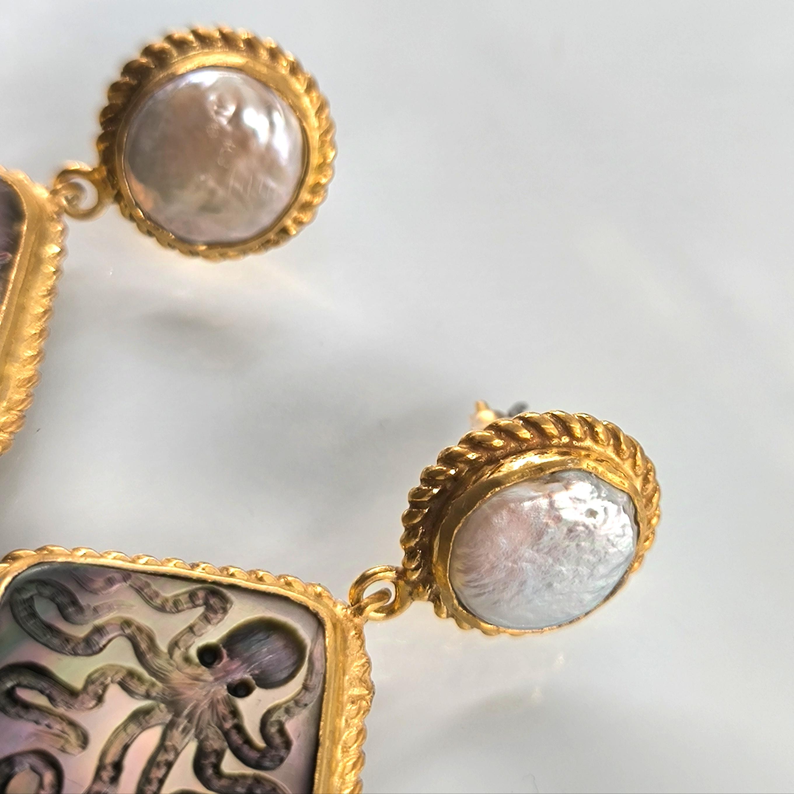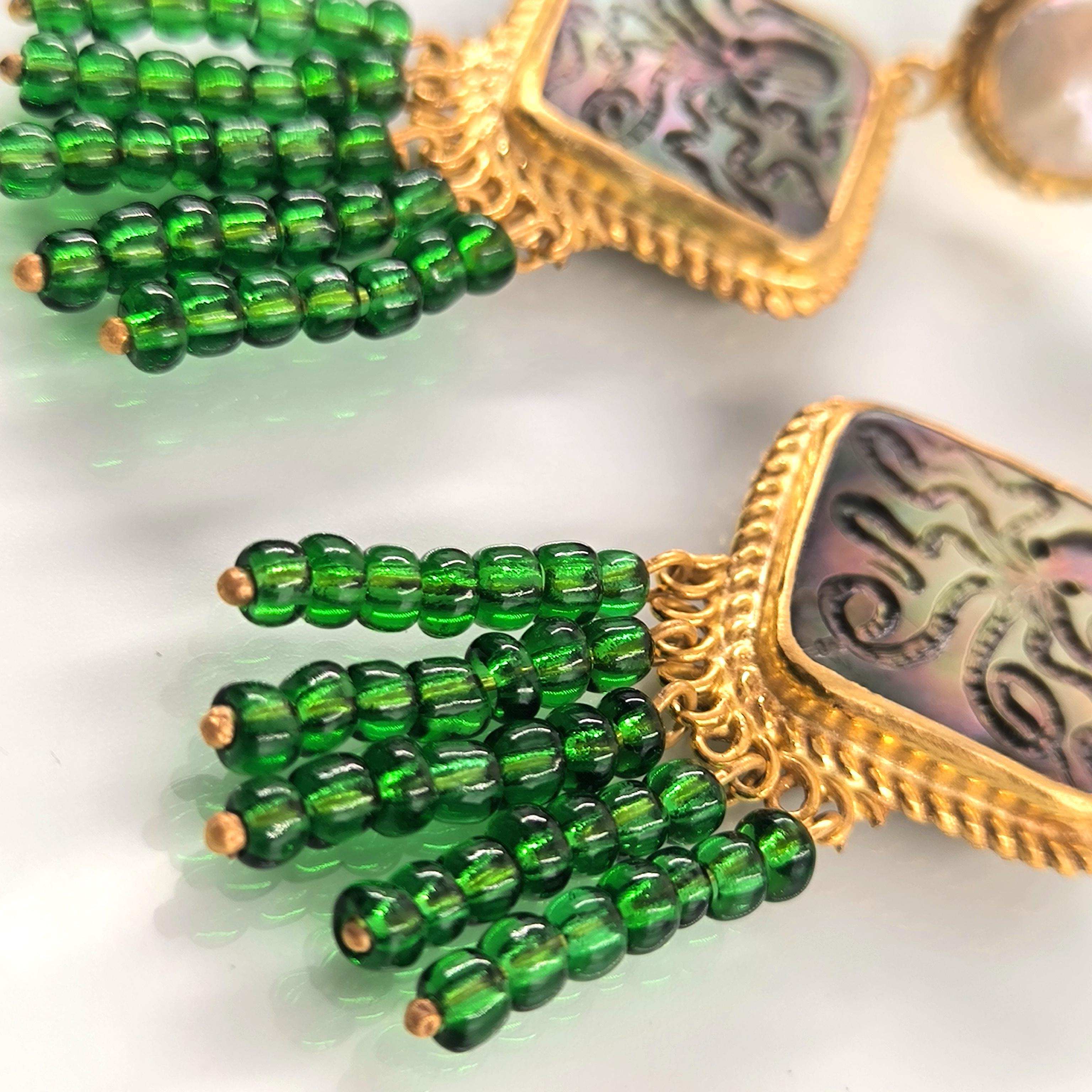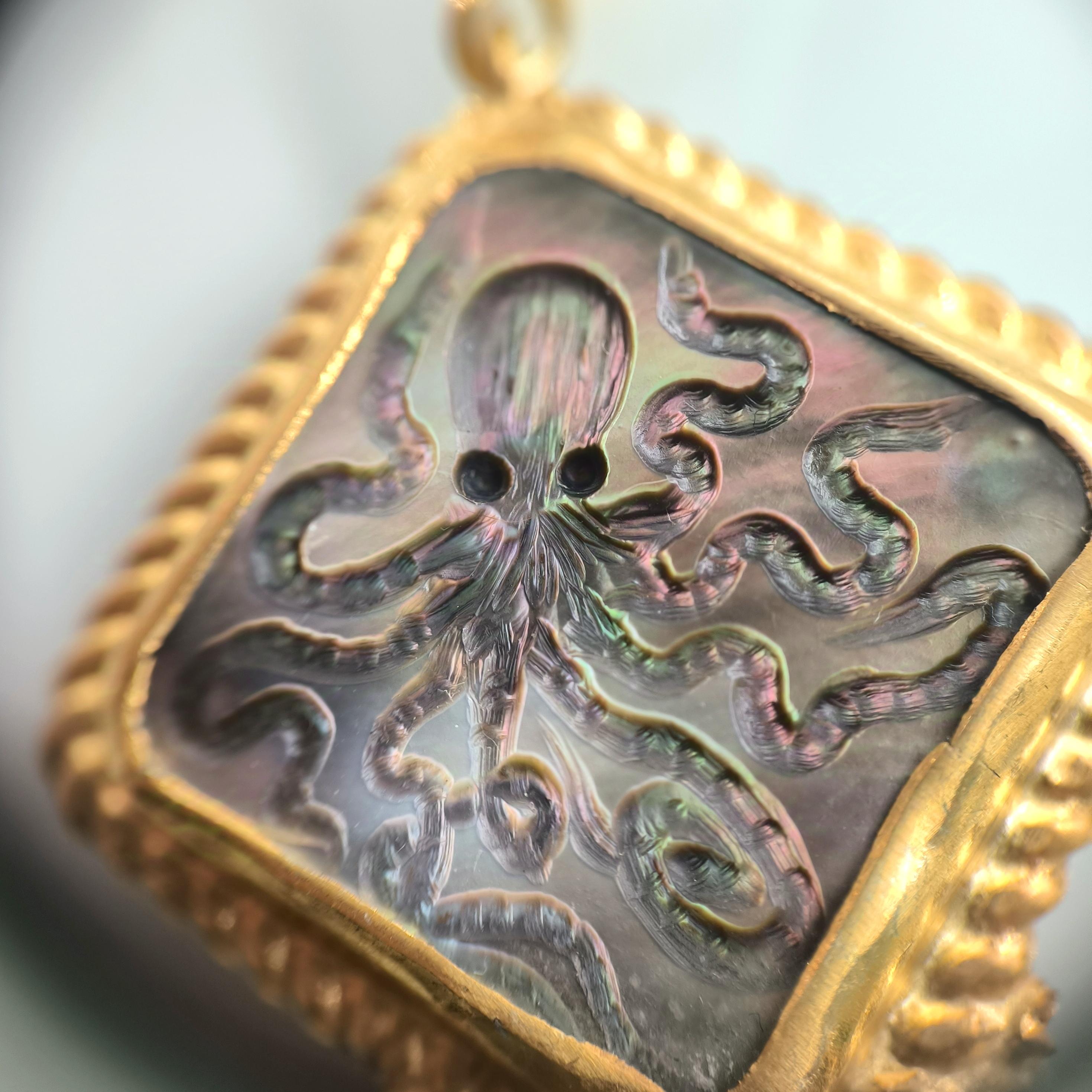 Duyguların, zekanın, mantığın, esnekliğin, potansiyelin ve yaratıcılığın sembolü; Ahtapot! Bu figür antik mücevherler de çok nadir bulunan bir sembol olsada gizemli ve çok sevimli bu yaratığı, özel tasarımımız ile bir mücevhere dönüştürdük ! Tüm çerçevesi gümüş olan, okyanus sedefi üzerine ahtapot intaglio çalışmaları yaptığımız eşsiz güzellikte bir eser! sallantı püskülündeki yeşil taşlar cam boncuklardır.