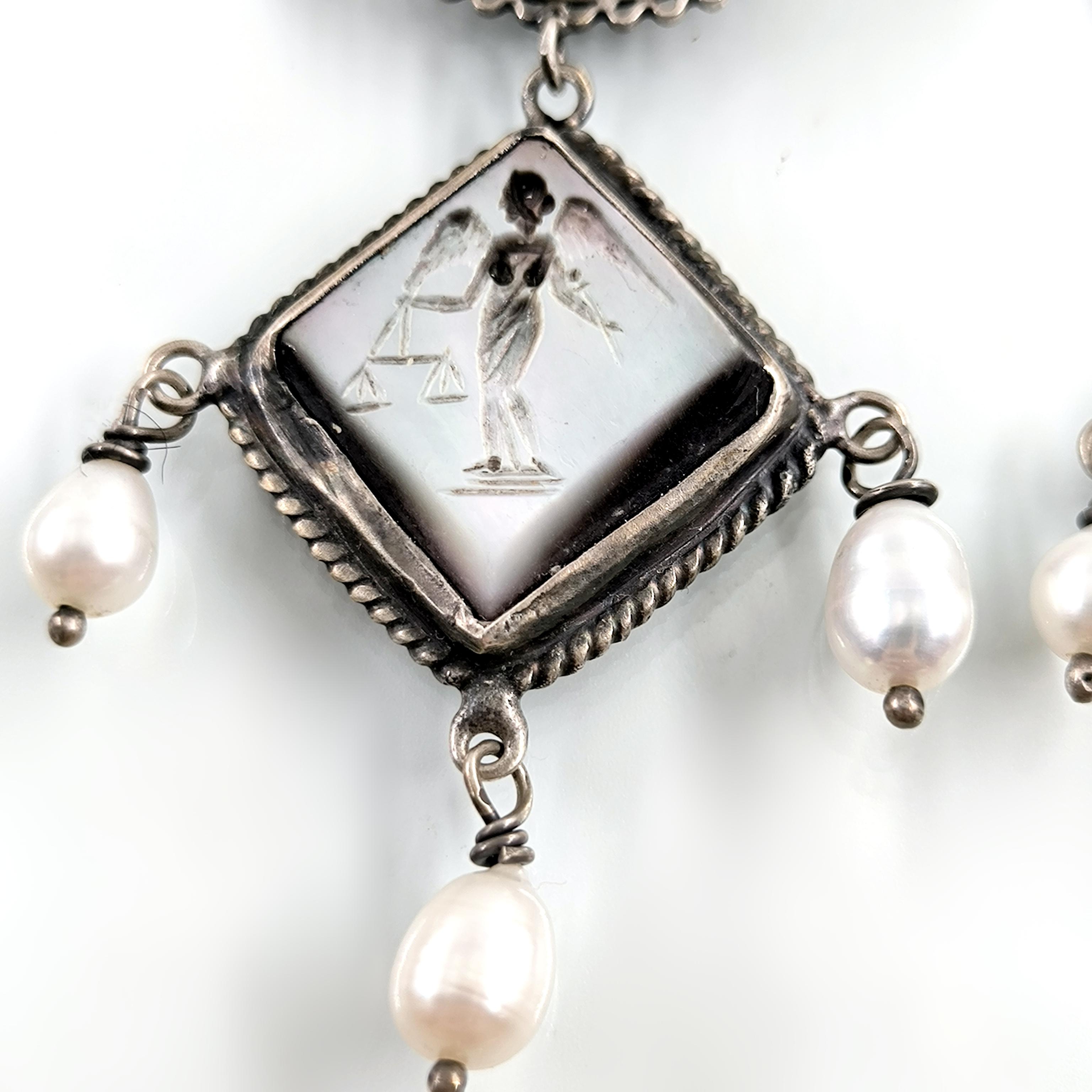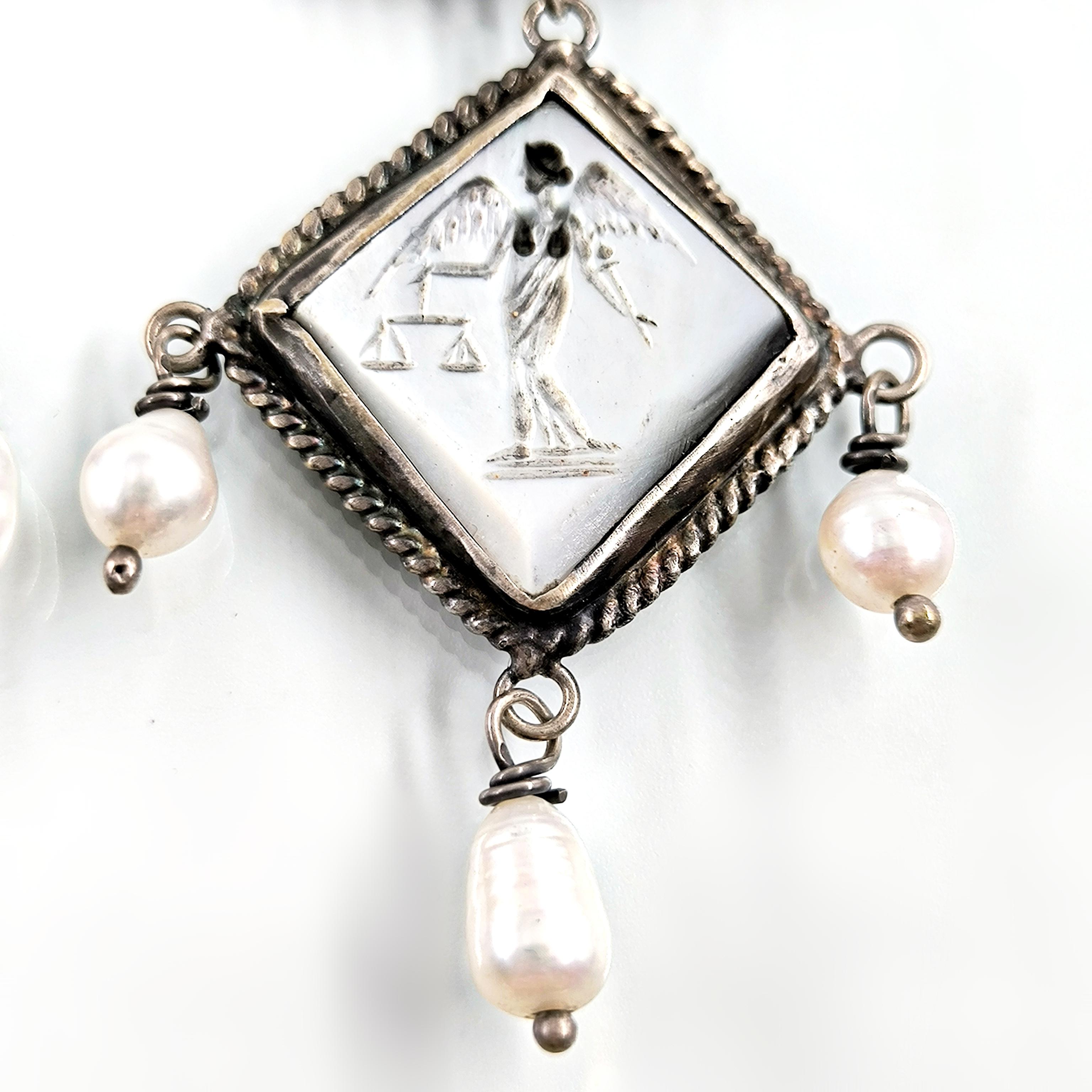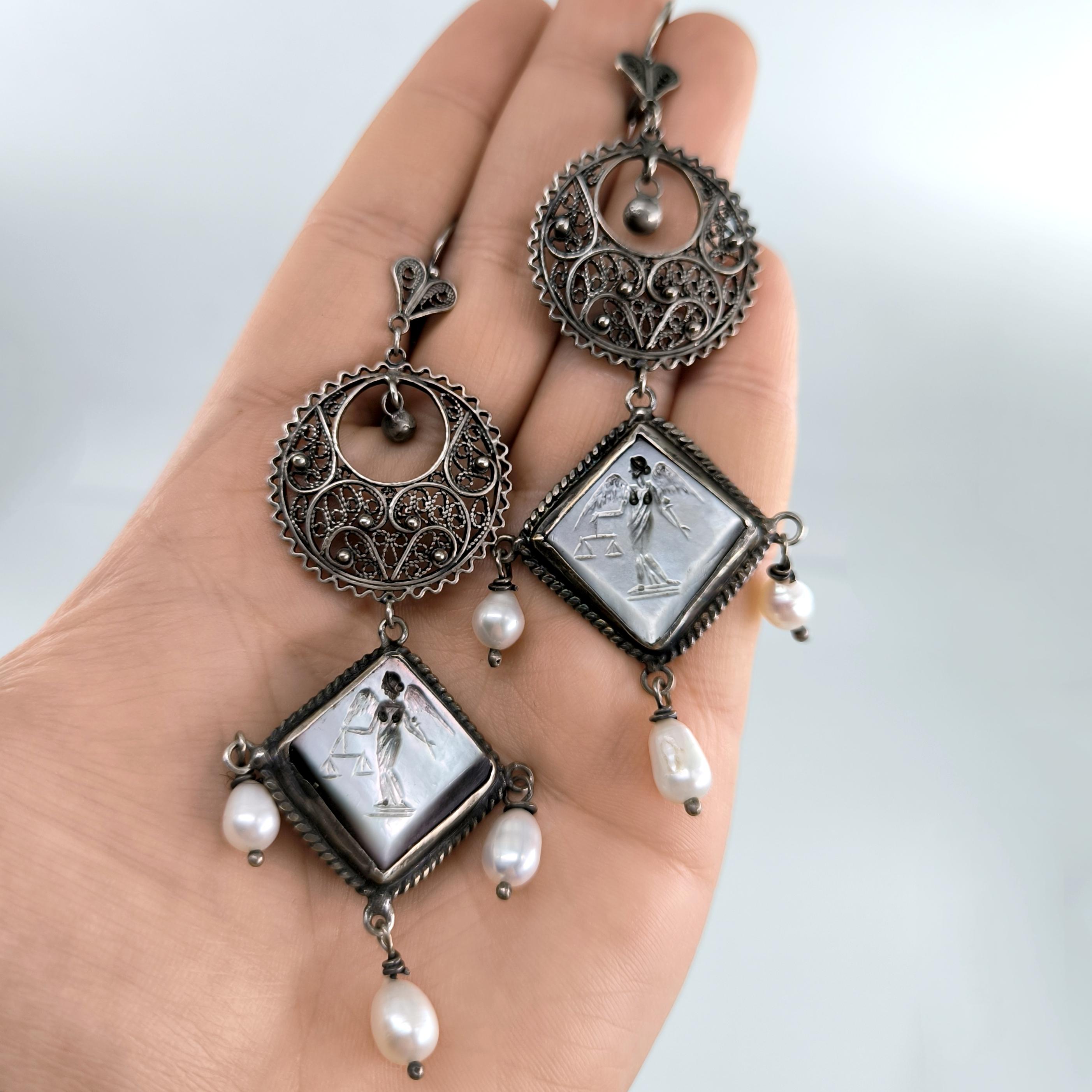 Doğal incilerle tamamlanan bu tasarım, hem zarif hem de ruhani bir aura taşır.