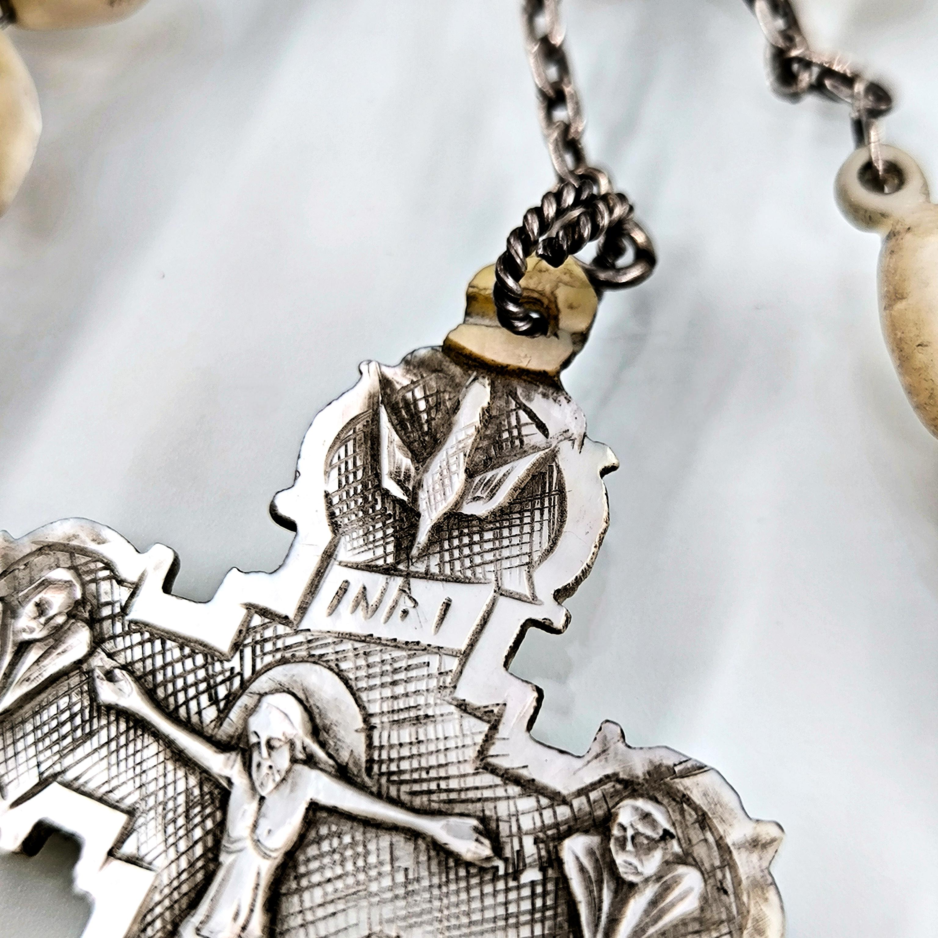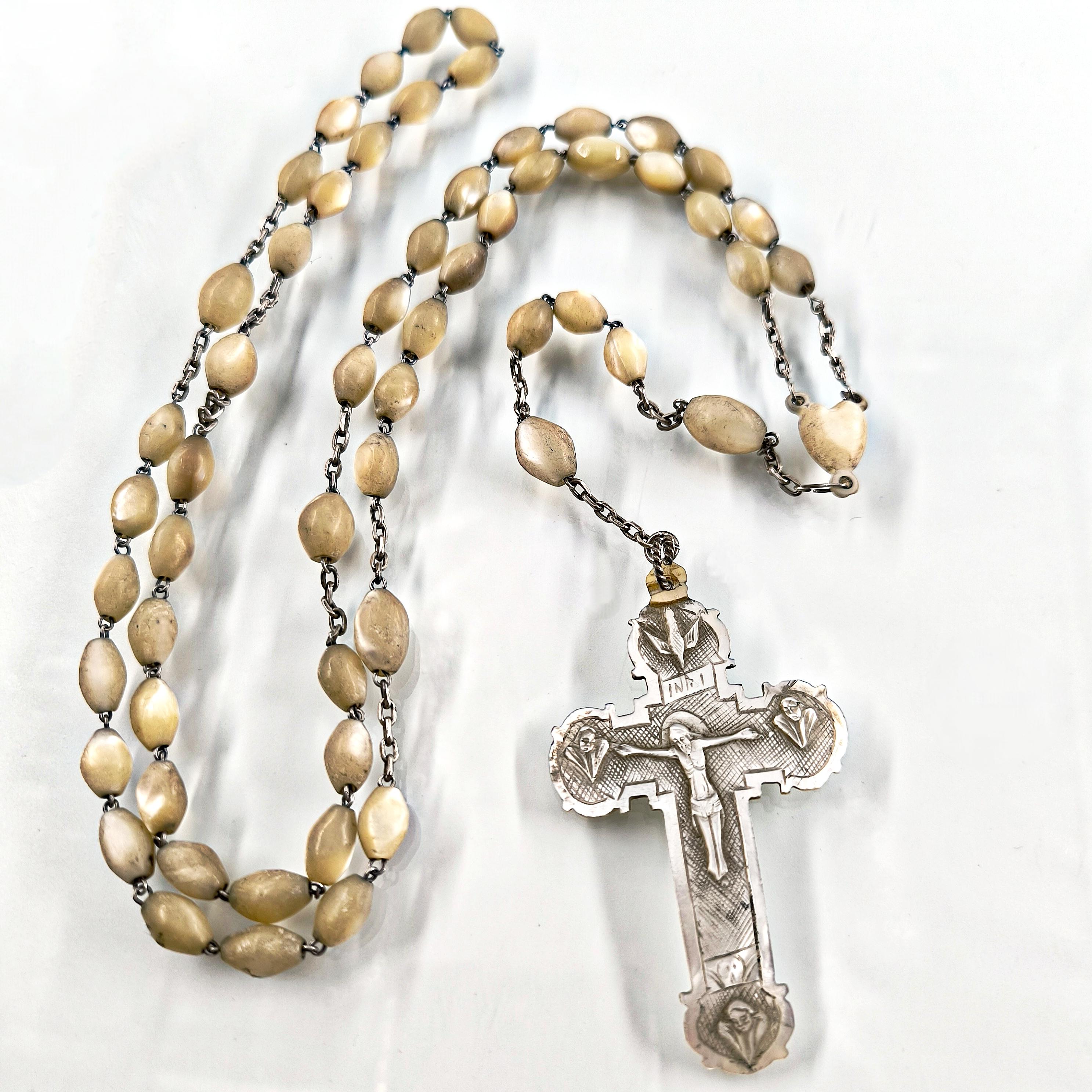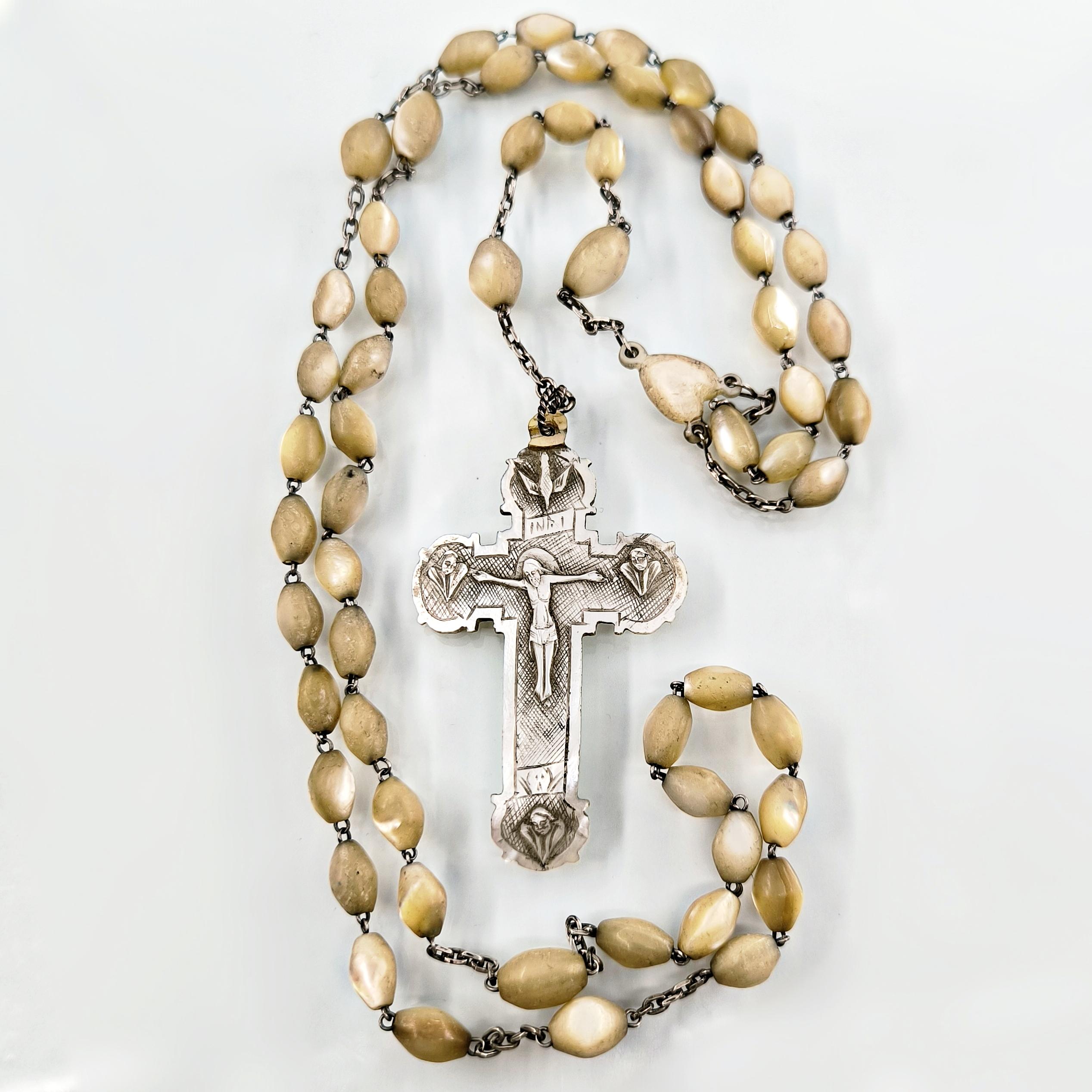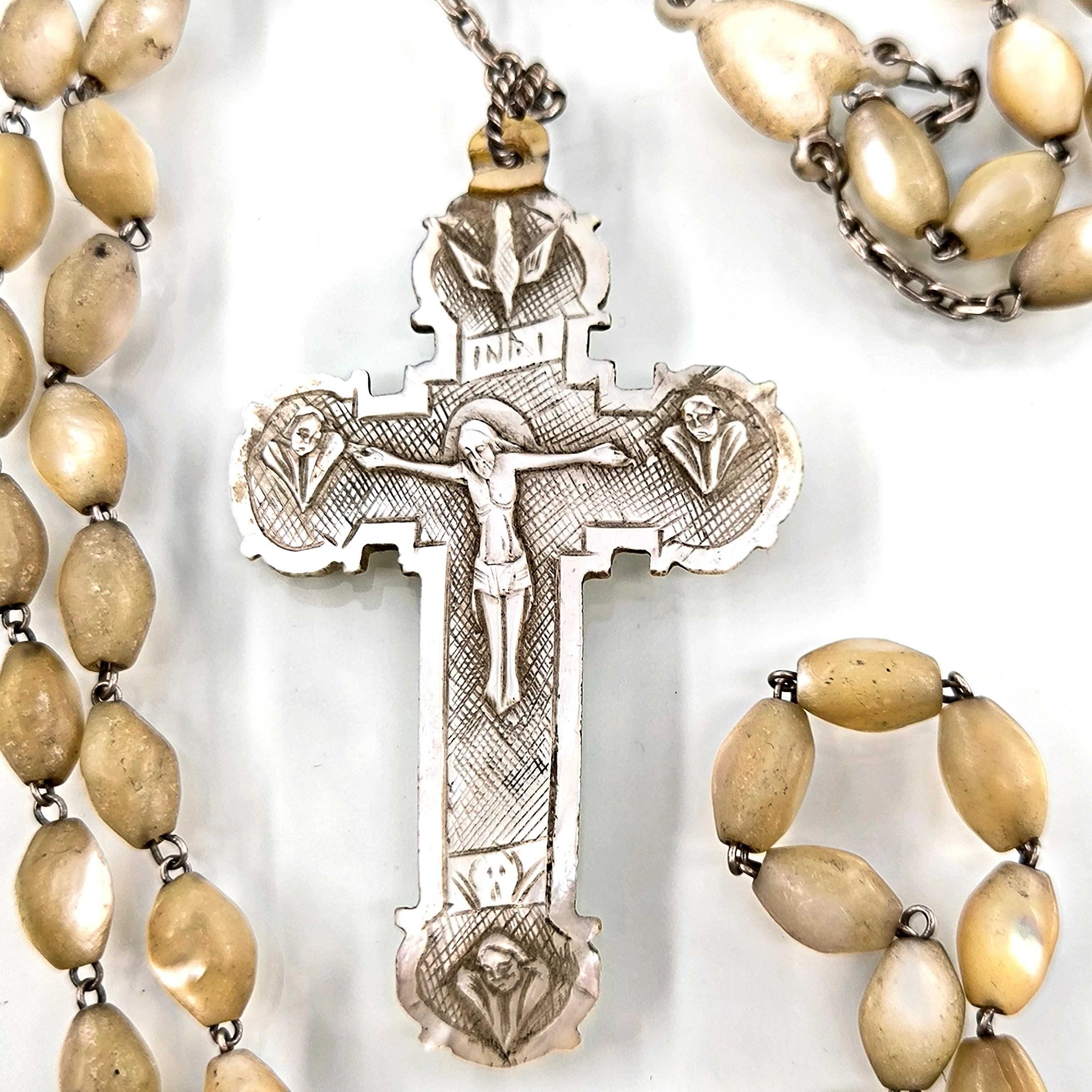 Gerçek bir antika 1910-20'li yıllardan komple sedef üzeri el oyma nadir çıkacak bir güzellik Rahip kolyesi.