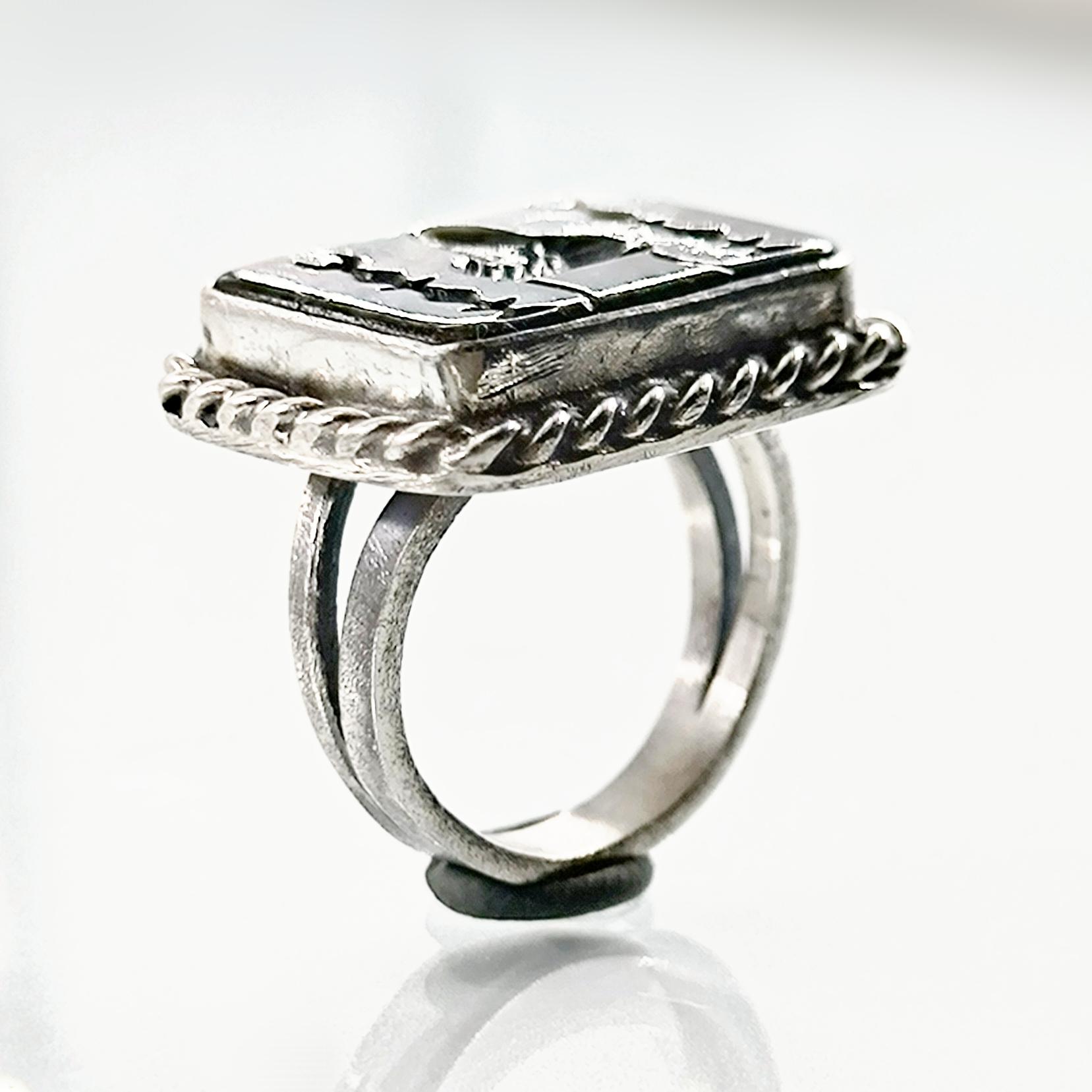 Kadim öğretinin sessizliğinde derler ki: hakikate ulaşmak, sesin değil kalbin döndüğü yerdedir. Mevlevi sikkesinin manevi ağırlığı ve hilalin ilahi ışığı arasında yükselen bu sembol, insanın dünyevi benliğinden sıyrılıp aşkın farkındalığa yükselişini anlatır. Abalone sedefin renklerinde yankılanan her ışık kırılması, sema’nın döngüsündeki ruhsal uyanışın titreşimi gibidir. Negatif intaglio tekniğiyle işlenmiş Mevlevi sikkesi, iki hilalli alem arasında ilahi dengeyi simgeleyen güçlü bir sembol olarak hayat bulur. El işçiliği 925 ayar gümüşten üretilmiş olup tek adet olarak hazırlanmıştır. Zamansız bir maneviyatı taşıyan özel bir koleksiyon parçasıdır.
