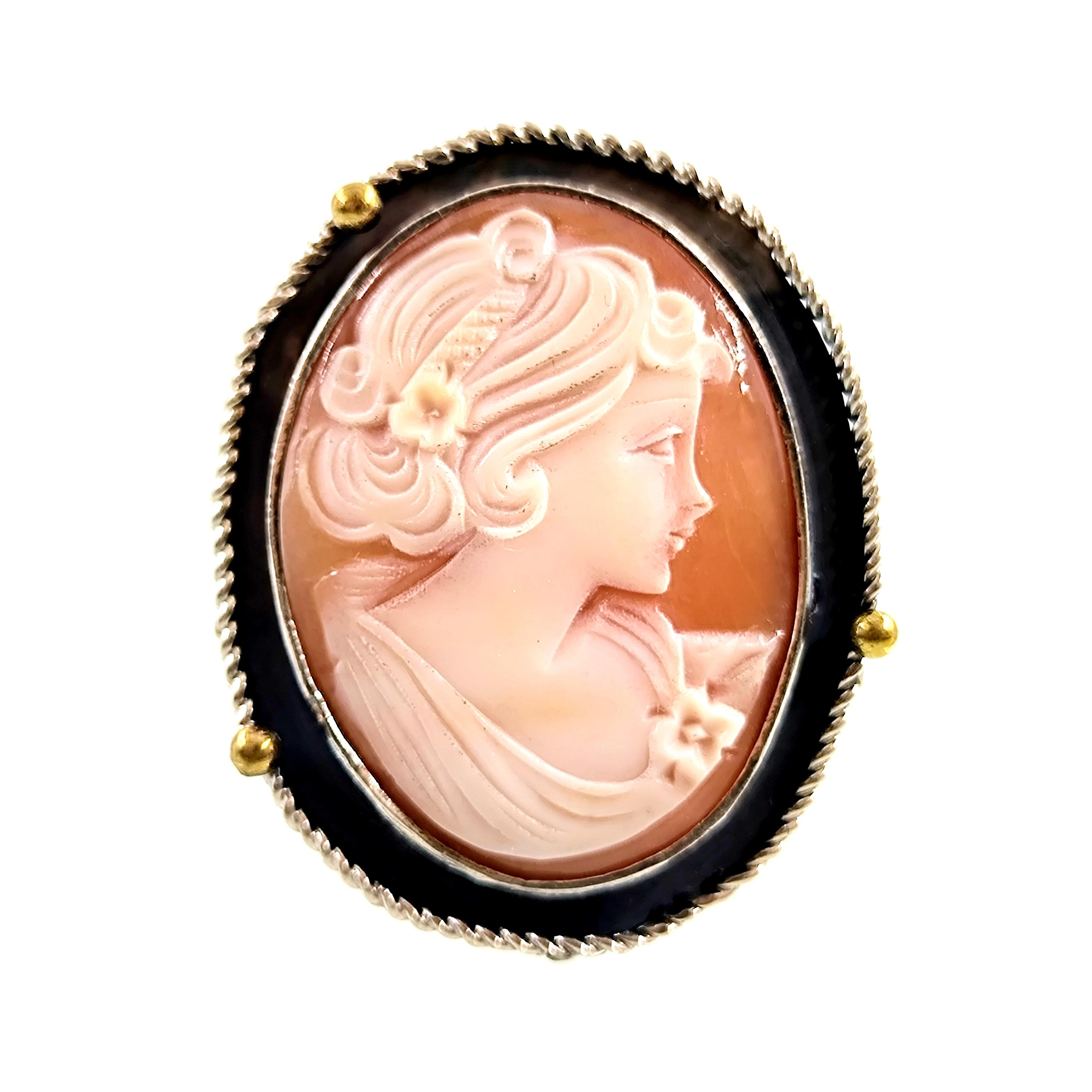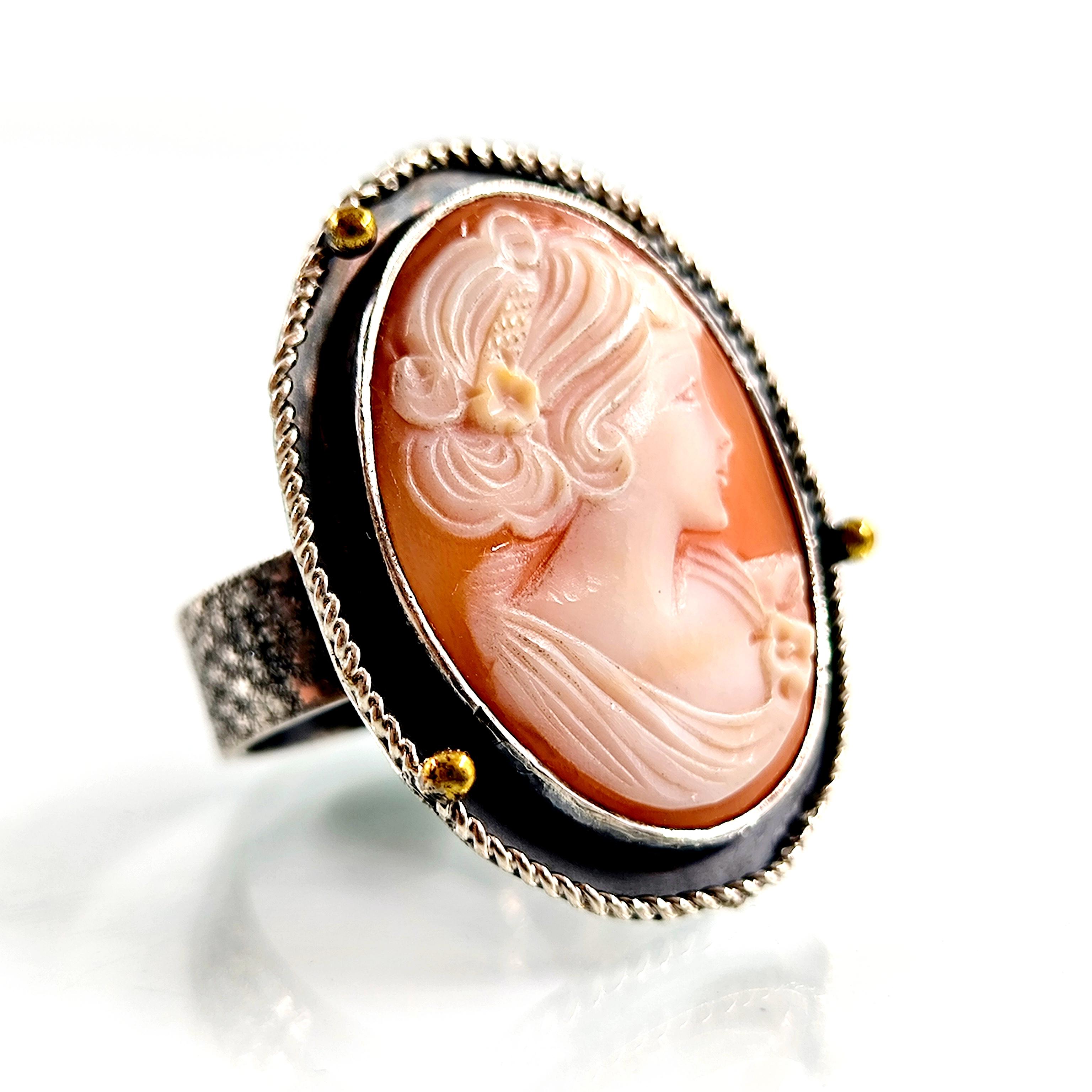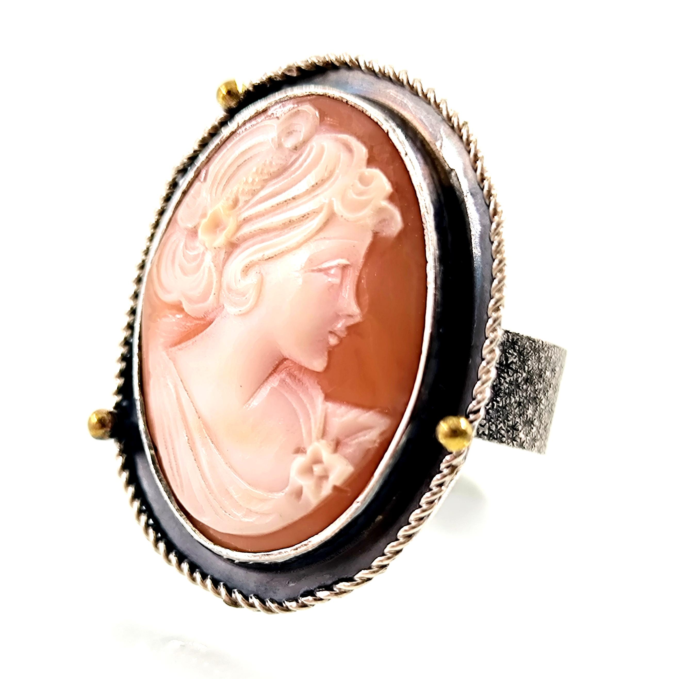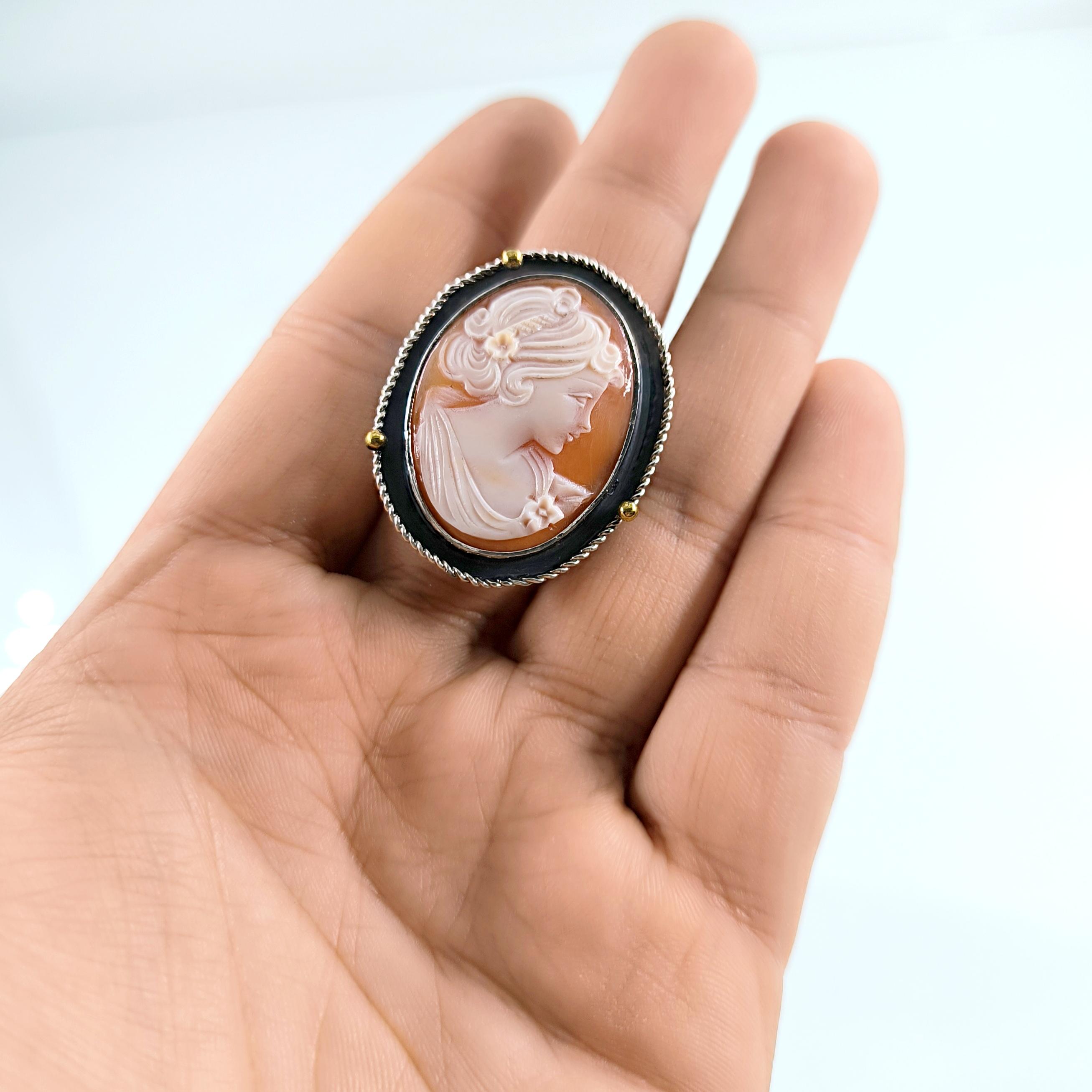 Shell kabuk üzeri oyma ''LEYDİ'' tasvirli Cameo 925 Ayar Gümüş yüzüğümüz!