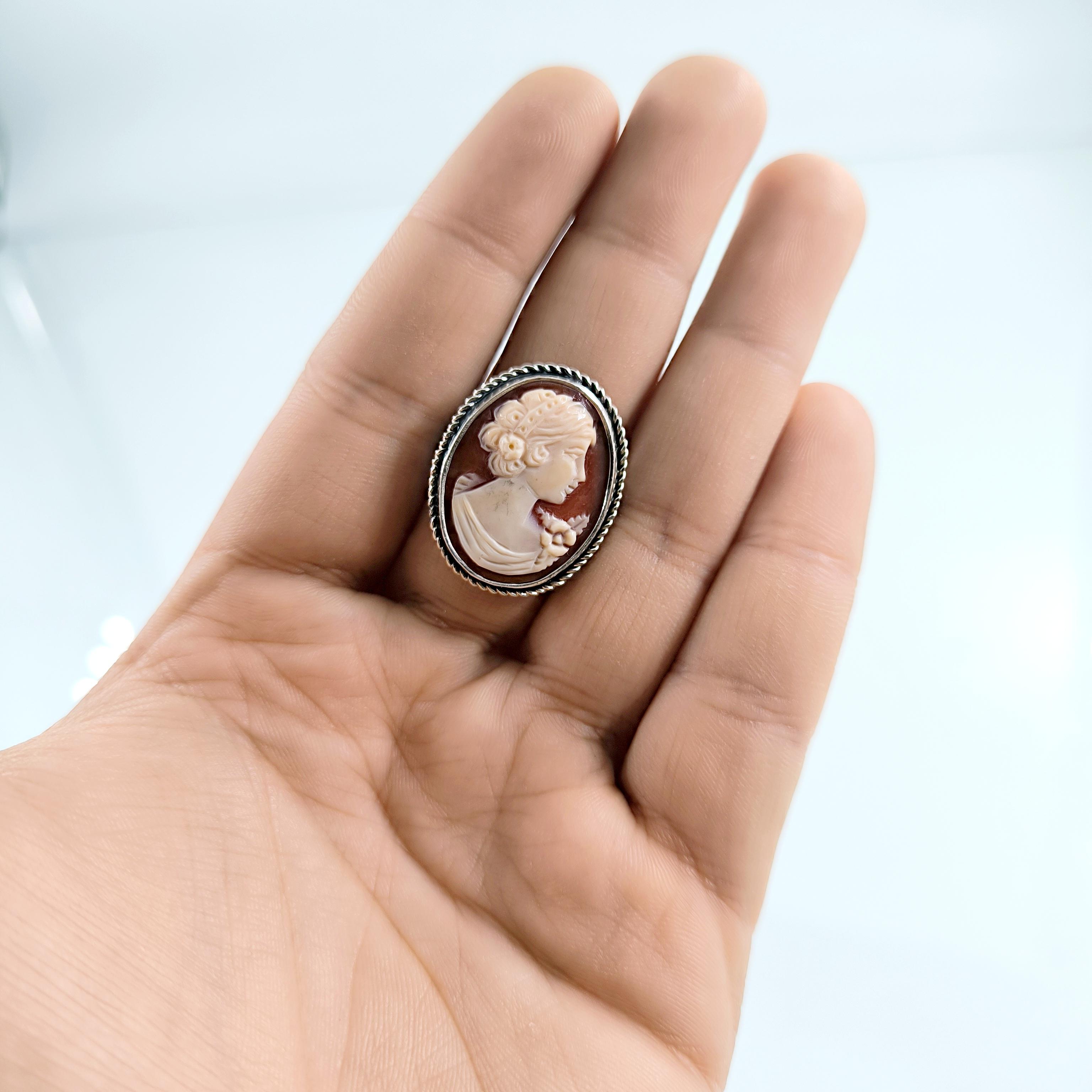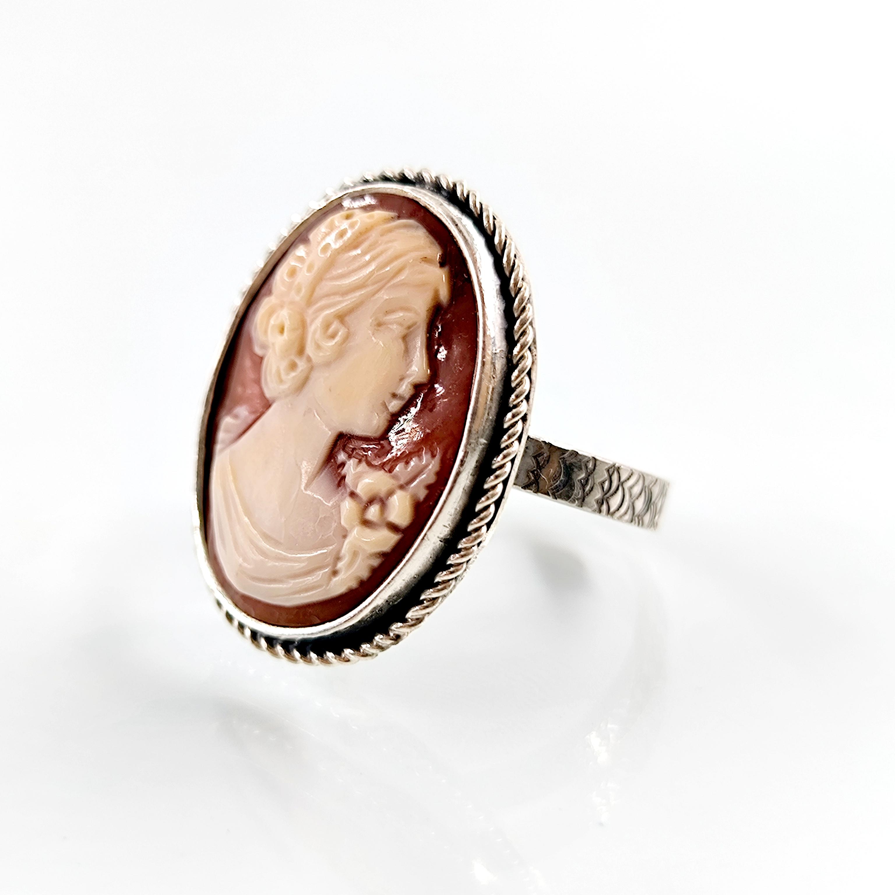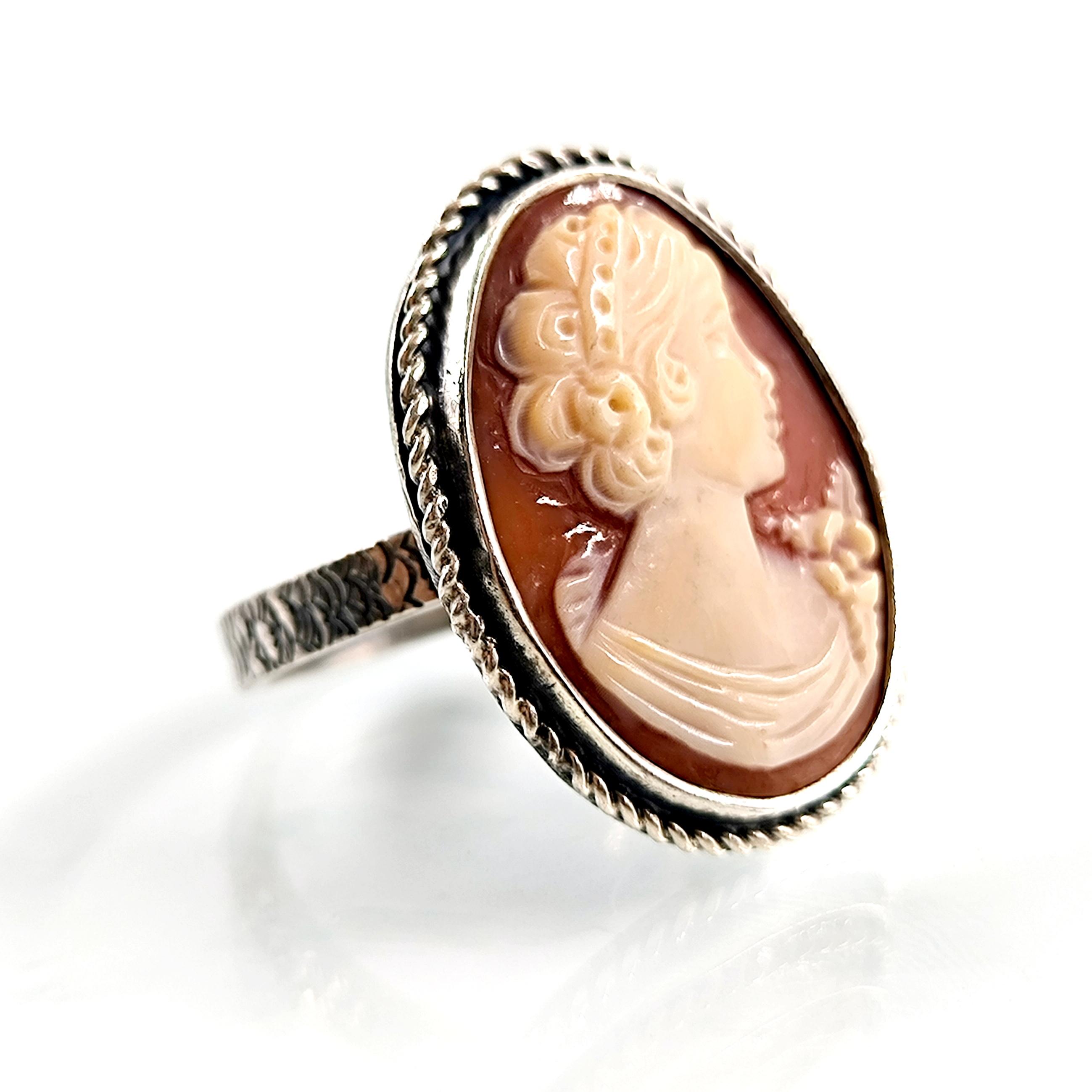Shell kabuk üzeri oyma ''LEYDİ'' tasvirli Cameo 925 Ayar Gümüş yüzüğümüz!