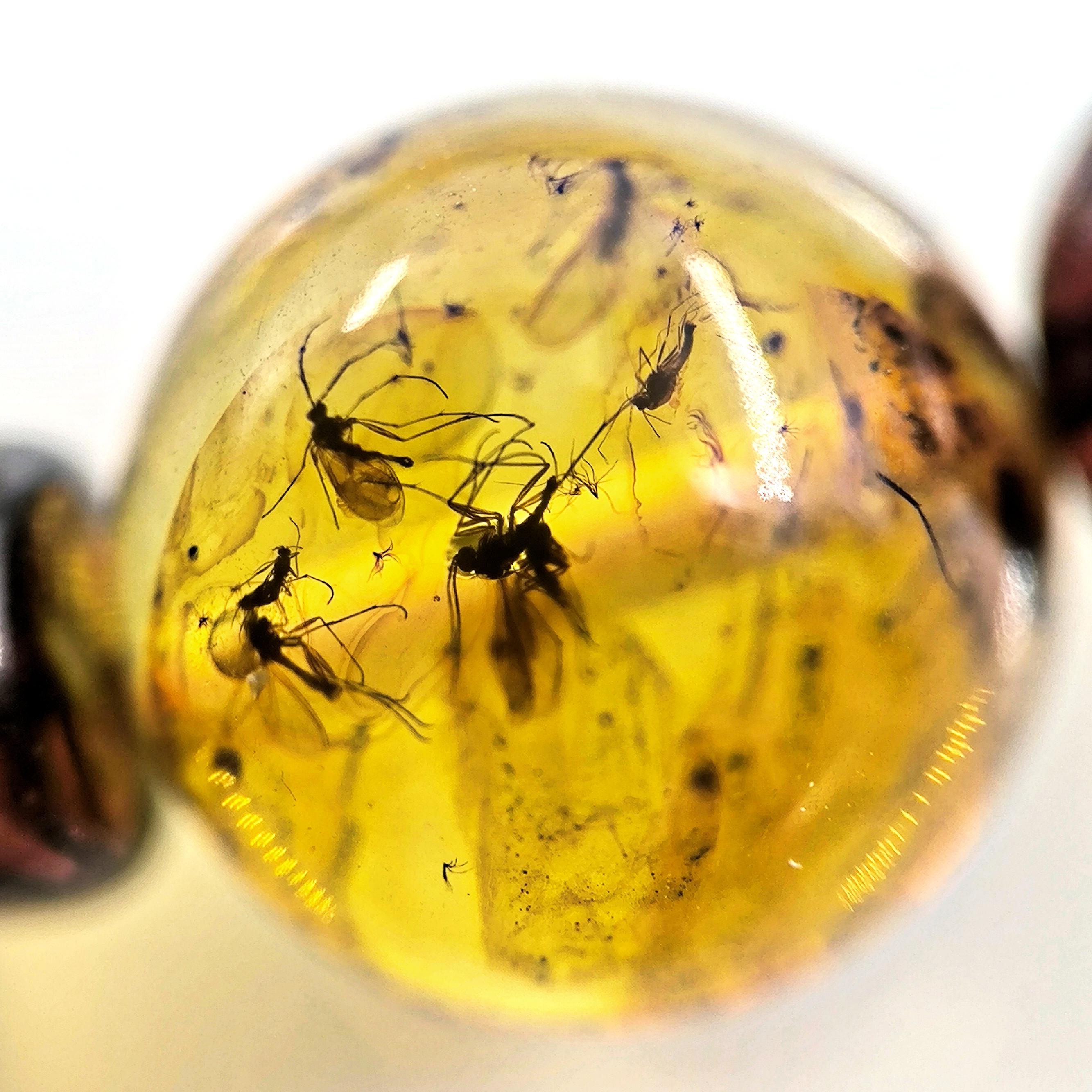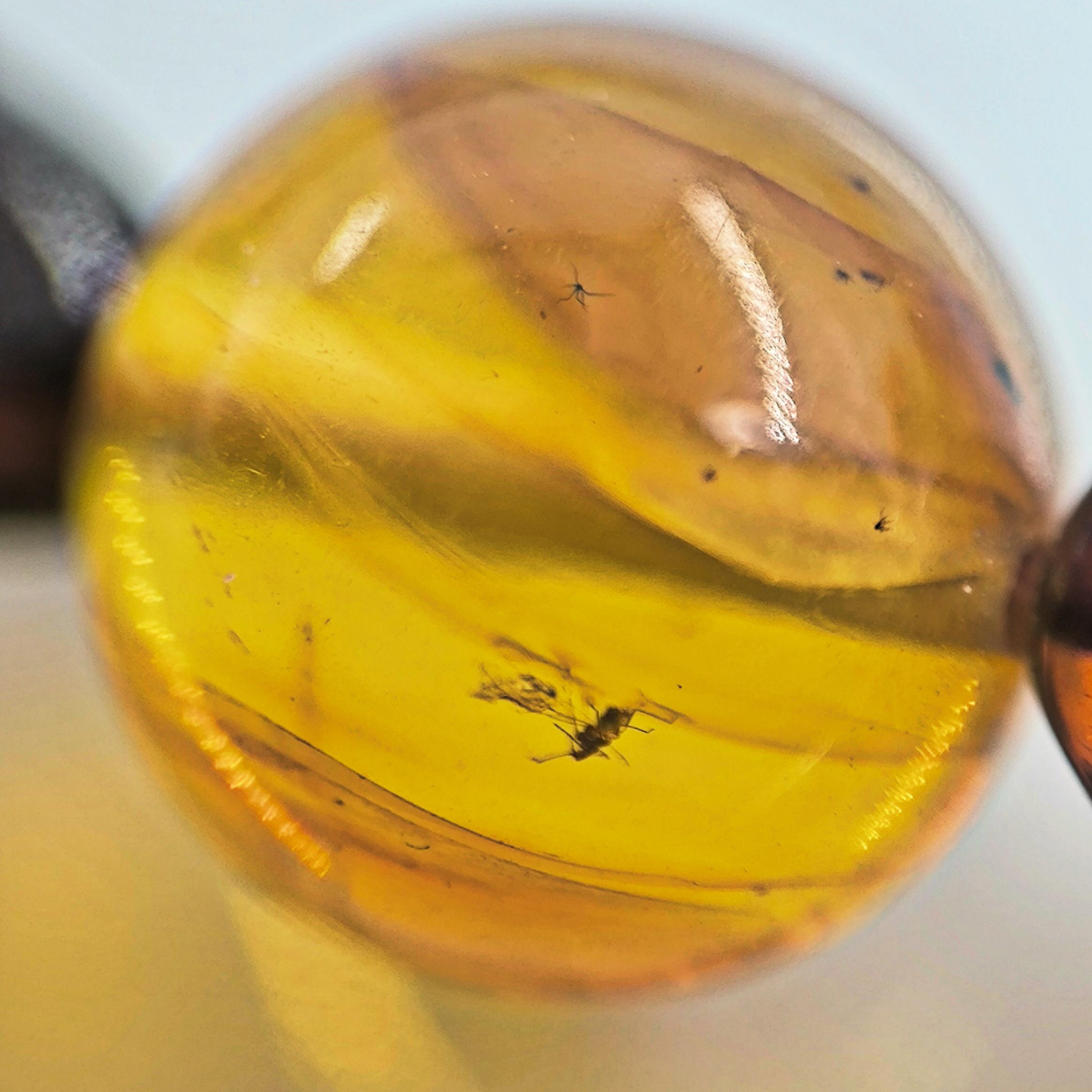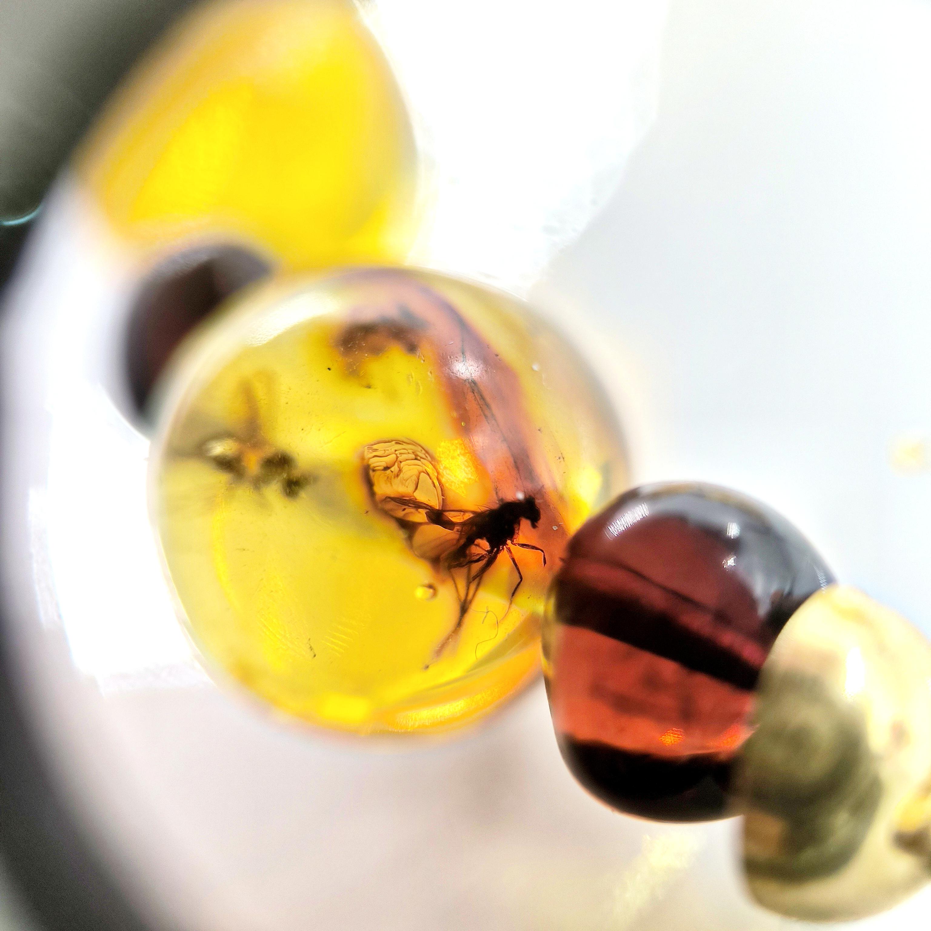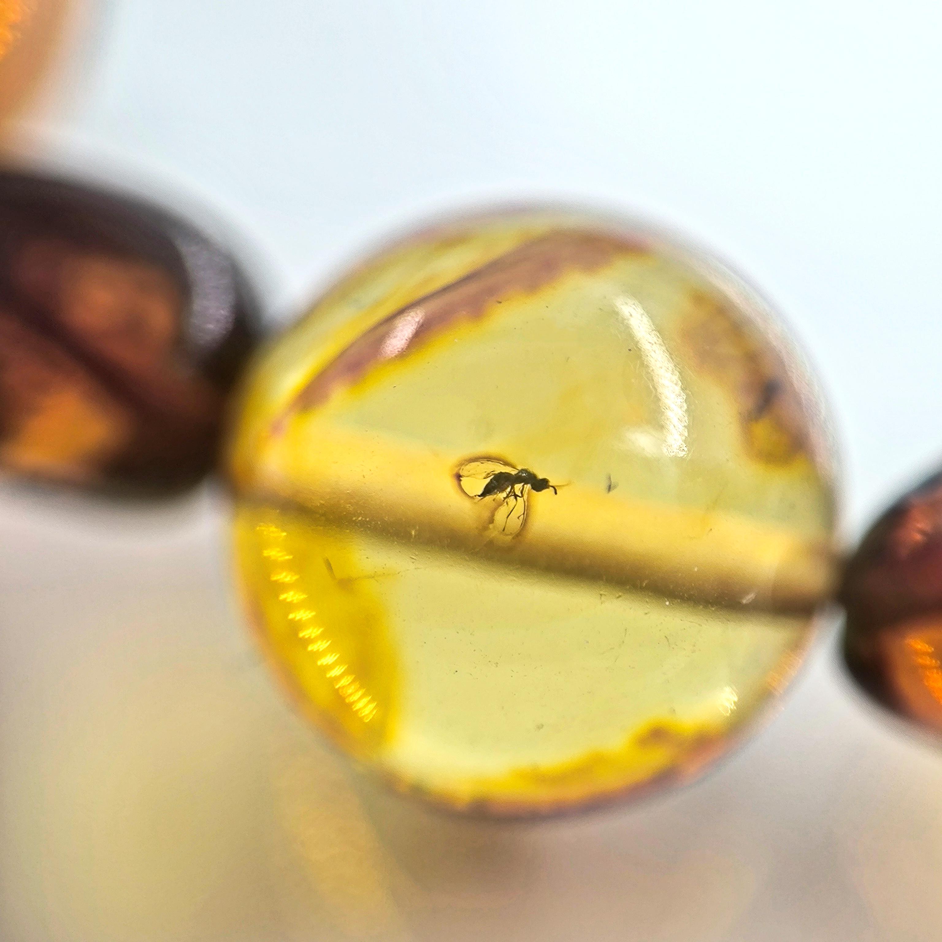 1960’lı yıllardan günümüze ulaşan bu özel kolye, tamamı doğal damla kehribardan oluşan nadir bir mücevherdir. Her bir küre habbenin içinde farklı sinek, böcek ve karınca fosilleri barındıran bu parça, milyonlarca yıl öncesinin canlılarını zamanın içinde mühürleyerek adeta boyunda taşınan bir doğa arşivi niteliği taşır. Kehribarın sıcak bal tonlarıyla fosillerin net biçimde görülebildiği iç yapısı, kolyeye hem görsel derinlik hem de güçlü bir koleksiyon değeri kazandırır; doğallığı bozulmamış, müdahalesiz yapısıyla hem mücevher hem de bilimsel ve tarihsel bir tanıklık sunan son derece etkileyici bir eserdir. Hem tarih, hem bilim hemde bir mücevher.. Ayrıca eserimiz özel Led ışıklı mücevher kutusu ile sizlere ulaşacaktır!