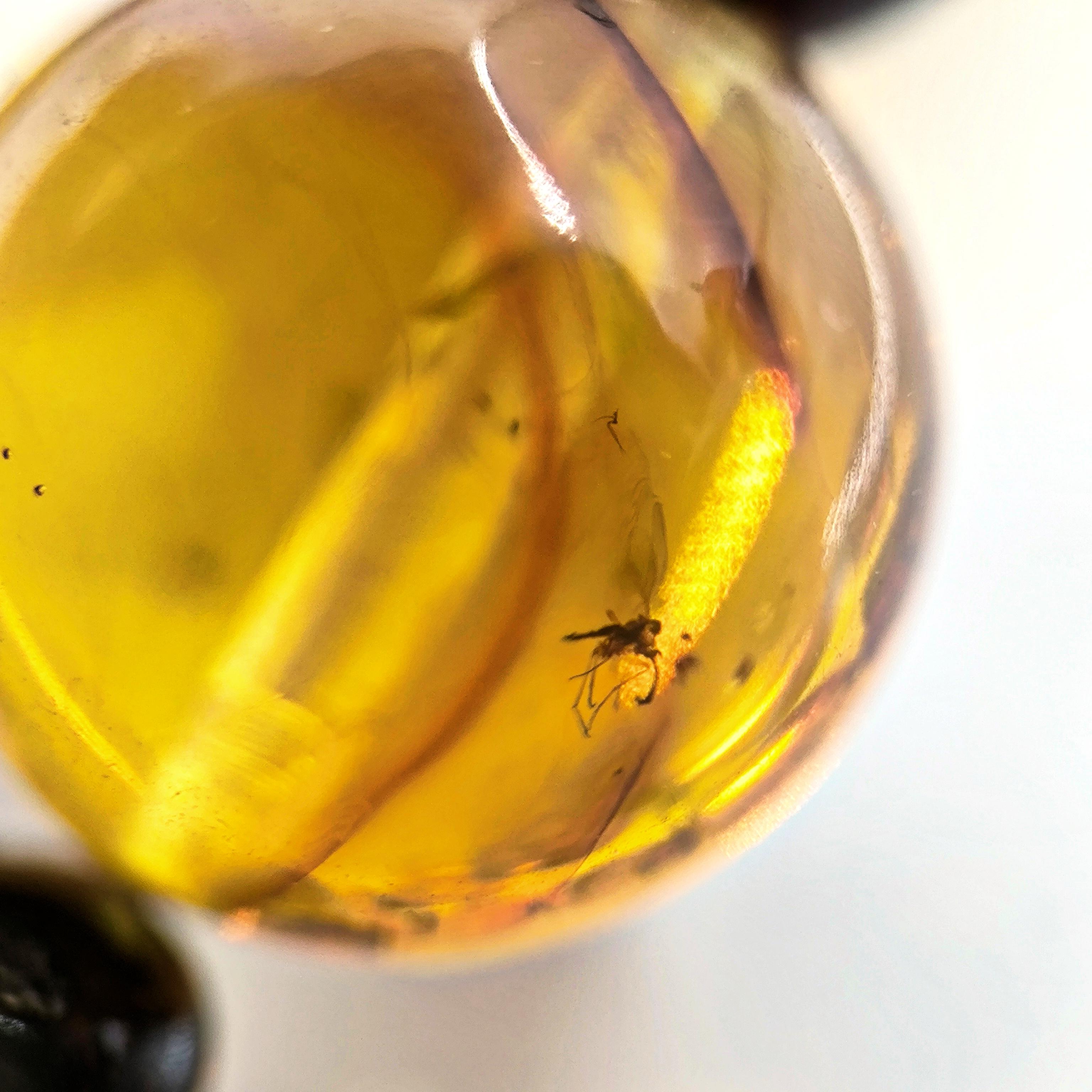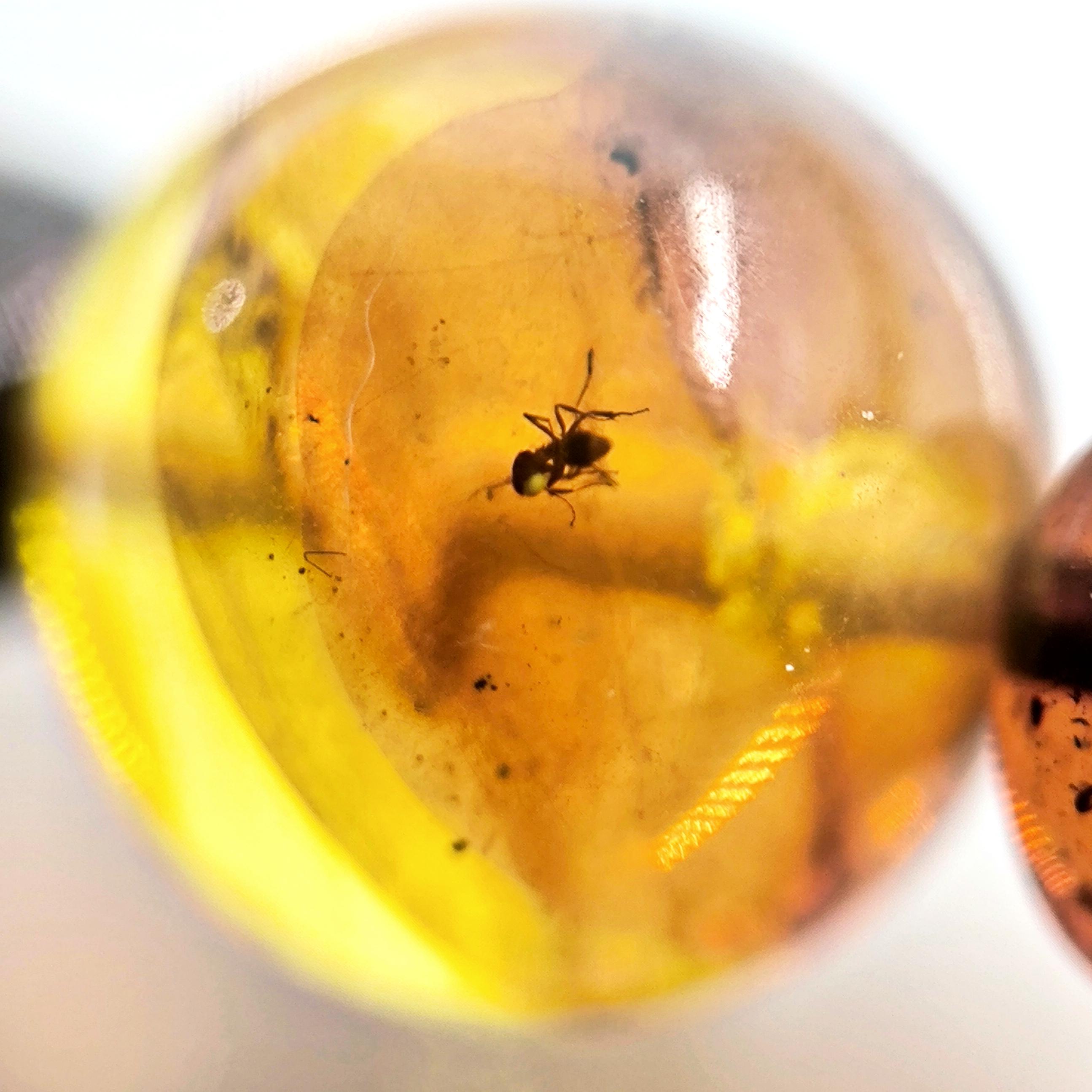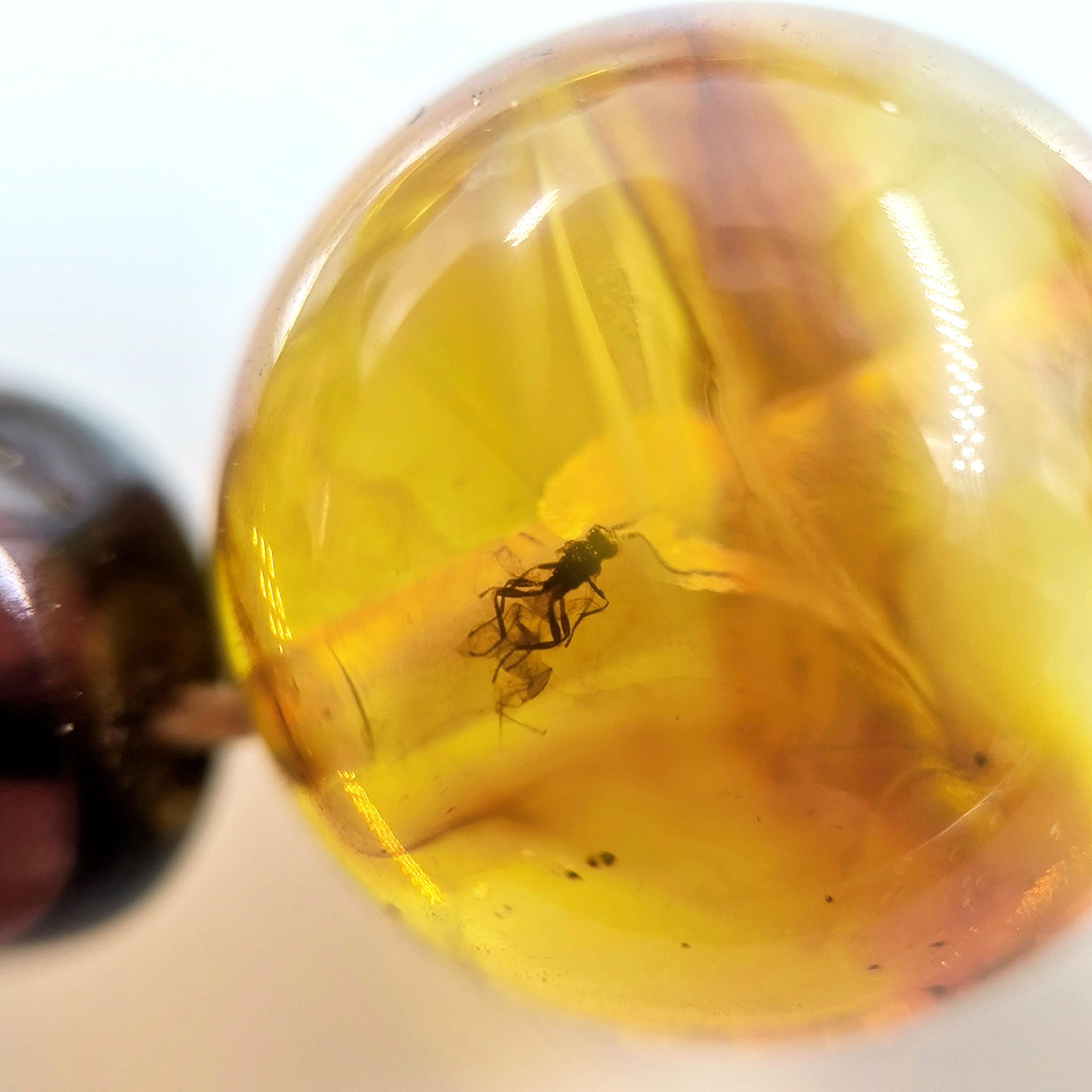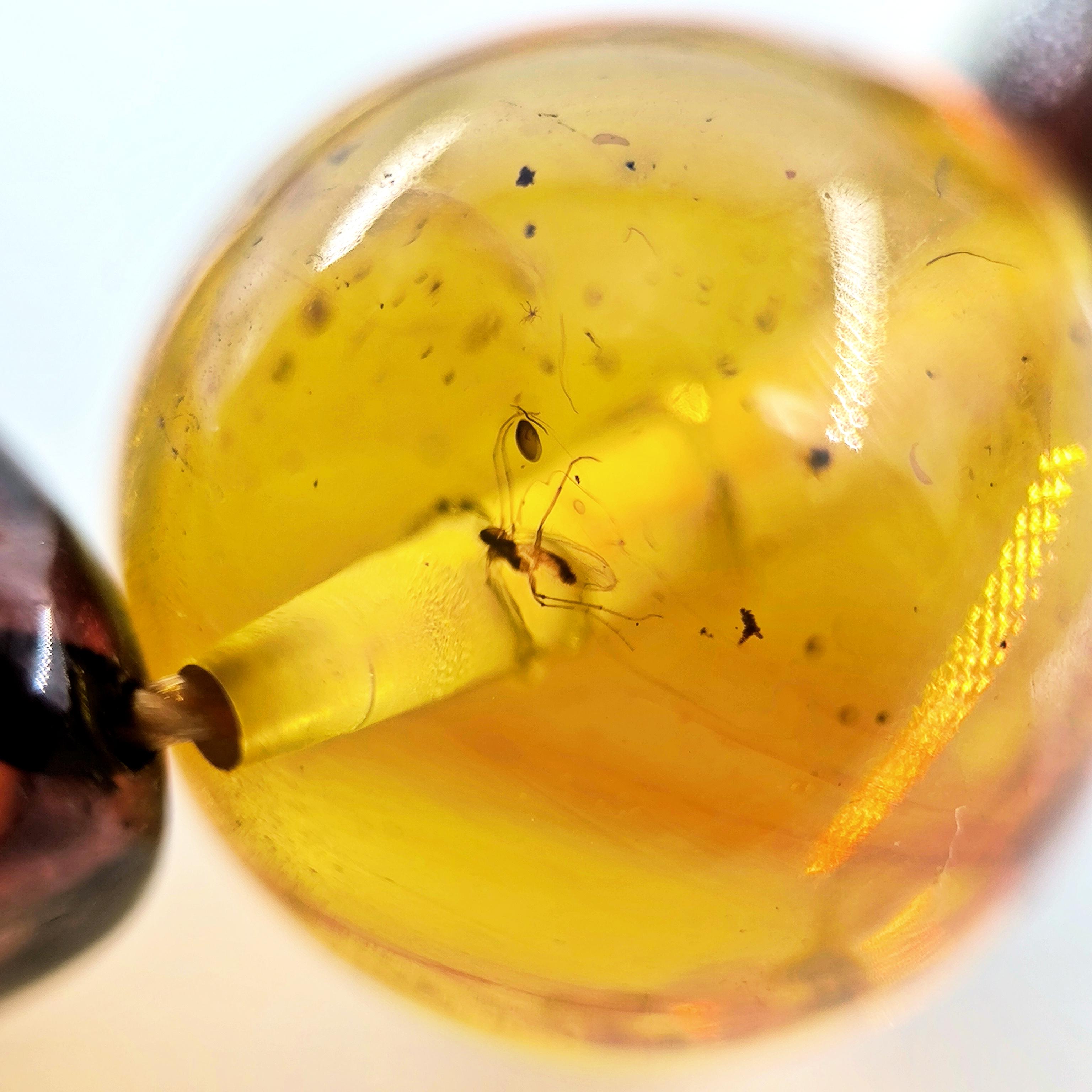 1960’lı yıllardan günümüze ulaşan bu özel kolye, tamamı doğal damla kehribardan oluşan nadir bir mücevherdir. Her bir küre habbenin içinde farklı sinek, böcek ve karınca fosilleri barındıran bu parça, milyonlarca yıl öncesinin canlılarını zamanın içinde mühürleyerek adeta boyunda taşınan bir doğa arşivi niteliği taşır. Kehribarın sıcak bal tonlarıyla fosillerin net biçimde görülebildiği iç yapısı, kolyeye hem görsel derinlik hem de güçlü bir koleksiyon değeri kazandırır; doğallığı bozulmamış, müdahalesiz yapısıyla hem mücevher hem de bilimsel ve tarihsel bir tanıklık sunan son derece etkileyici bir eserdir. Hem tarih, hem bilim hemde bir mücevher.. Ayrıca eserimiz özel Led ışıklı mücevher kutusu ile sizlere ulaşacaktır!