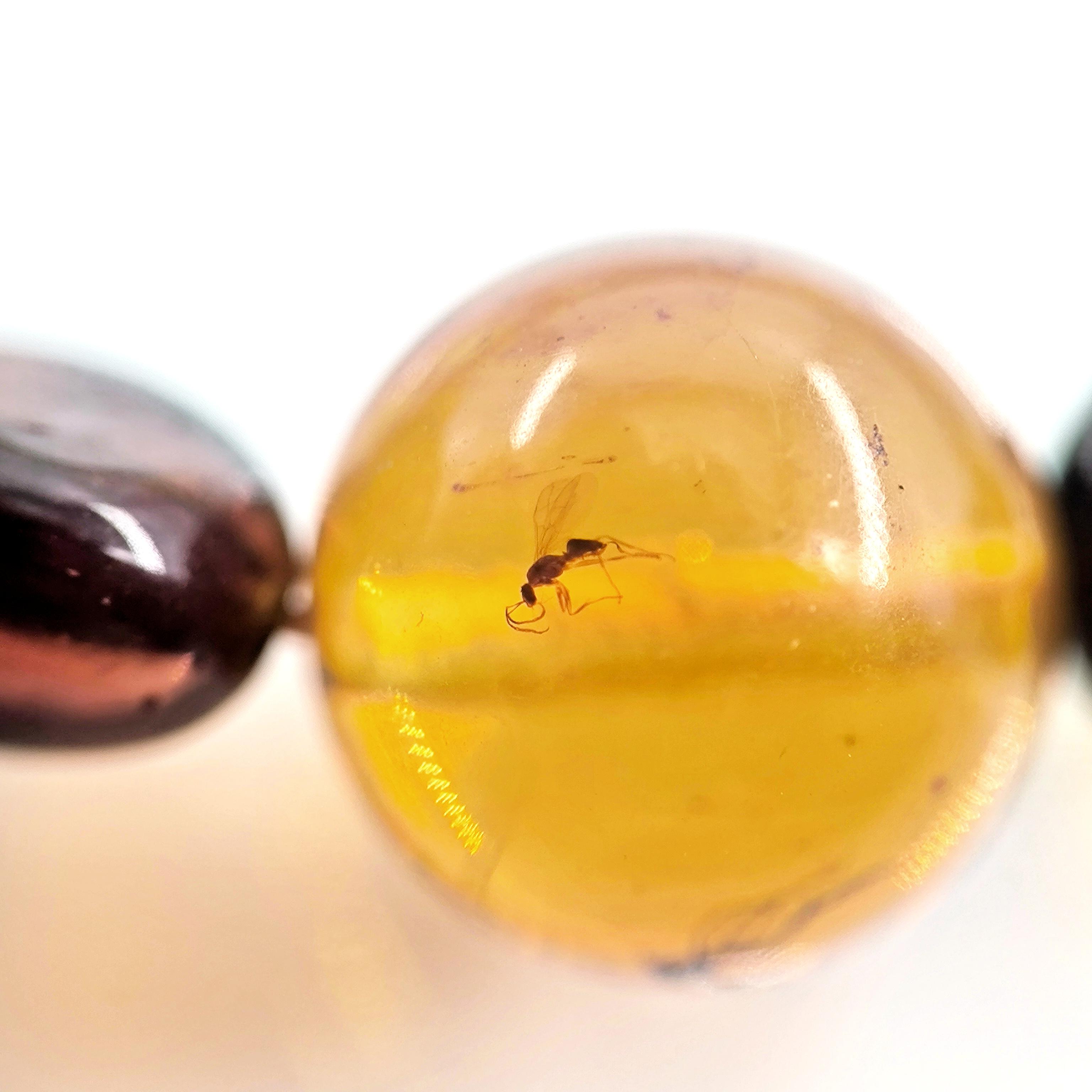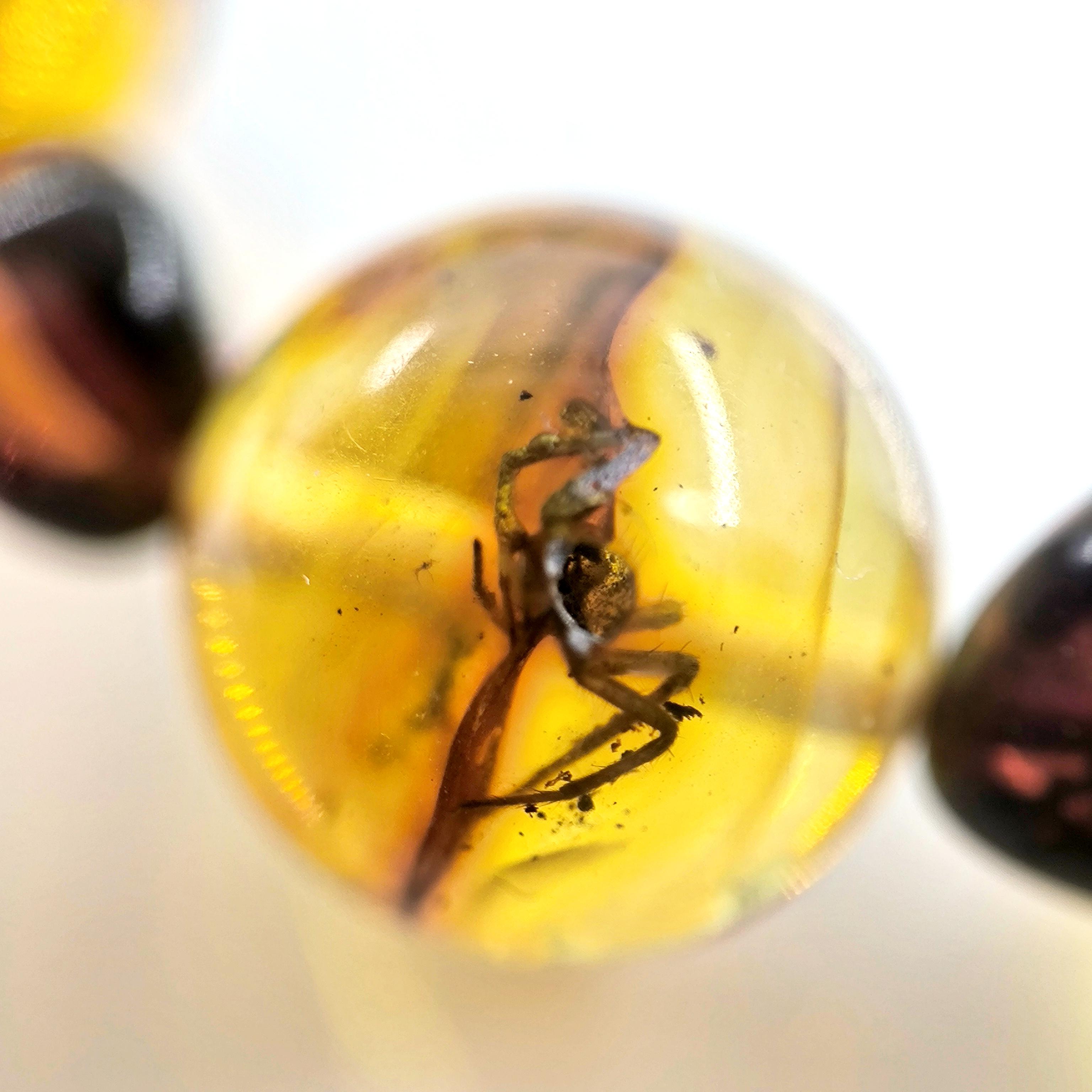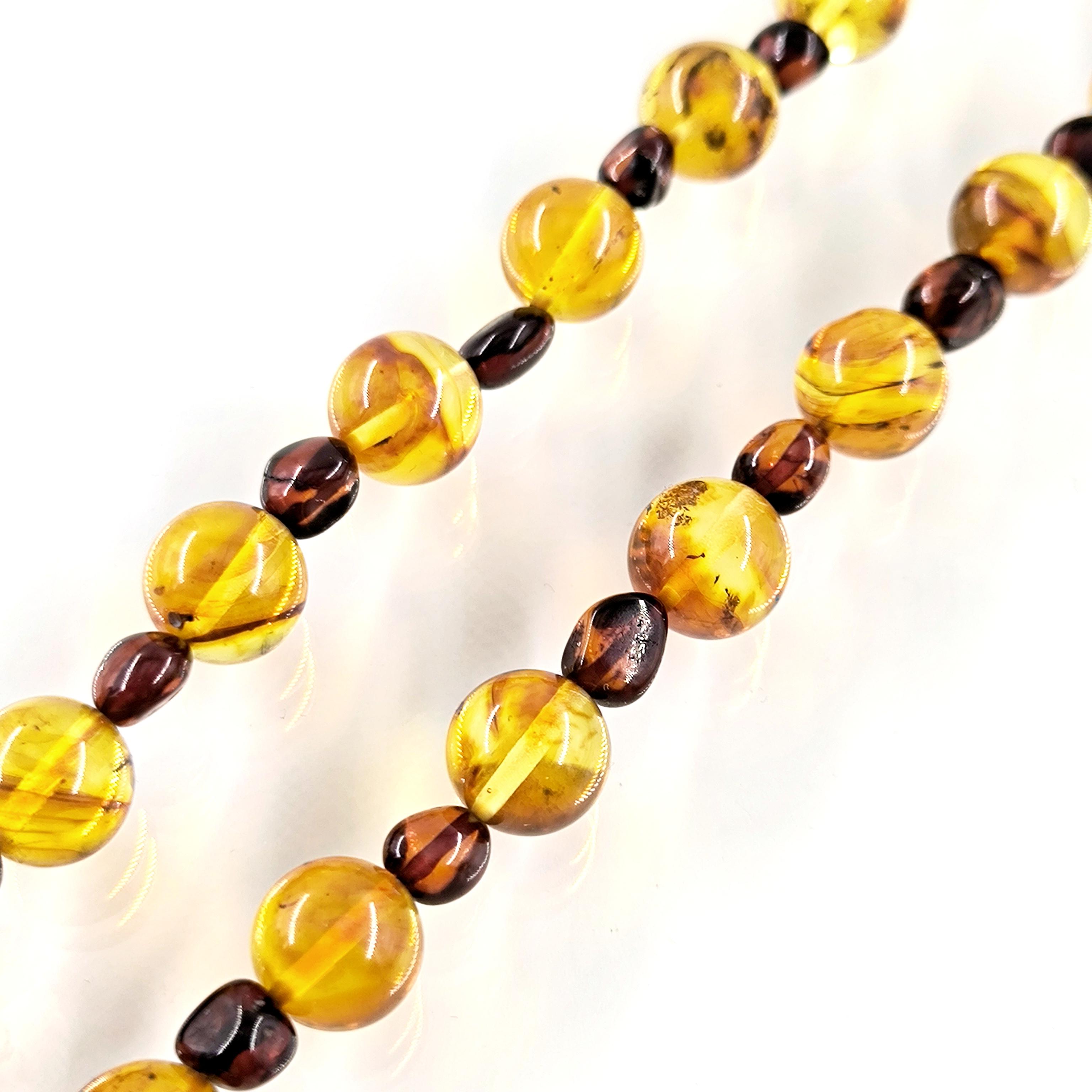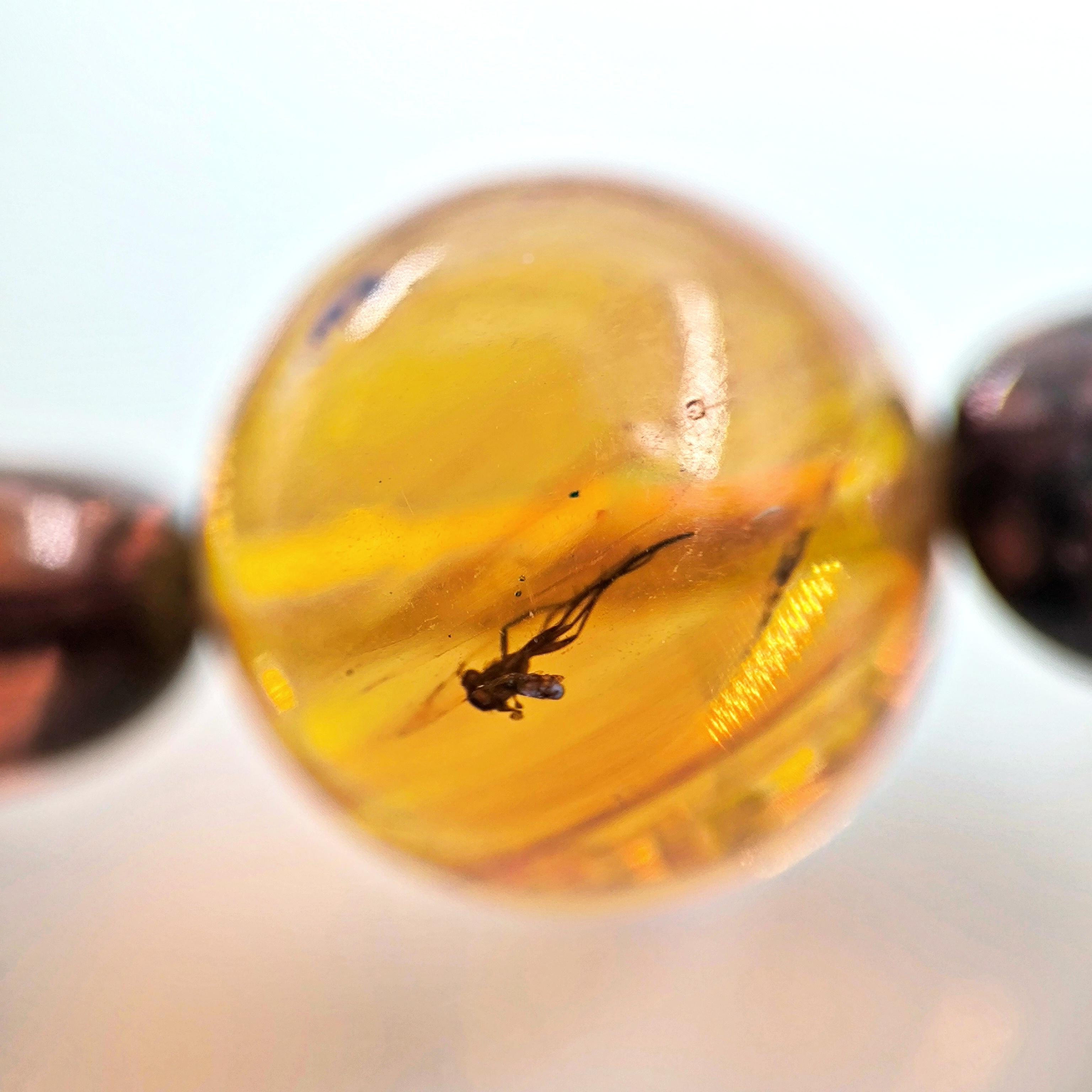 1960’lı yıllardan günümüze ulaşan bu özel kolye, tamamı doğal damla kehribardan oluşan nadir bir mücevherdir. Her bir küre habbenin içinde farklı sinek, böcek ve karınca fosilleri barındıran bu parça, milyonlarca yıl öncesinin canlılarını zamanın içinde mühürleyerek adeta boyunda taşınan bir doğa arşivi niteliği taşır. Kehribarın sıcak bal tonlarıyla fosillerin net biçimde görülebildiği iç yapısı, kolyeye hem görsel derinlik hem de güçlü bir koleksiyon değeri kazandırır; doğallığı bozulmamış, müdahalesiz yapısıyla hem mücevher hem de bilimsel ve tarihsel bir tanıklık sunan son derece etkileyici bir eserdir. Hem tarih, hem bilim hemde bir mücevher.. Ayrıca eserimiz özel Led ışıklı mücevher kutusu ile sizlere ulaşacaktır!
