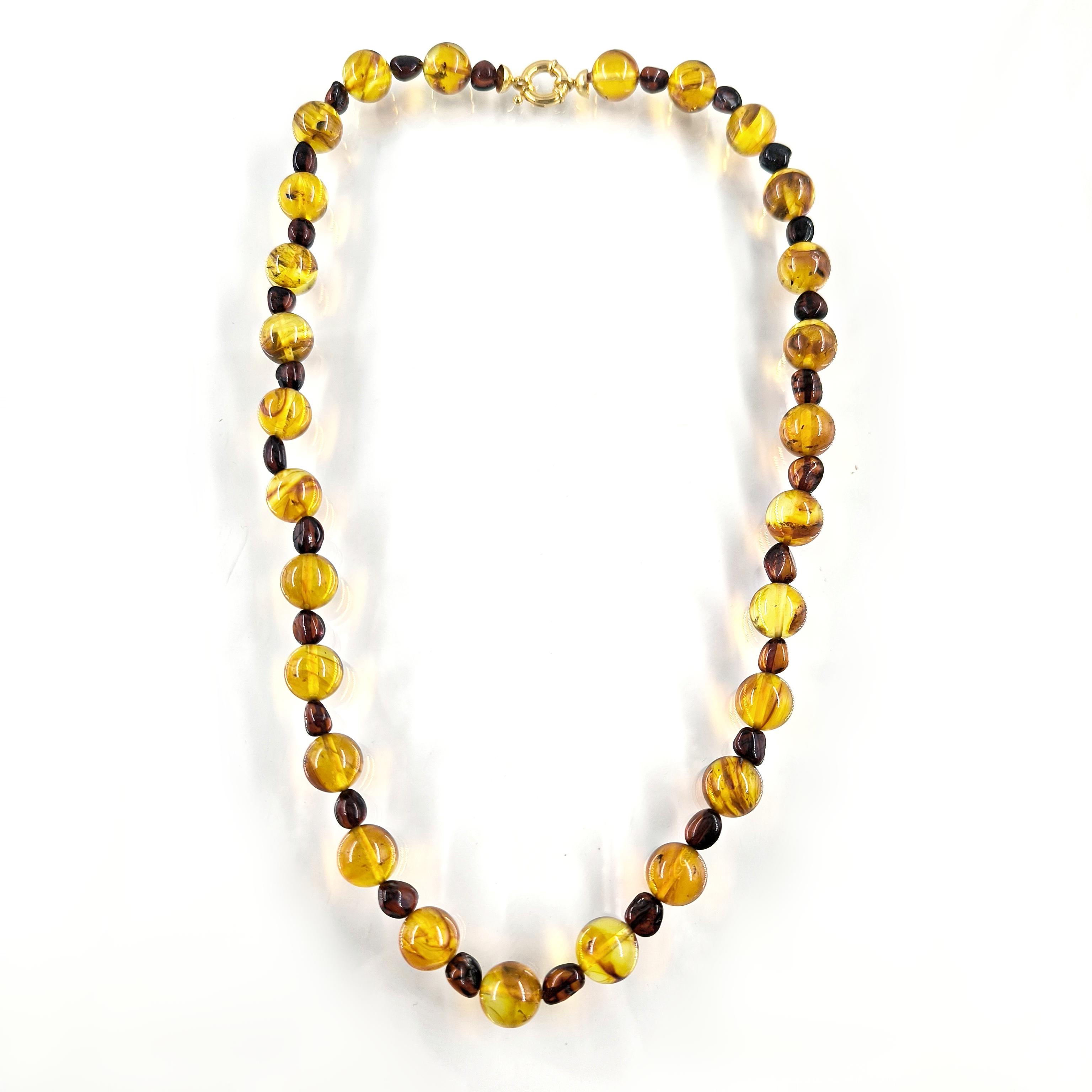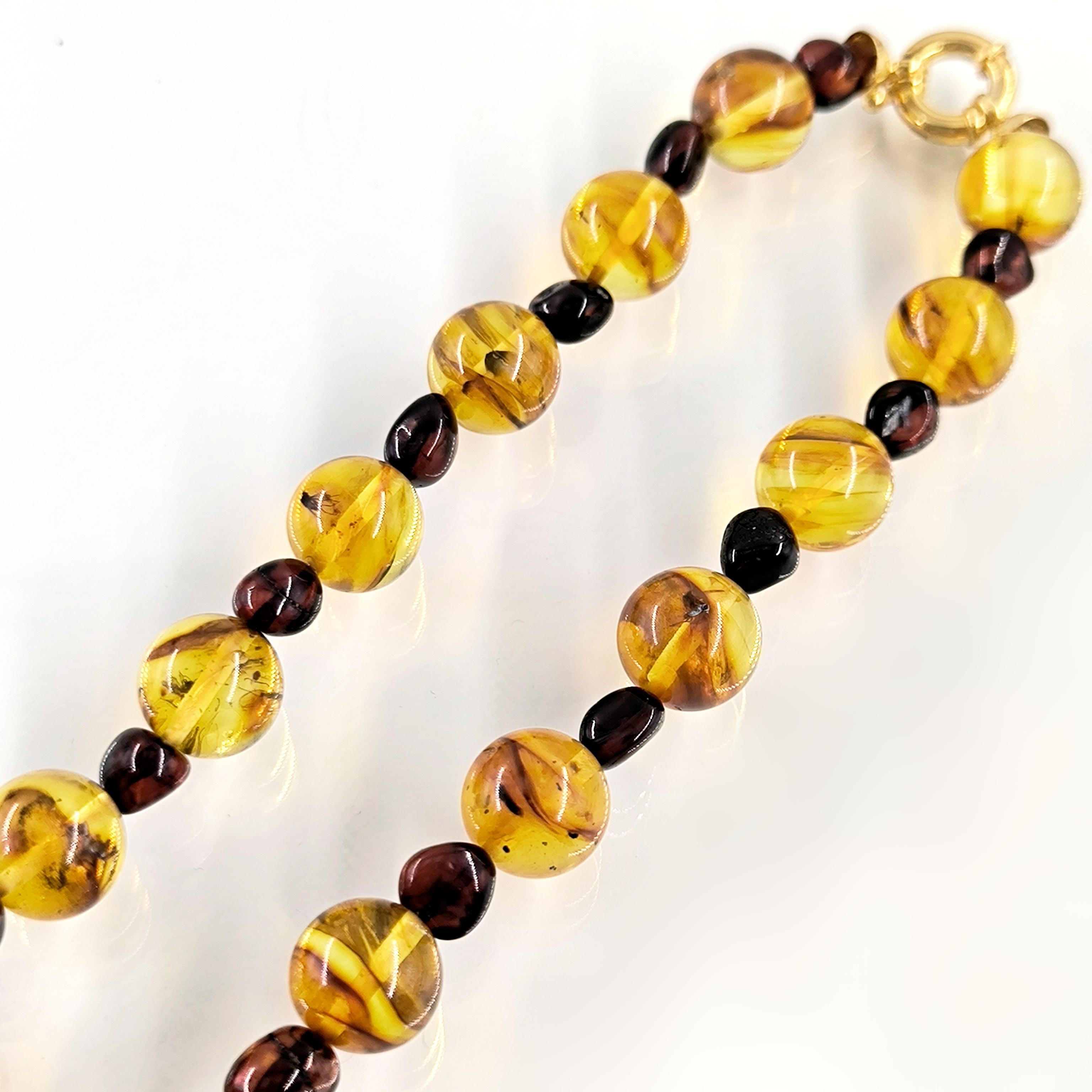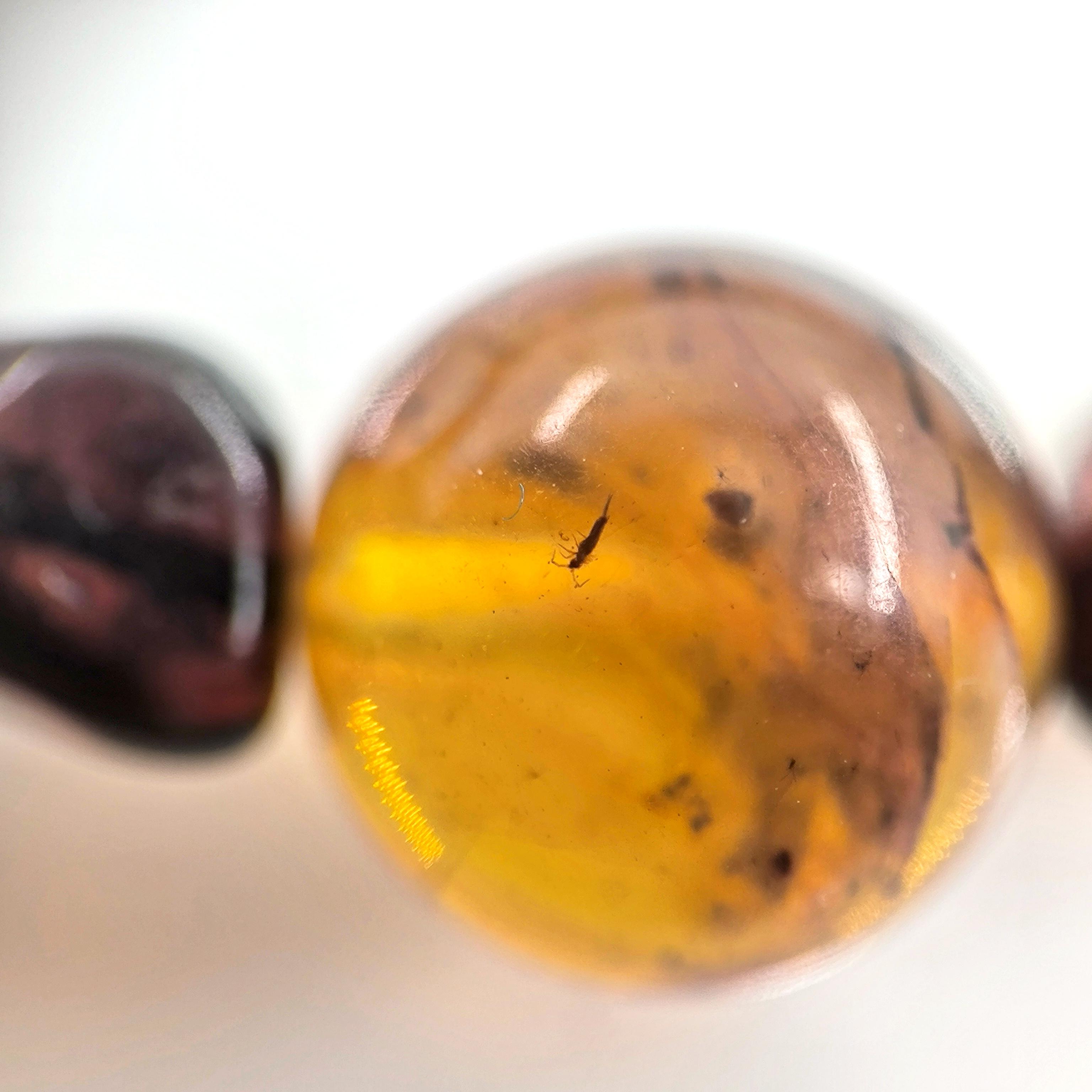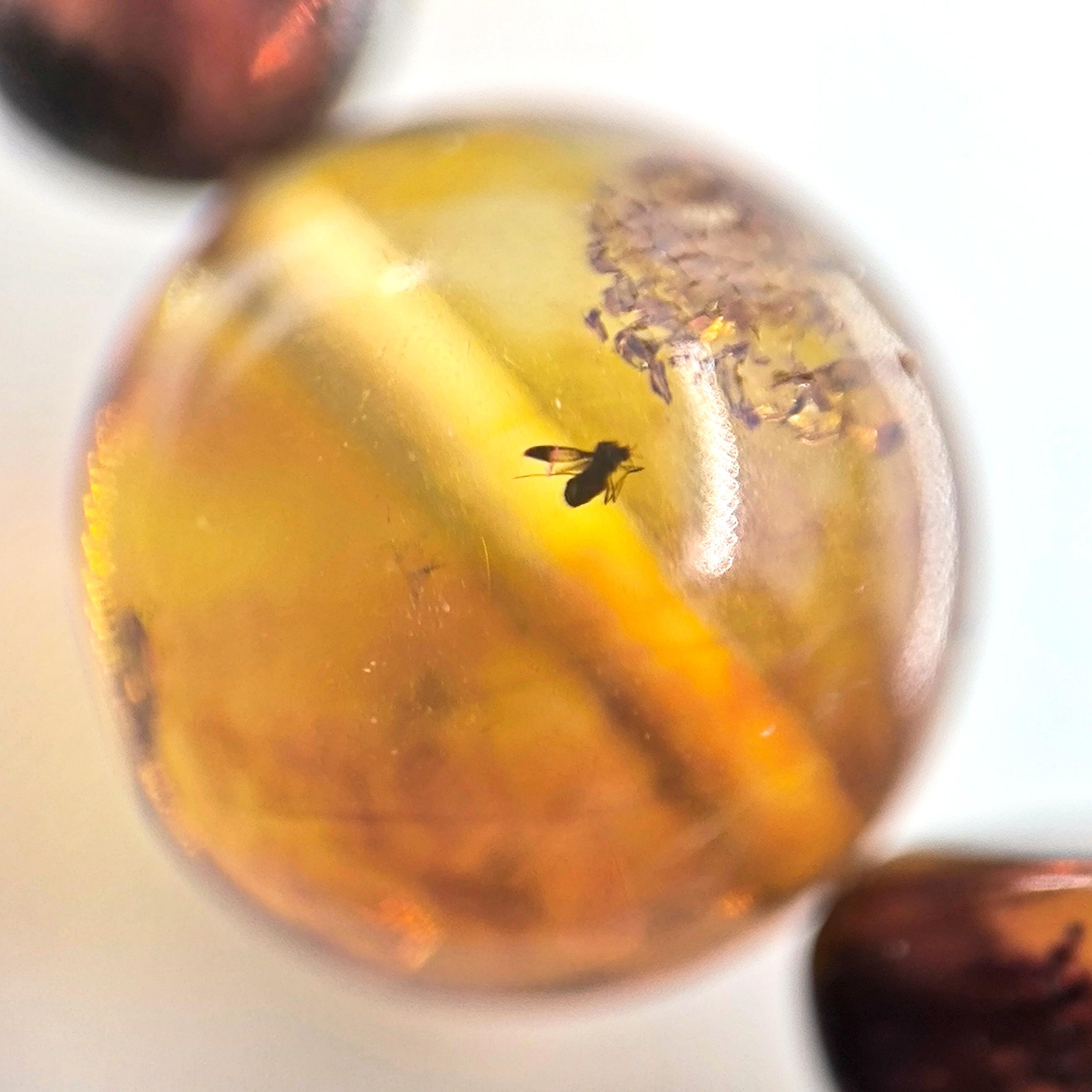 1960’lı yıllardan günümüze ulaşan bu özel kolye, tamamı doğal damla kehribardan oluşan nadir bir mücevherdir. Her bir küre habbenin içinde farklı sinek, böcek ve karınca fosilleri barındıran bu parça, milyonlarca yıl öncesinin canlılarını zamanın içinde mühürleyerek adeta boyunda taşınan bir doğa arşivi niteliği taşır. Kehribarın sıcak bal tonlarıyla fosillerin net biçimde görülebildiği iç yapısı, kolyeye hem görsel derinlik hem de güçlü bir koleksiyon değeri kazandırır; doğallığı bozulmamış, müdahalesiz yapısıyla hem mücevher hem de bilimsel ve tarihsel bir tanıklık sunan son derece etkileyici bir eserdir. Hem tarih, hem bilim hemde bir mücevher.. Ayrıca eserimiz özel Led ışıklı mücevher kutusu ile sizlere ulaşacaktır!