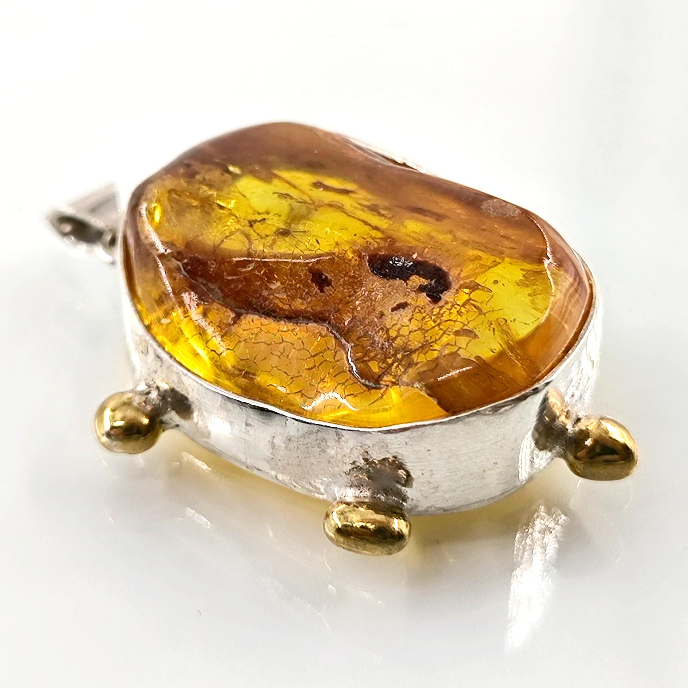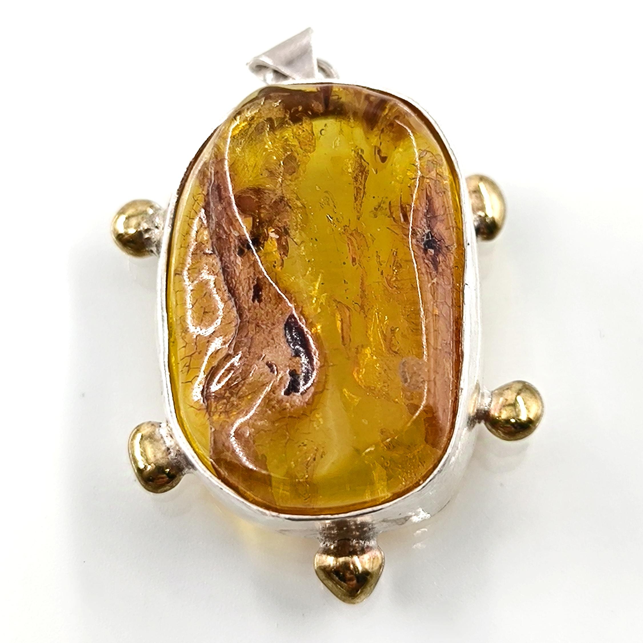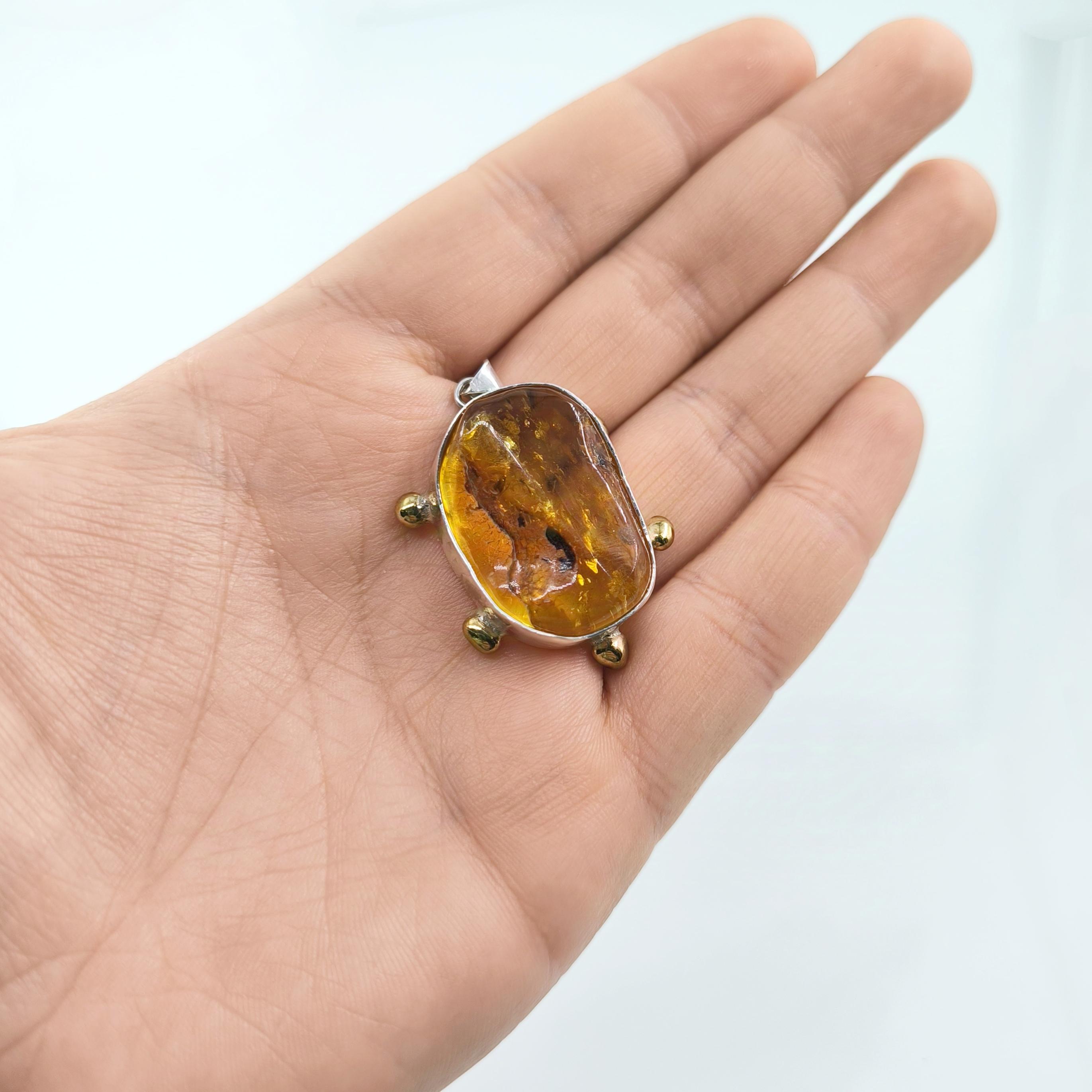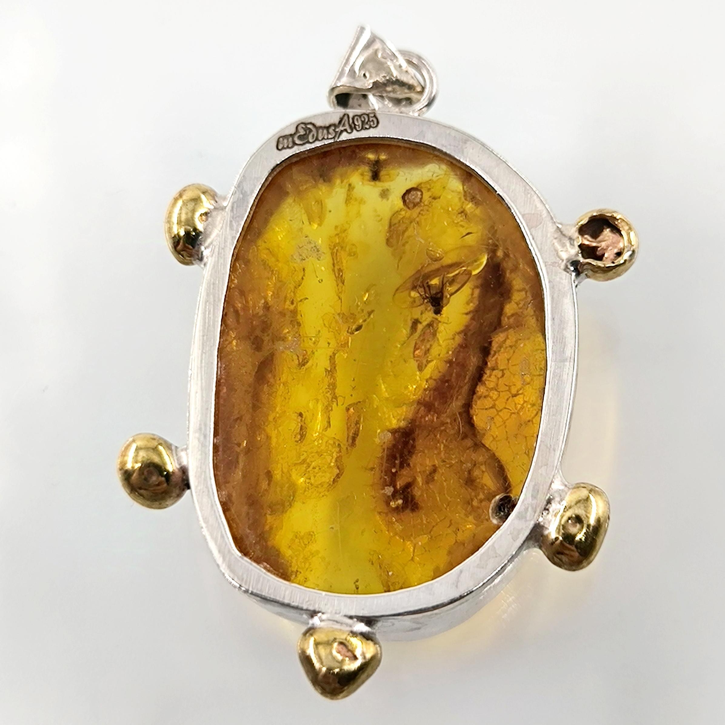 Sinek Fosilli Baltık Damla Kehribar 925 Ayar Gümüş çerçeveli kolyemiz!