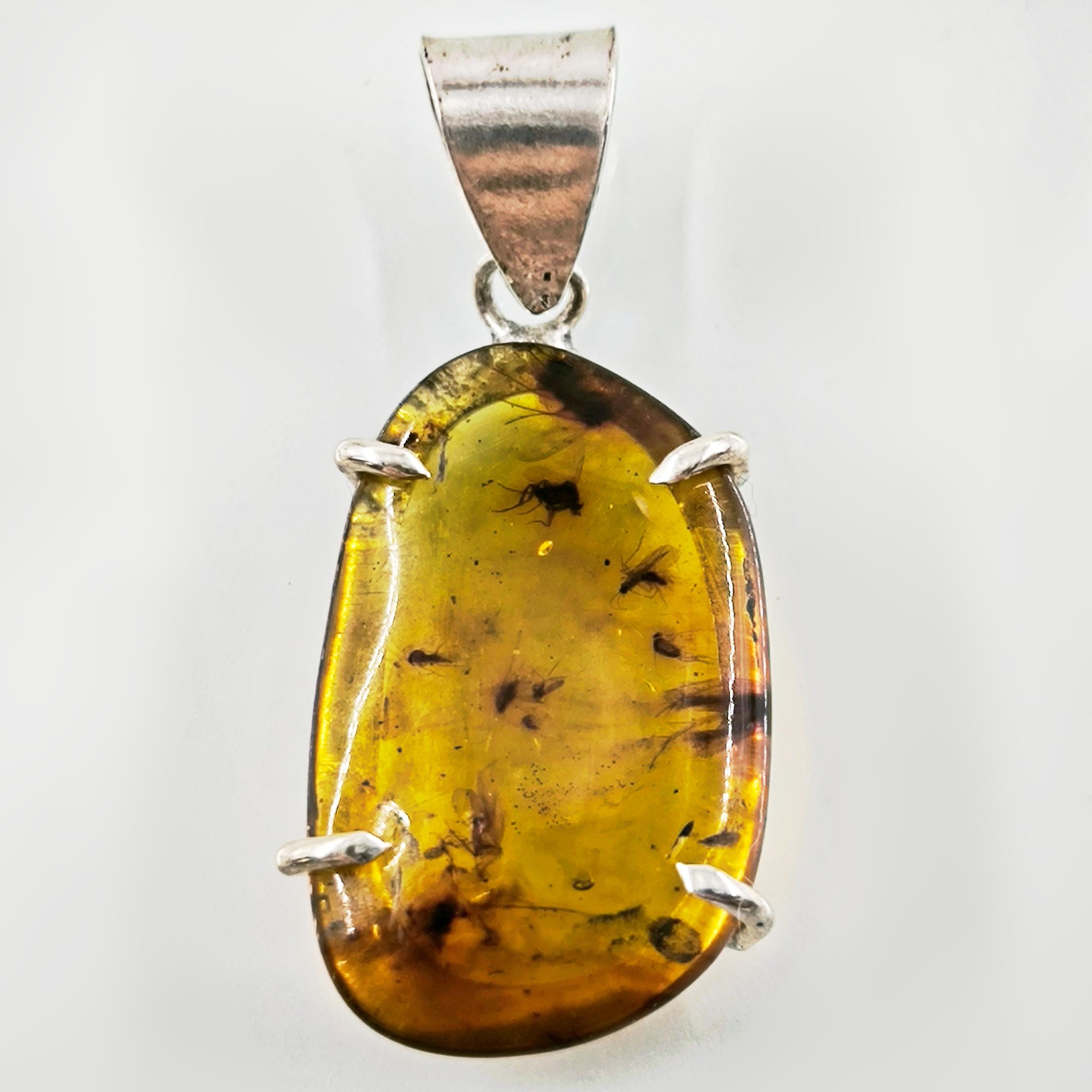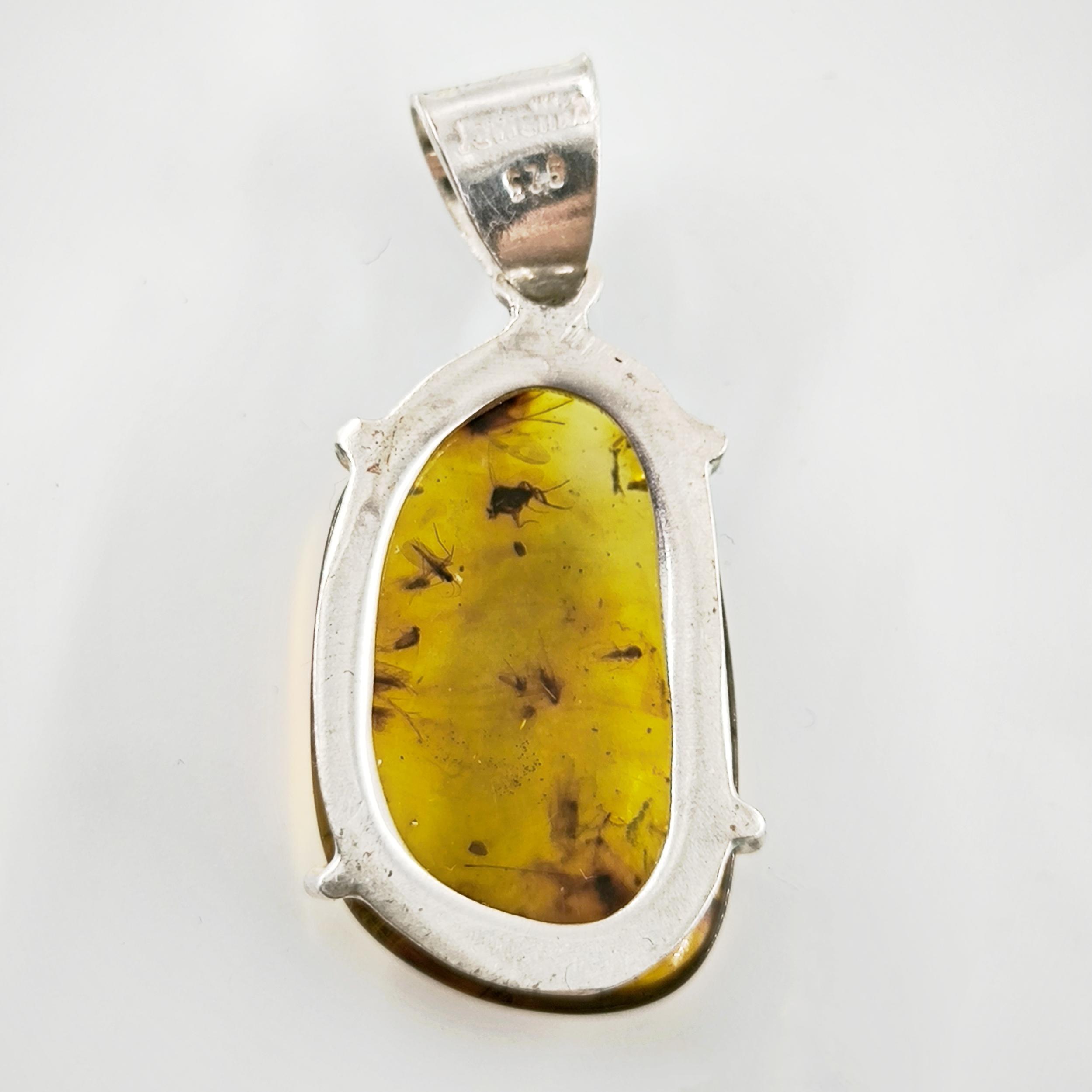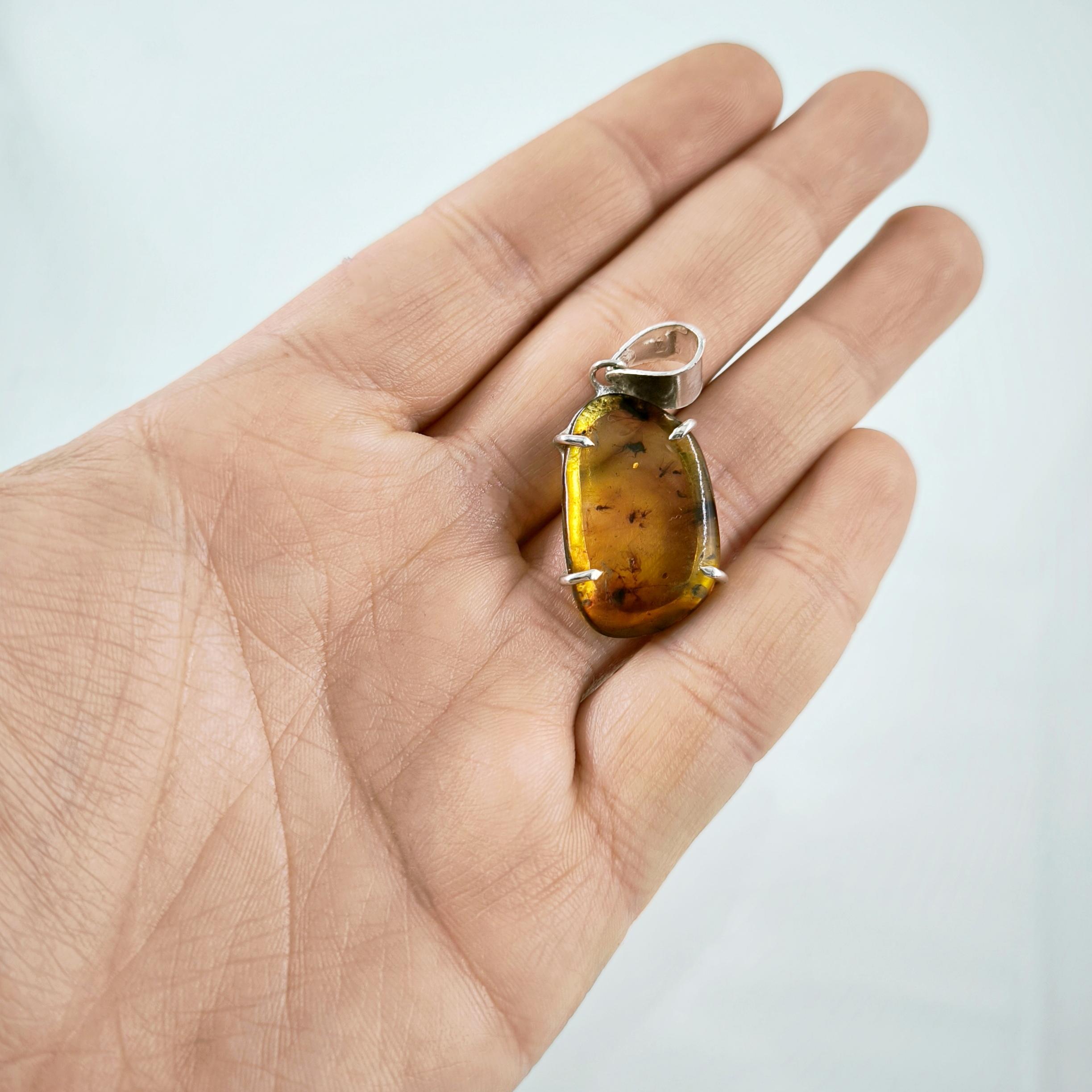 İçerisinde sinek fosili bulunan hatta adeta koloni bulunan diyebiliriz:) Doğu Karayipler Natürel Damla Kehribar 925 Ayar Gümüş çerçeveli kolyemiz!