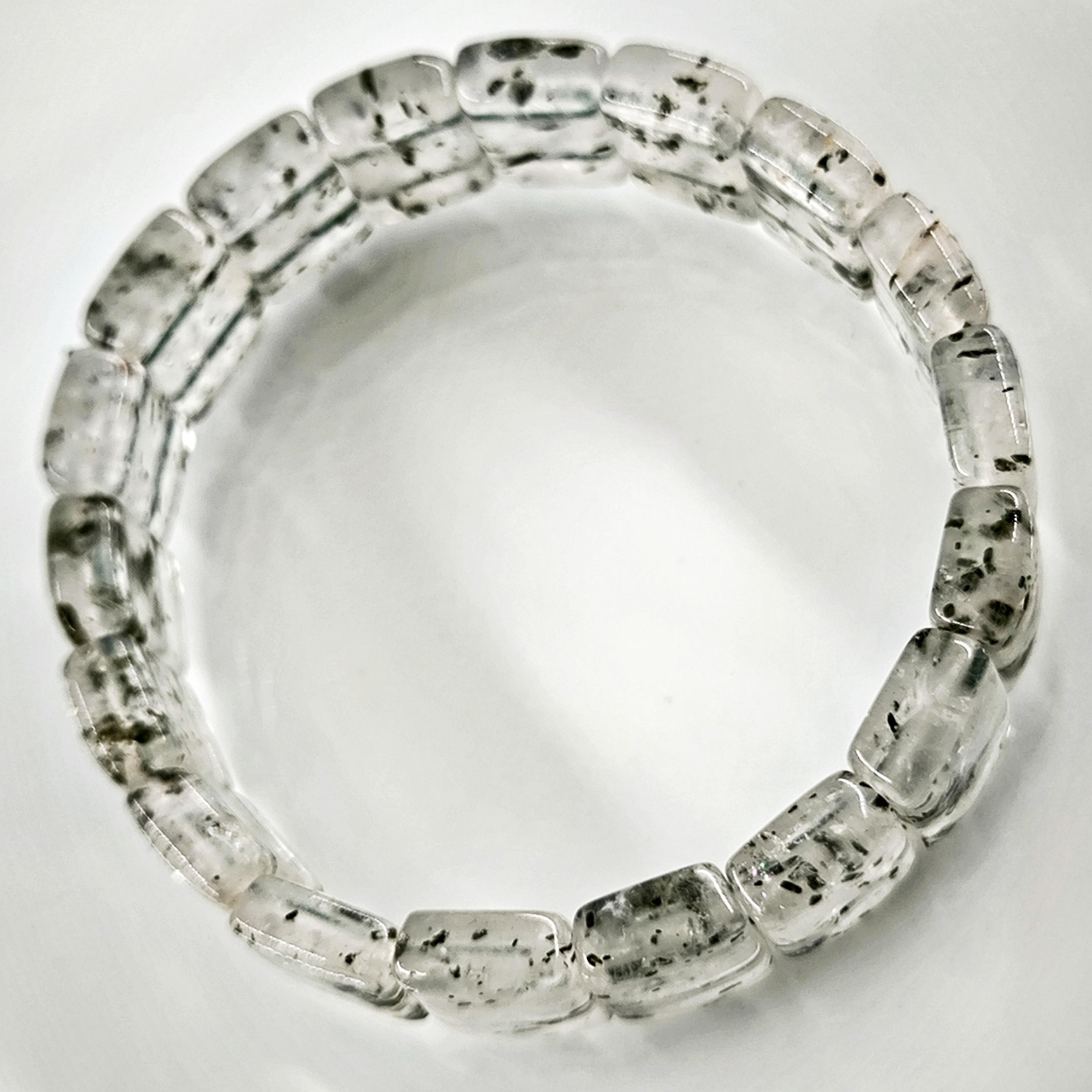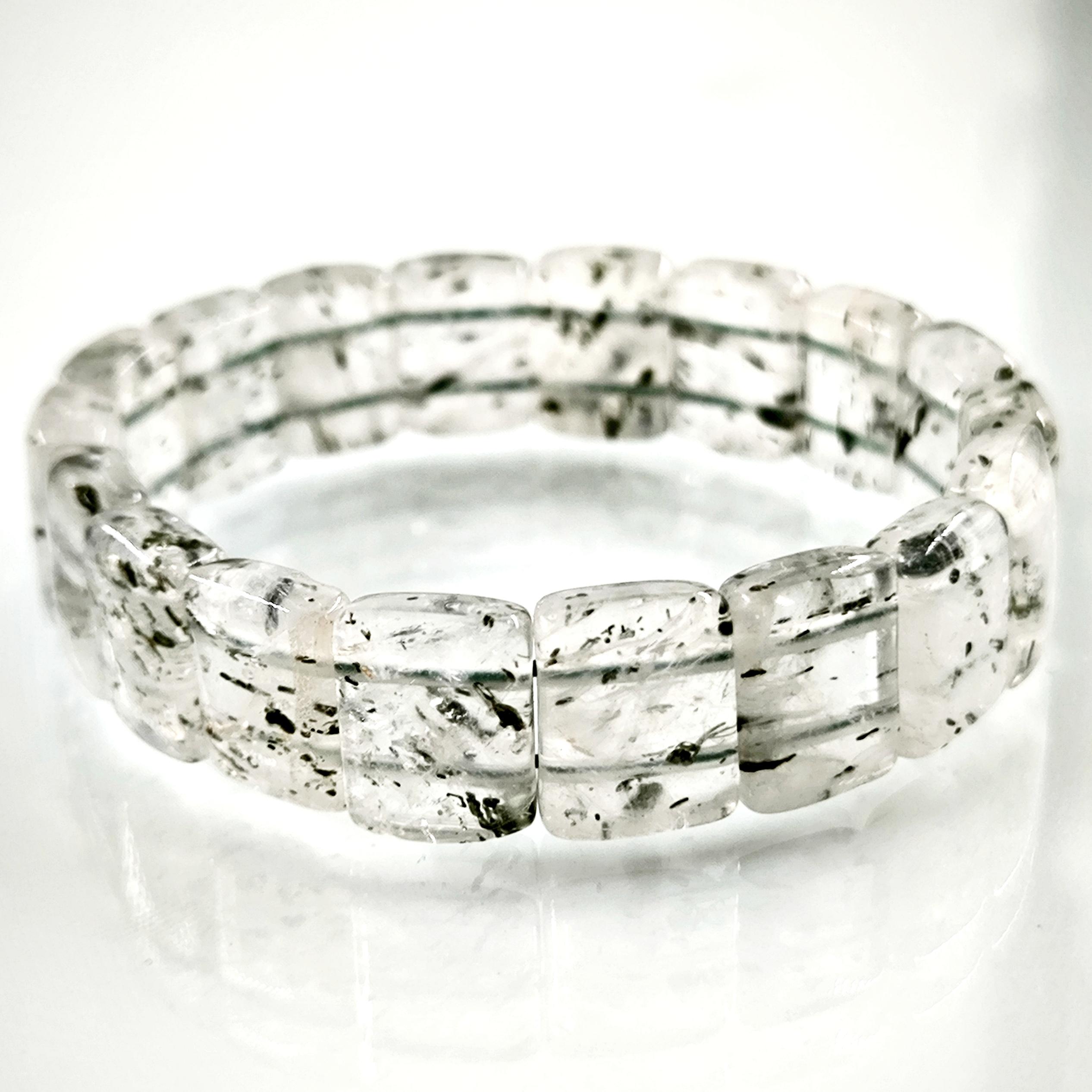 Bileklik, siyah renkteki rutilli kuvars taşı ile süslenmiştir. Bu taş, doğallığı ve karmaşıklığıyla dikkat çekici bir görünüme sahiptir. Genellikle birçok kültürde şans taşı olarak bilinir ve güçlü bir enerjiye sahip olduğuna inanılır.