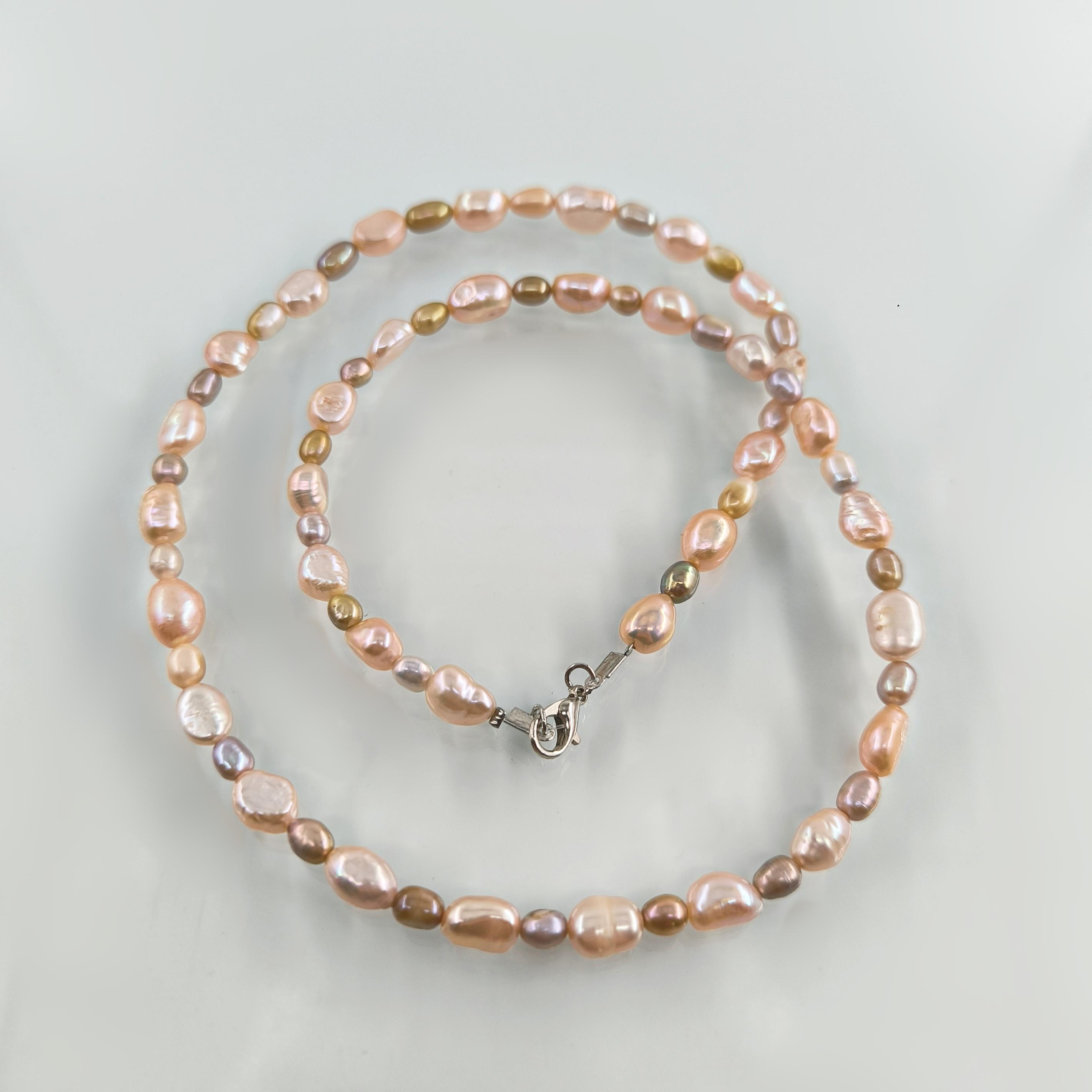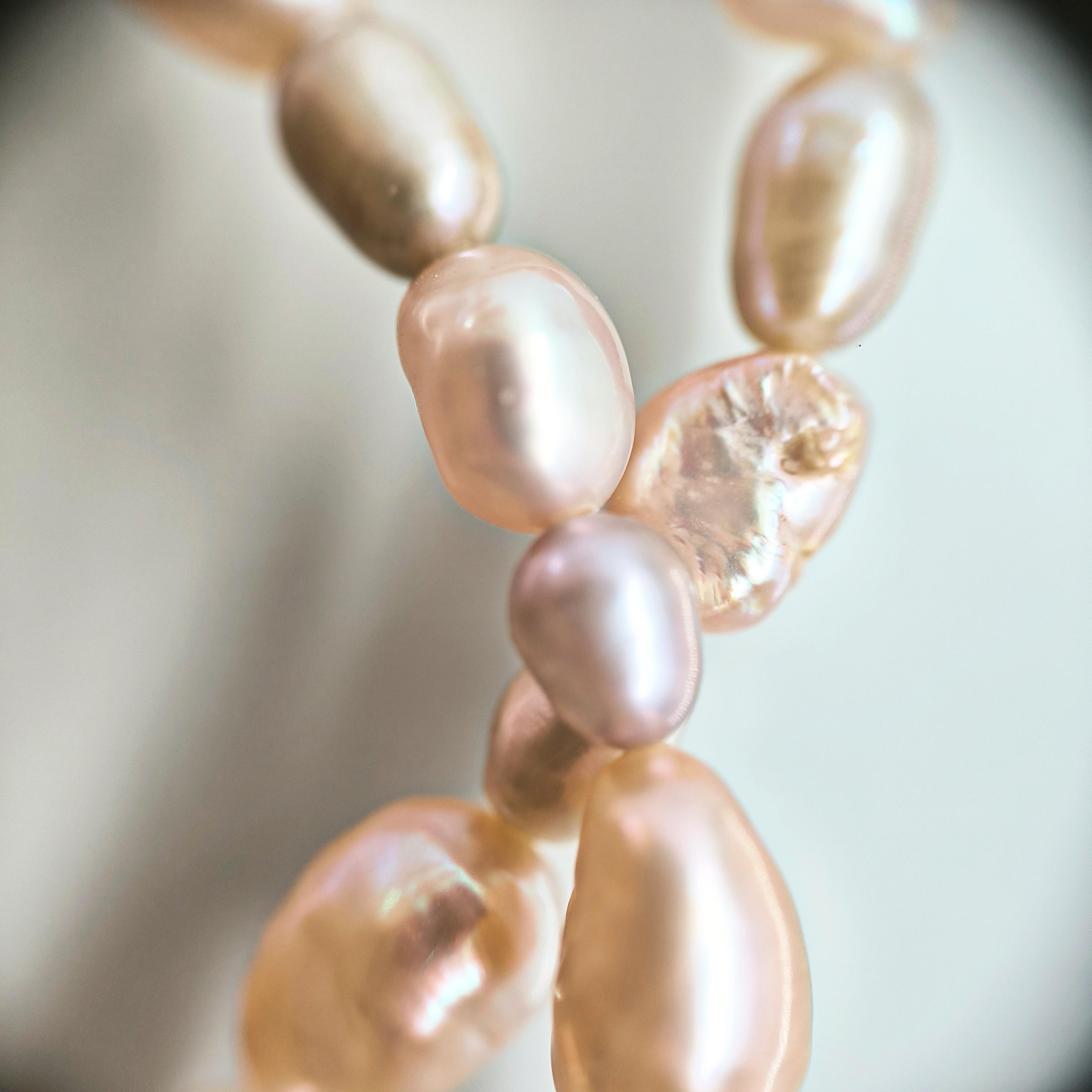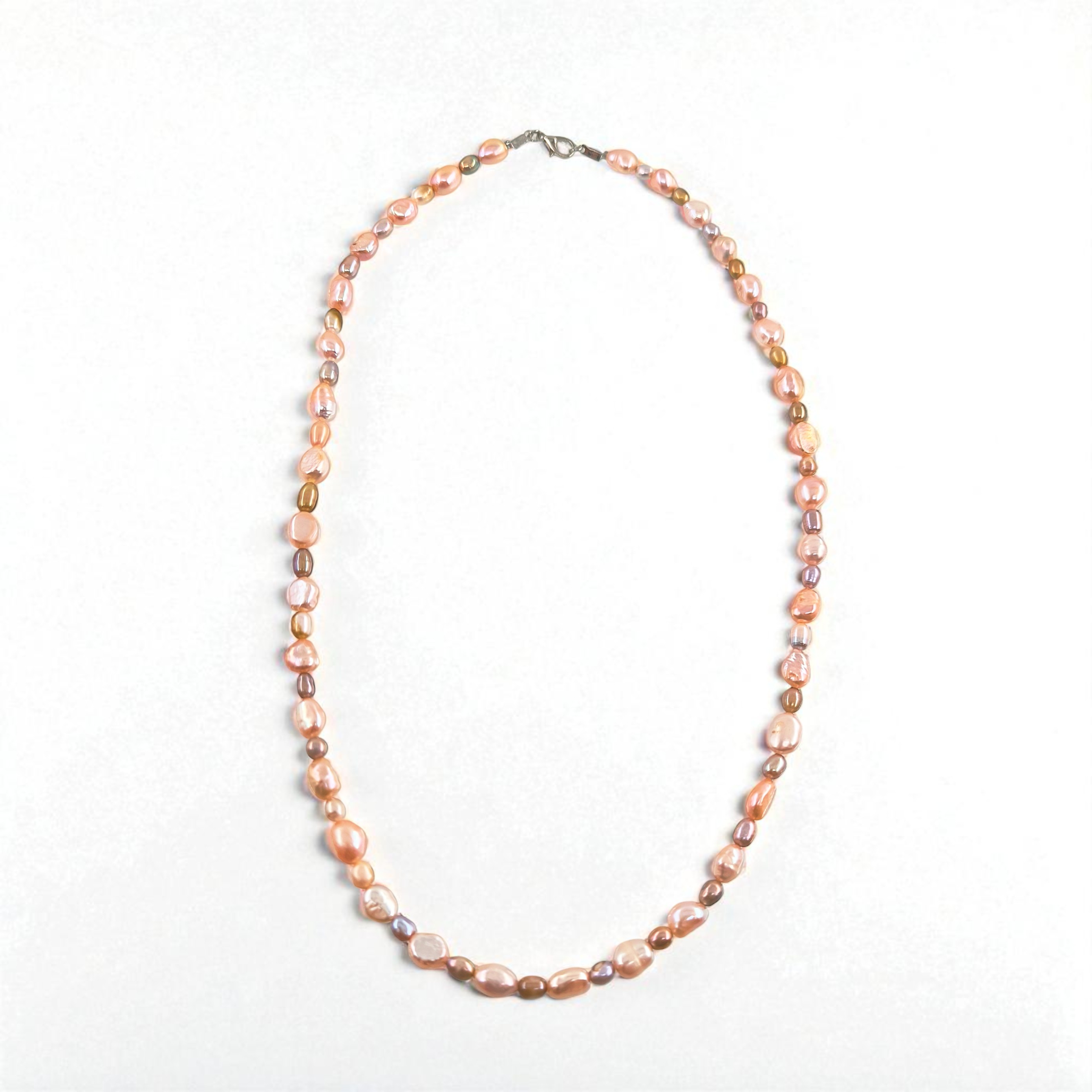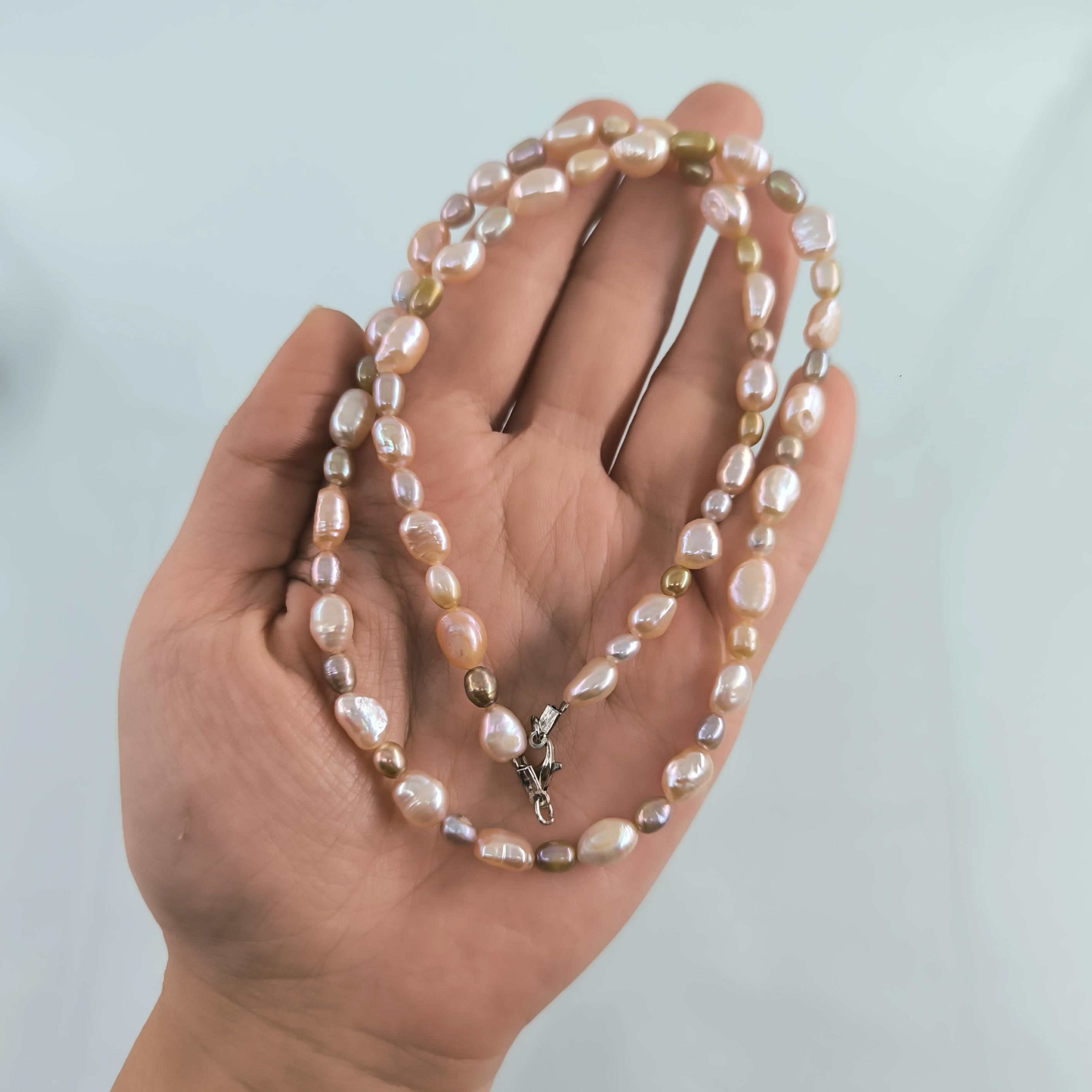 bu özel gerdanlık, somon incilerin sıcak tonlarıyla