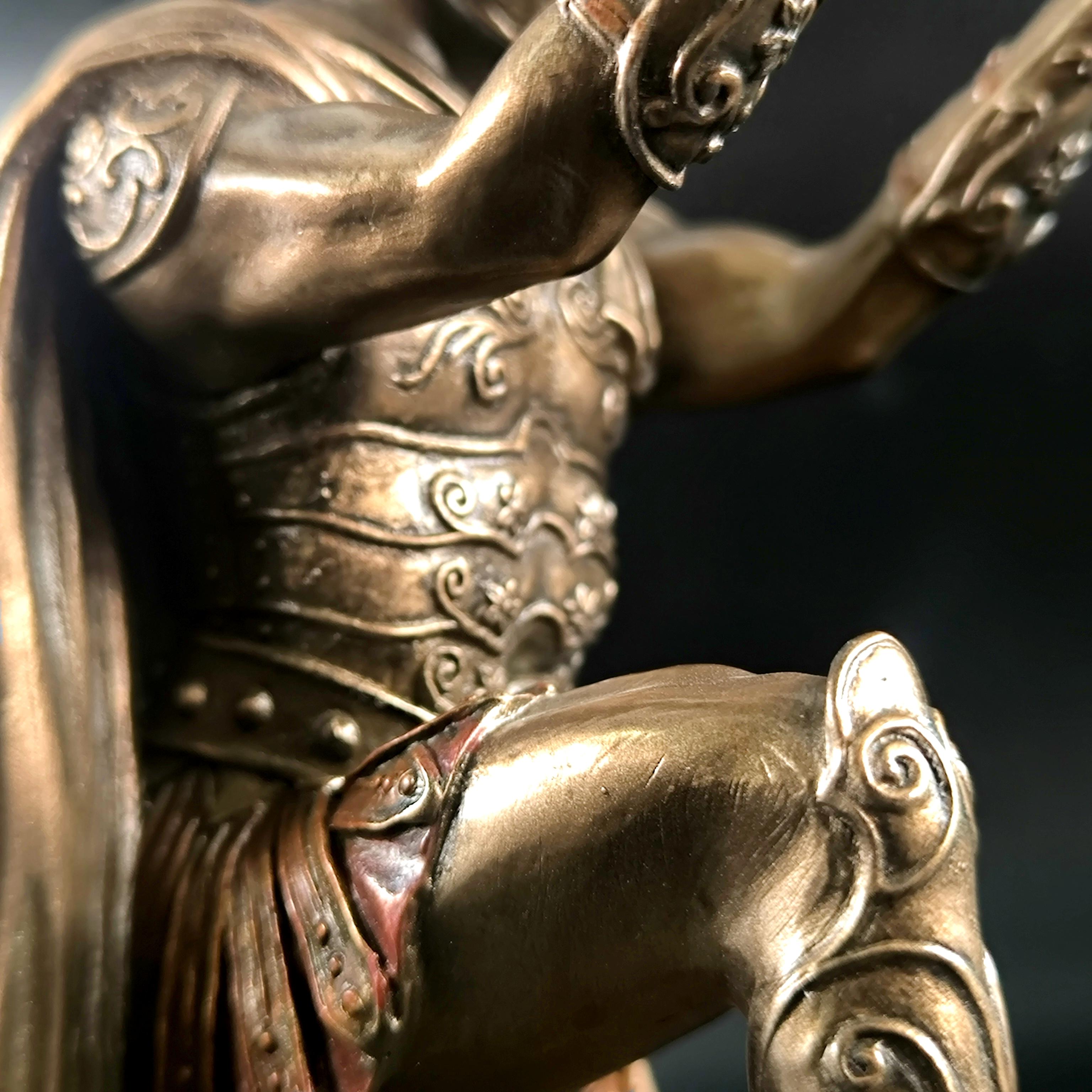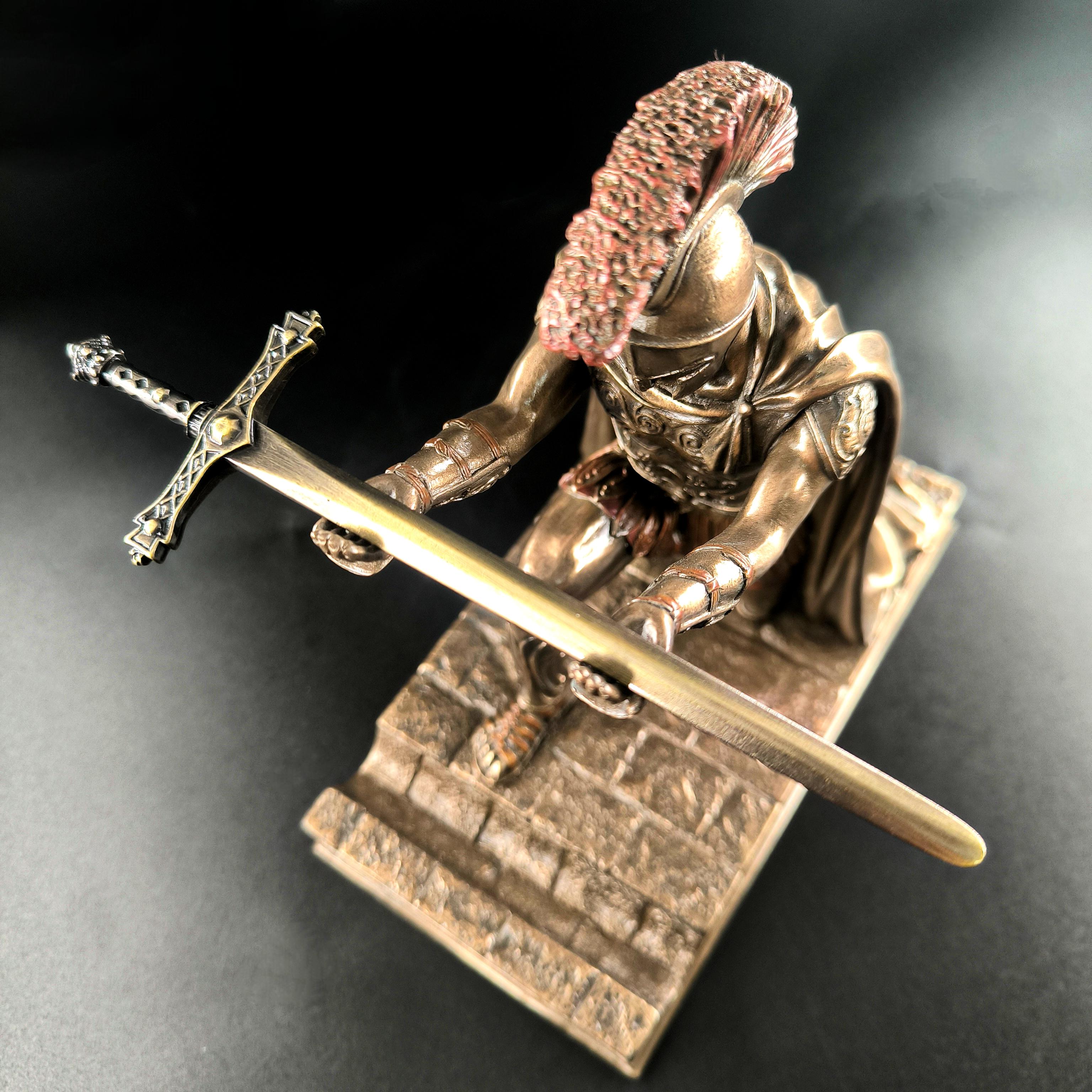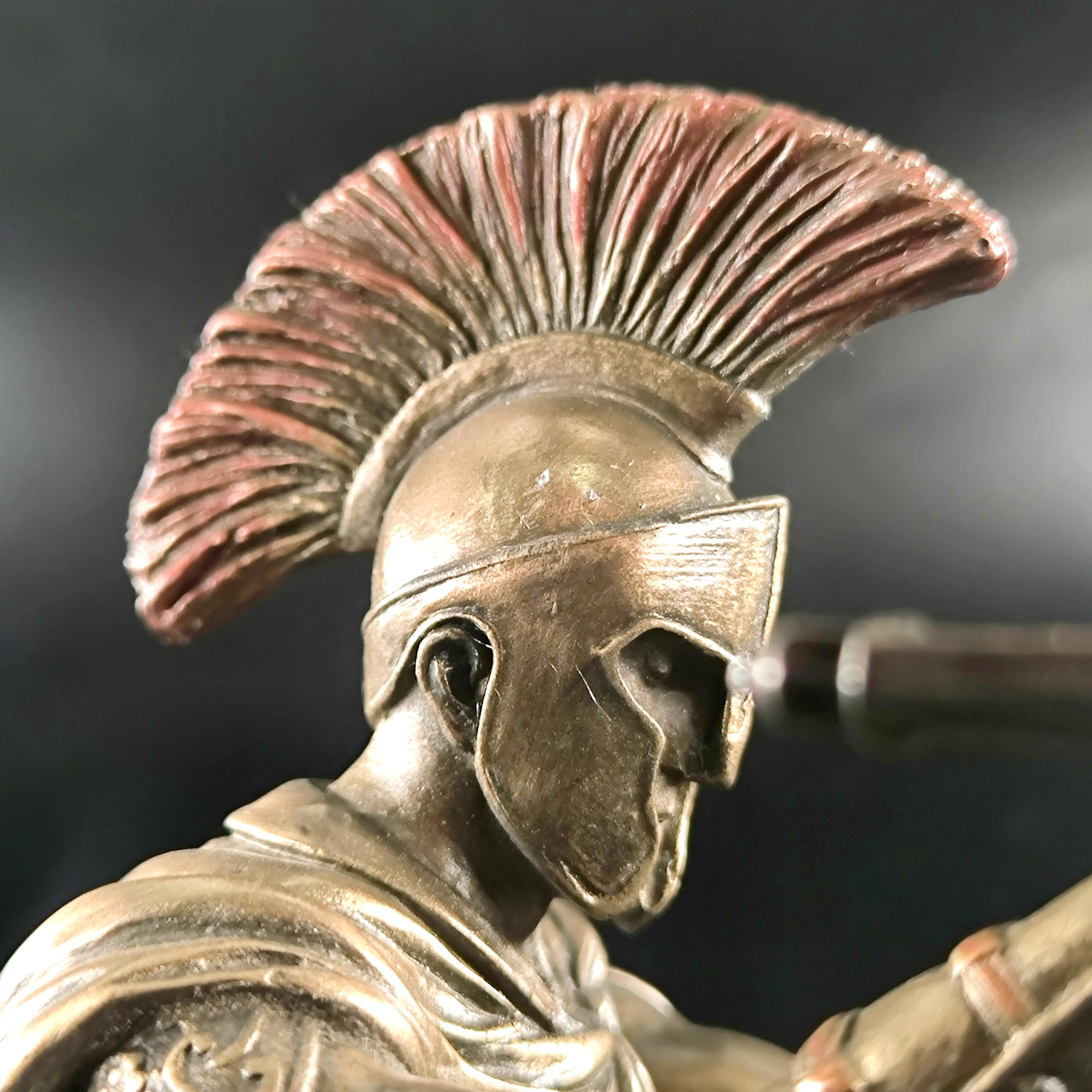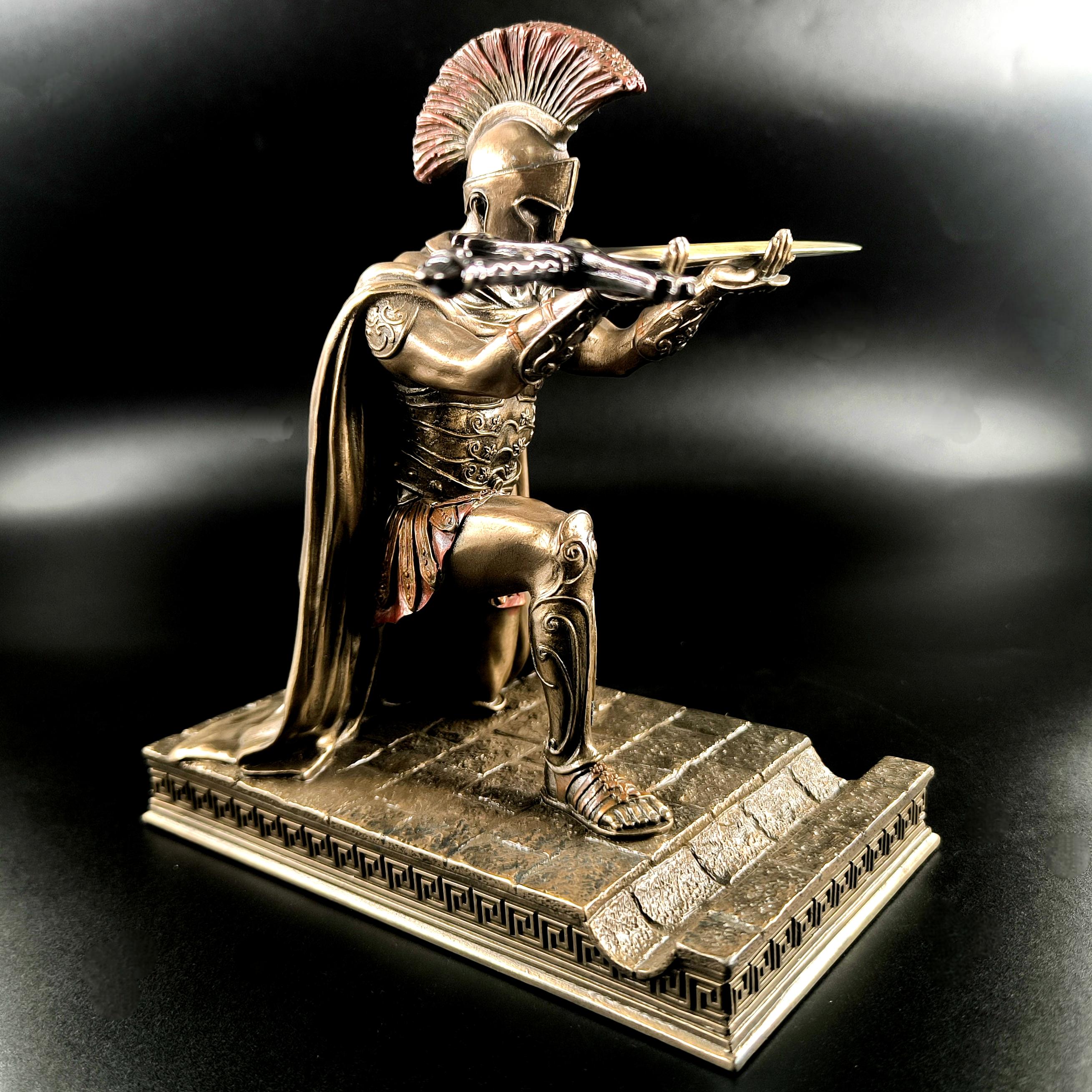 Diz çökmüş halde kılıcını iki eliyle ileri uzatan bu Veronese imzalı Spartan savaşçısı heykeli, mutlak disiplin, bağlılık ve savaş meydanlarındaki sarsılmaz kararlılığın güçlü bir sembolüdür. Antik Sparta’nın efsanevi savaşçı ruhunu yansıtan figür, detaylı zırh işlemeleri, muhteşem miğfer tasarımı ve dramatik duruşuyla izleyenlerde hayranlık uyandıran etkileyici bir kompozisyon sunar. Savaşın sessizliği içinde verilen onur yemini sahnesini hatırlatan bu duruş, gücün yalnızca saldırıda değil, aynı zamanda sarsılmaz bir iradede bulunduğunu hatırlatır. Mermer ve kemik tozu karışımlı özel bir madde ile şekillendirilmiş olup usta sanatçılar tarafından itinayla el boyaması yapılmıştır. Çok detaylı ve gerçekçi ayrıntılara sahip olan bu eser, dünya çapında işçilik kalitesi ile bilinen Veronese markasının damgasını taşımaktadır.
