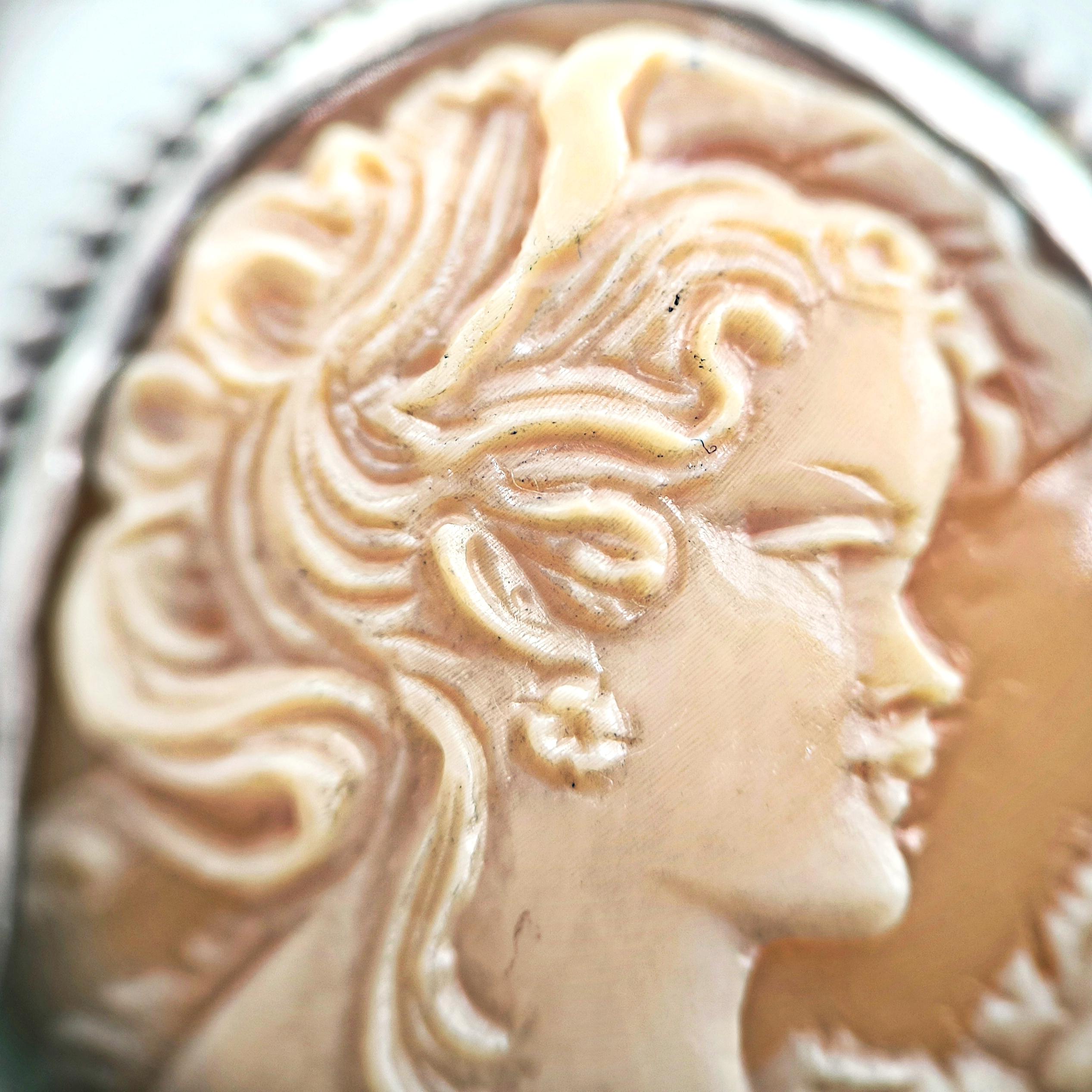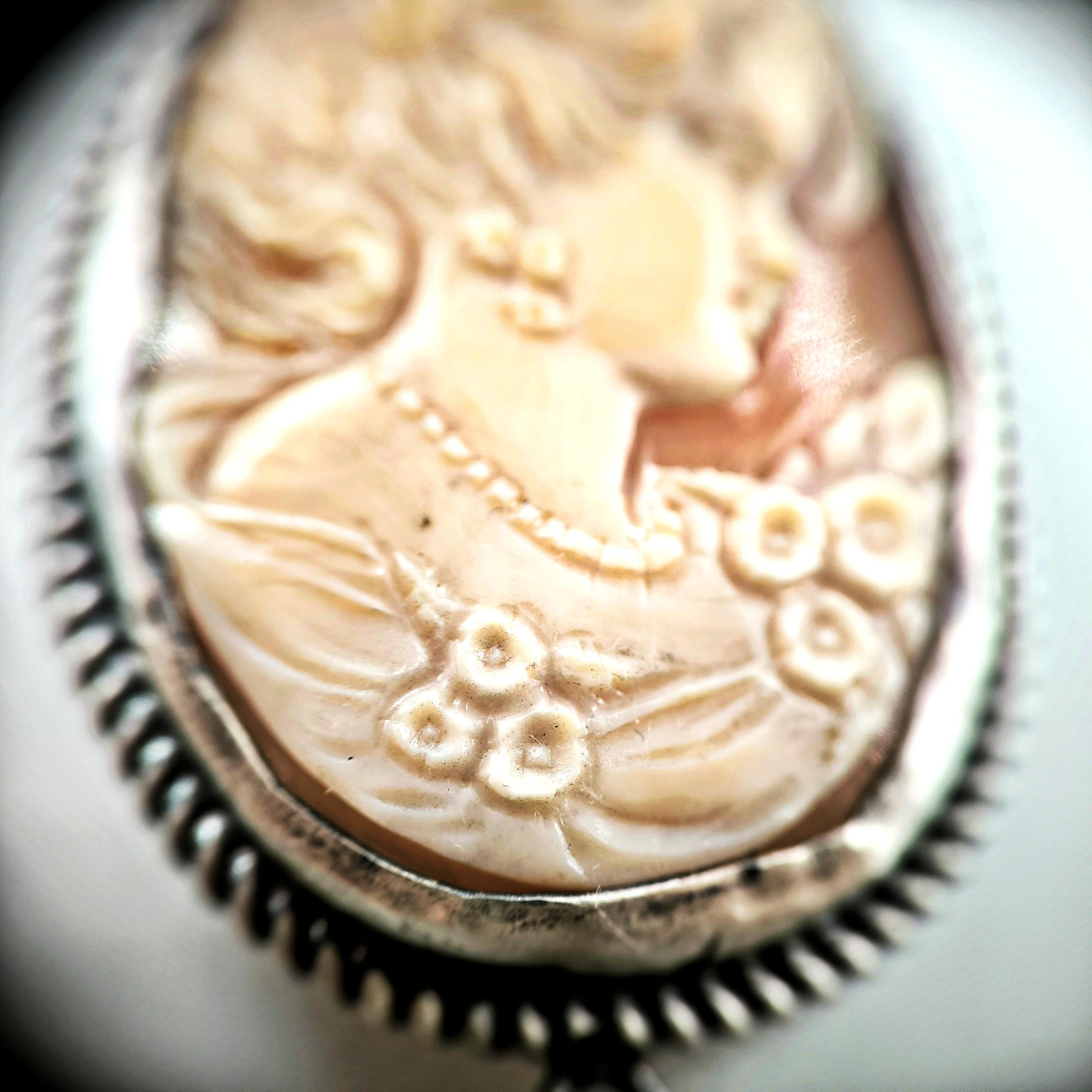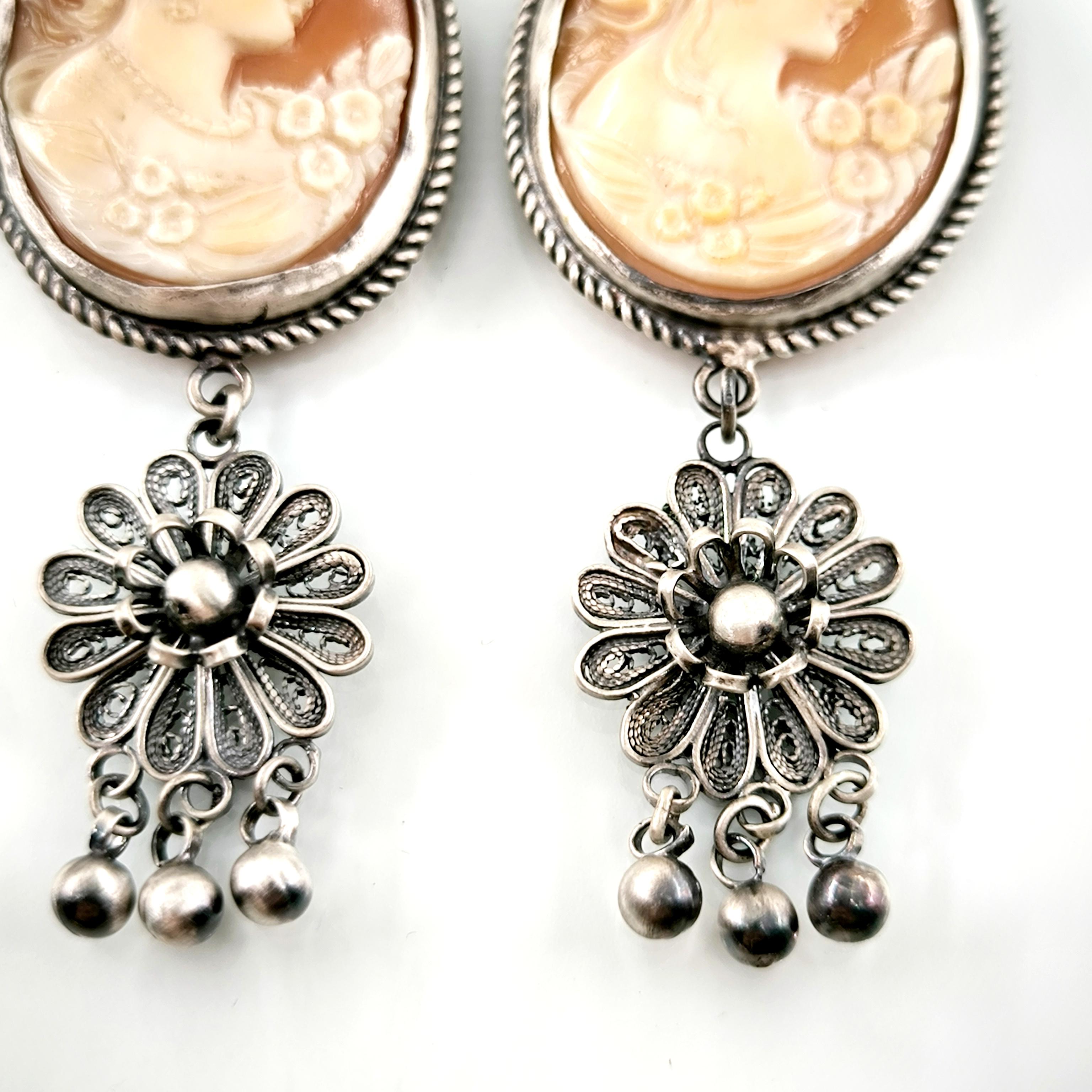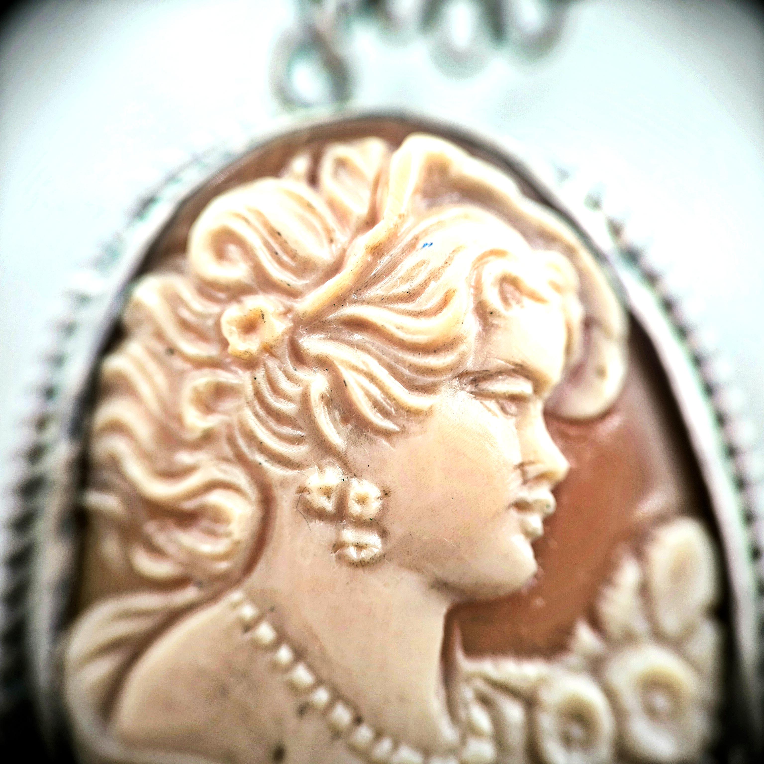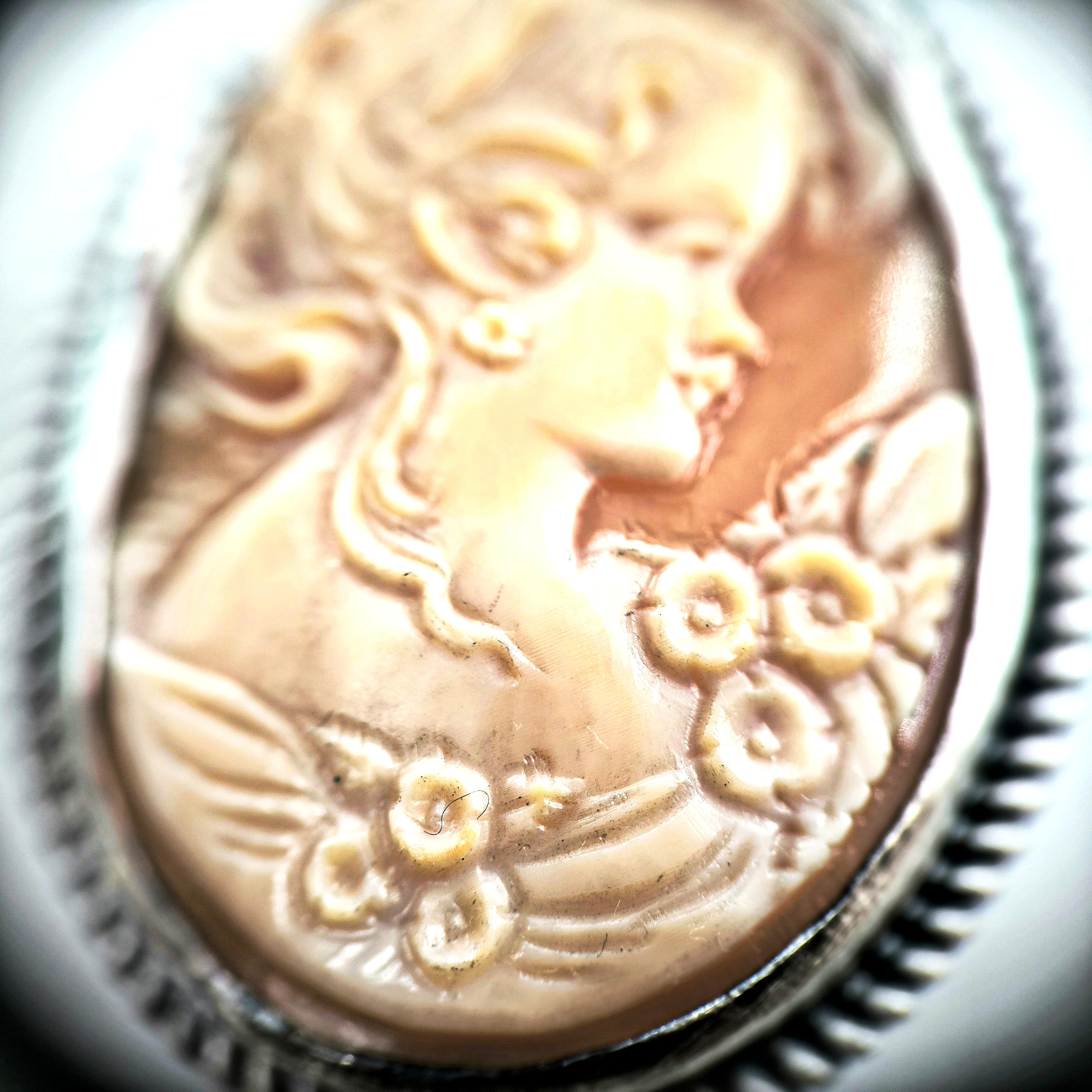 Antik zarafetin modern bir yorumu… 🌿 Bu küpelerde, el işçiliğiyle kabartılmış klasik kadın cameo figürleri, gümüş çerçevede telkari motiflerle buluşuyor. Aşağıya doğru sallanan çiçek formundaki işlemeler ve minik gümüş toplar, hareket ettikçe ışıkla oynayarak parçaya nostaljik bir ihtişam katıyor. Hem sanatsal koleksiyon değeri hem de zarif bir kullanım sunan bu küpeler, geçmişin ruhunu günümüze taşıyor.