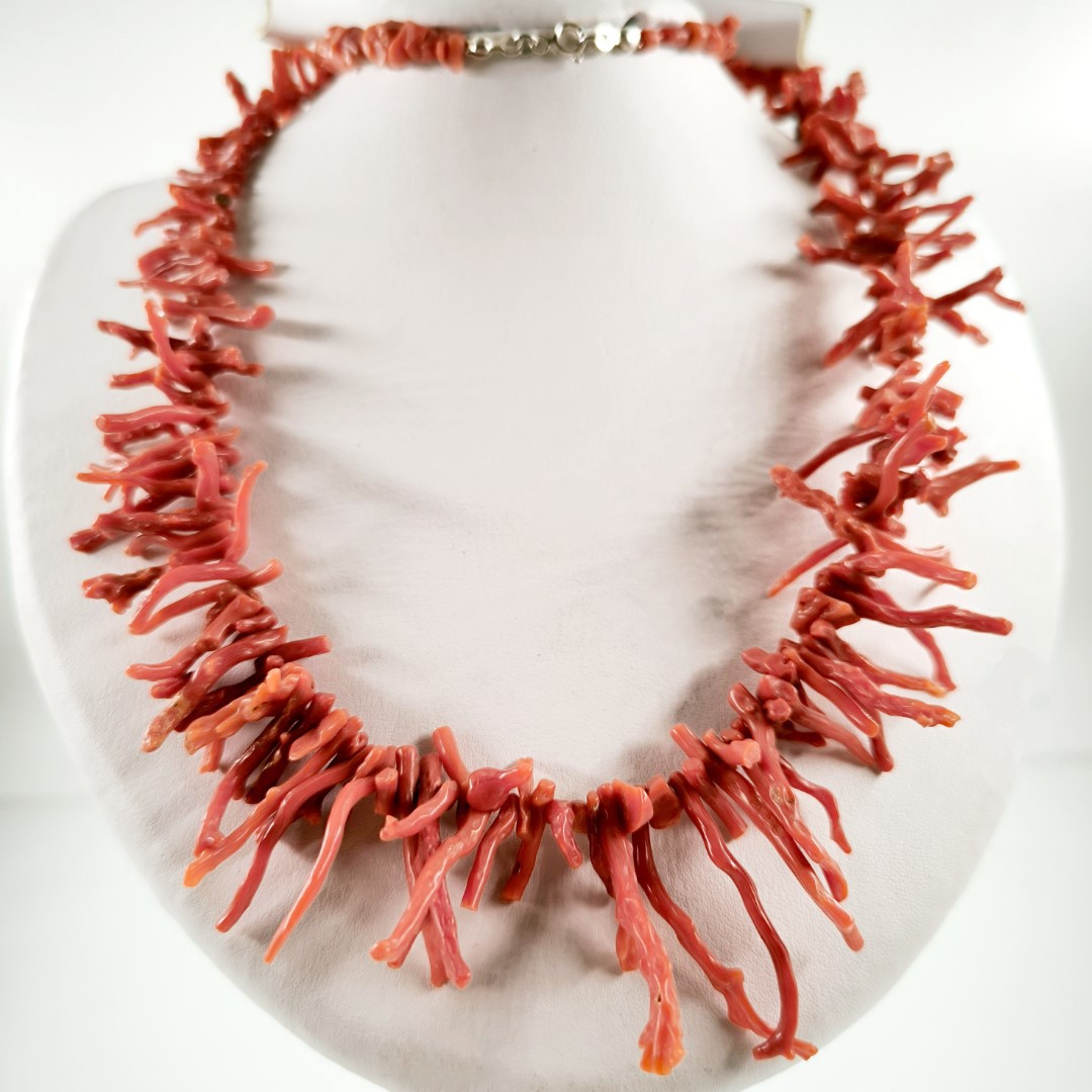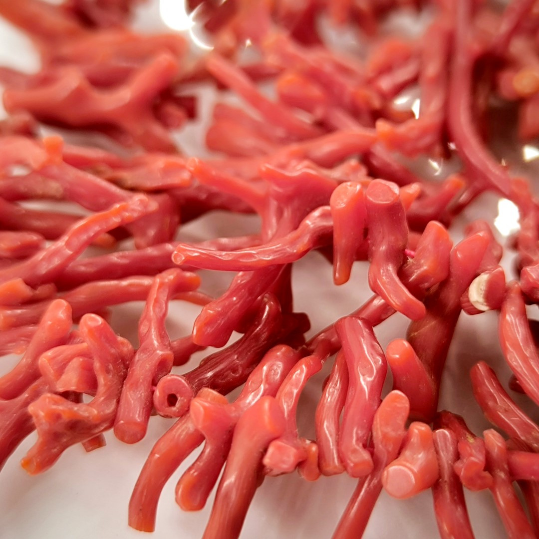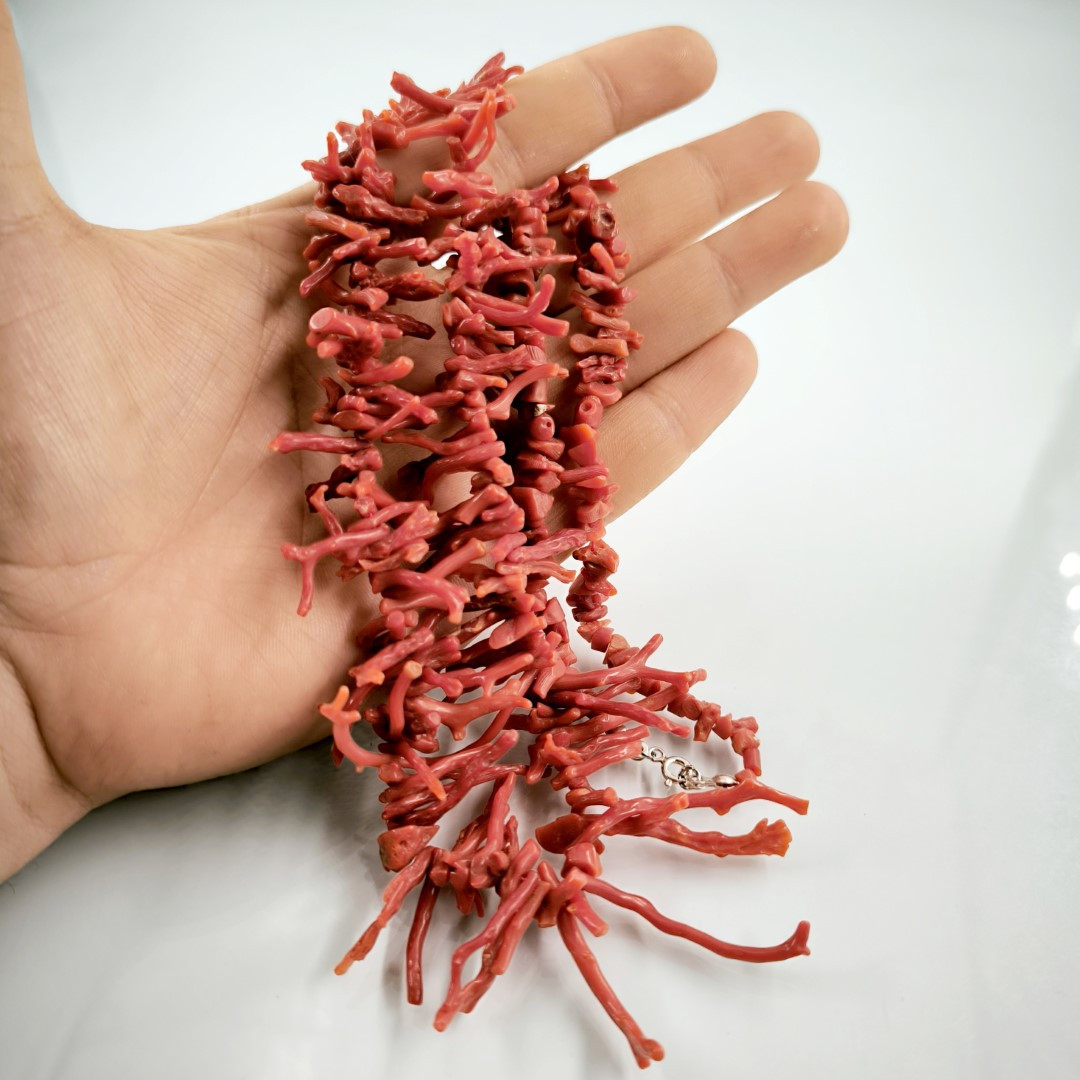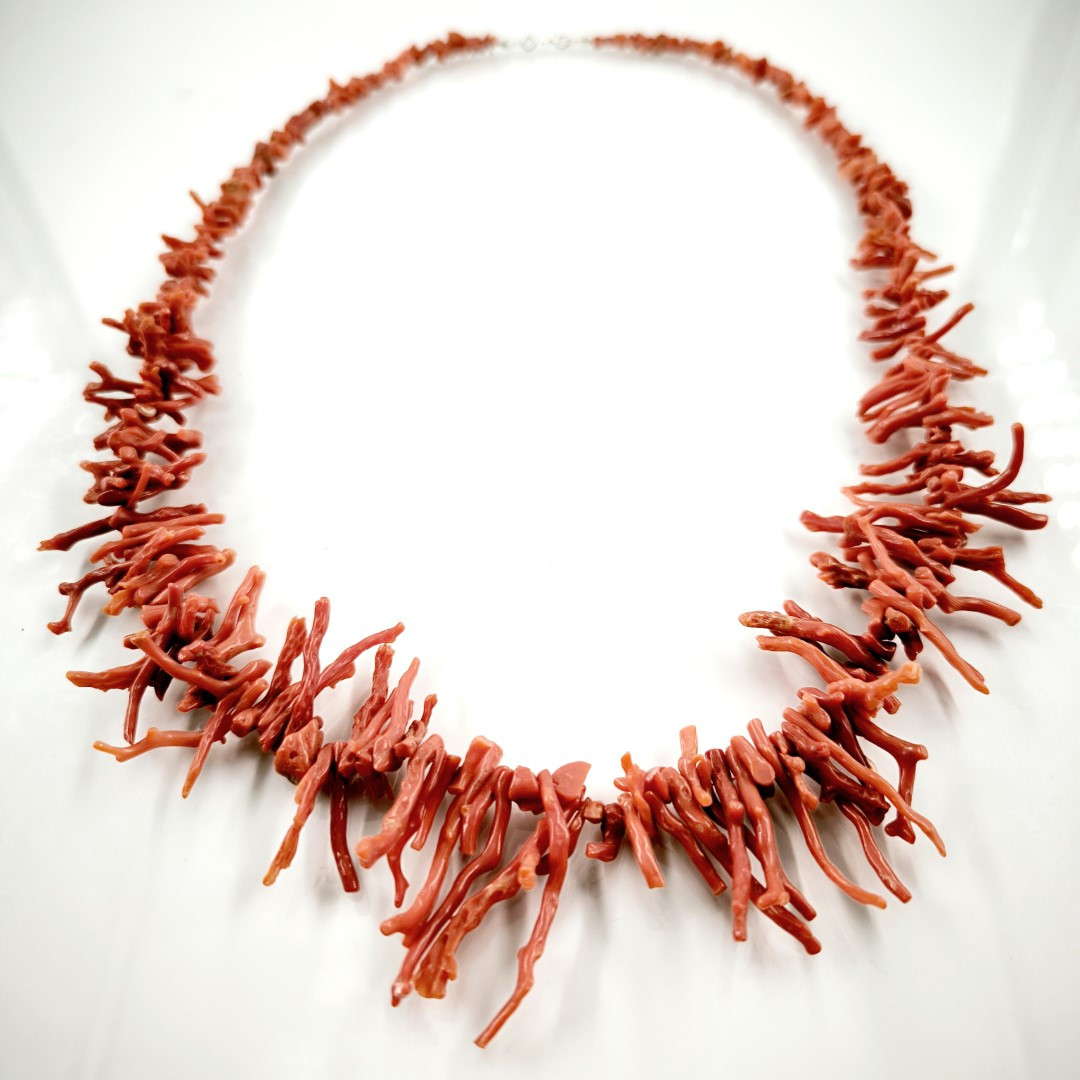 Şans ve zenginliğin simgesi olan Doğal Tunus Mercan taşından 1950-60'lı yıllarda yapılmış eşsiz mücevher kalitesinde doğal haliyle doğrudan okyanusun derinliklerinden mücevhere dönüştürülen nadide ve benzersiz Dal mercanlardan eşsiz bir parça.