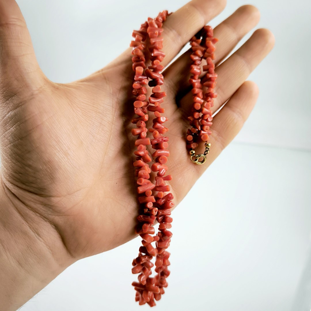 Şans ve zenginliğin simgesi olan Doğal Tunus Mercan taşından 1950-60'lı yıllarda yapılmış eşsiz mücevher kalitesinde doğal haliyle doğrudan okyanusun derinliklerinden mücevhere dönüştürülen nadide ve benzersiz Dal mercanlardan eşsiz bir parça.