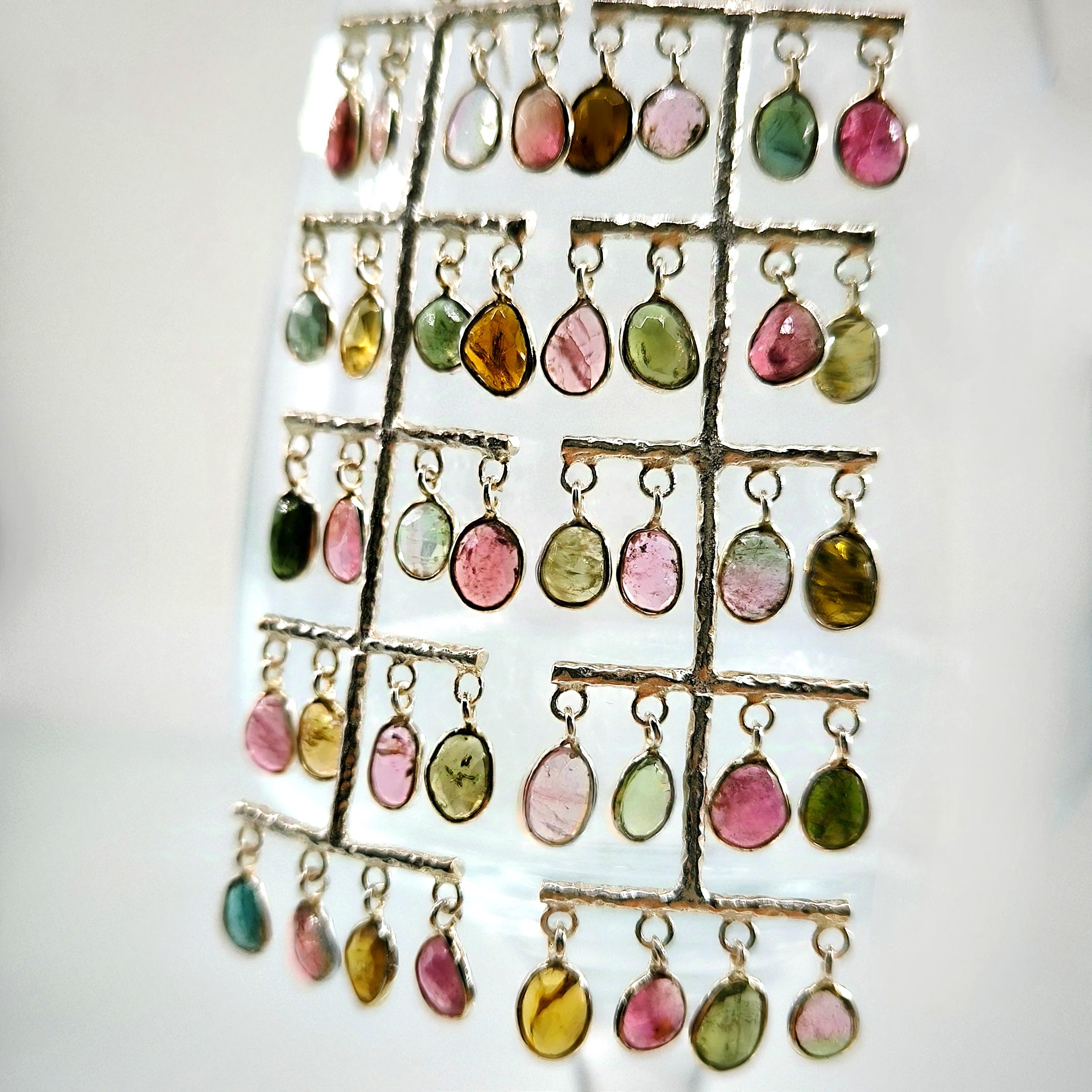Turmalin taşları, doğada oldukça nadir ve değerli bir taştır. Saf ve kaliteli bir şekilde işlendikten sonra küpe şeklinde tasarlanmıştır. Her bir taşın kendine özgü bir renk ve deseni vardır. Bu da her bir küpenin diğerinden farklı ve özel bir görünüme sahip olmasını sağlar.