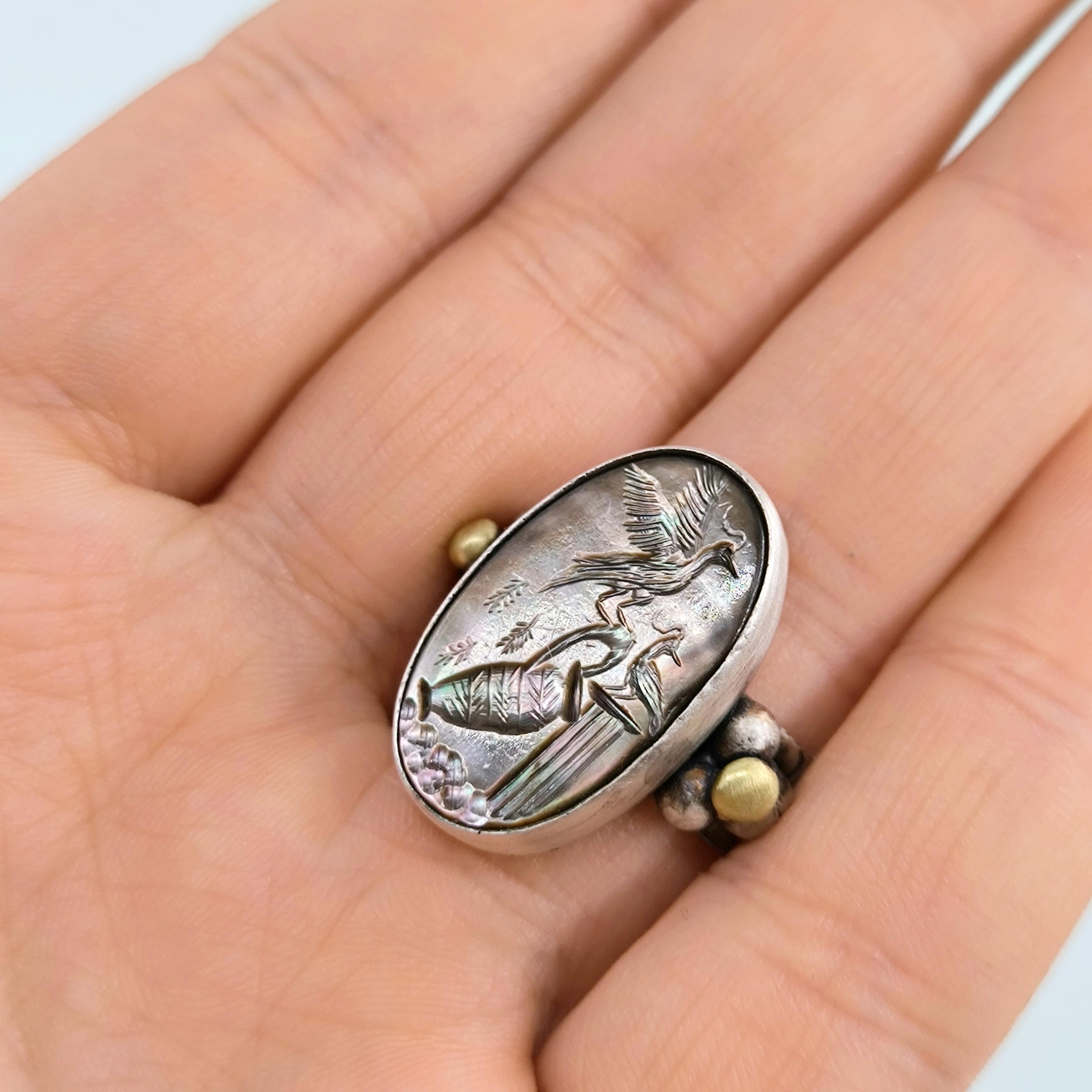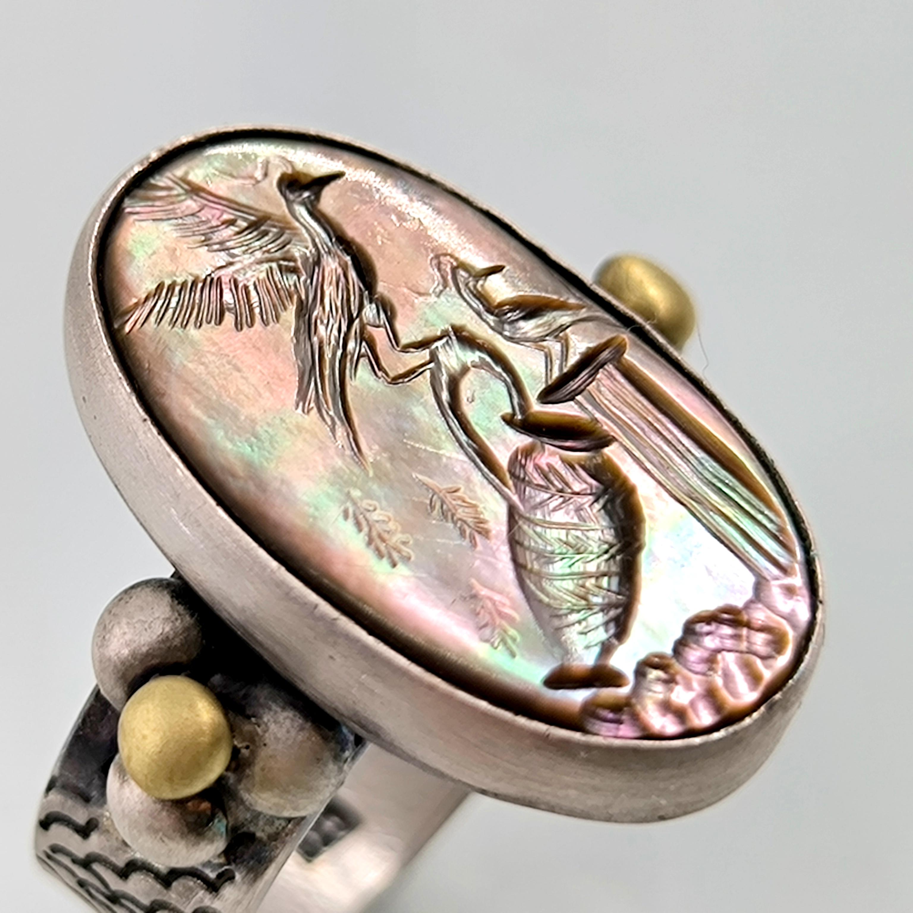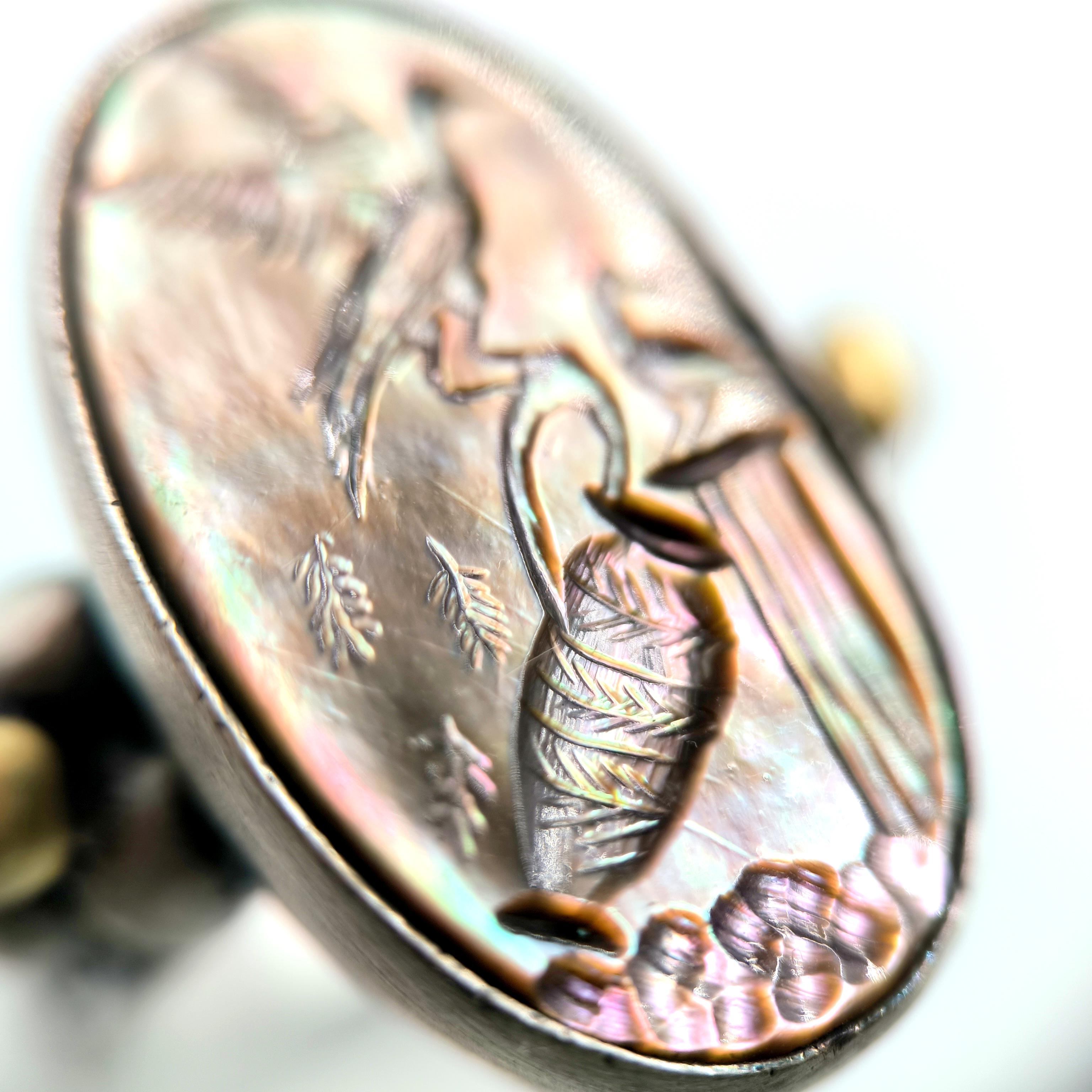 UÇUŞUN ASİL DANSI SEDEF ÜZERİ İNTAGLİO 925 AYAR GÜMÜŞ YÜZÜK