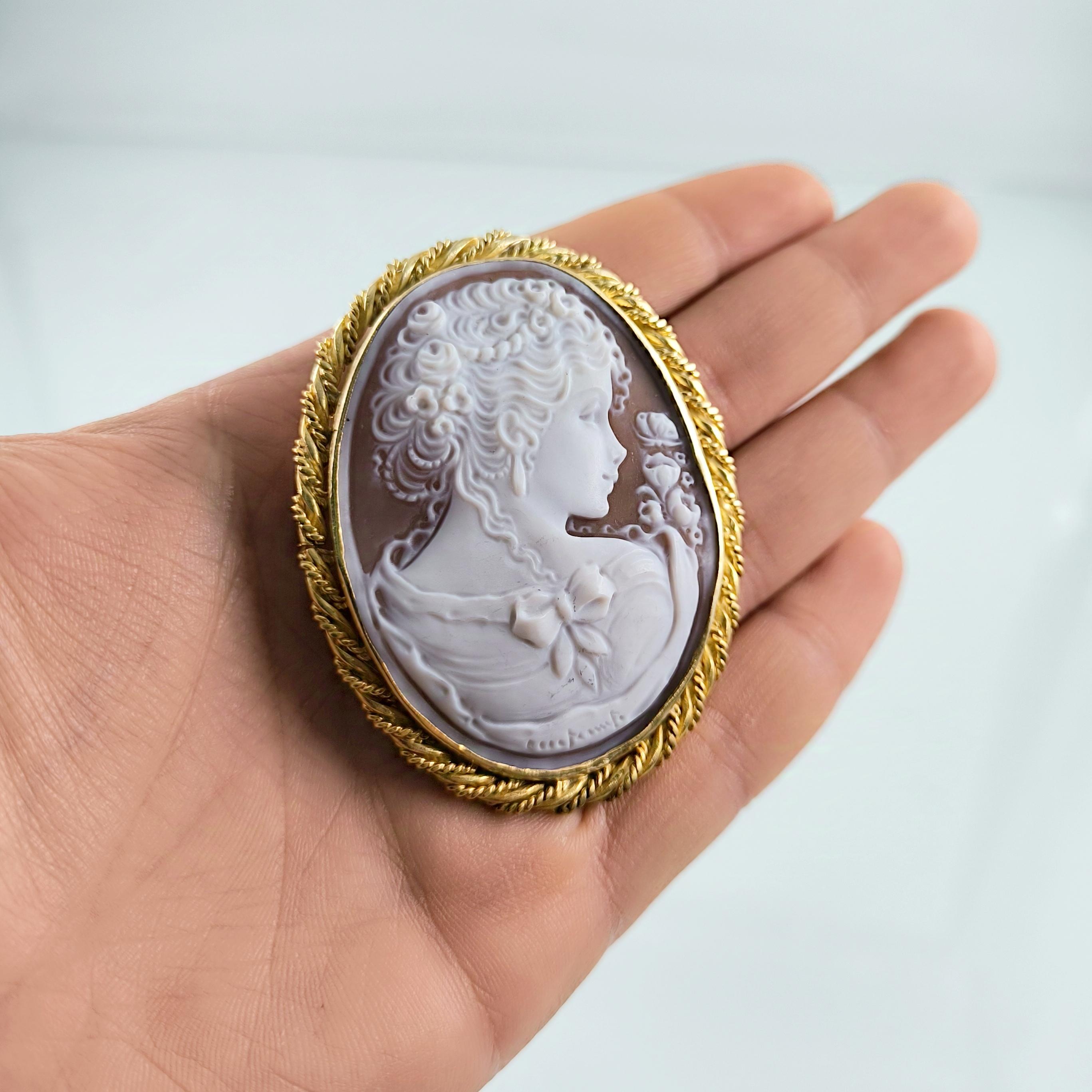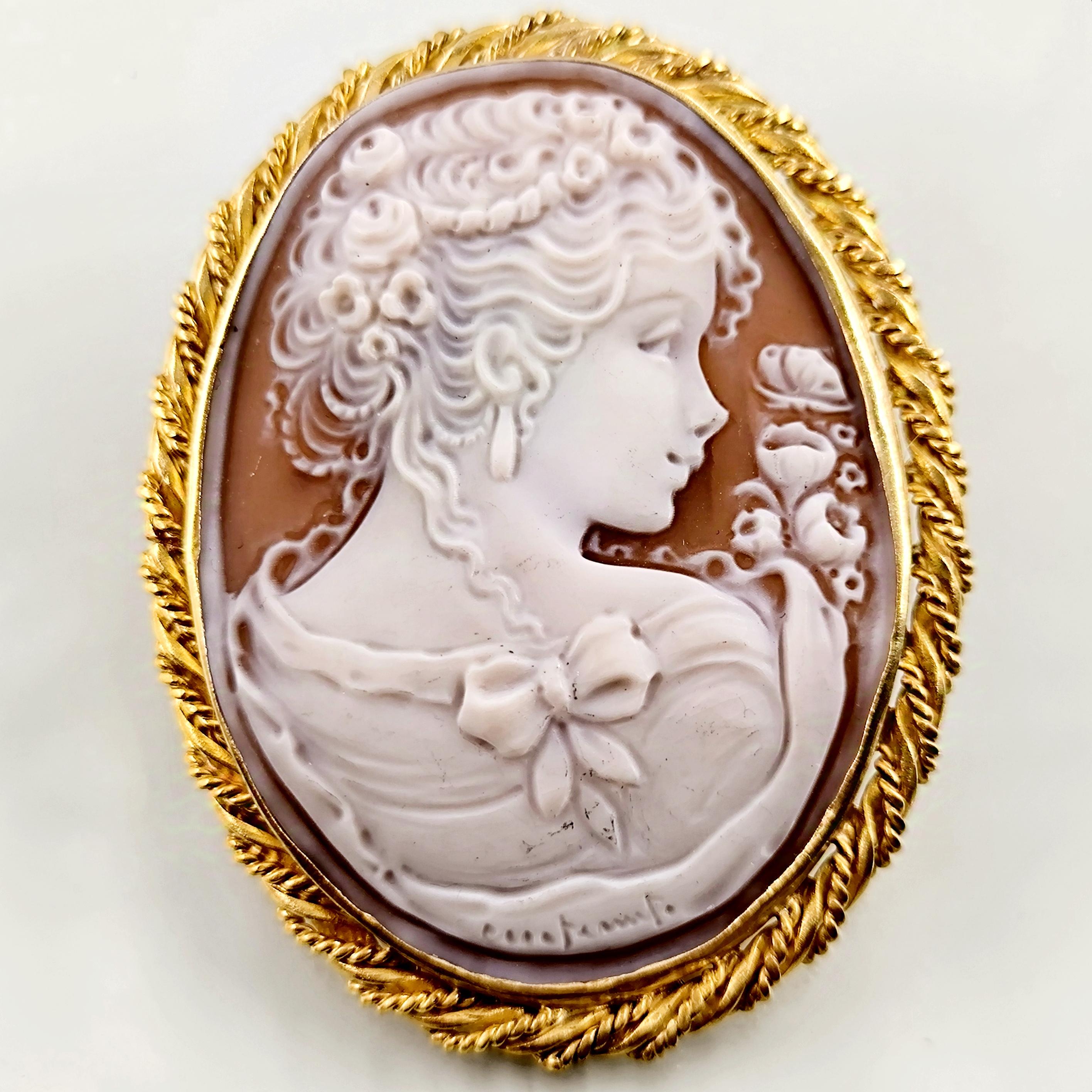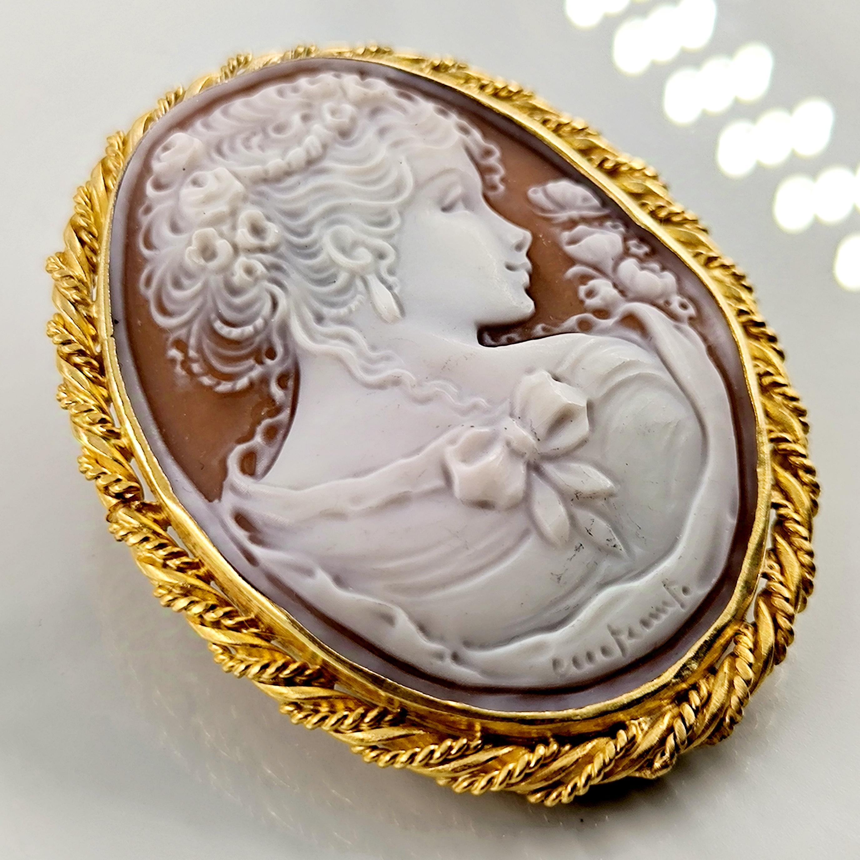 Muhteşem bir mücevher ile yine sizlerleyiz! Harika Cameo mücevher! Deniz kabuğu üzeri el oyma çalışılmış ''Leydi'' tasvirli muazzam bir Avrupa Cameo! Çerçeve tasarımını kendimiz tasarladığımız Tam bir viktoryan stilde Cameo kolyemiz!! Çerçevemiz tamamen 925 ayar gümüş olup üzeri 22k altın kaplamadır.. Cameo'muzun altında sanatçı imzası vardır.